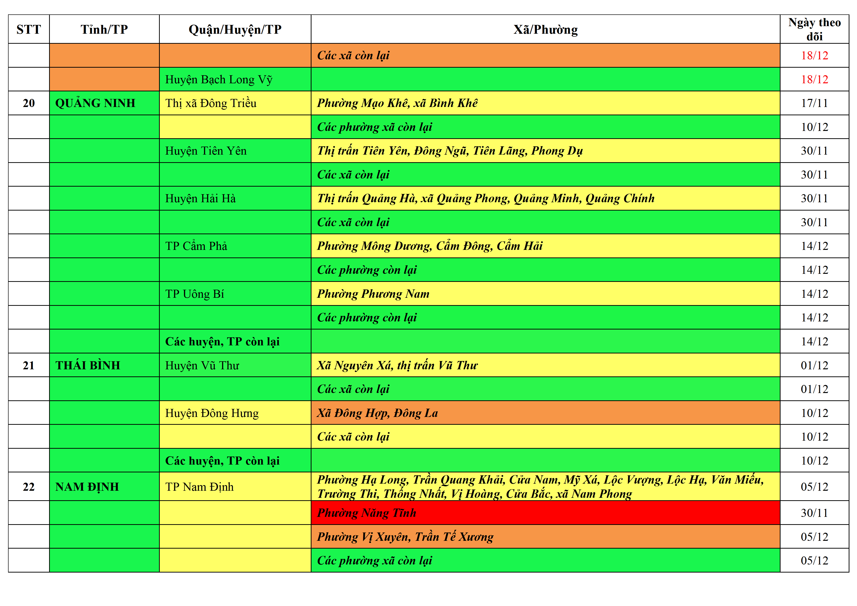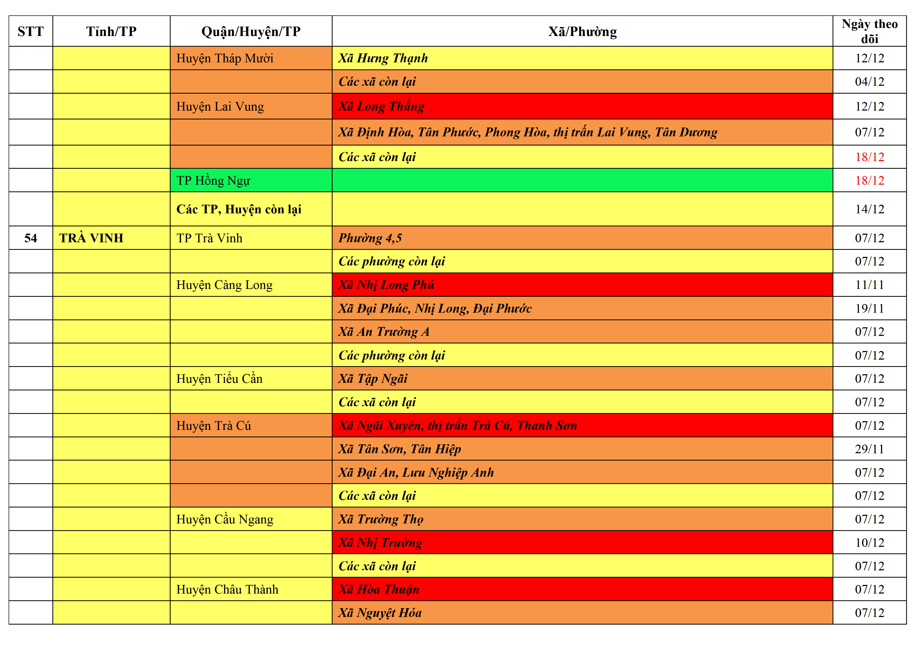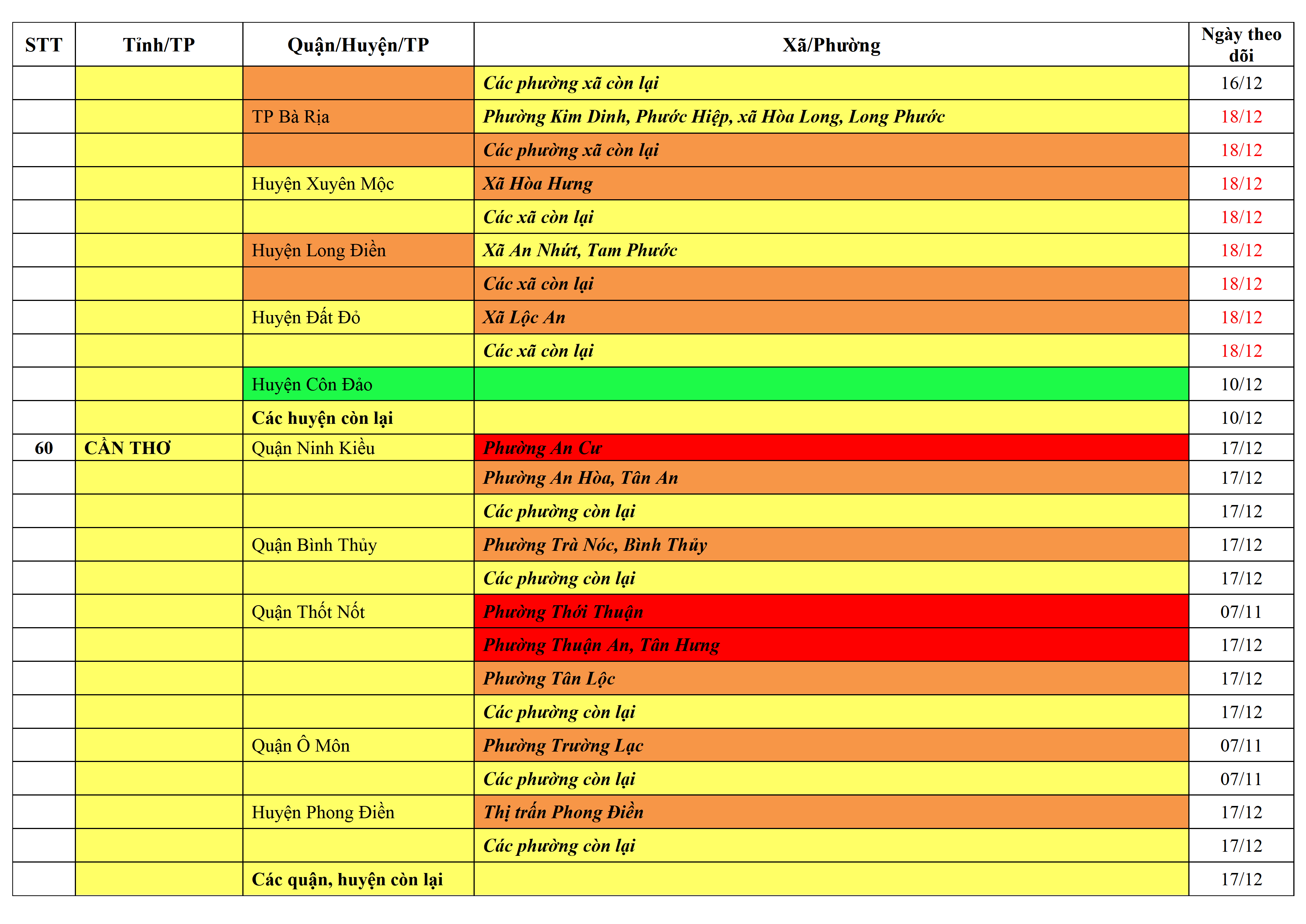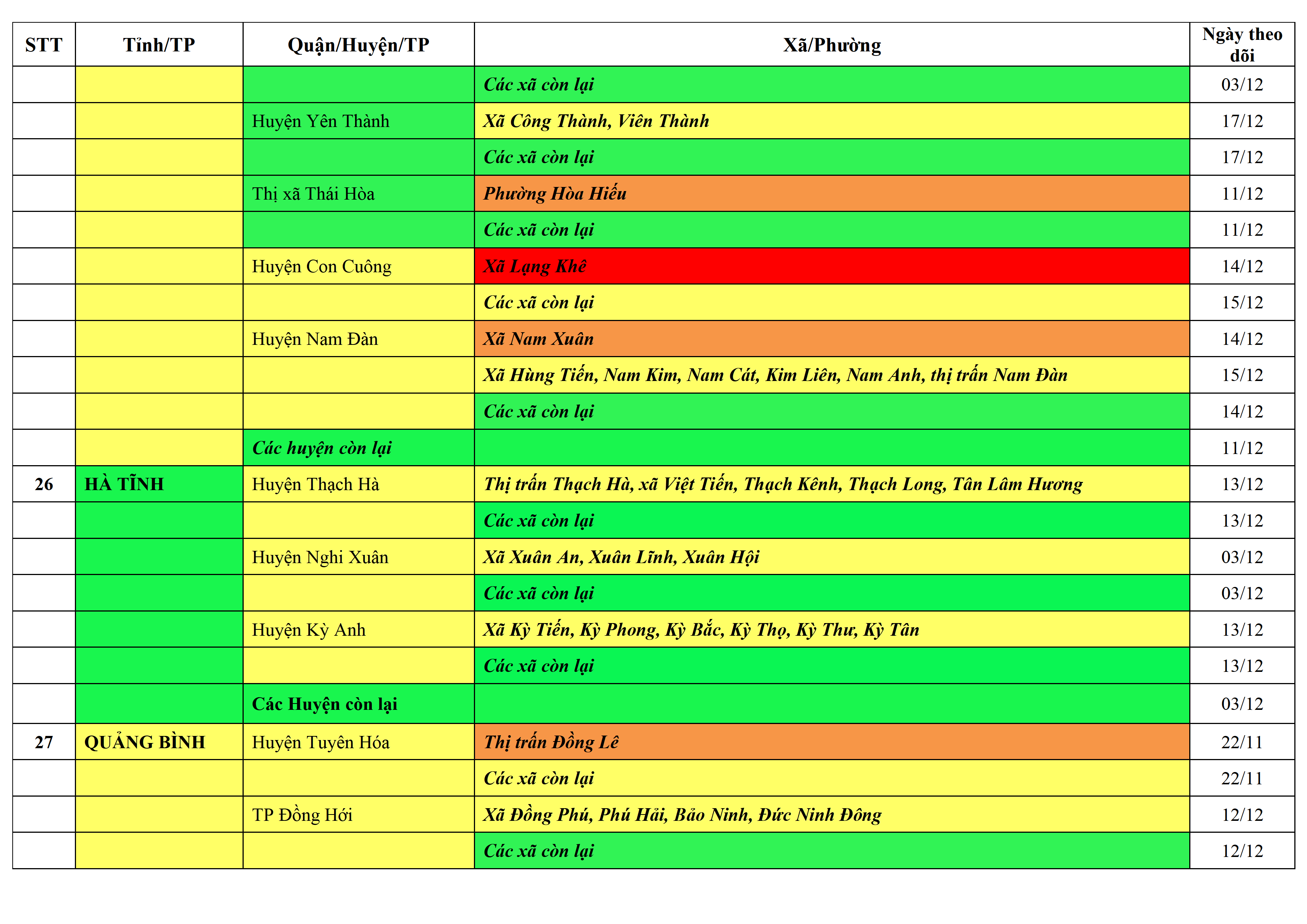 Lưu ý: Các tỉnh, thành phố không có tên trong bảng màu, đi lại bình thường, tuân thủ các biện pháp phòng chống dịch theo chỉ đạo của Bộ Y tế; khai báo y tế, thực hiện nghiêm 5K.