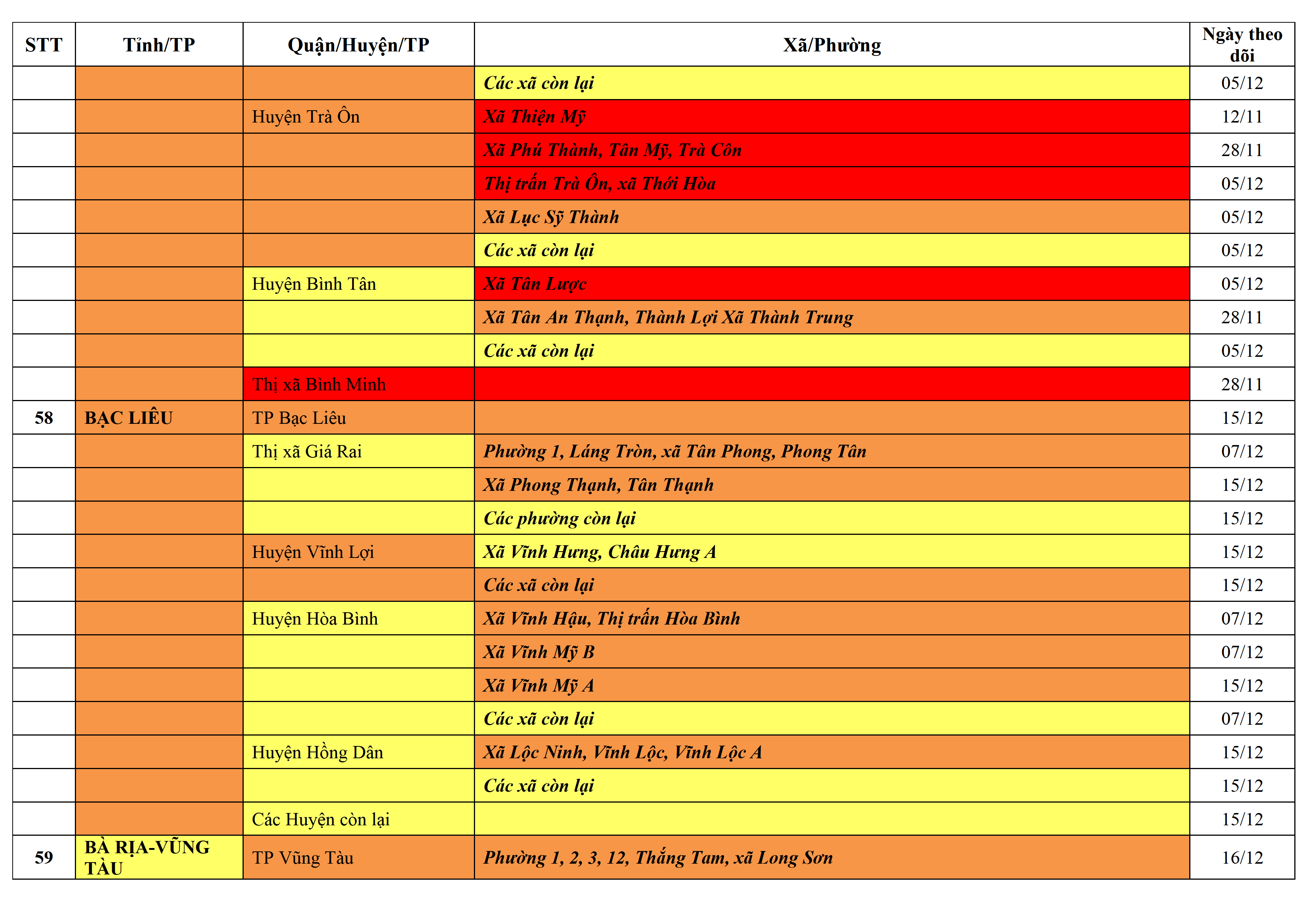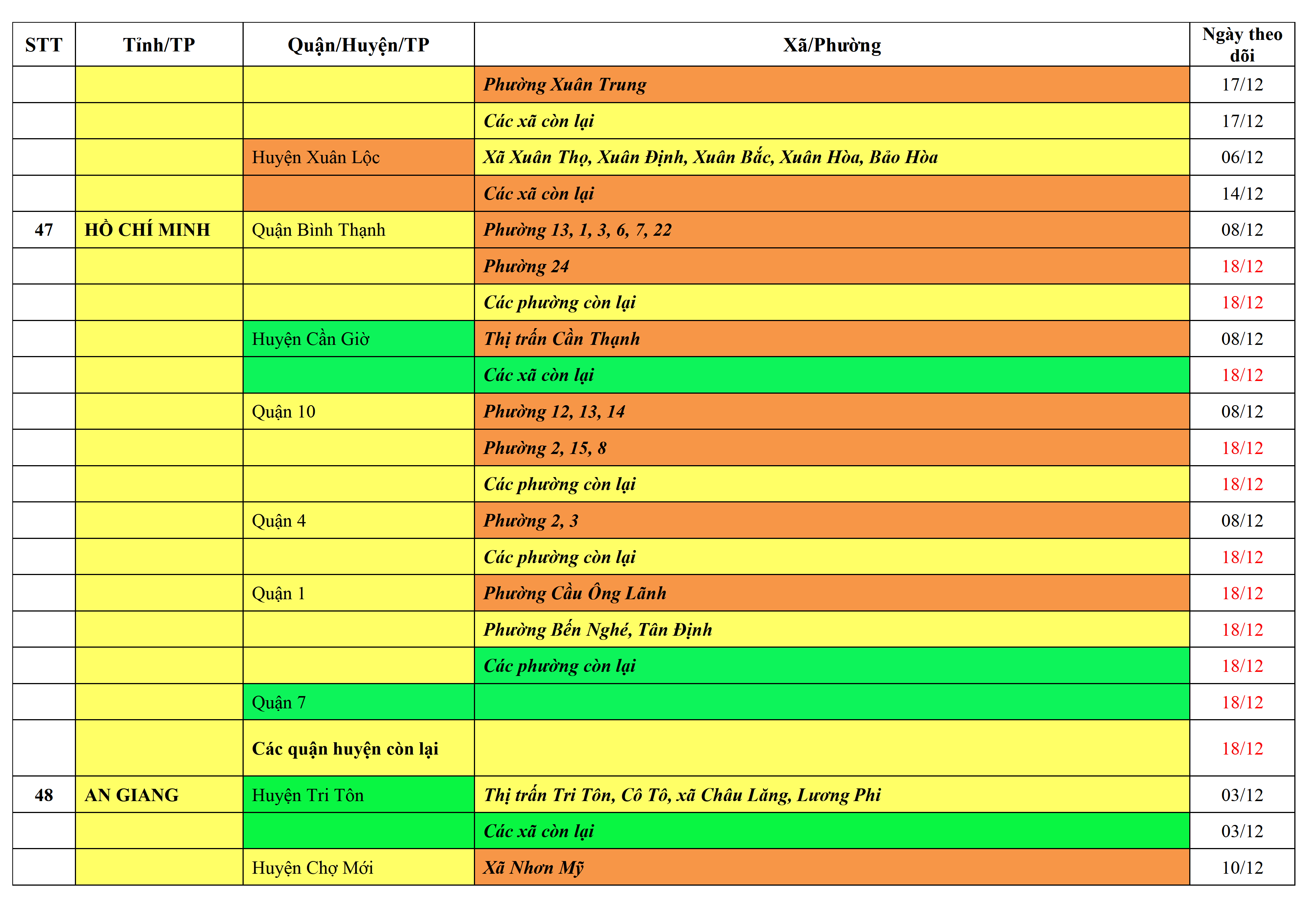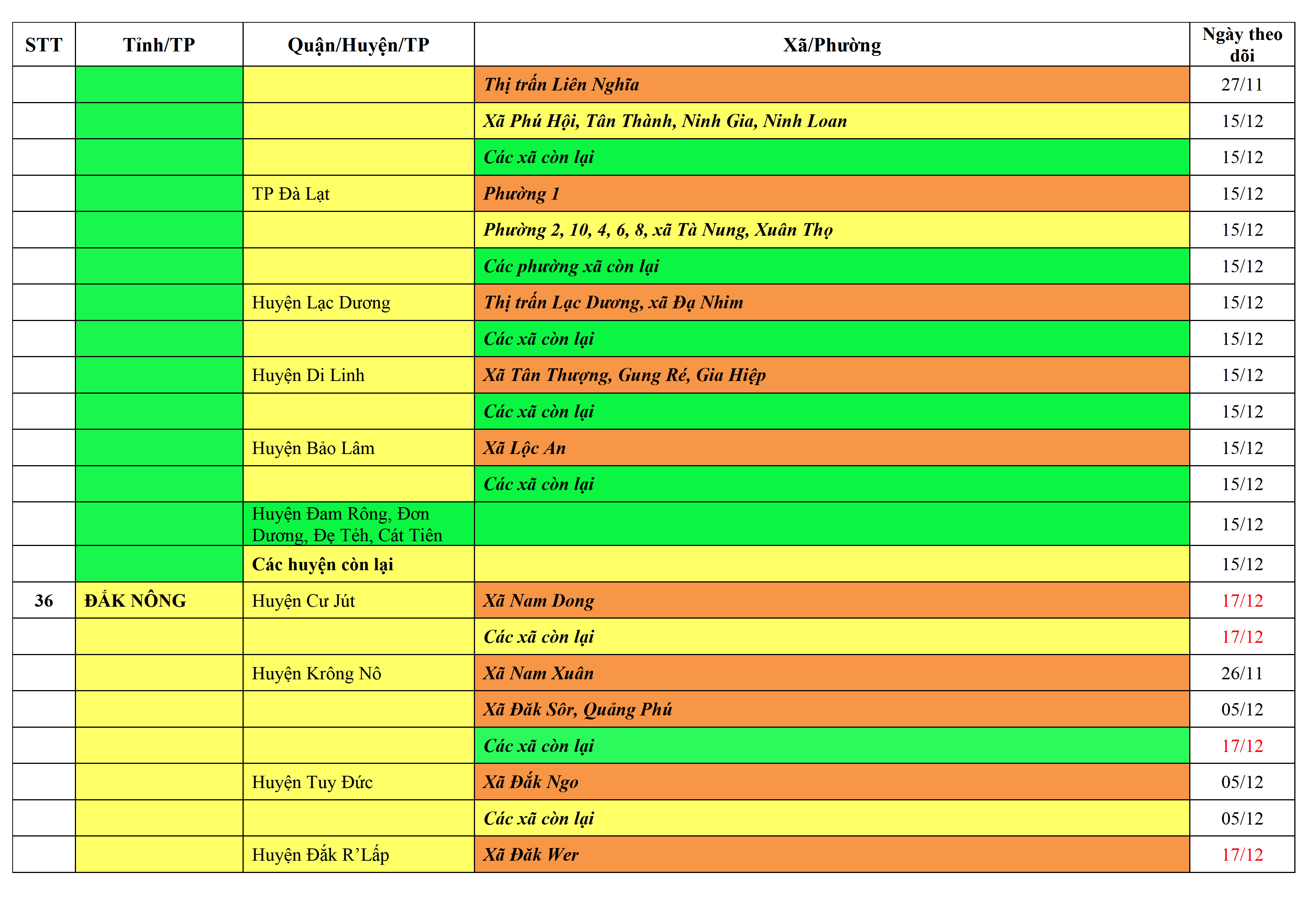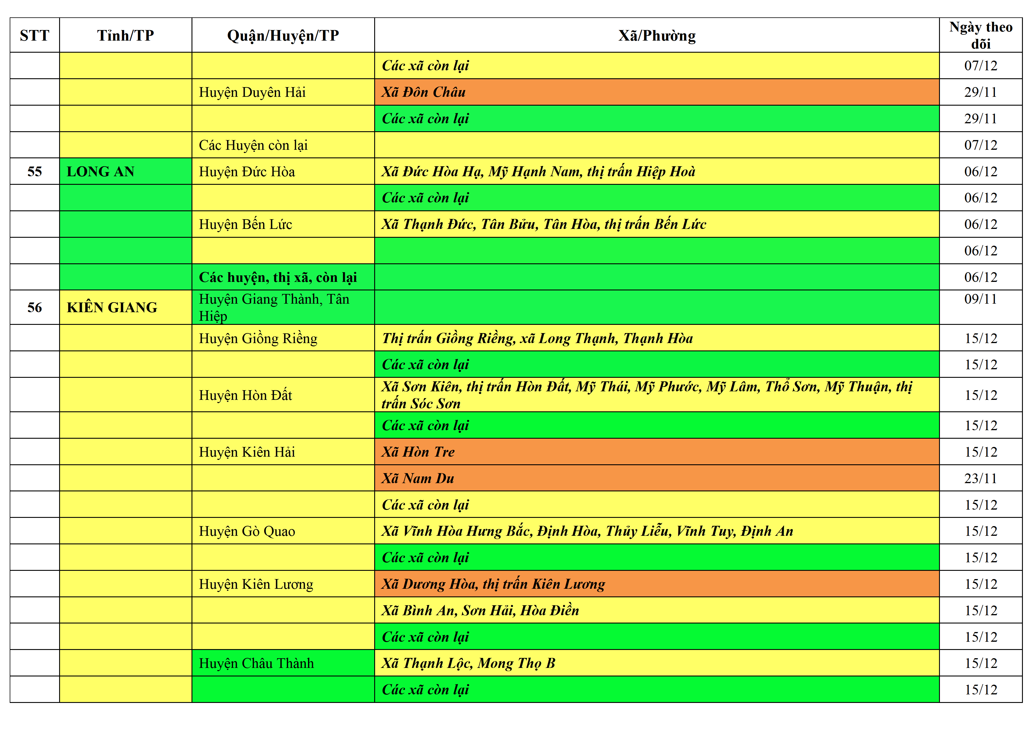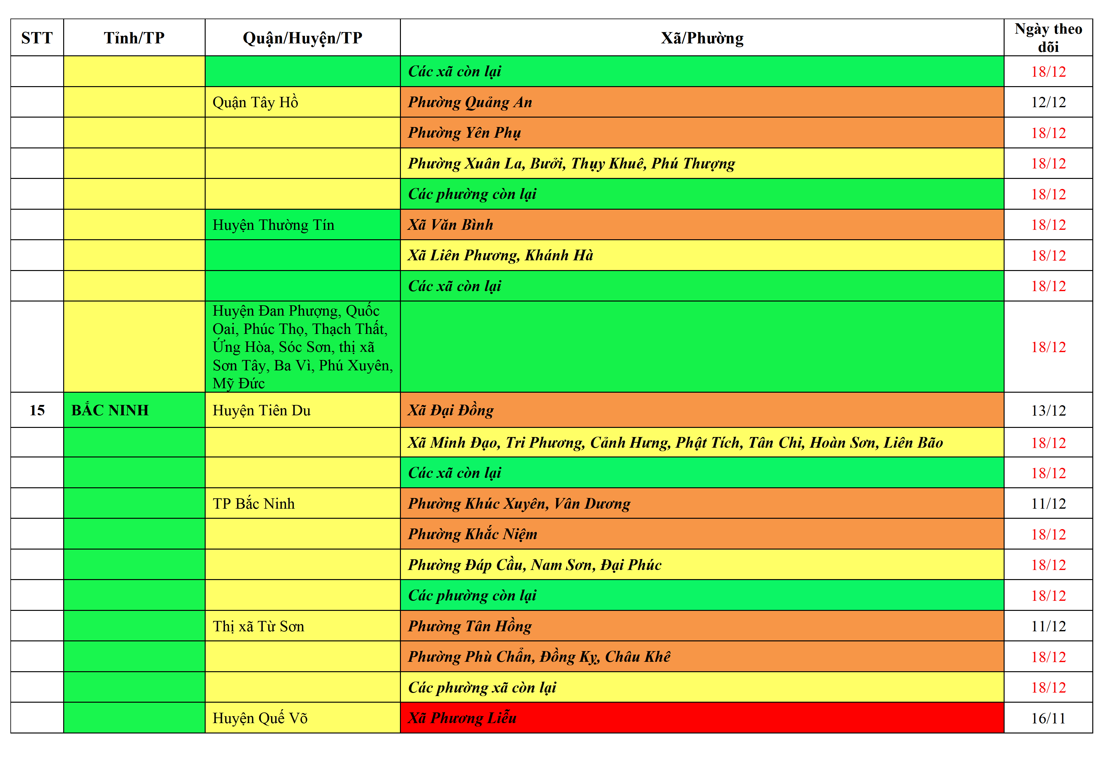Lưu ý: Các tỉnh, thành phố không có tên trong bảng màu, đi lại bình thường, tuân thủ các biện pháp phòng chống dịch theo chỉ đạo của Bộ Y tế; khai báo y tế, thực hiện nghiêm 5K.