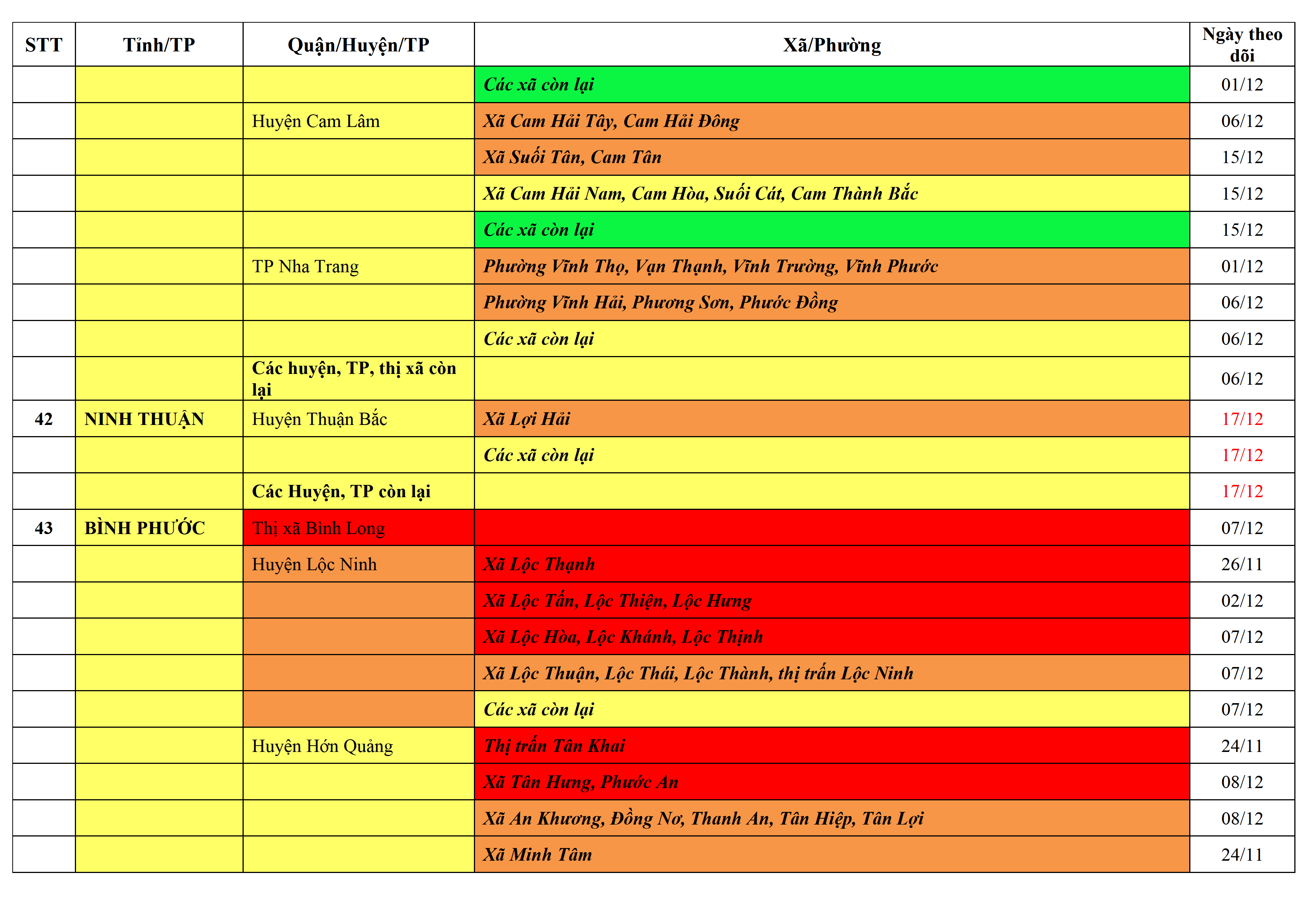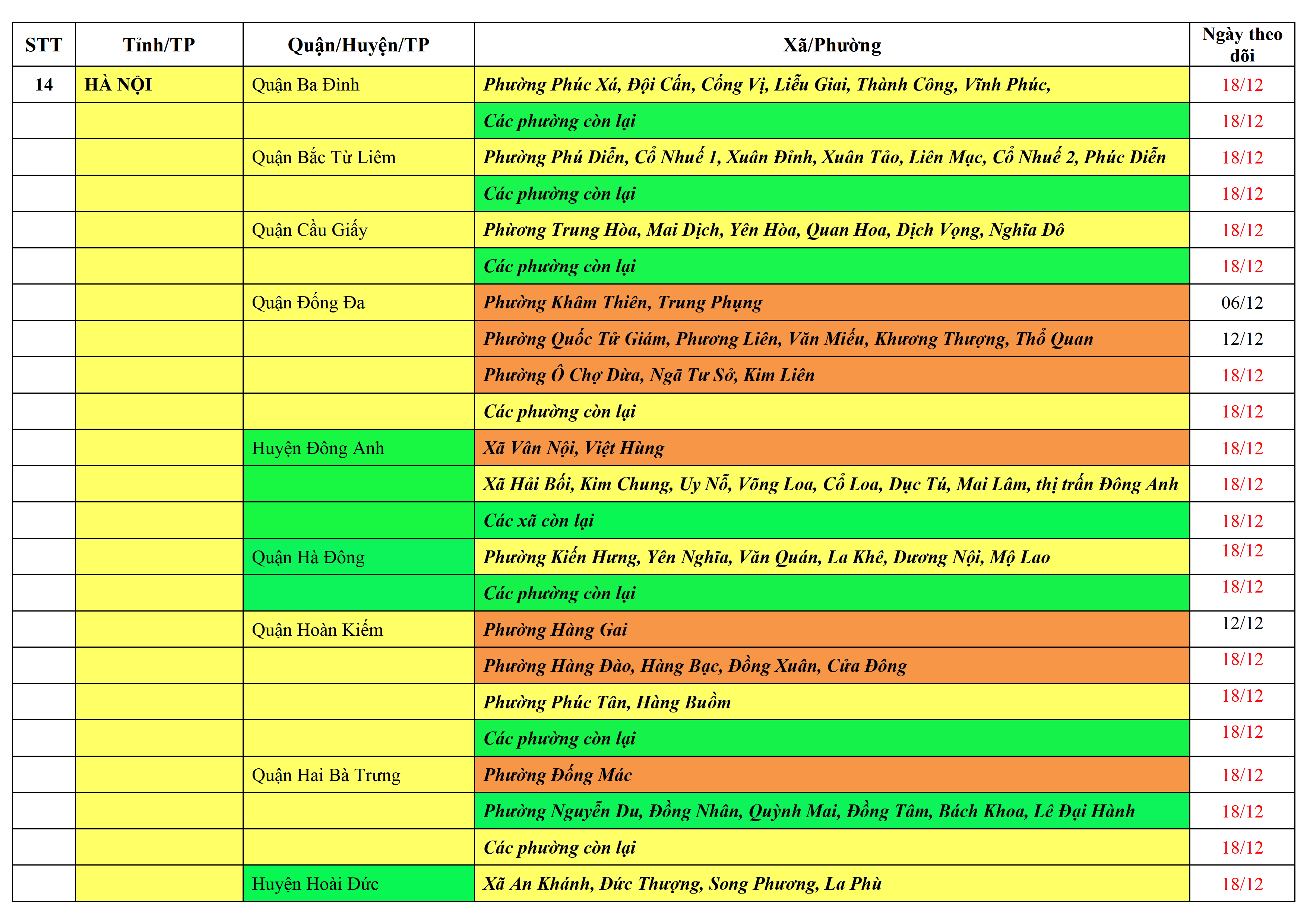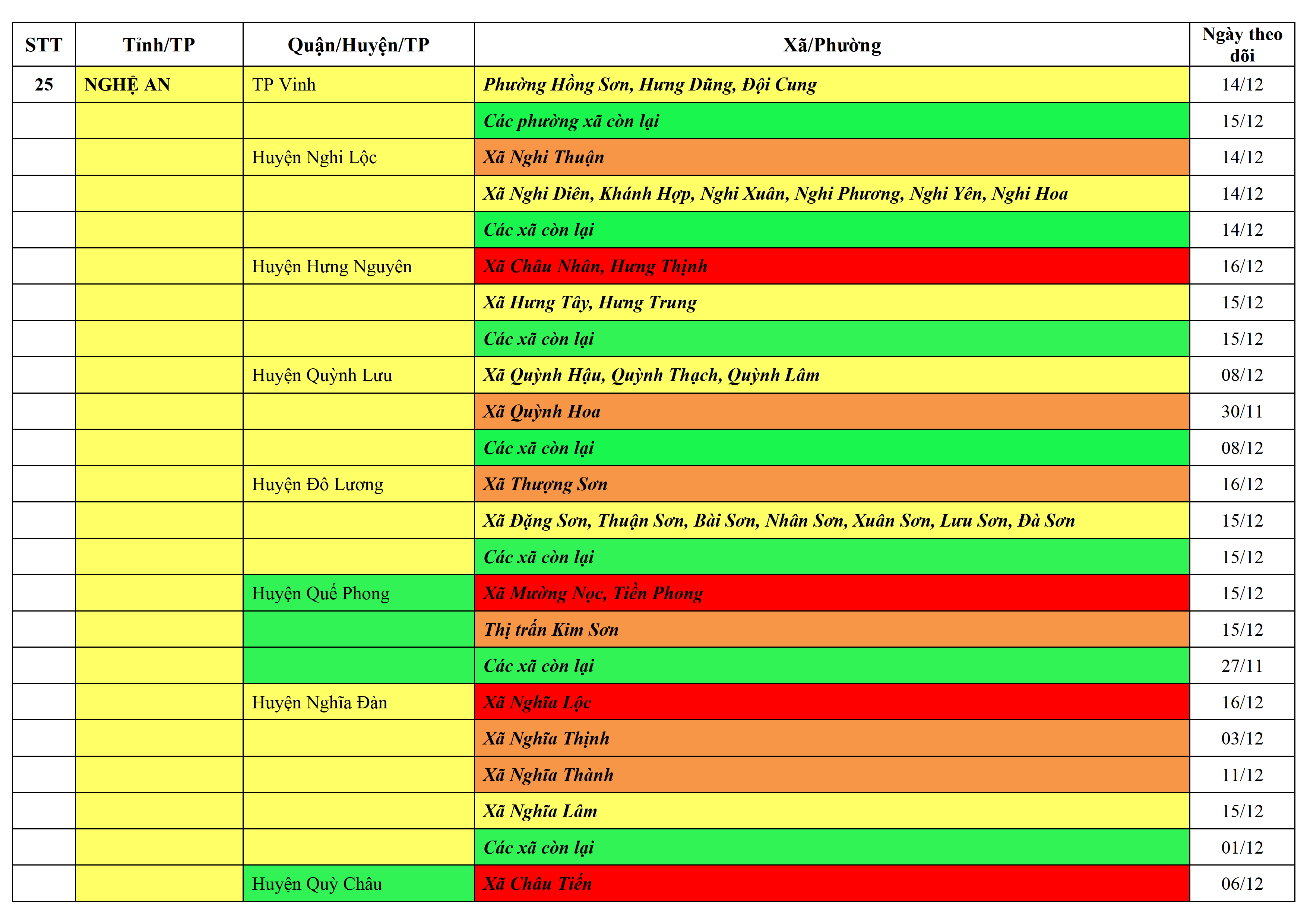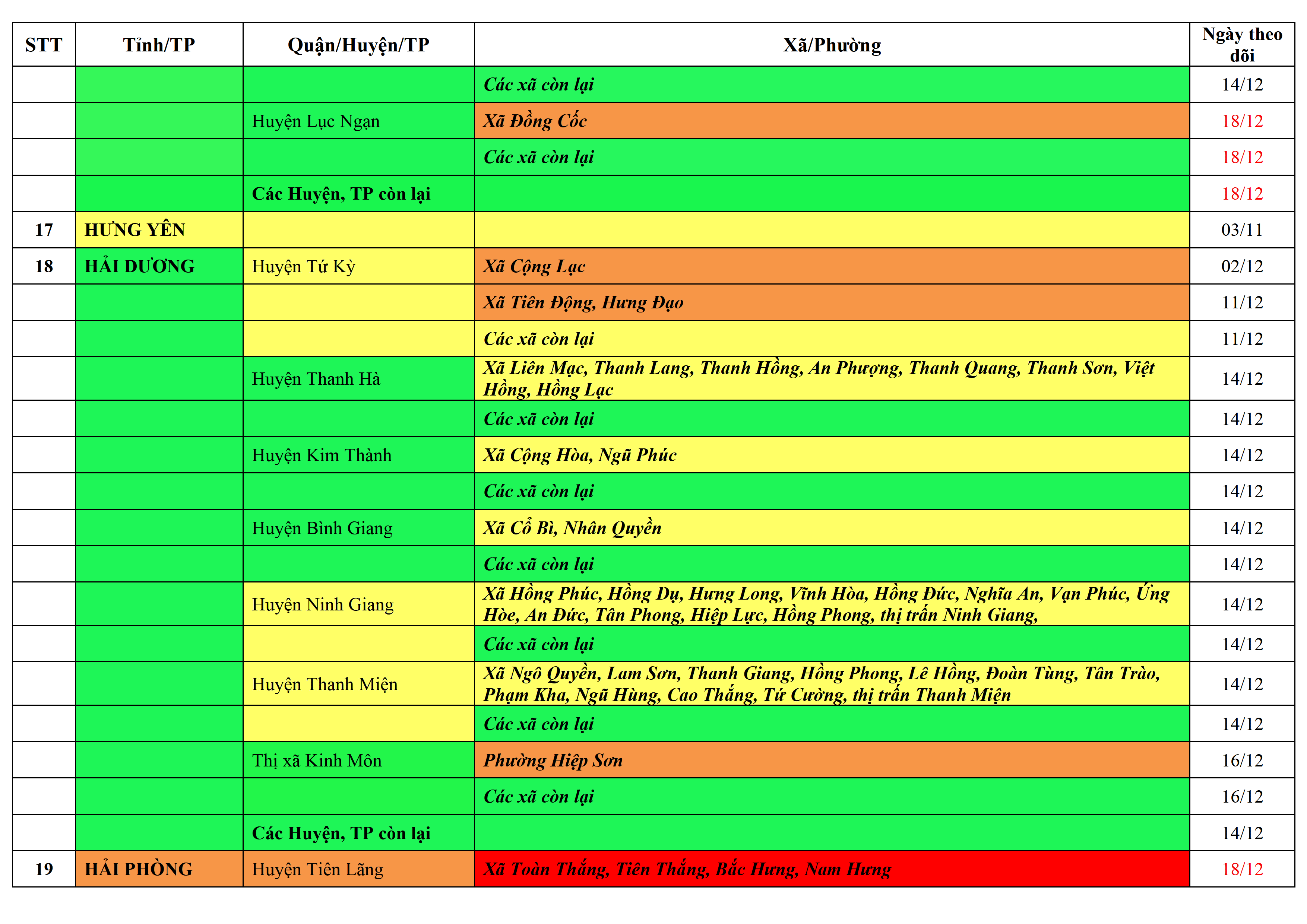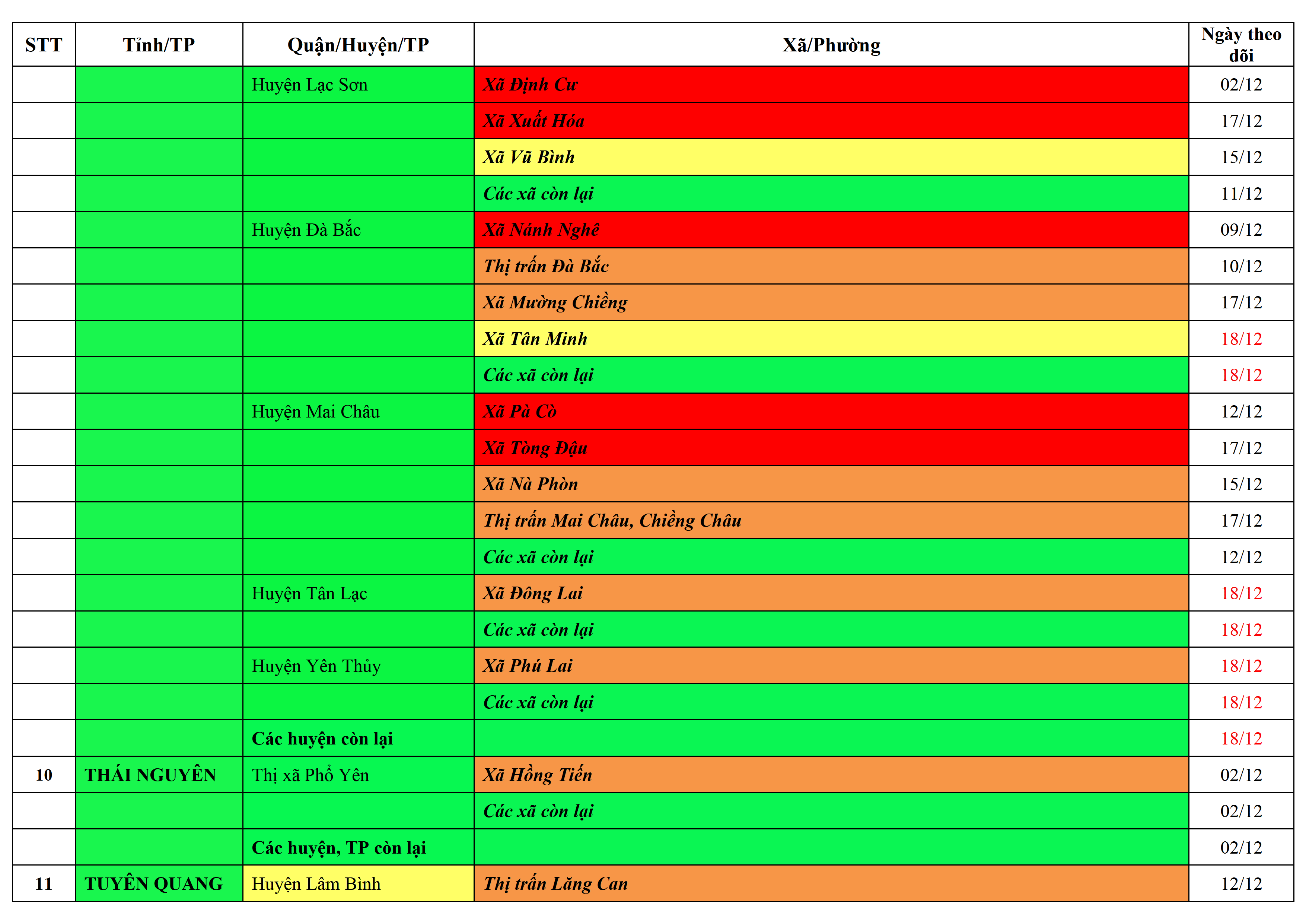 Lưu ý: Các tỉnh, thành phố không có tên trong bảng màu, đi lại bình thường, tuân thủ các biện pháp phòng chống dịch theo chỉ đạo của Bộ Y tế; khai báo y tế, thực hiện nghiêm 5K.