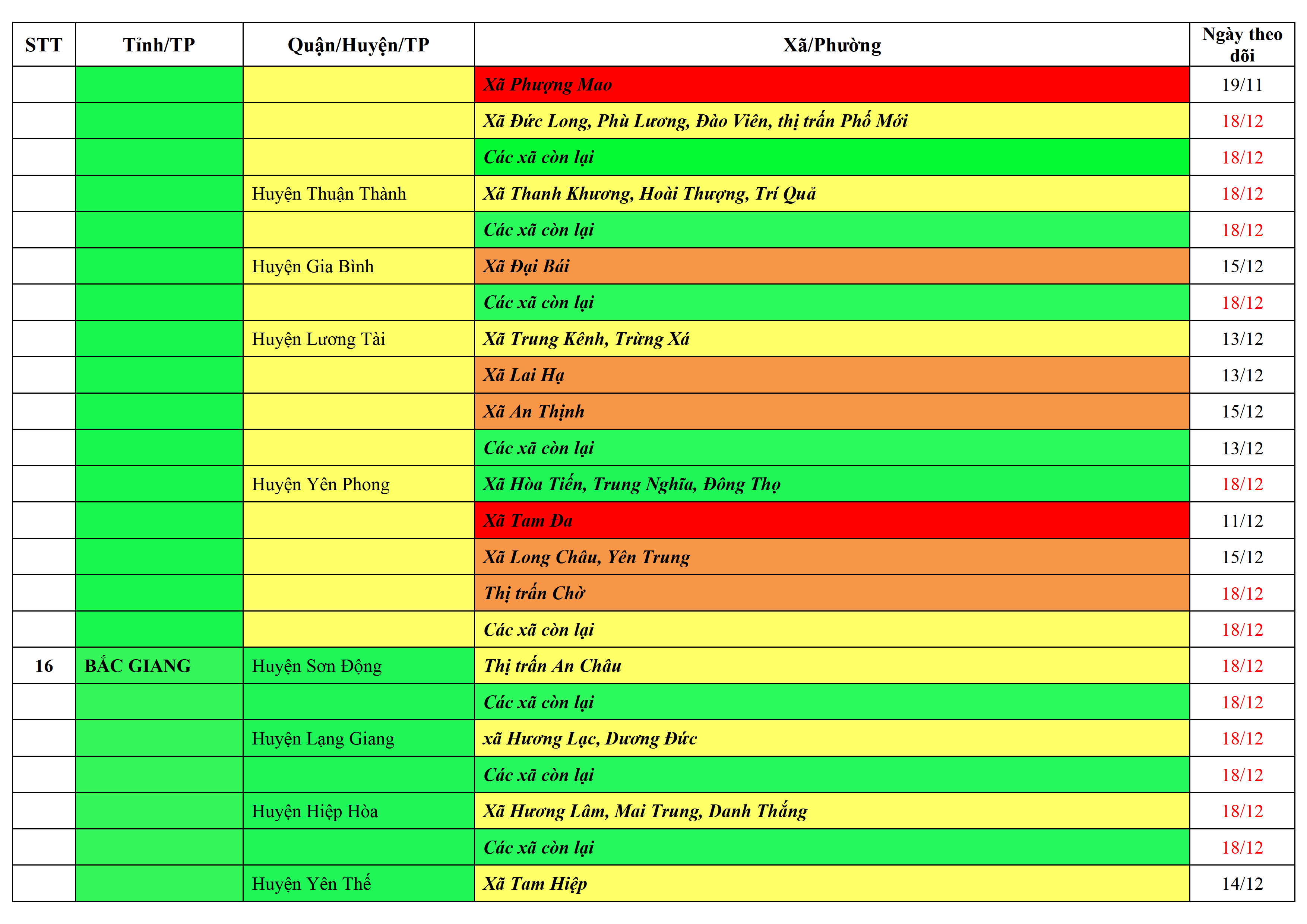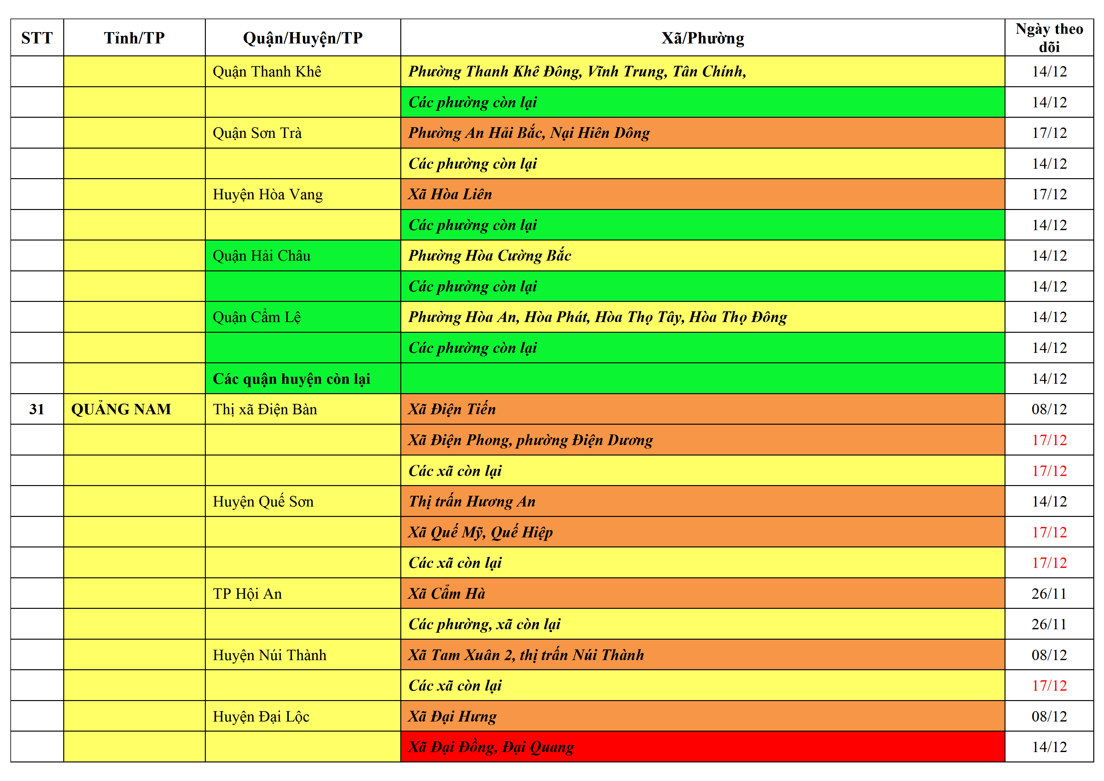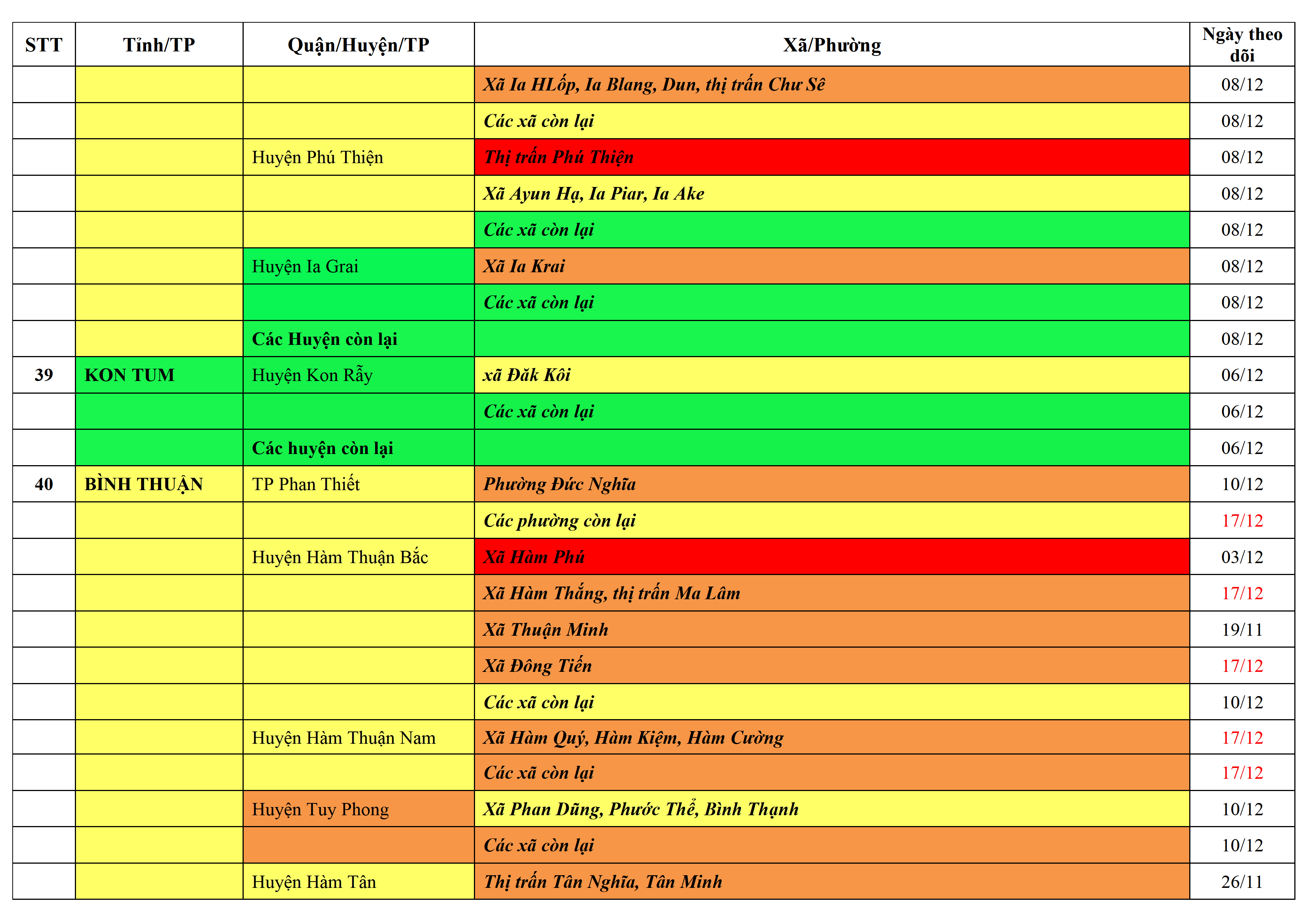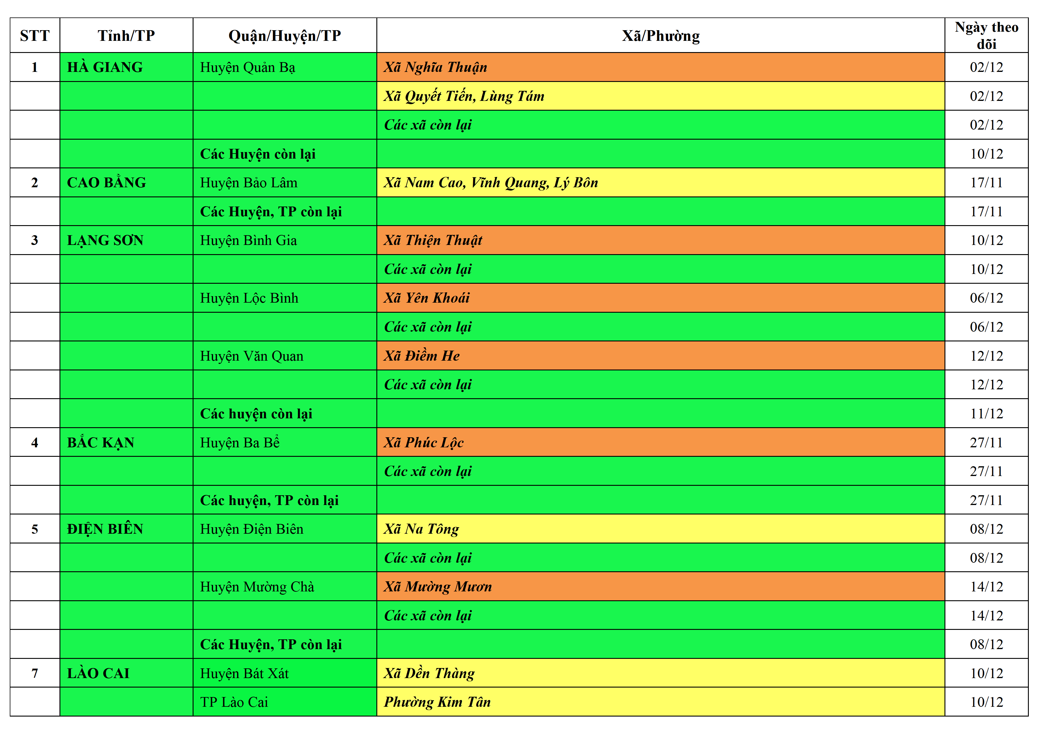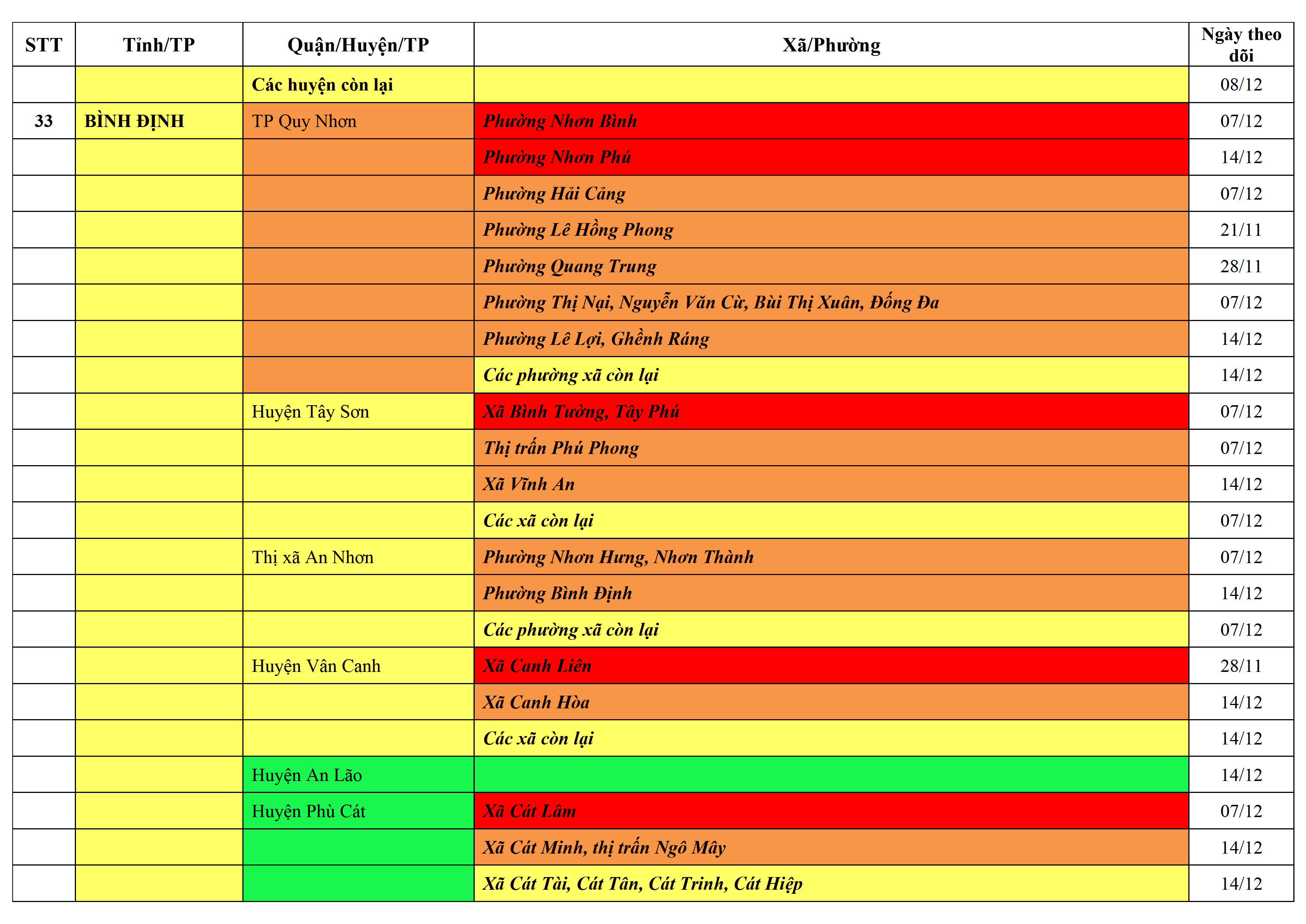 Lưu ý: Các tỉnh, thành phố không có tên trong bảng màu, đi lại bình thường, tuân thủ các biện pháp phòng chống dịch theo chỉ đạo của Bộ Y tế; khai báo y tế, thực hiện nghiêm 5K.