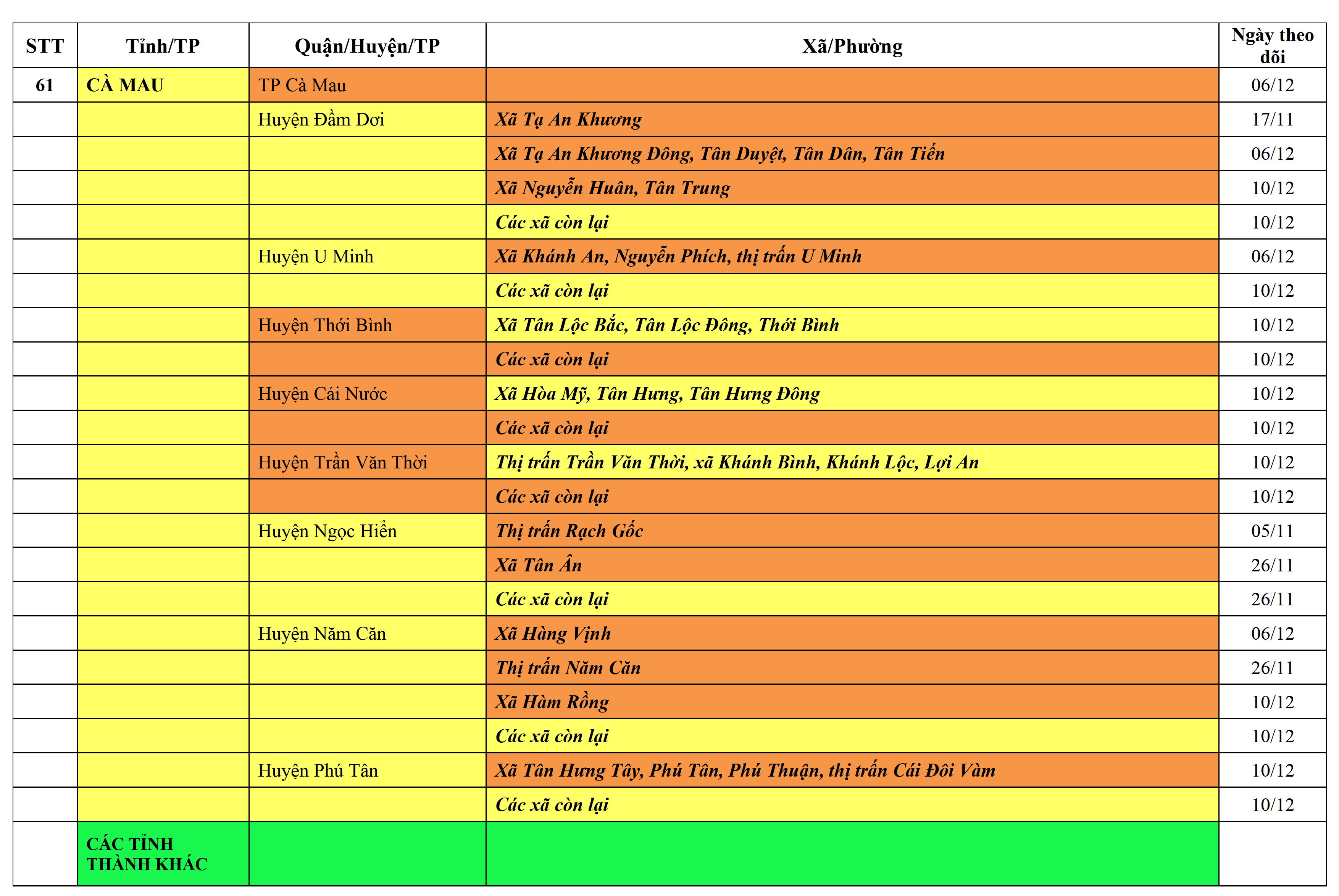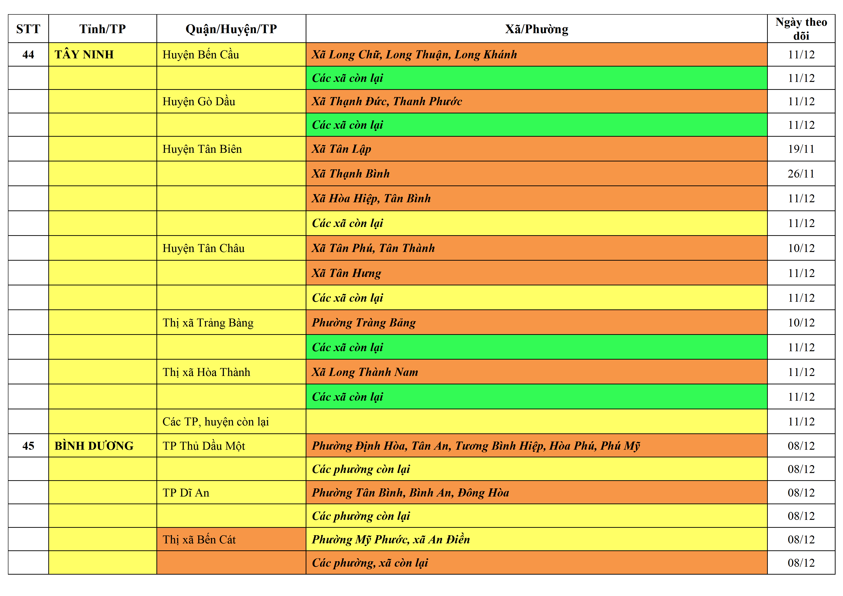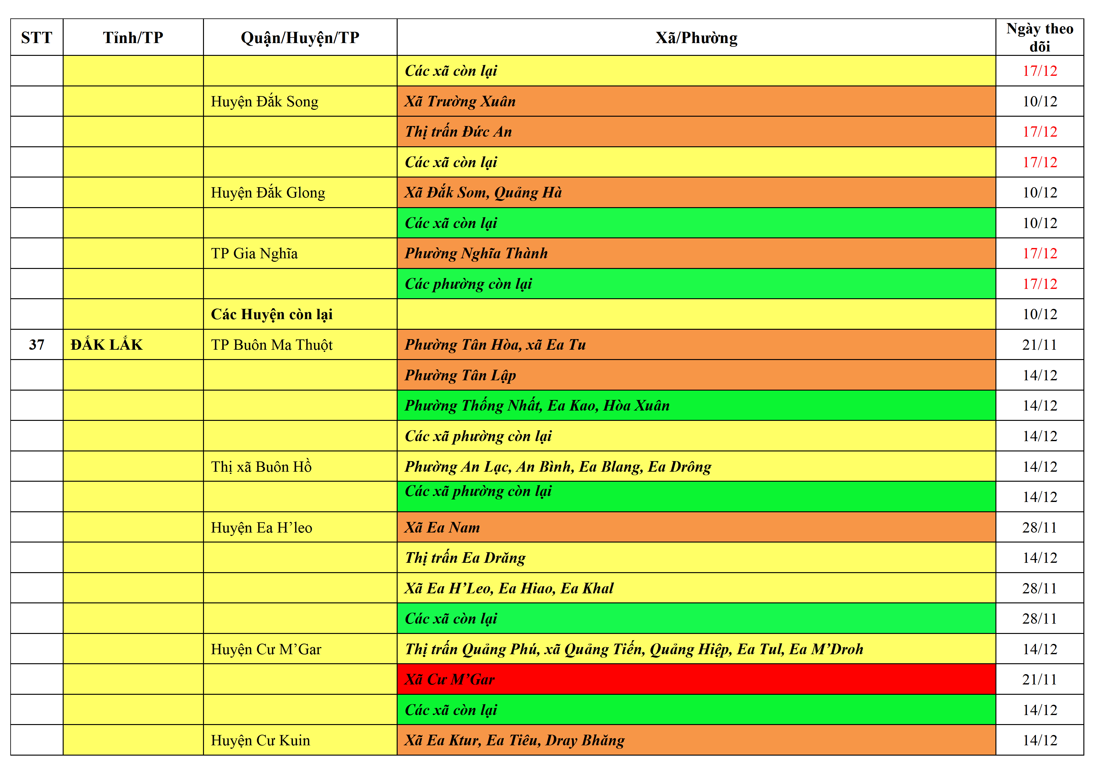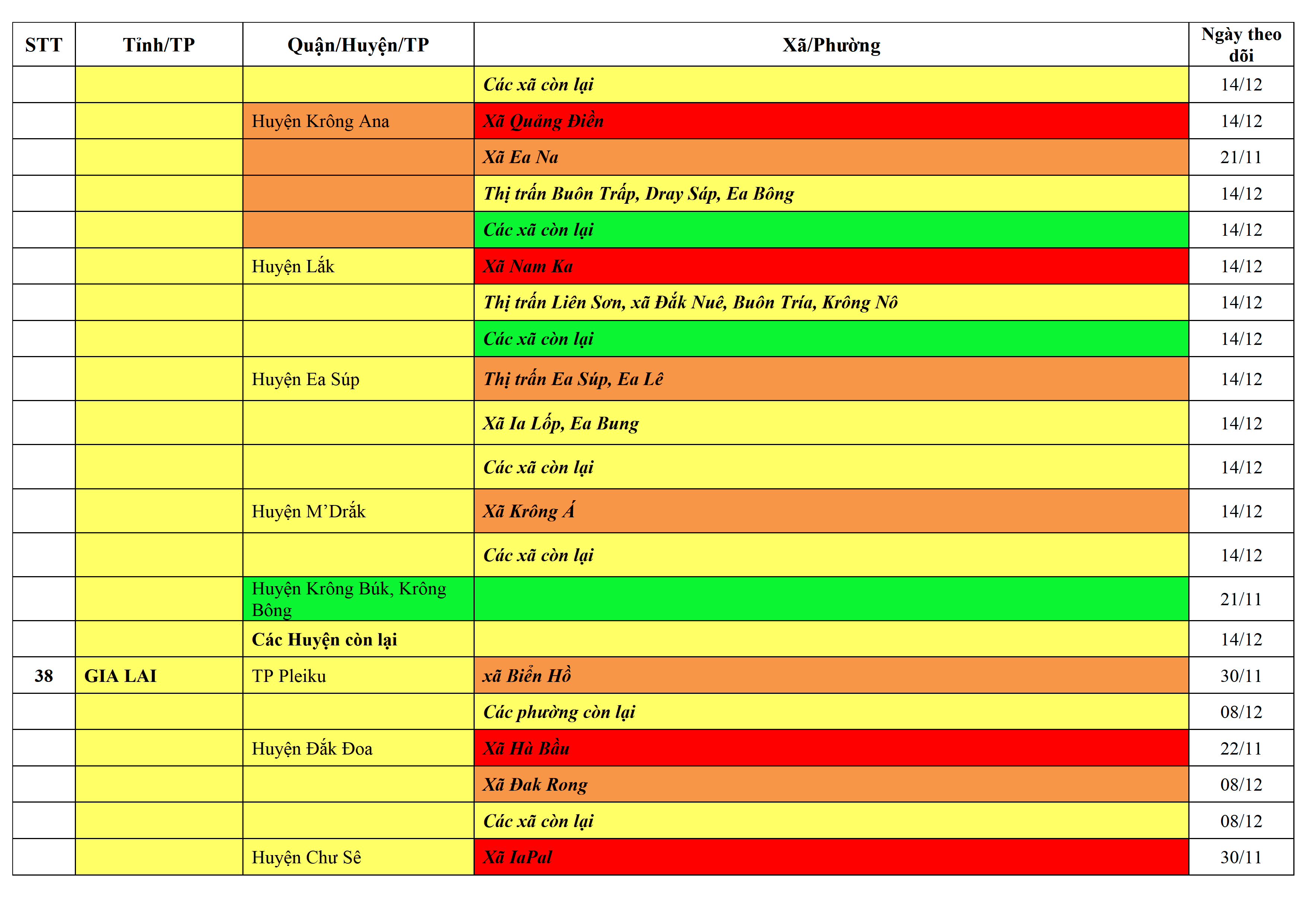 Lưu ý: Các tỉnh, thành phố không có tên trong bảng màu, đi lại bình thường, tuân thủ các biện pháp phòng chống dịch theo chỉ đạo của Bộ Y tế; khai báo y tế, thực hiện nghiêm 5K.