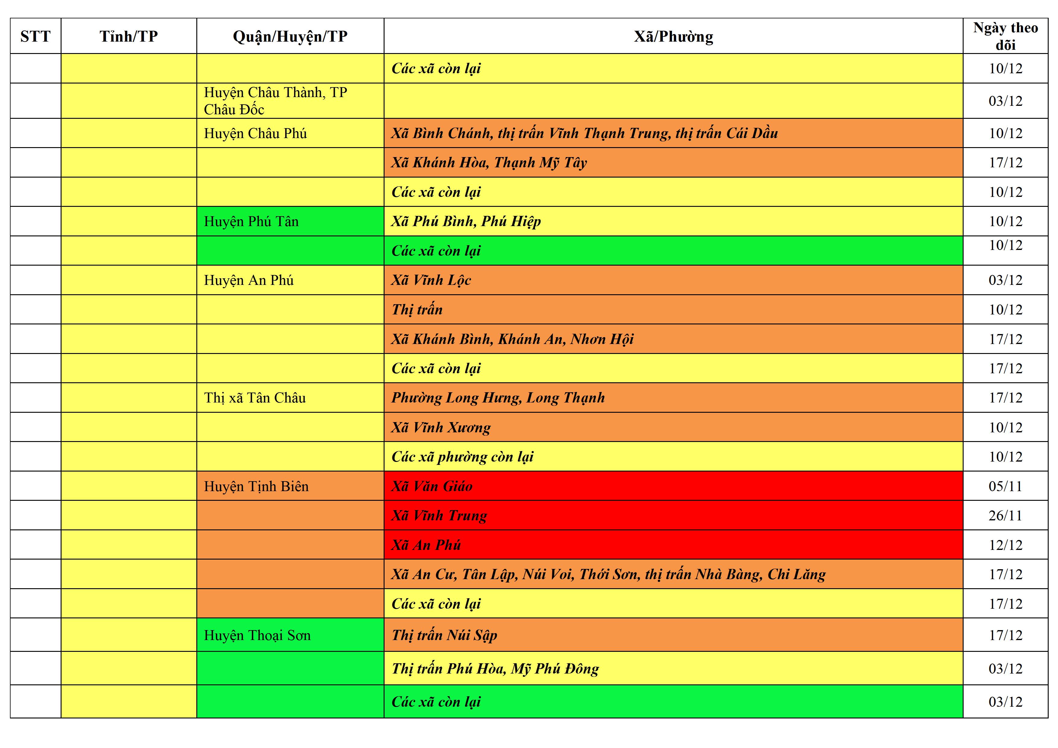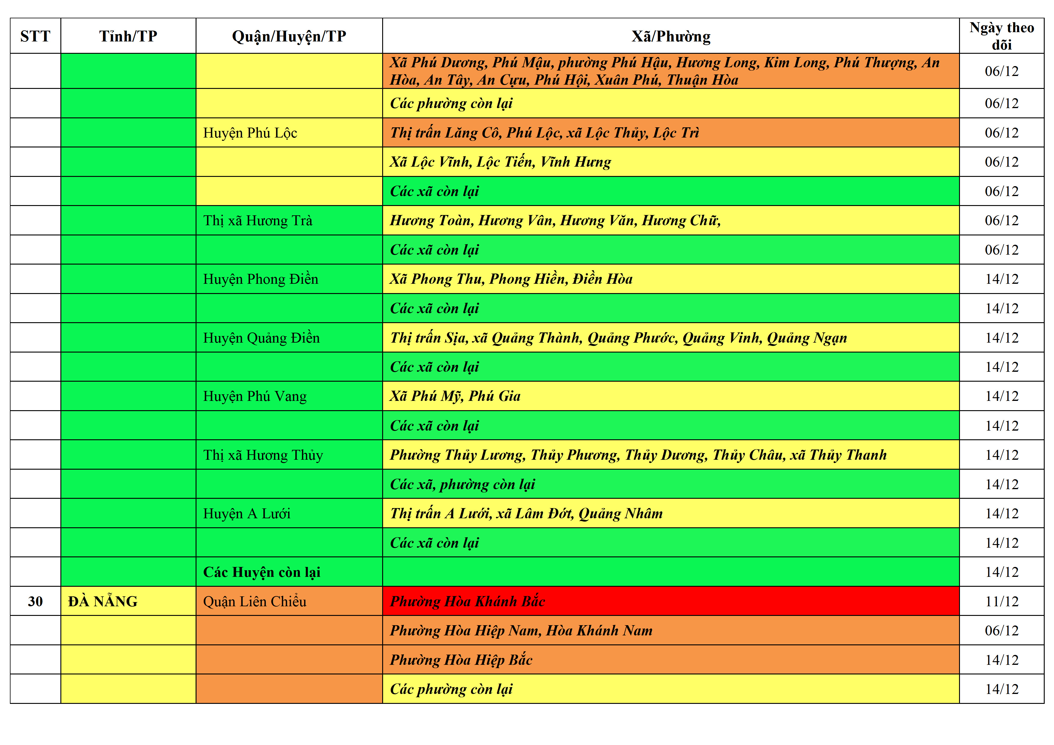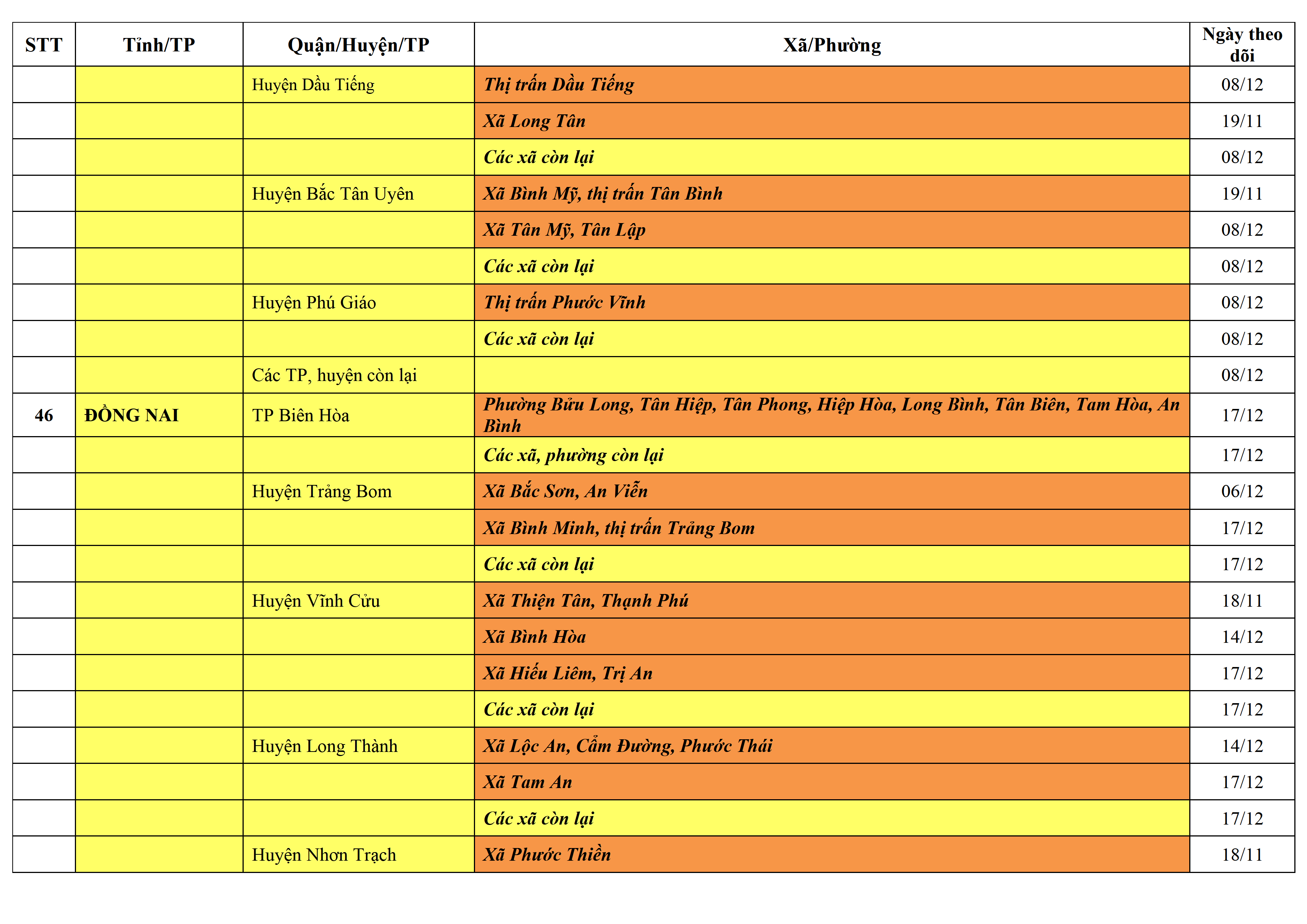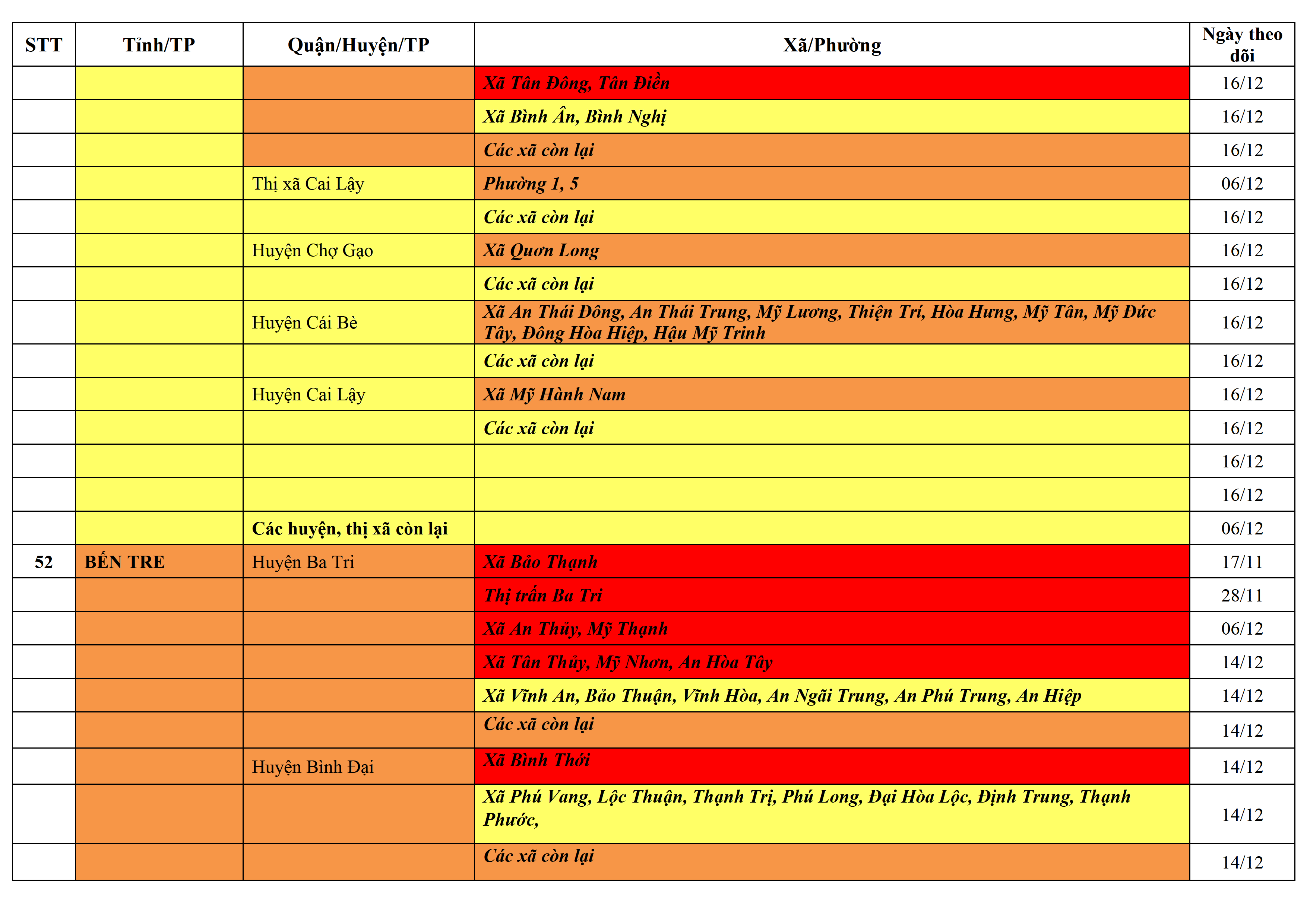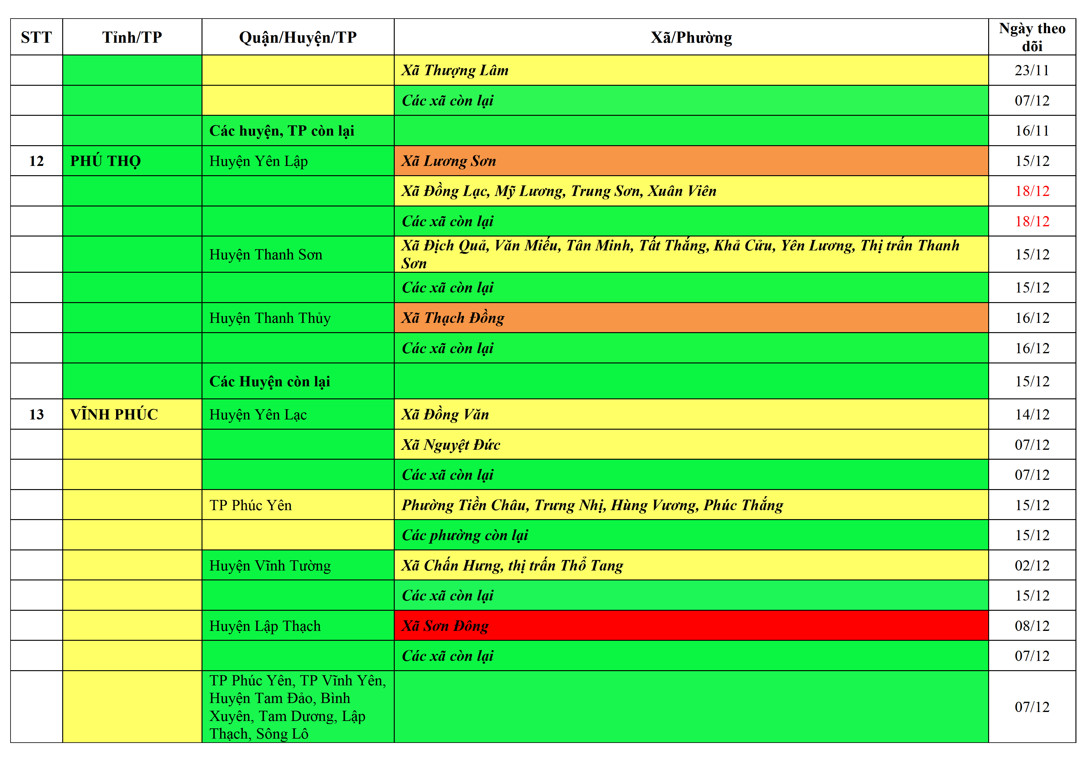 Lưu ý: Các tỉnh, thành phố không có tên trong bảng màu, đi lại bình thường, tuân thủ các biện pháp phòng chống dịch theo chỉ đạo của Bộ Y tế; khai báo y tế, thực hiện nghiêm 5K.