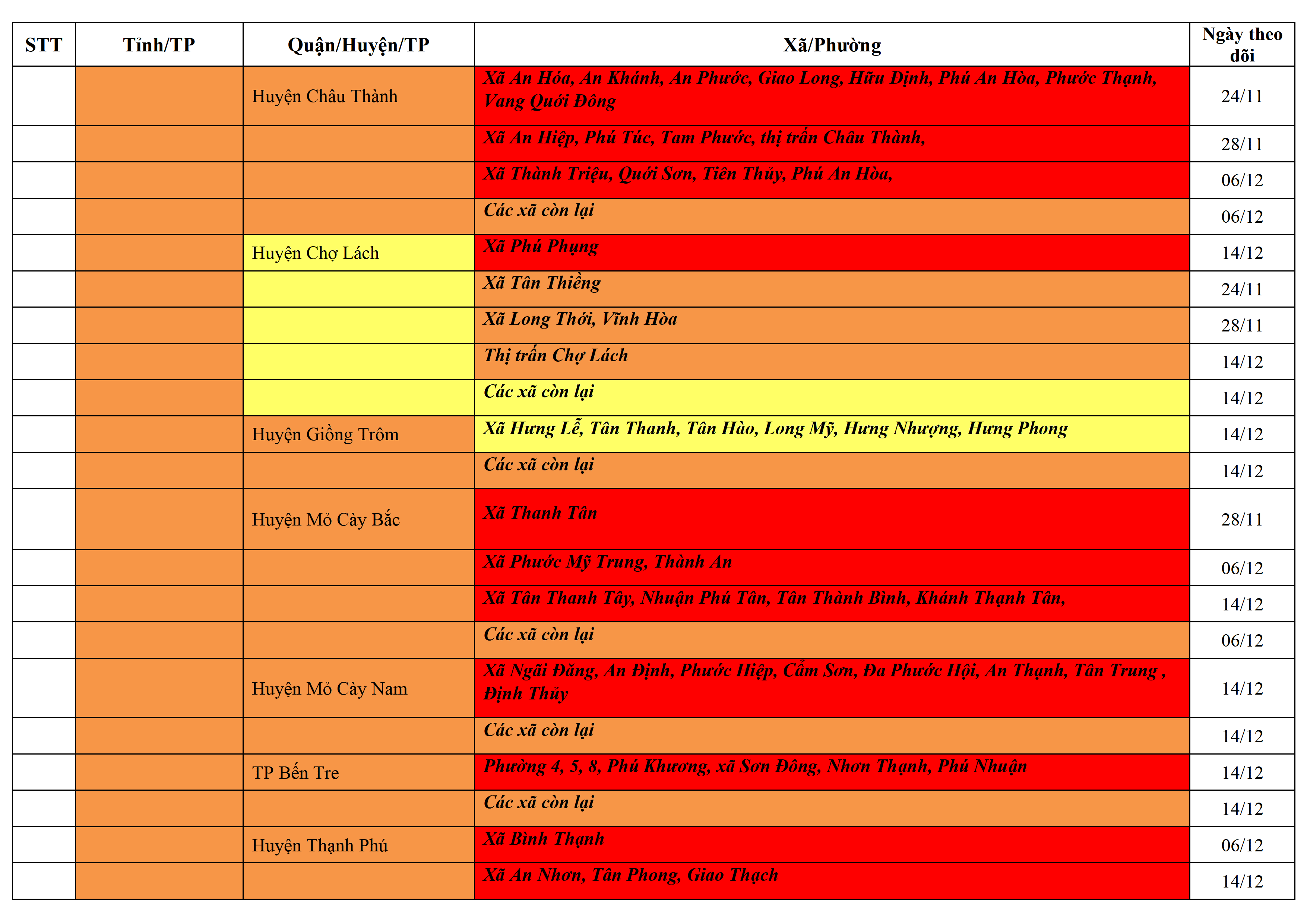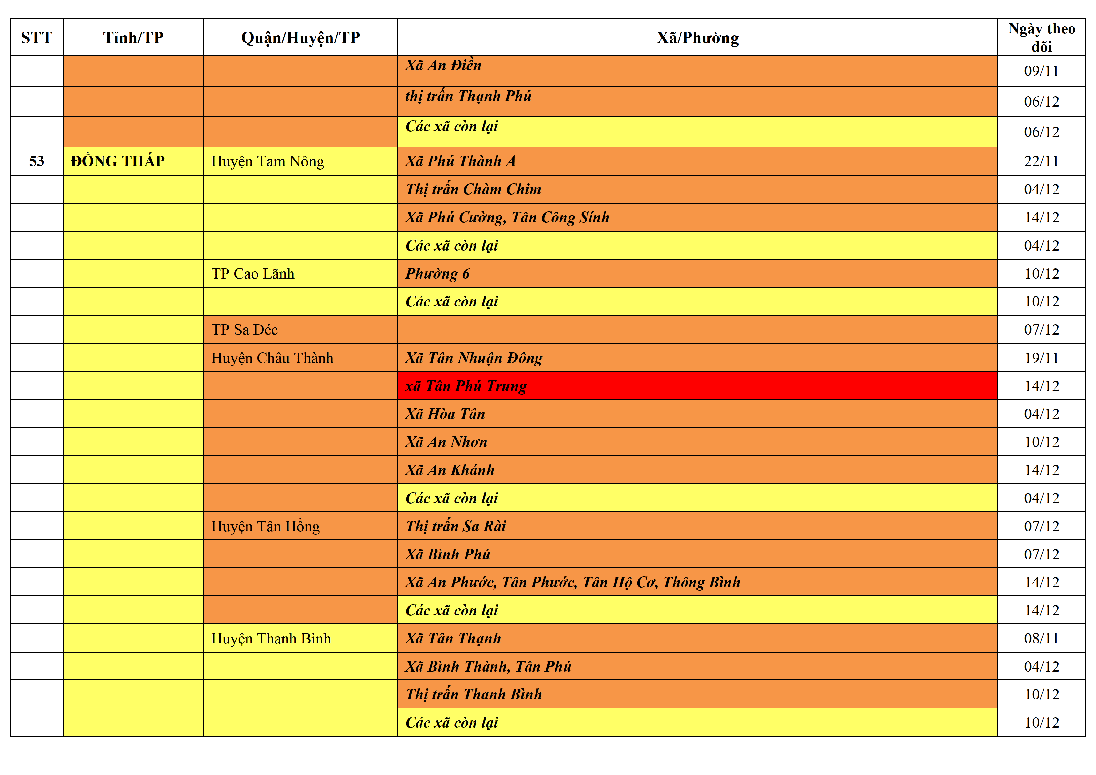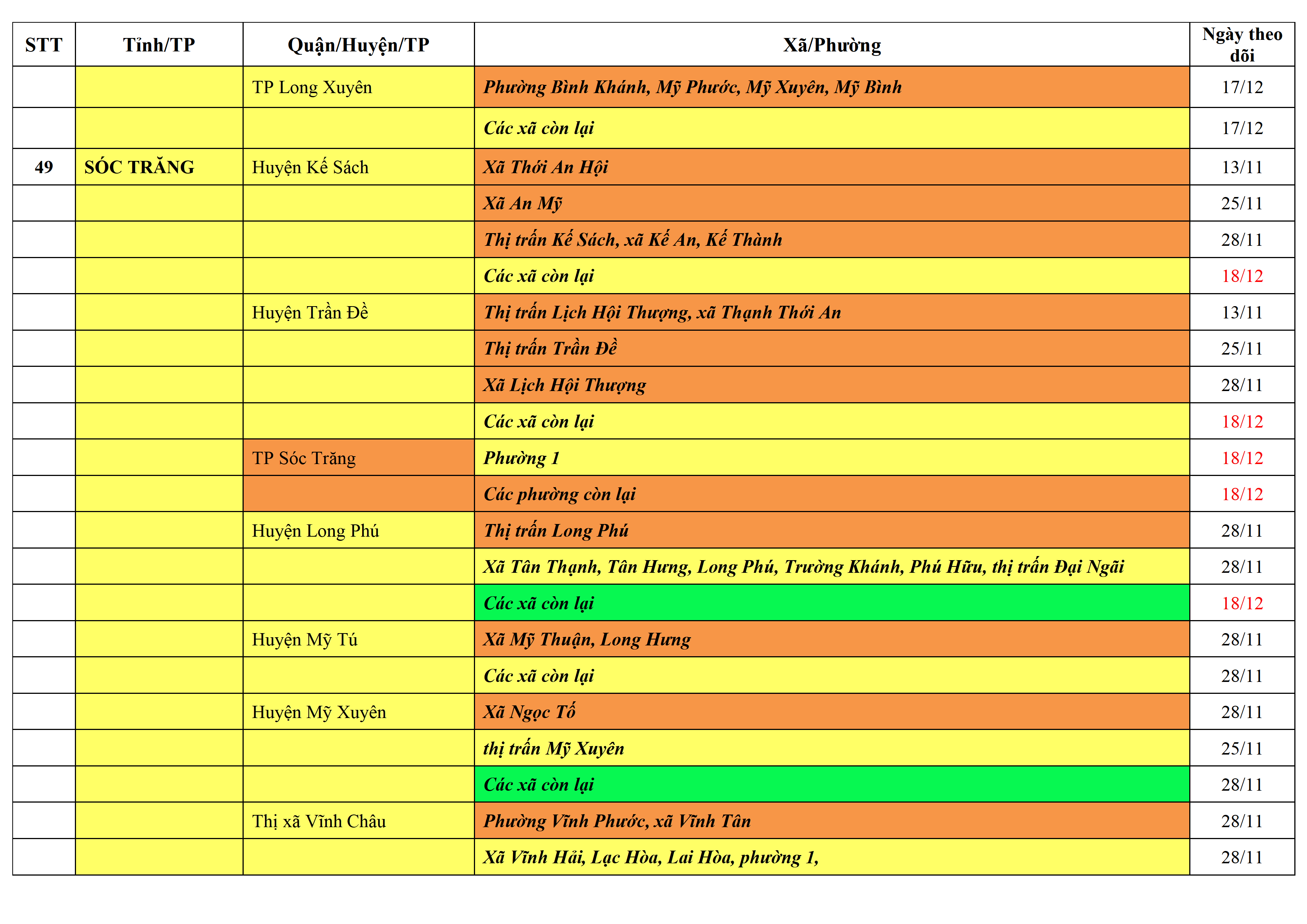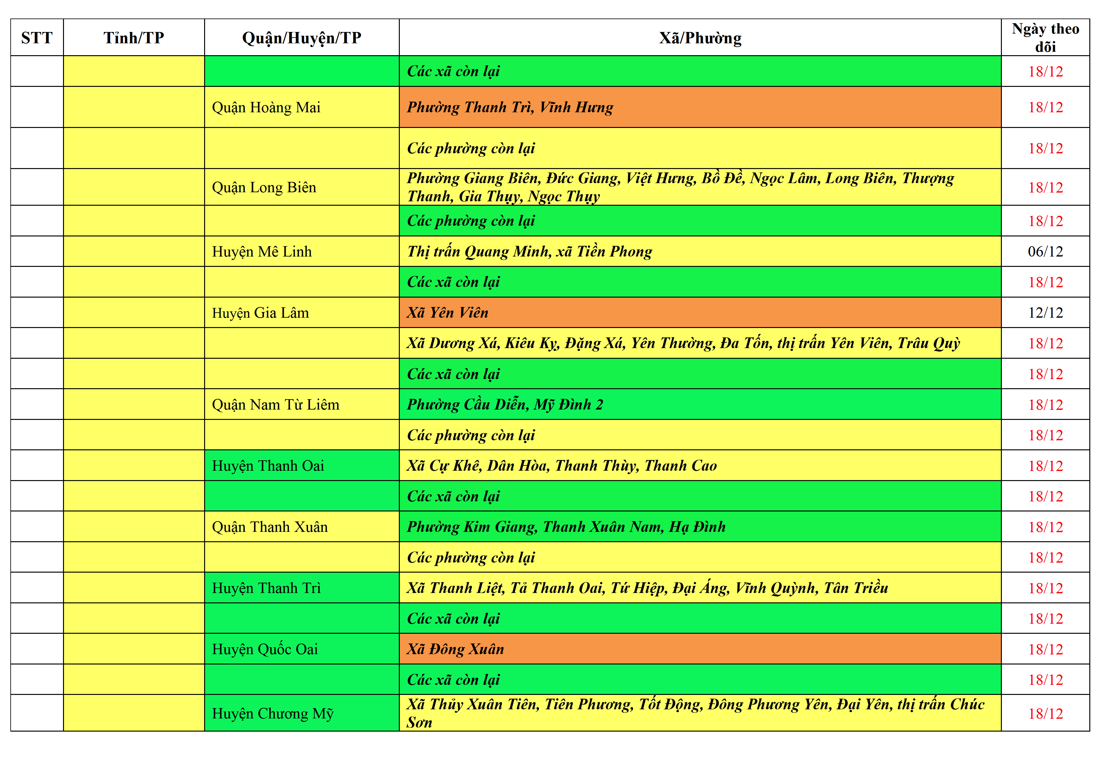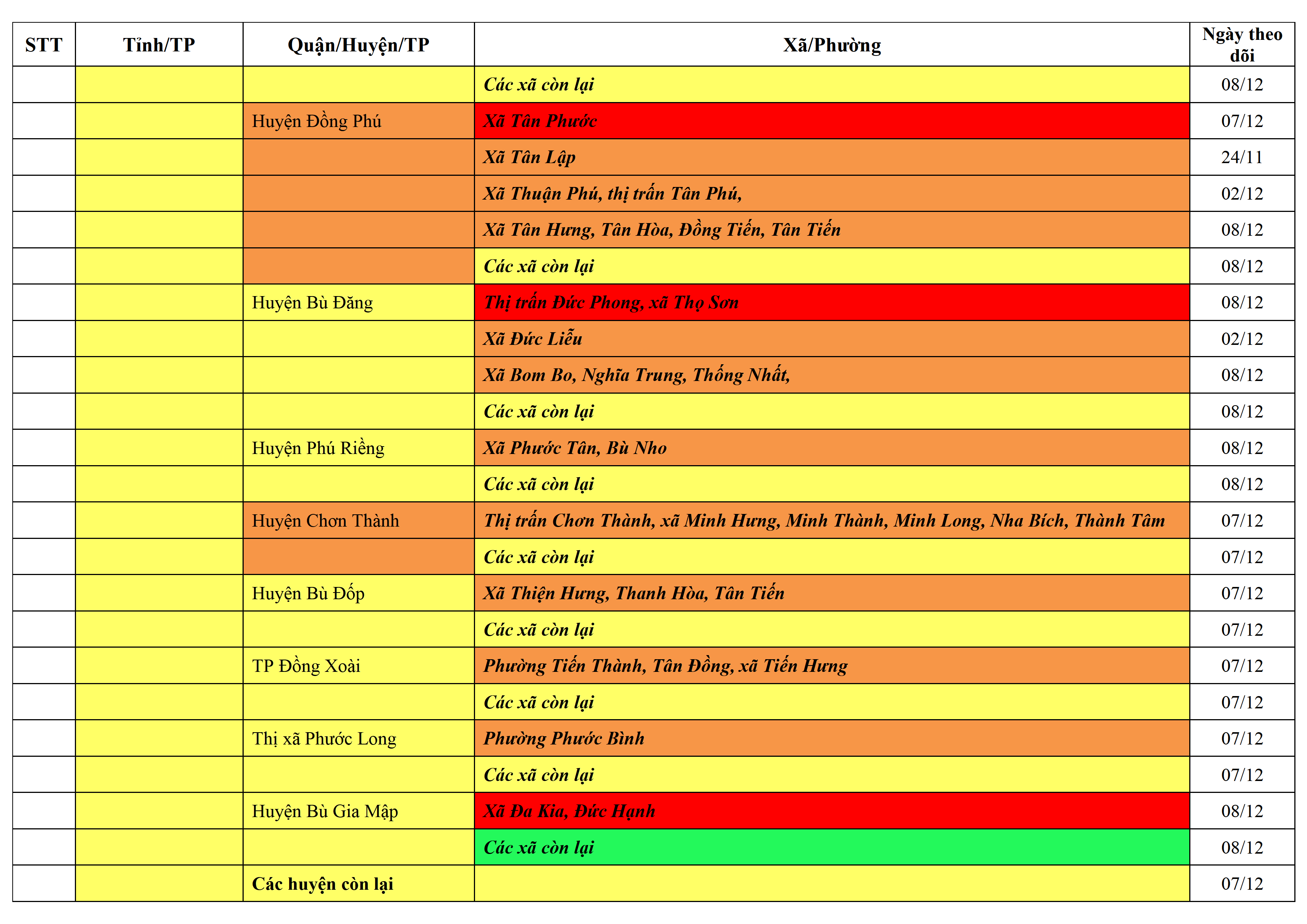 Lưu ý: Các tỉnh, thành phố không có tên trong bảng màu, đi lại bình thường, tuân thủ các biện pháp phòng chống dịch theo chỉ đạo của Bộ Y tế; khai báo y tế, thực hiện nghiêm 5K.