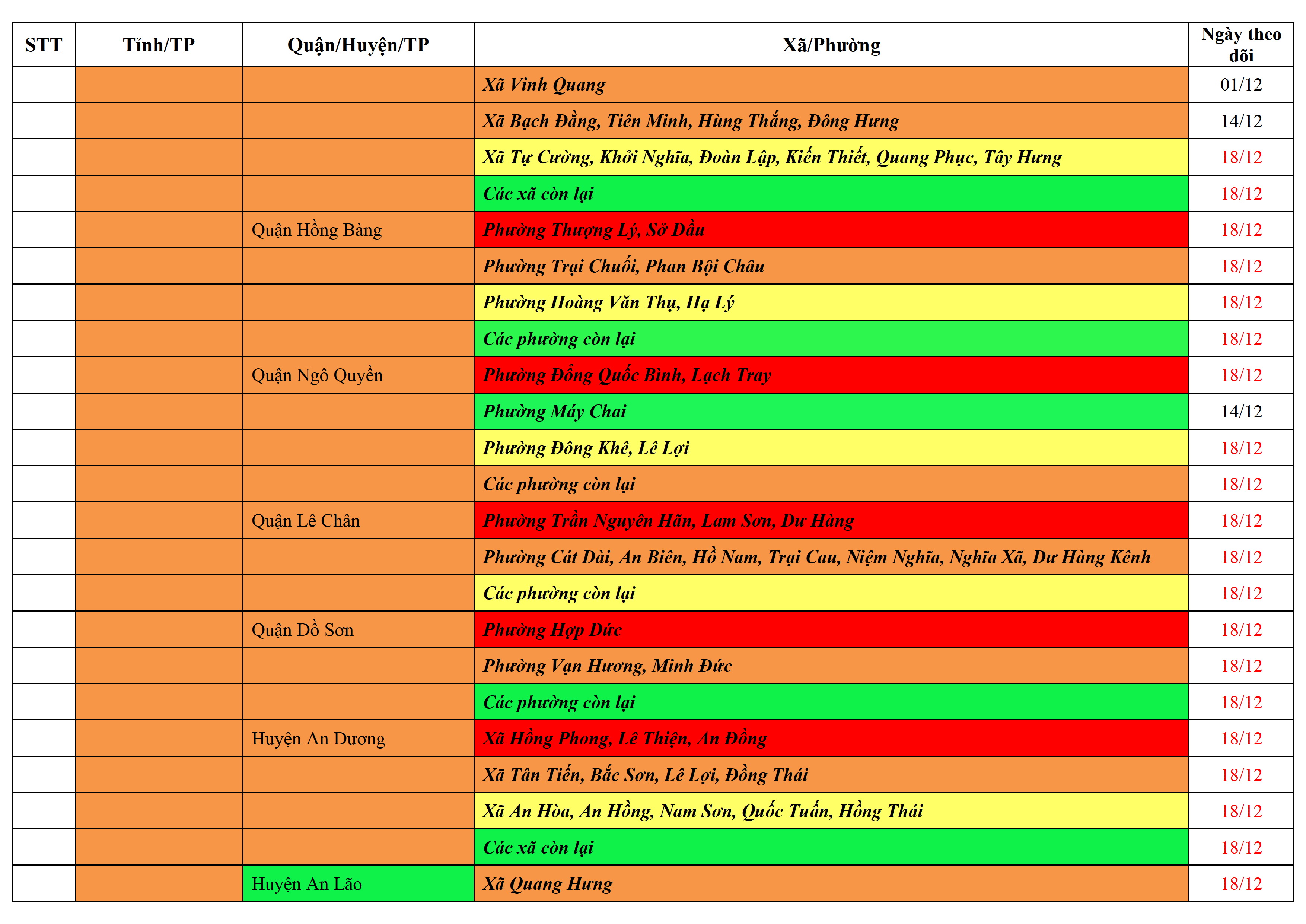 2. Đối với công dân từ các địa phương về Hải Phòng, áp dụng theo bảng hướng dẫn dưới đây: