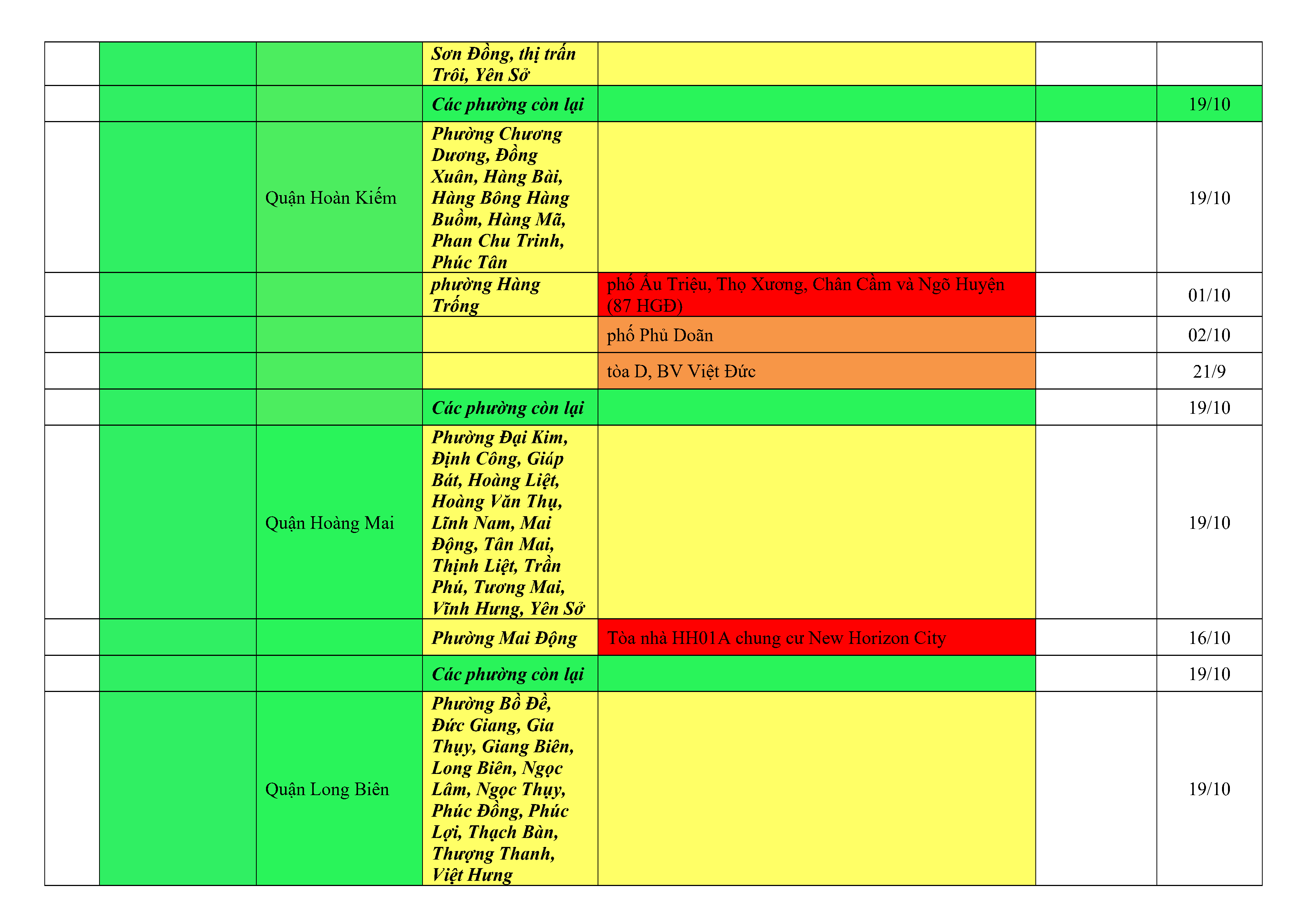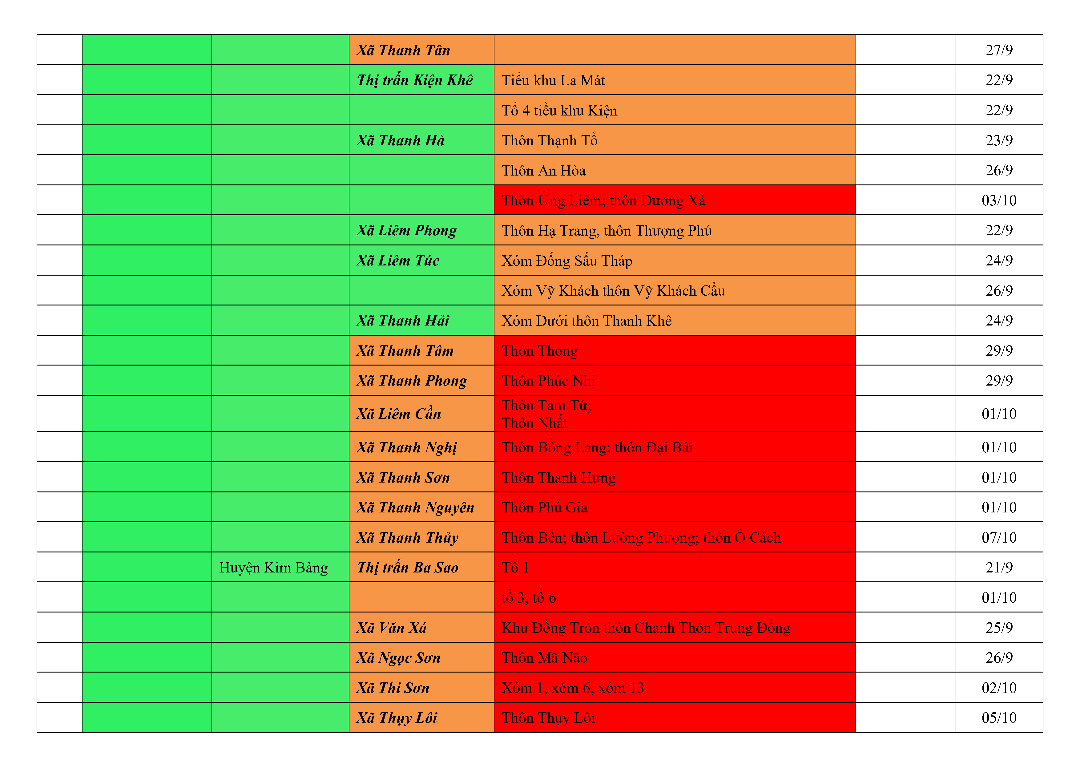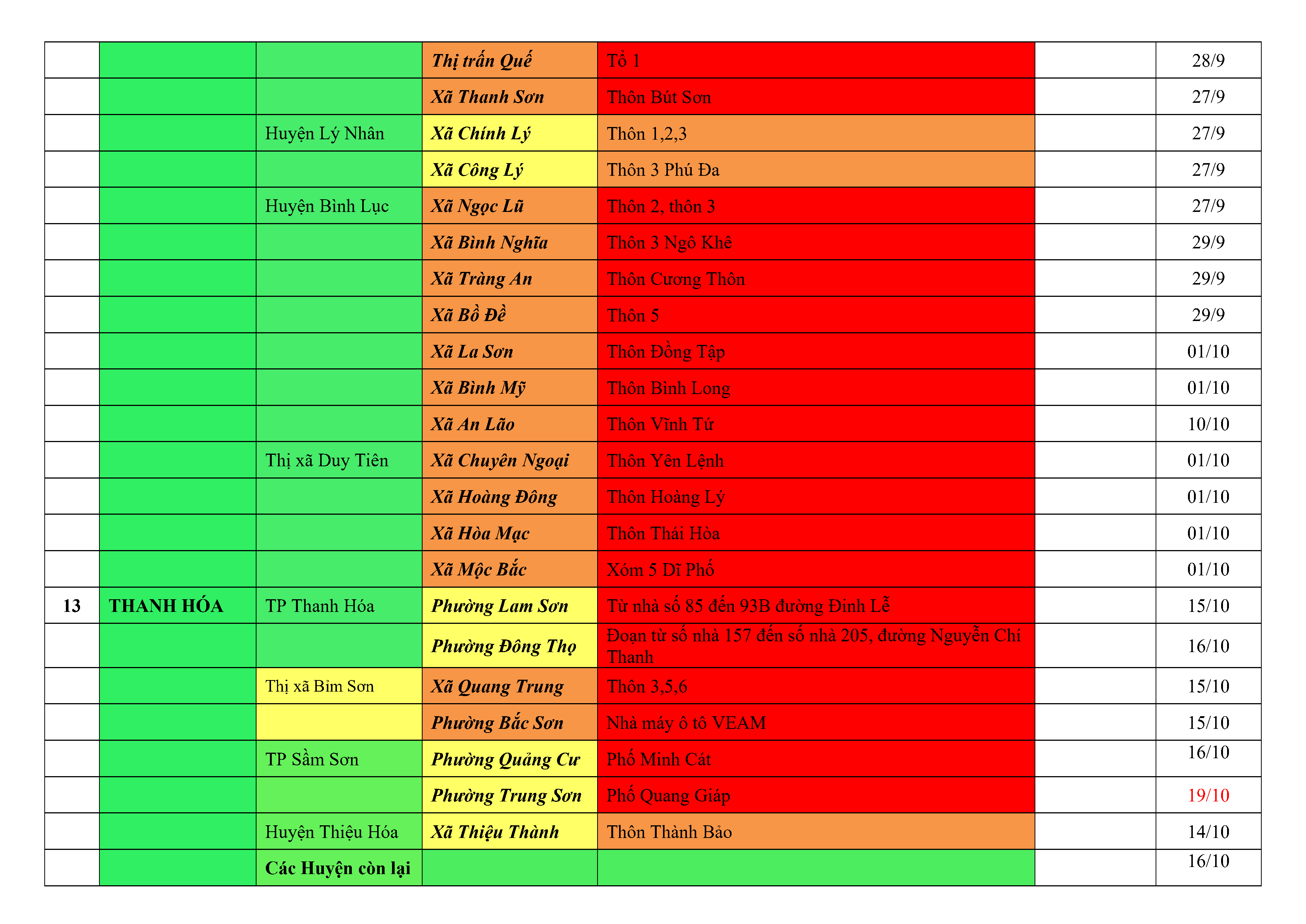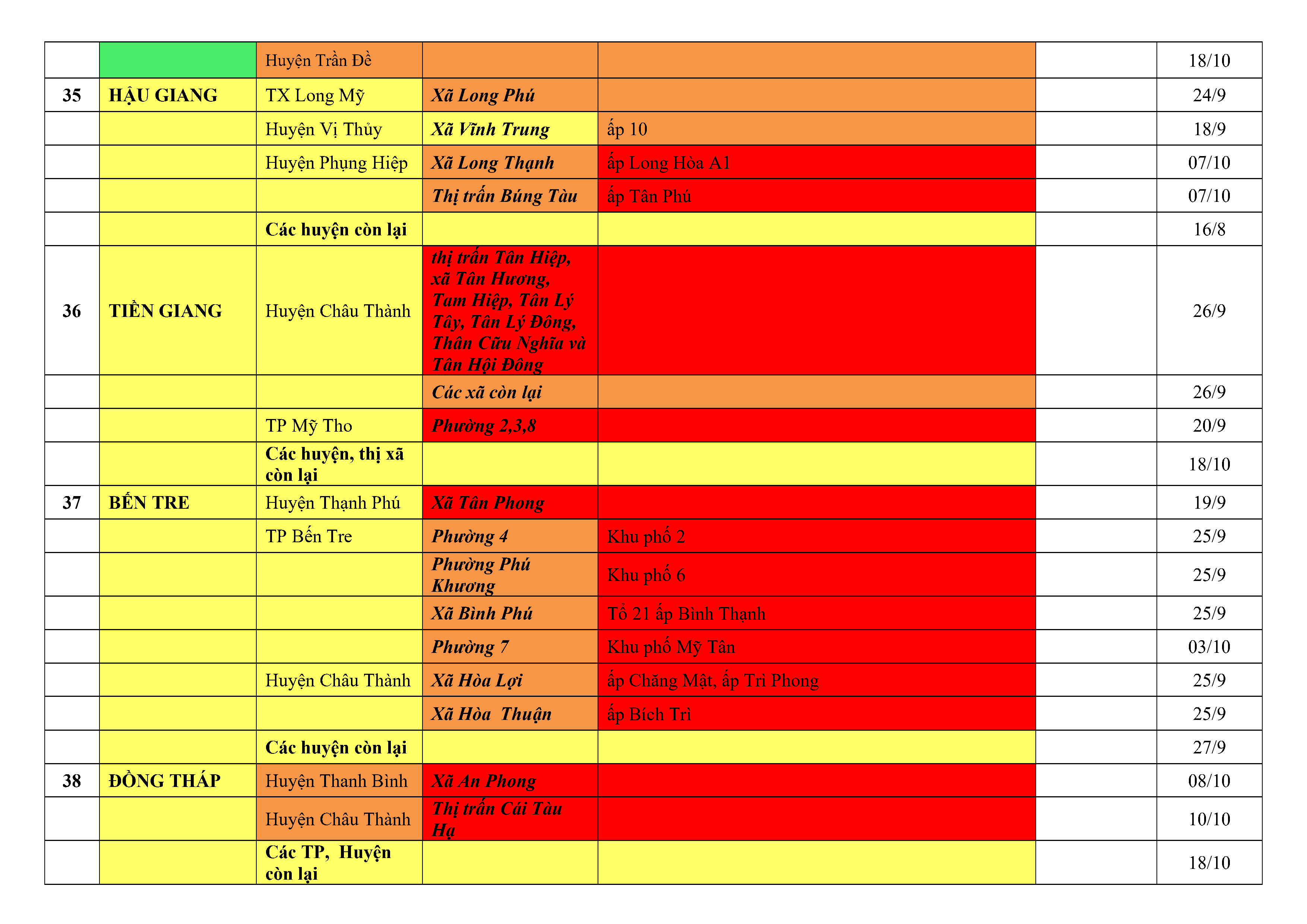 Lưu ý: Các tỉnh, thành phố không có tên trong bảng màu, đi lại bình thường, tuân thủ các biện pháp phòng chống dịch theo chỉ đạo của Bộ Y tế; khai bào y tế, thực hiện nghiêm 5K.