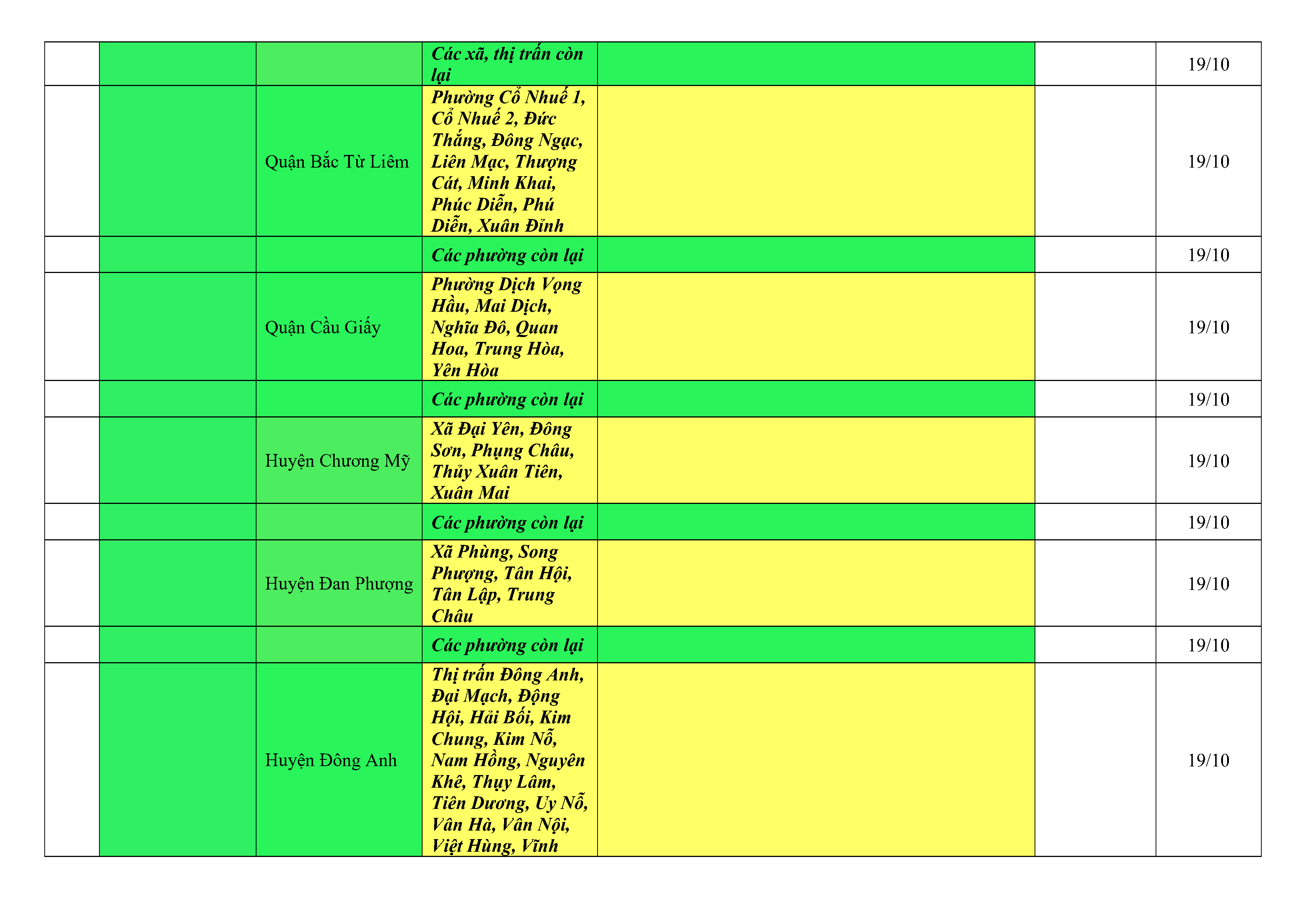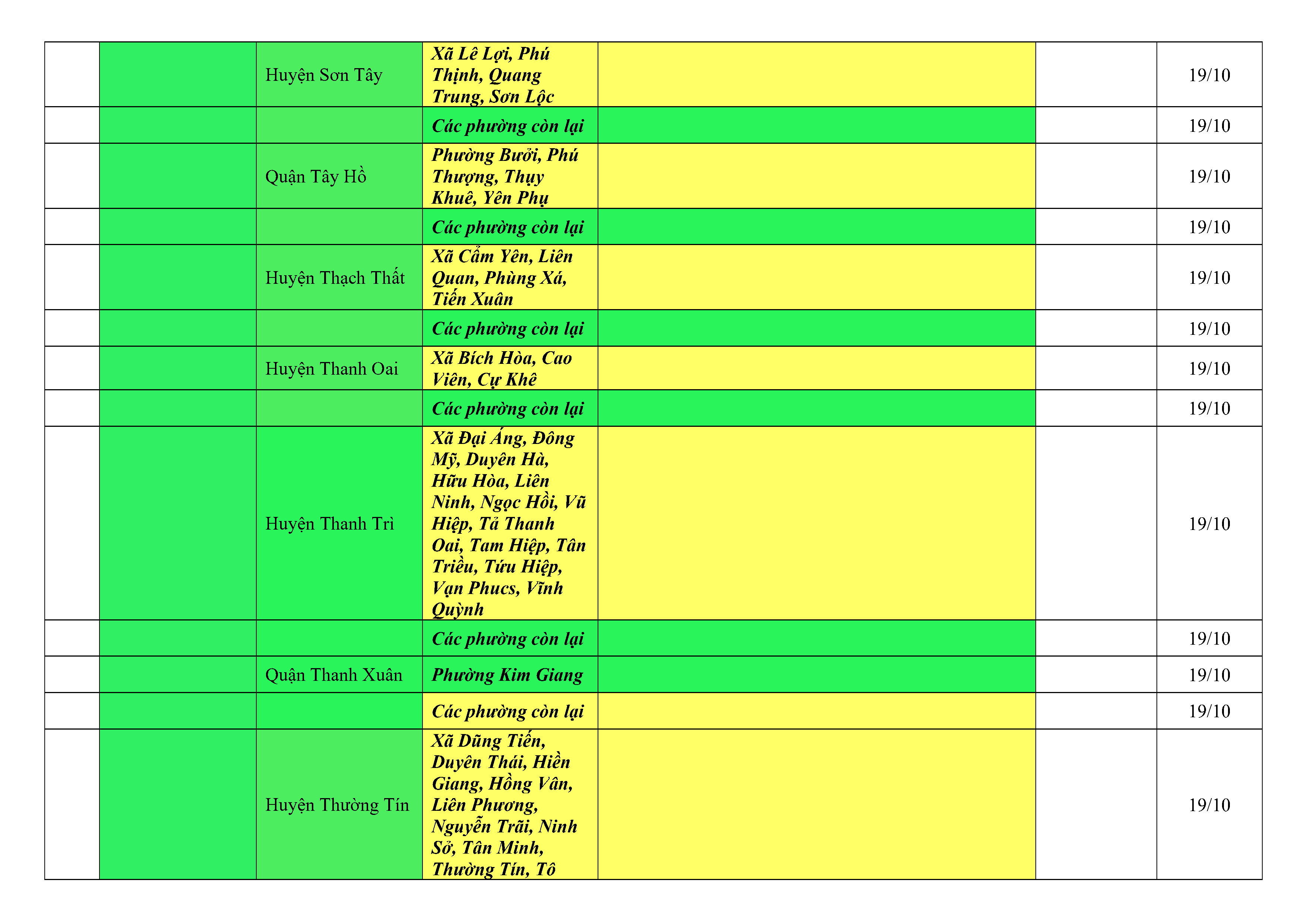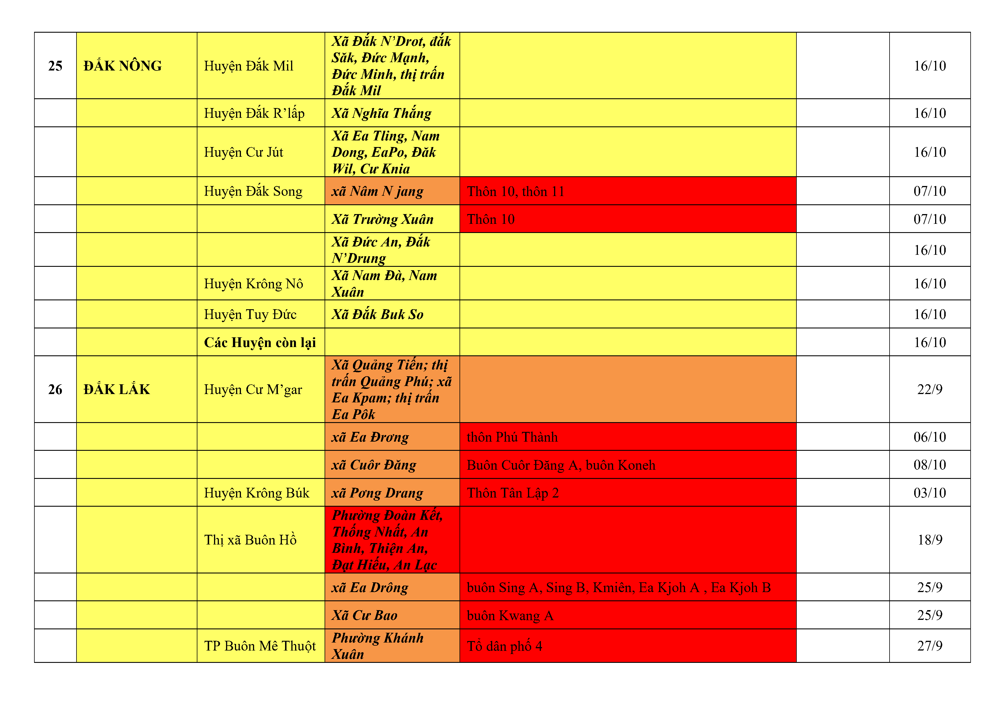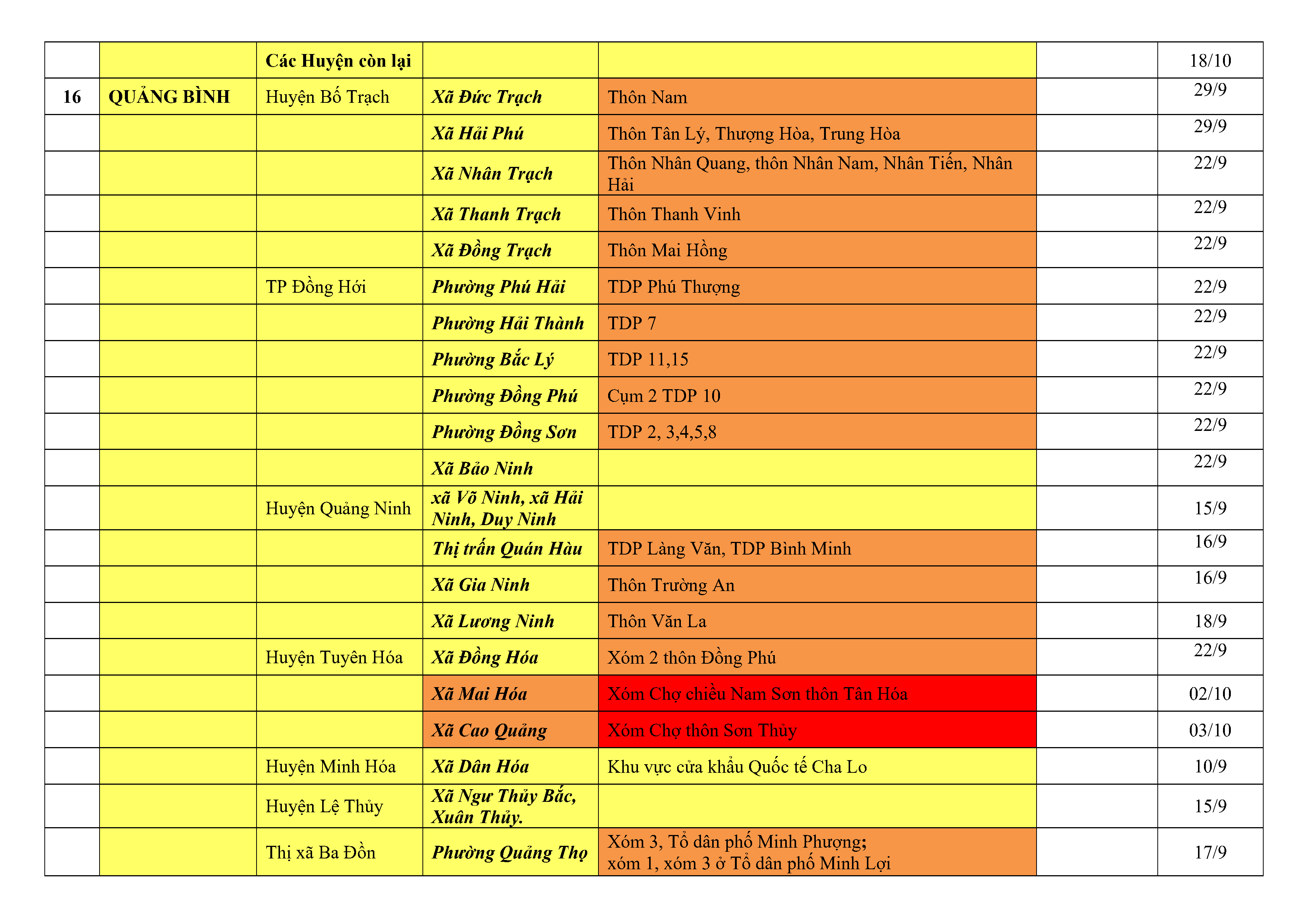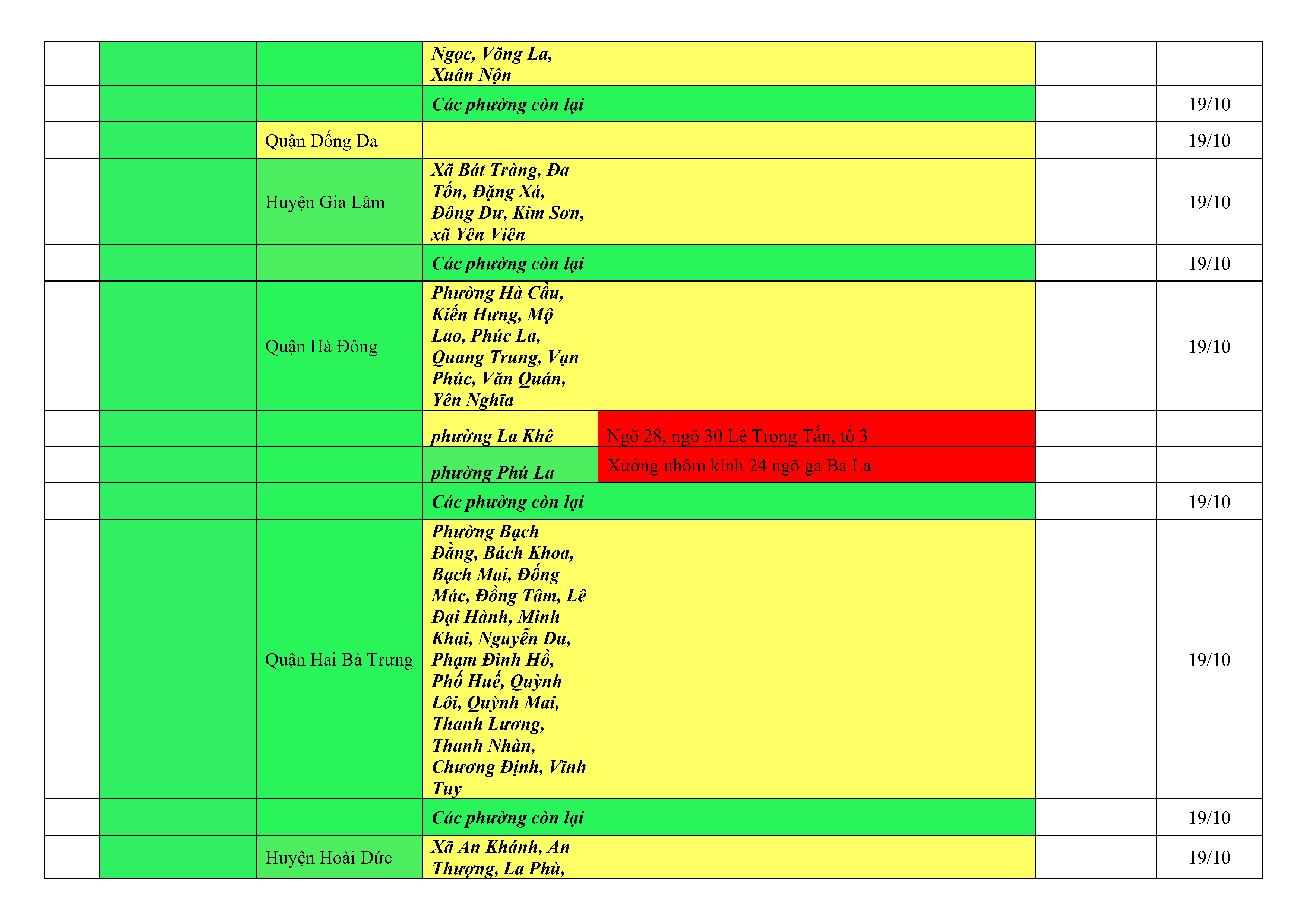 Lưu ý: Các tỉnh, thành phố không có tên trong bảng màu, đi lại bình thường, tuân thủ các biện pháp phòng chống dịch theo chỉ đạo của Bộ Y tế; khai bào y tế, thực hiện nghiêm 5K.