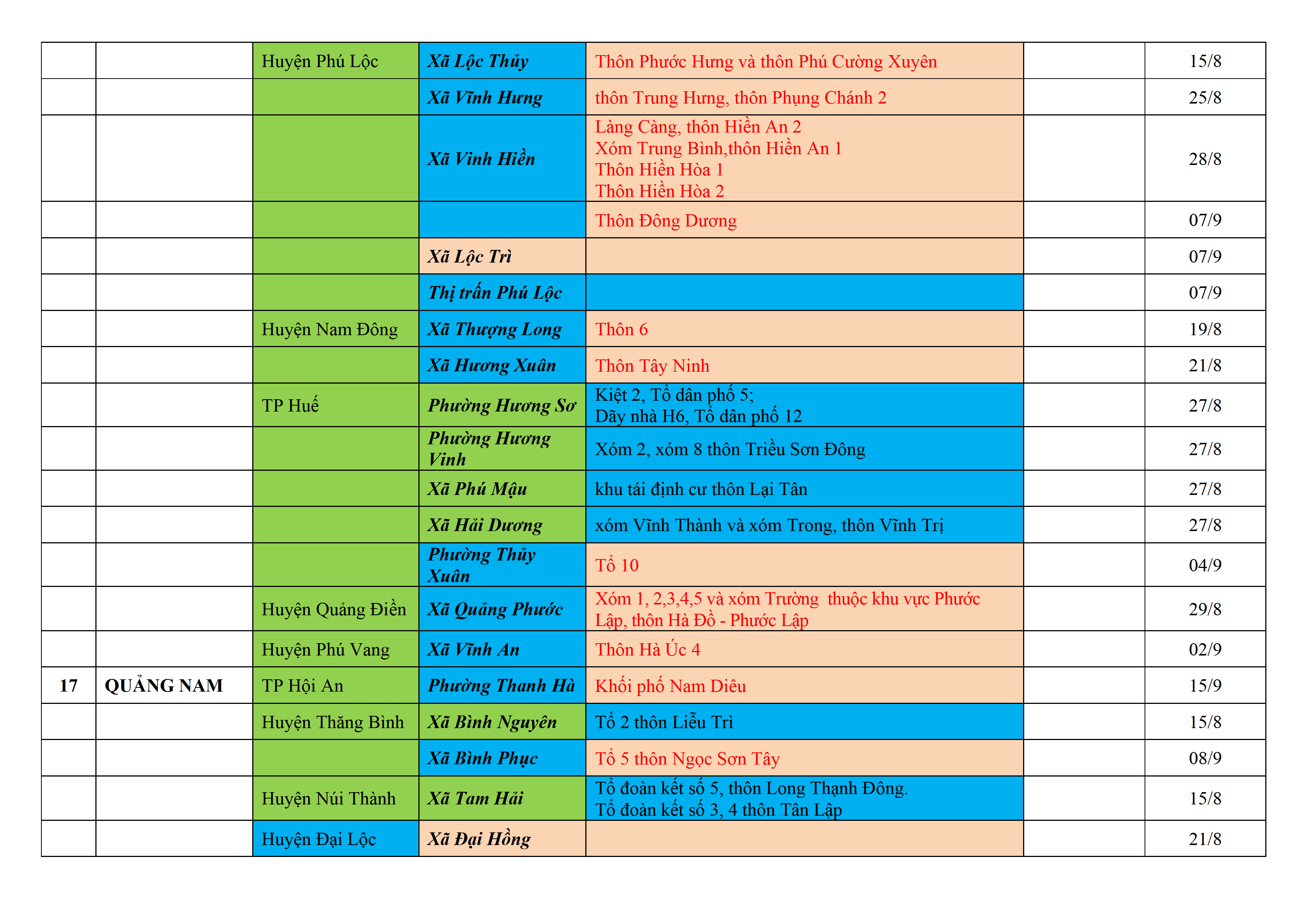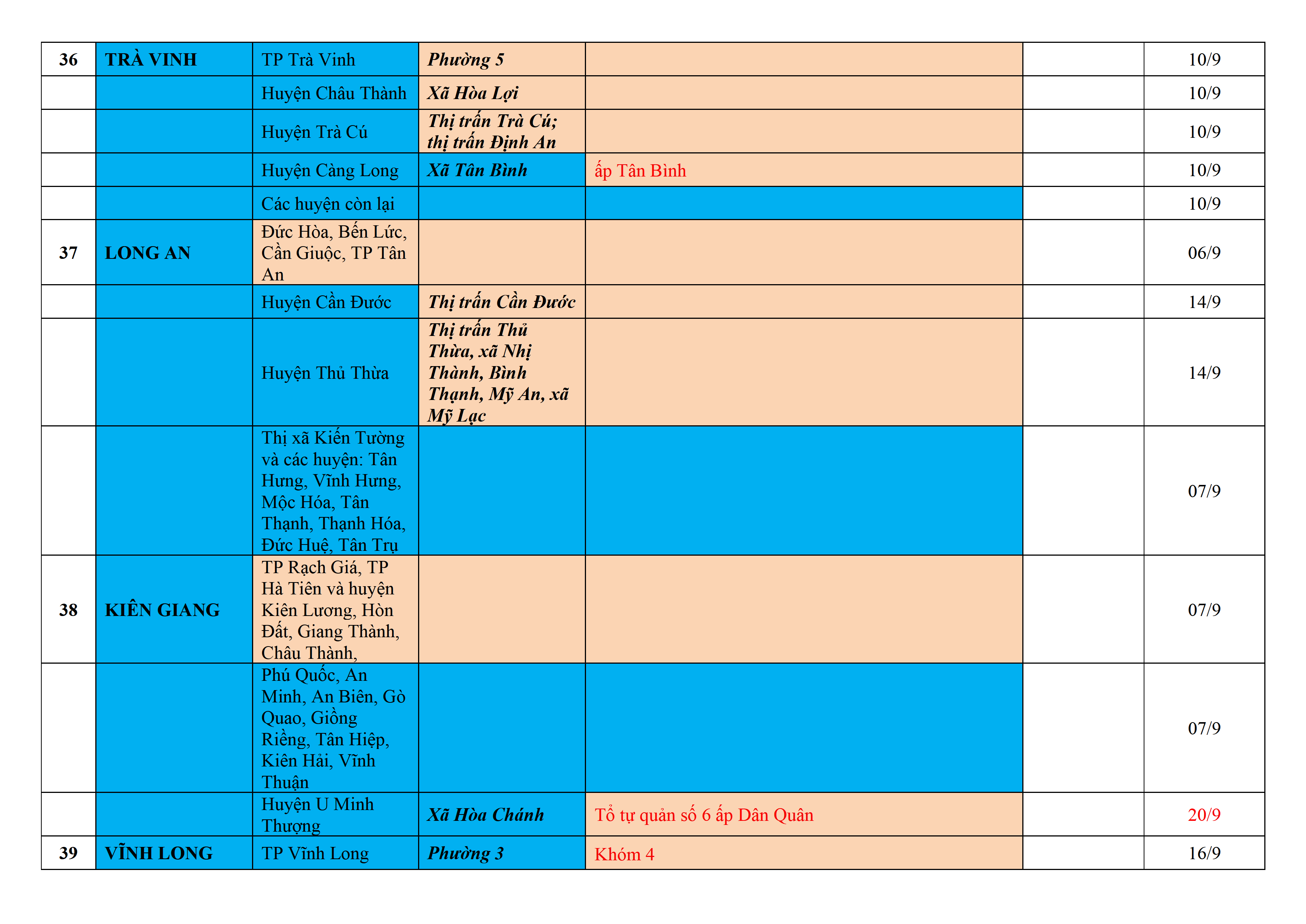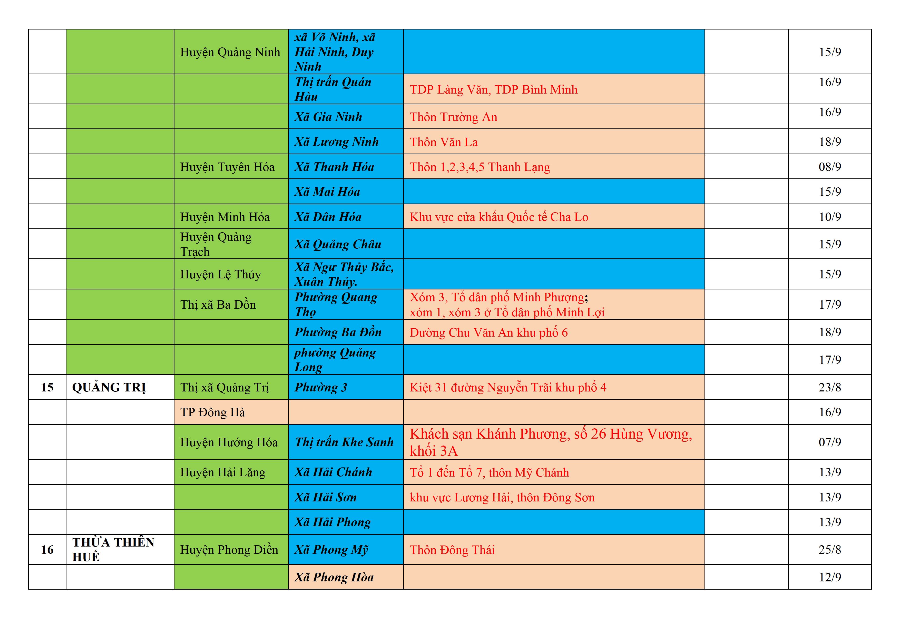 Từ 0 giờ 00 phút, ngày 15/9/2021: