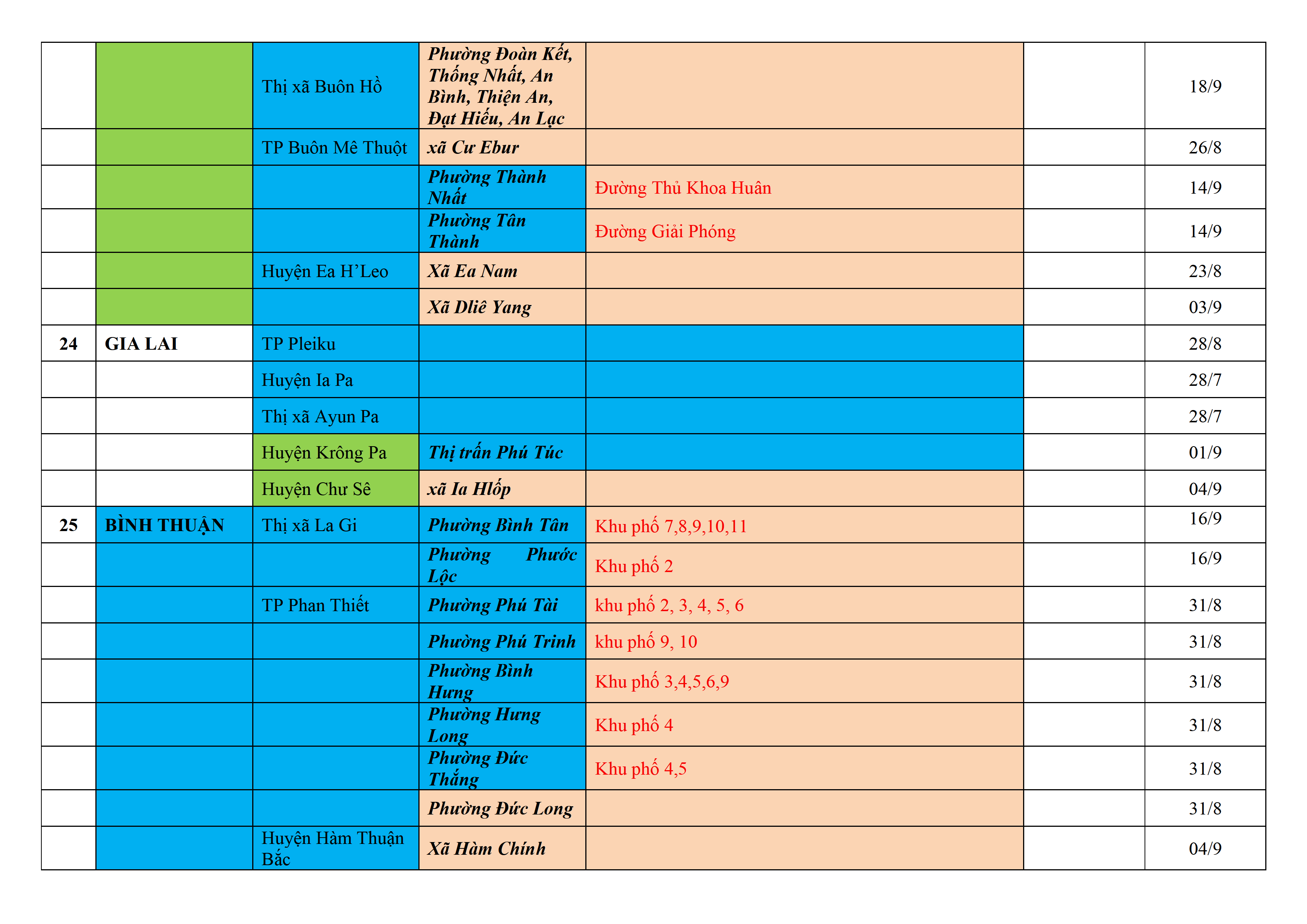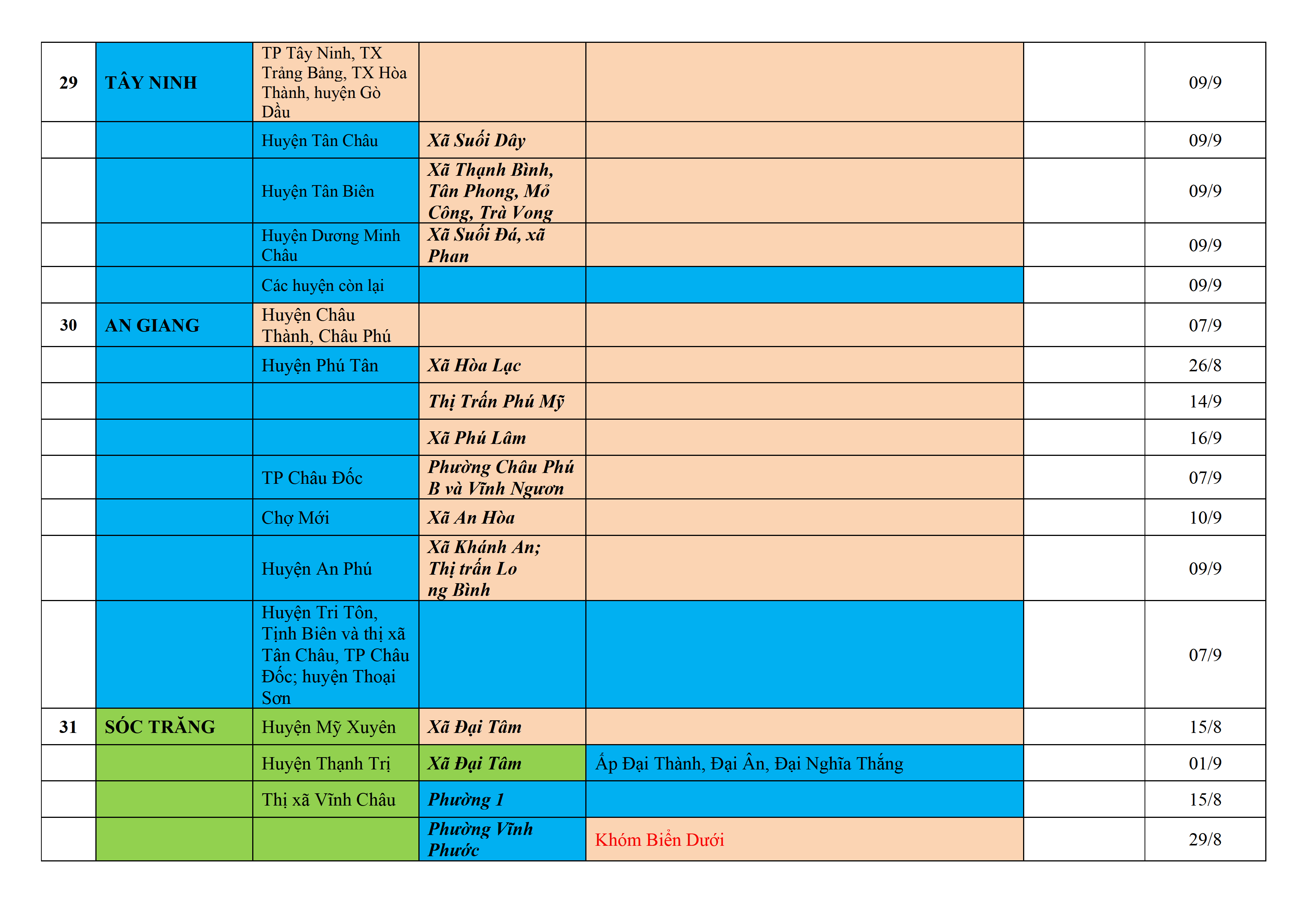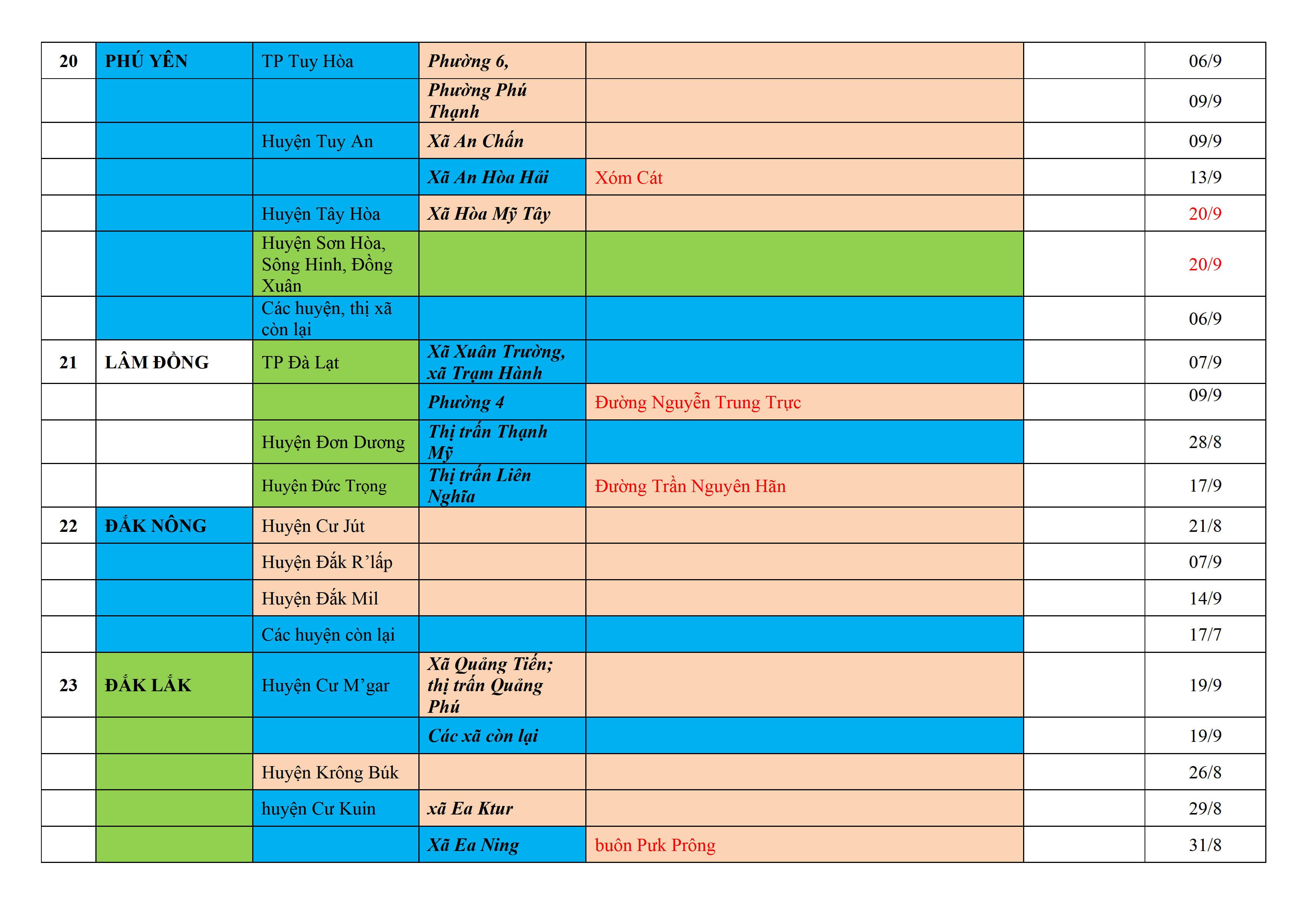 Từ 0 giờ 00 phút, ngày 15/9/2021: