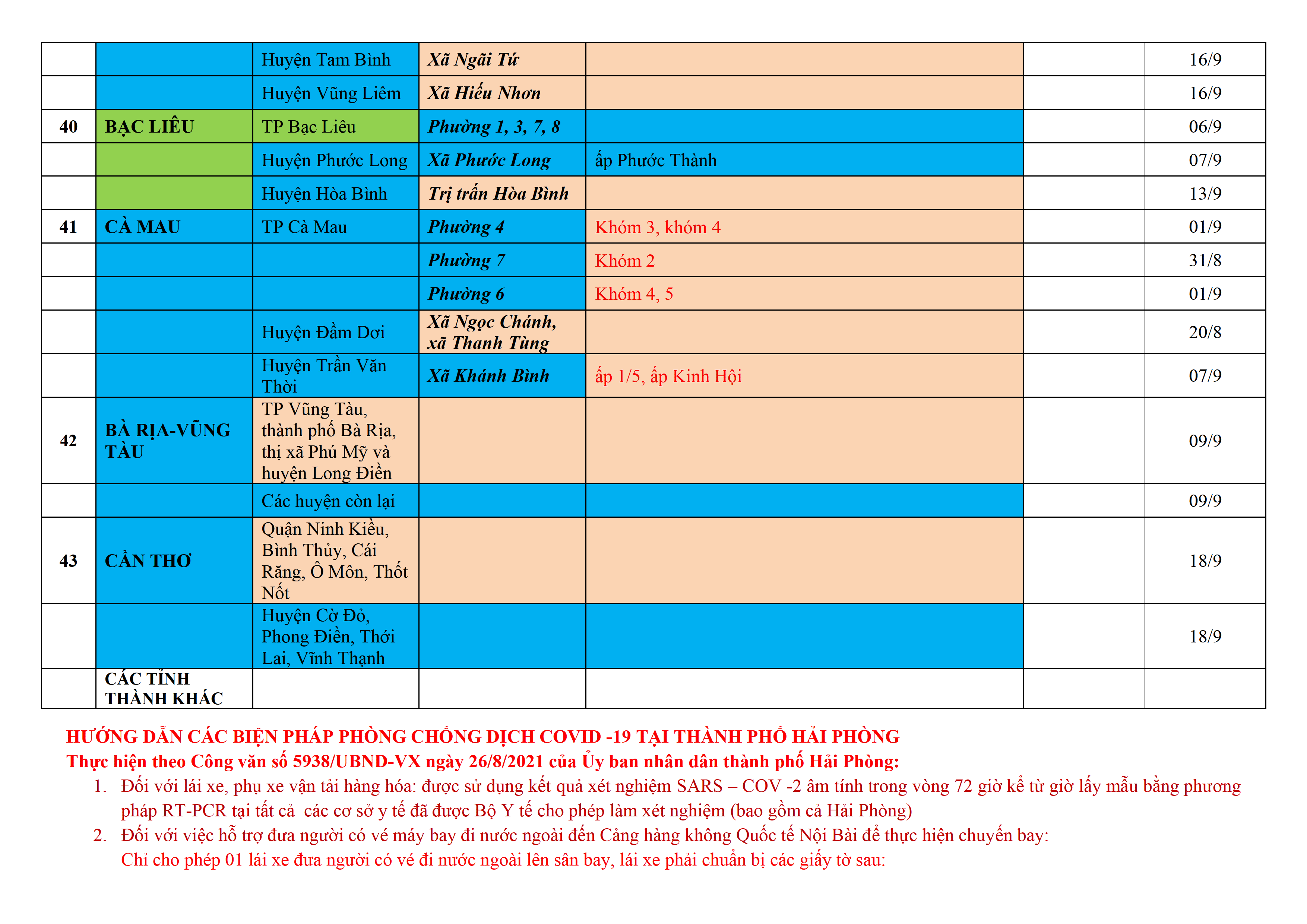 Thực hiện theo Công văn số 5938/UBND-VX ngày 26/8/2021 của Ủy ban nhân dân thành phố Hải Phòng: