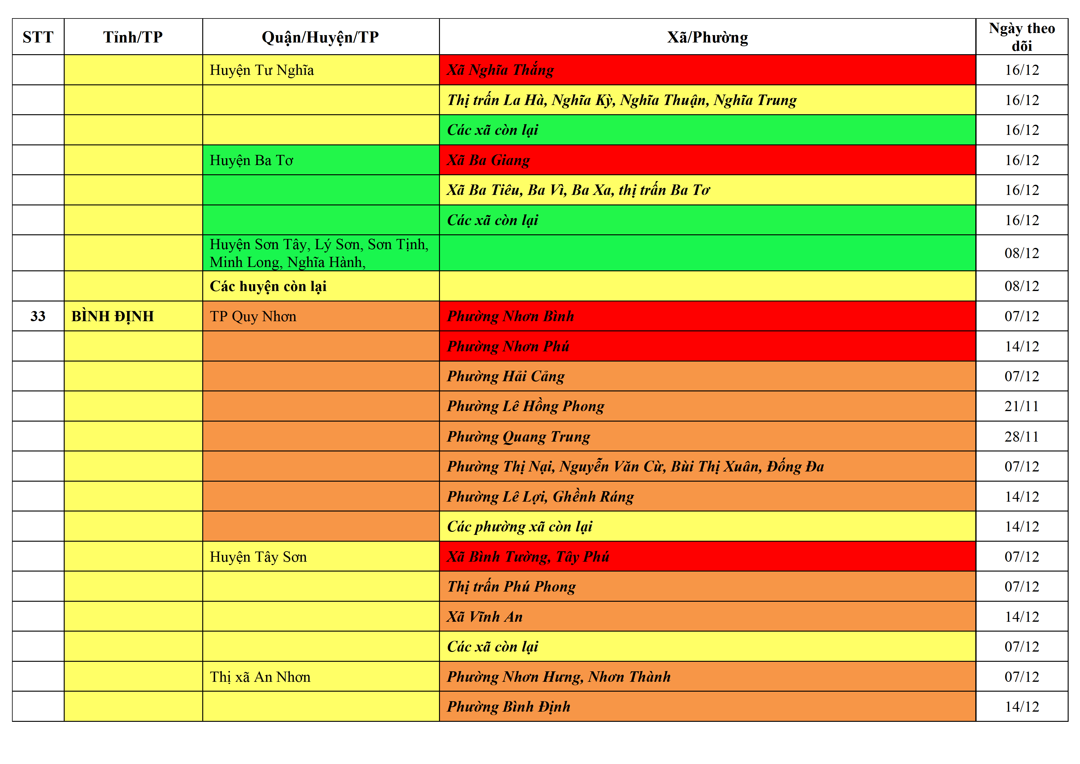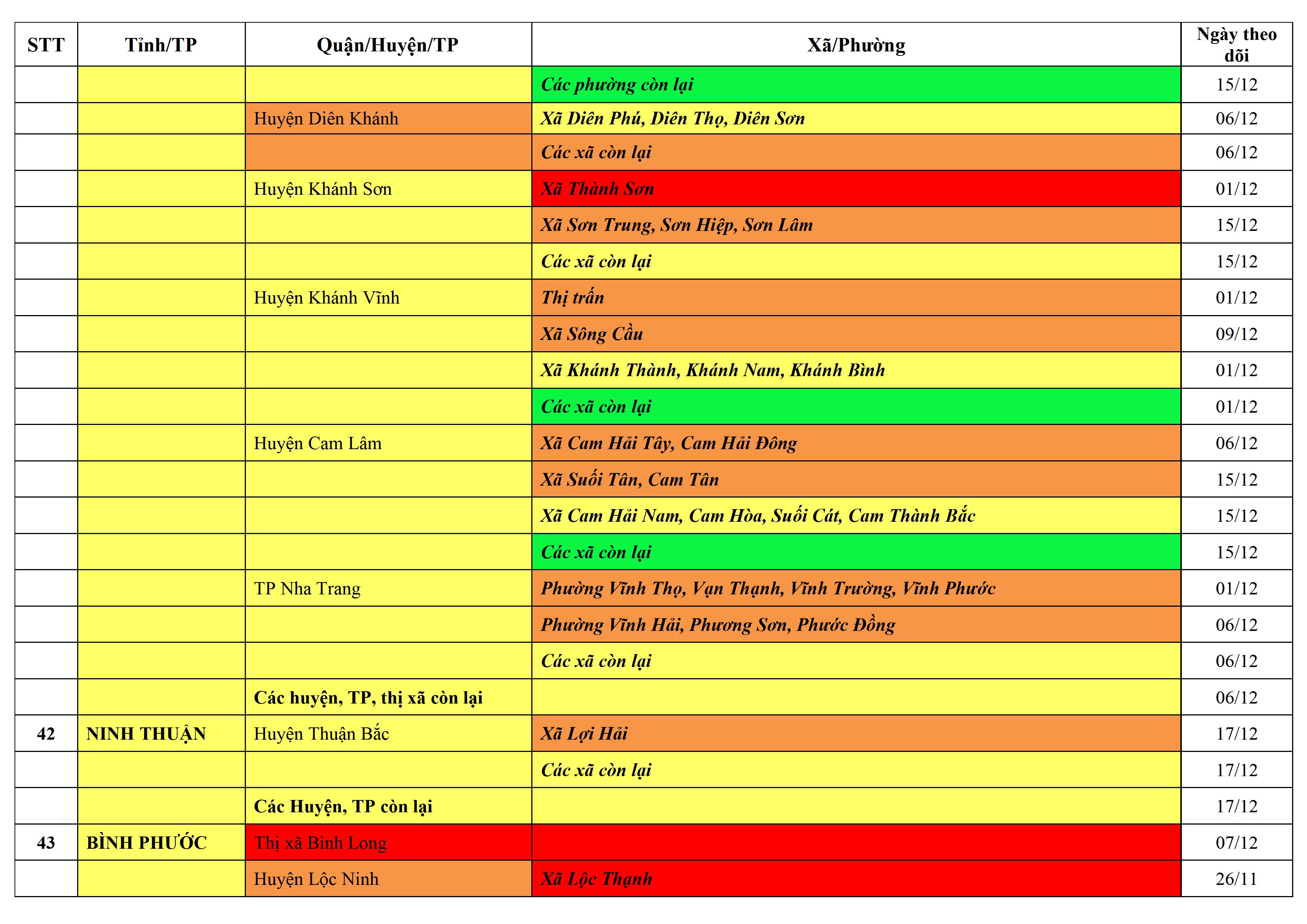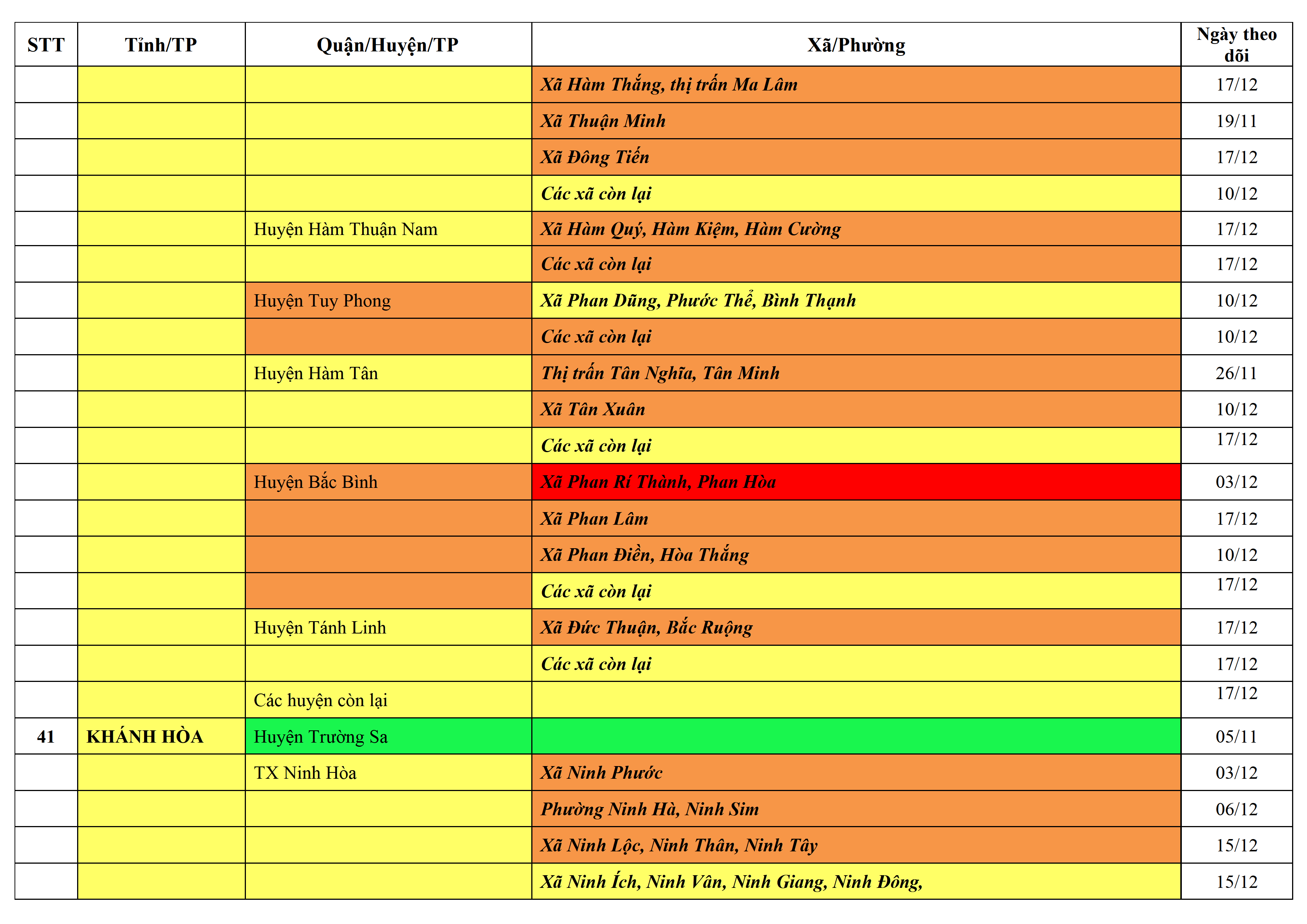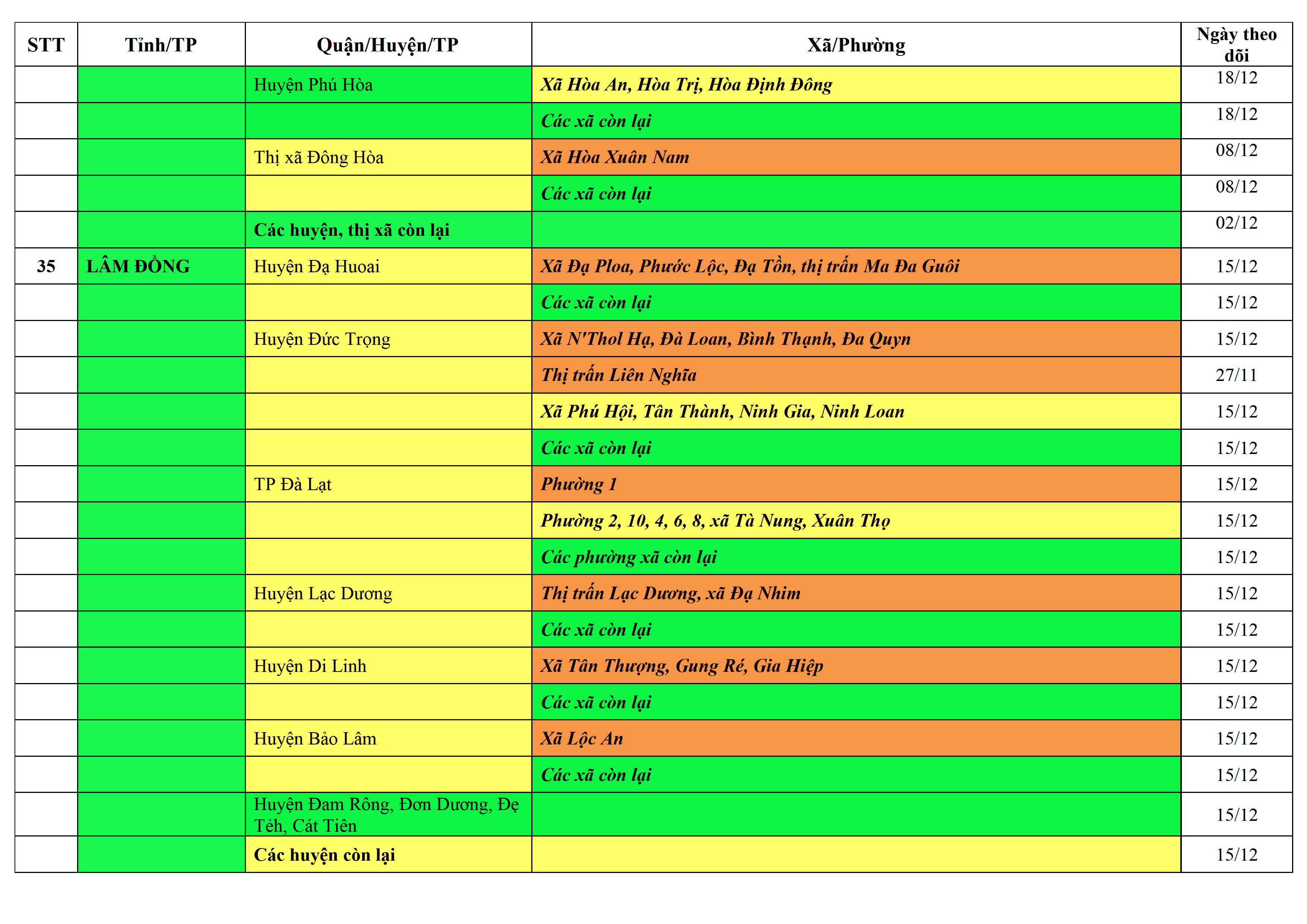 Lưu ý: Các tỉnh, thành phố không có tên trong bảng màu, đi lại bình thường, tuân thủ các biện pháp phòng chống dịch theo chỉ đạo của Bộ Y tế; khai báo y tế, thực hiện nghiêm 5K.