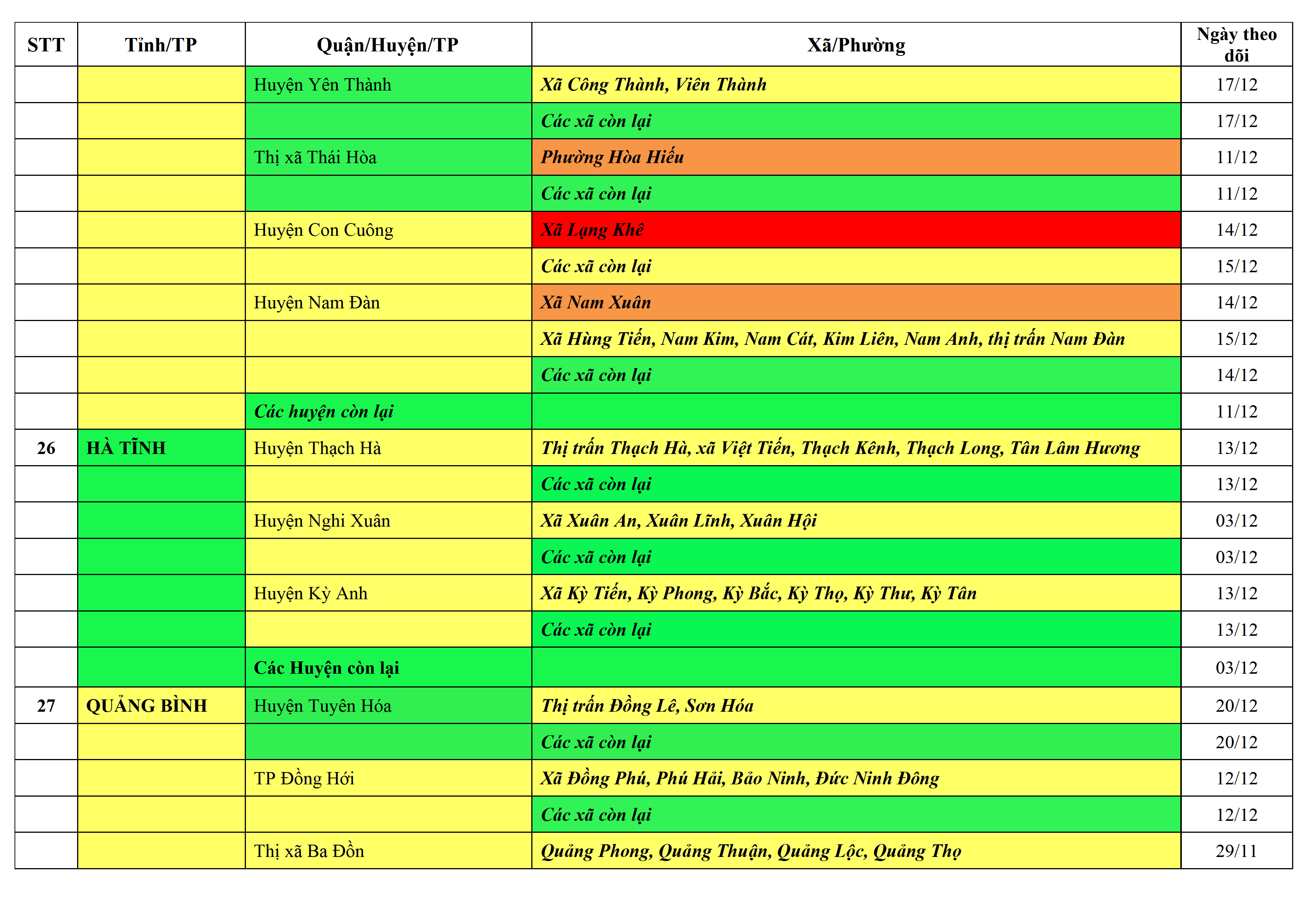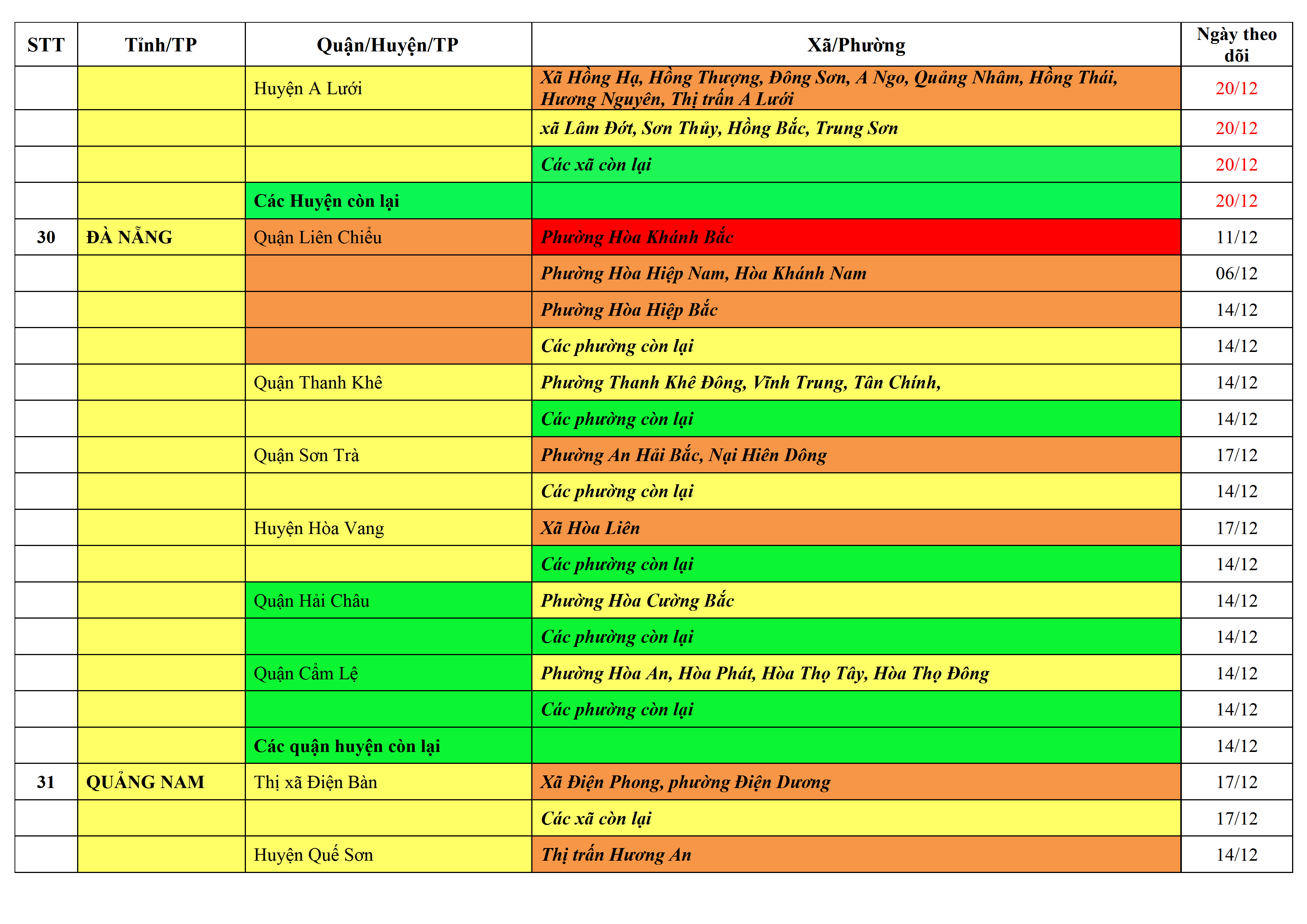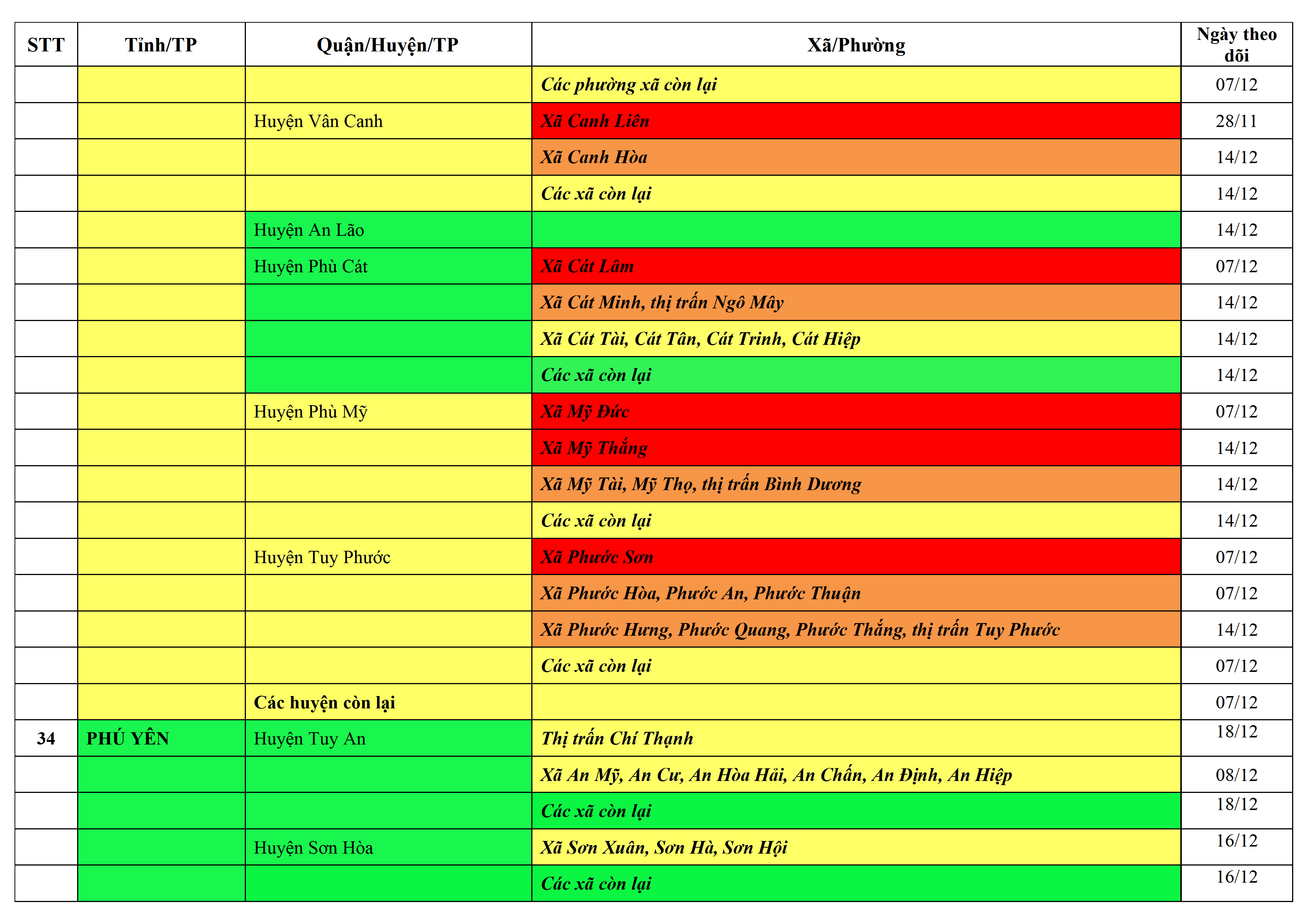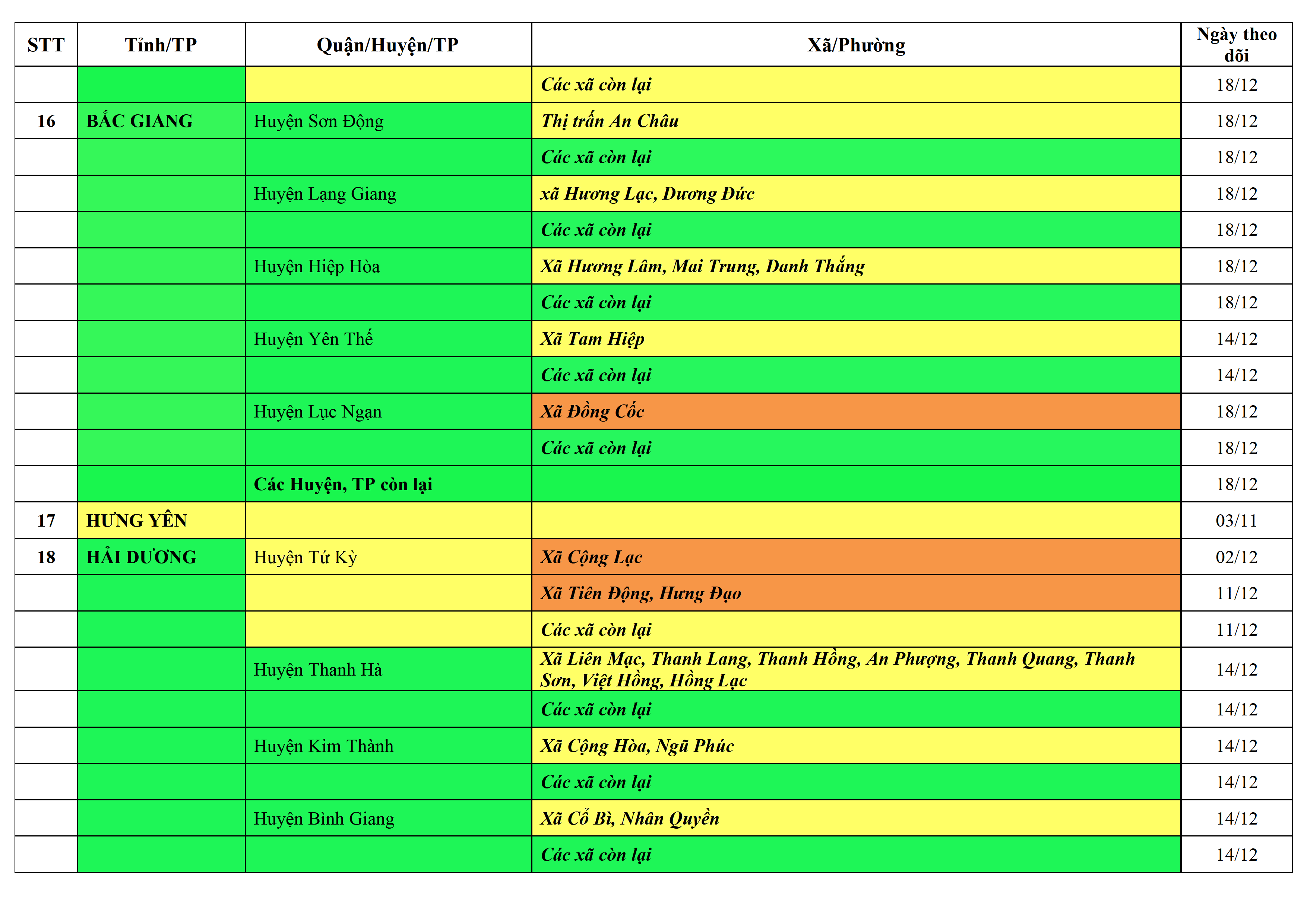 Lưu ý: Các tỉnh, thành phố không có tên trong bảng màu, đi lại bình thường, tuân thủ các biện pháp phòng chống dịch theo chỉ đạo của Bộ Y tế; khai báo y tế, thực hiện nghiêm 5K.