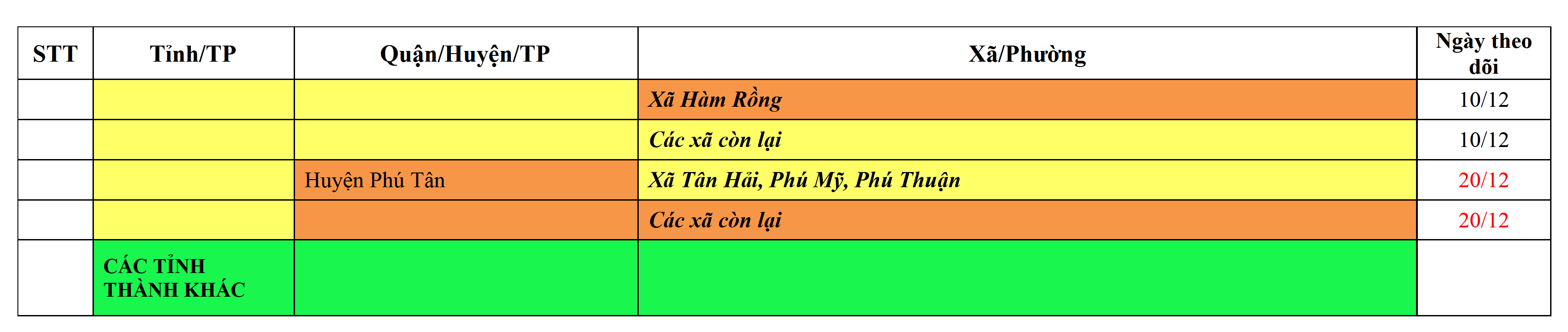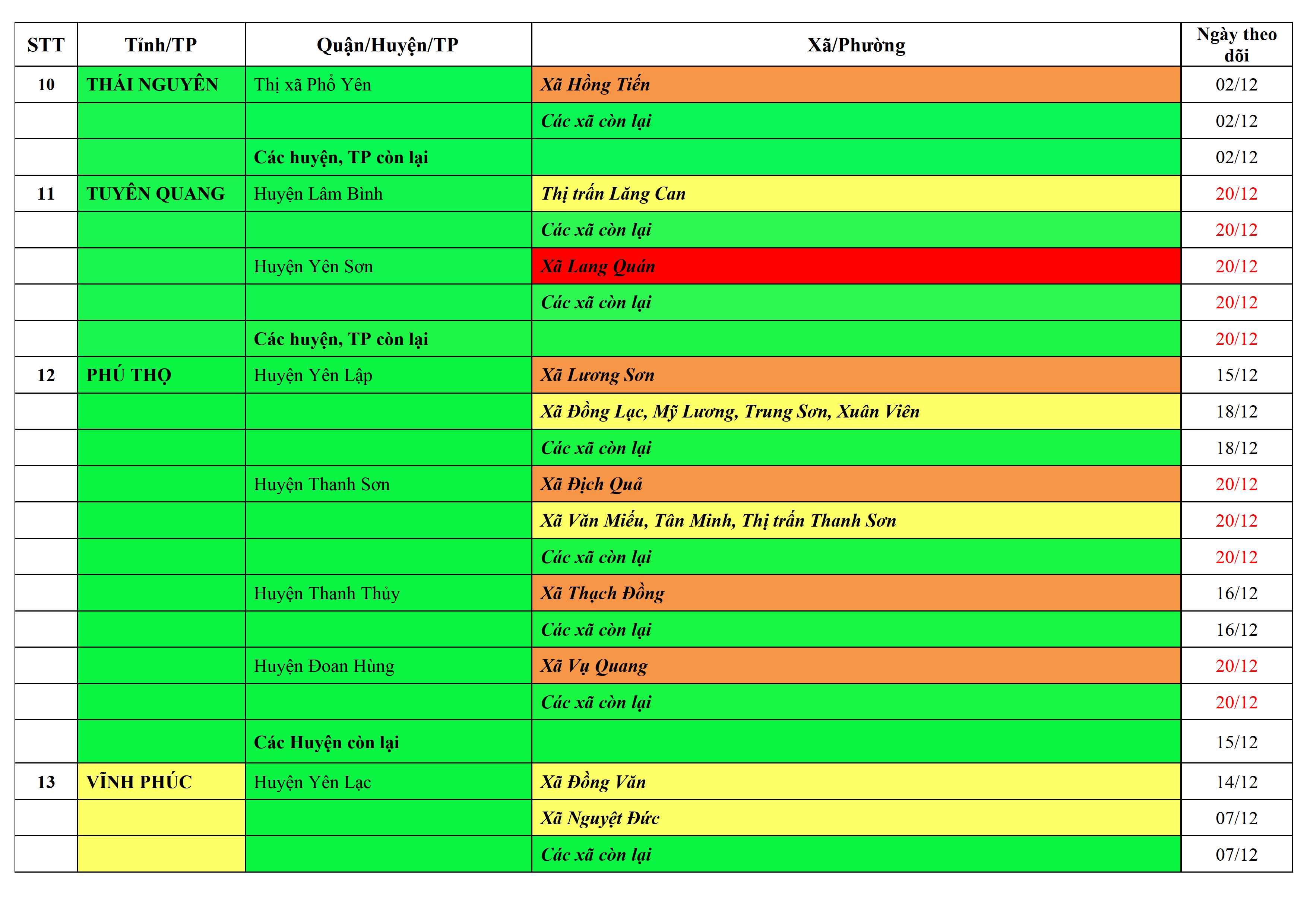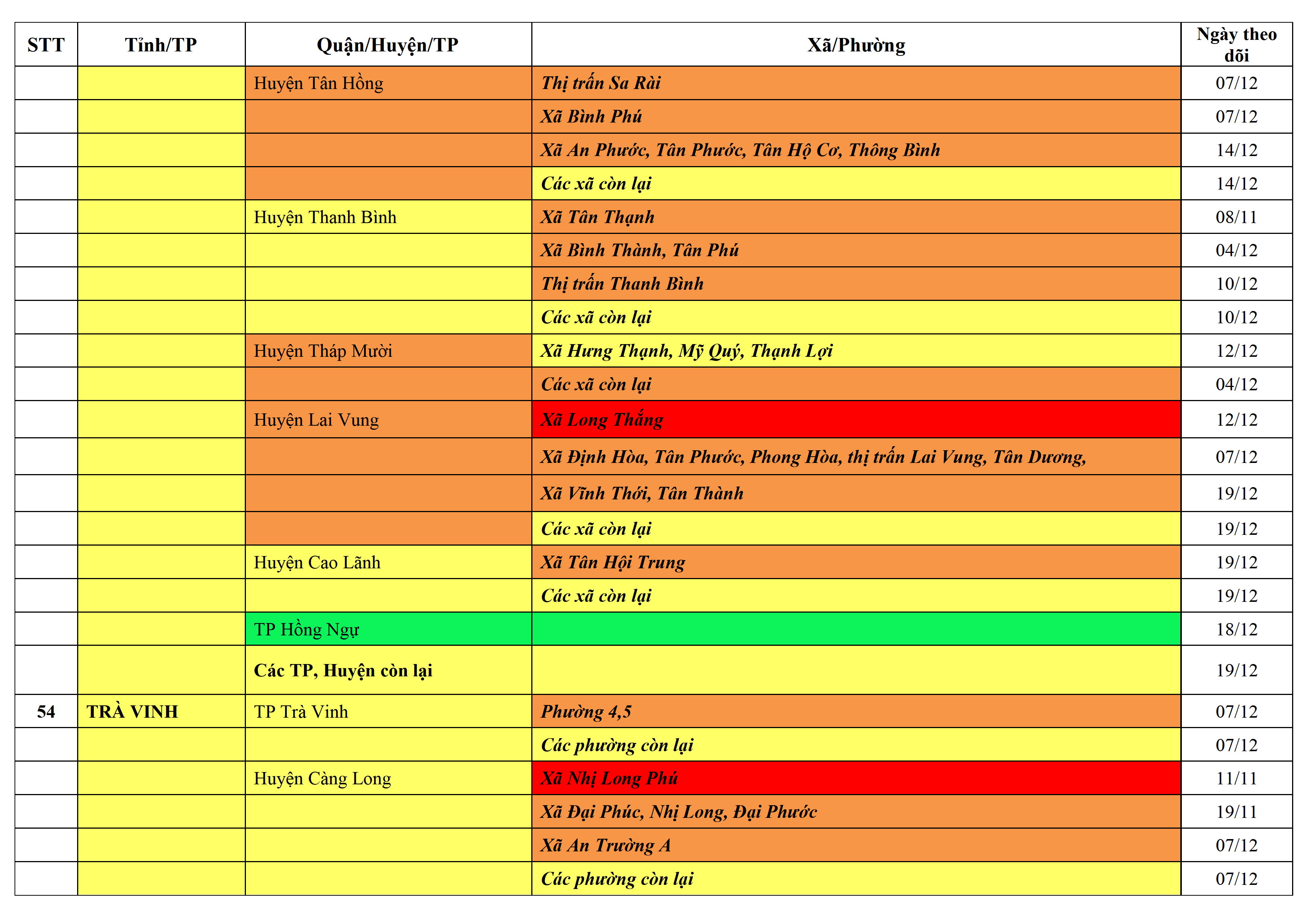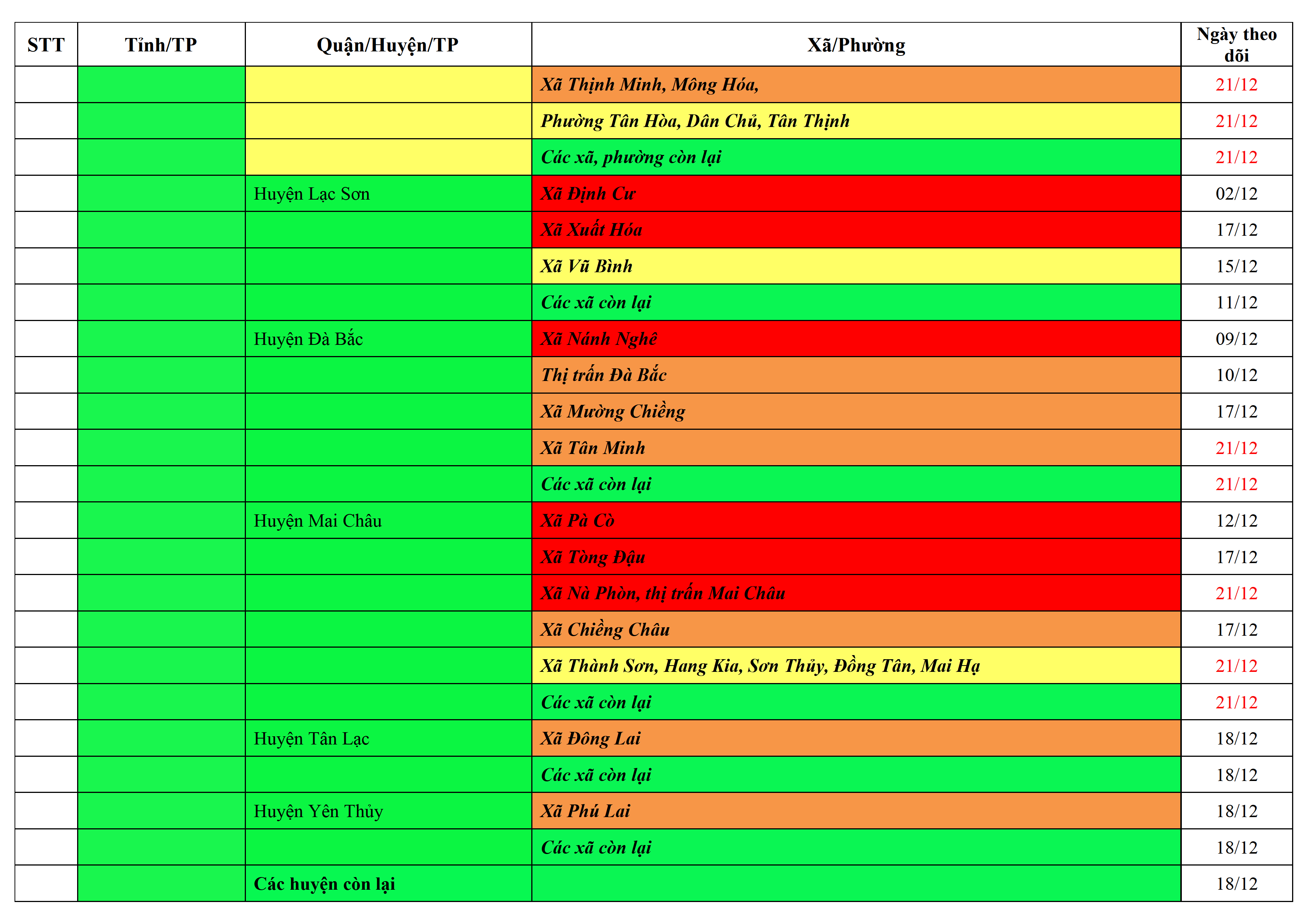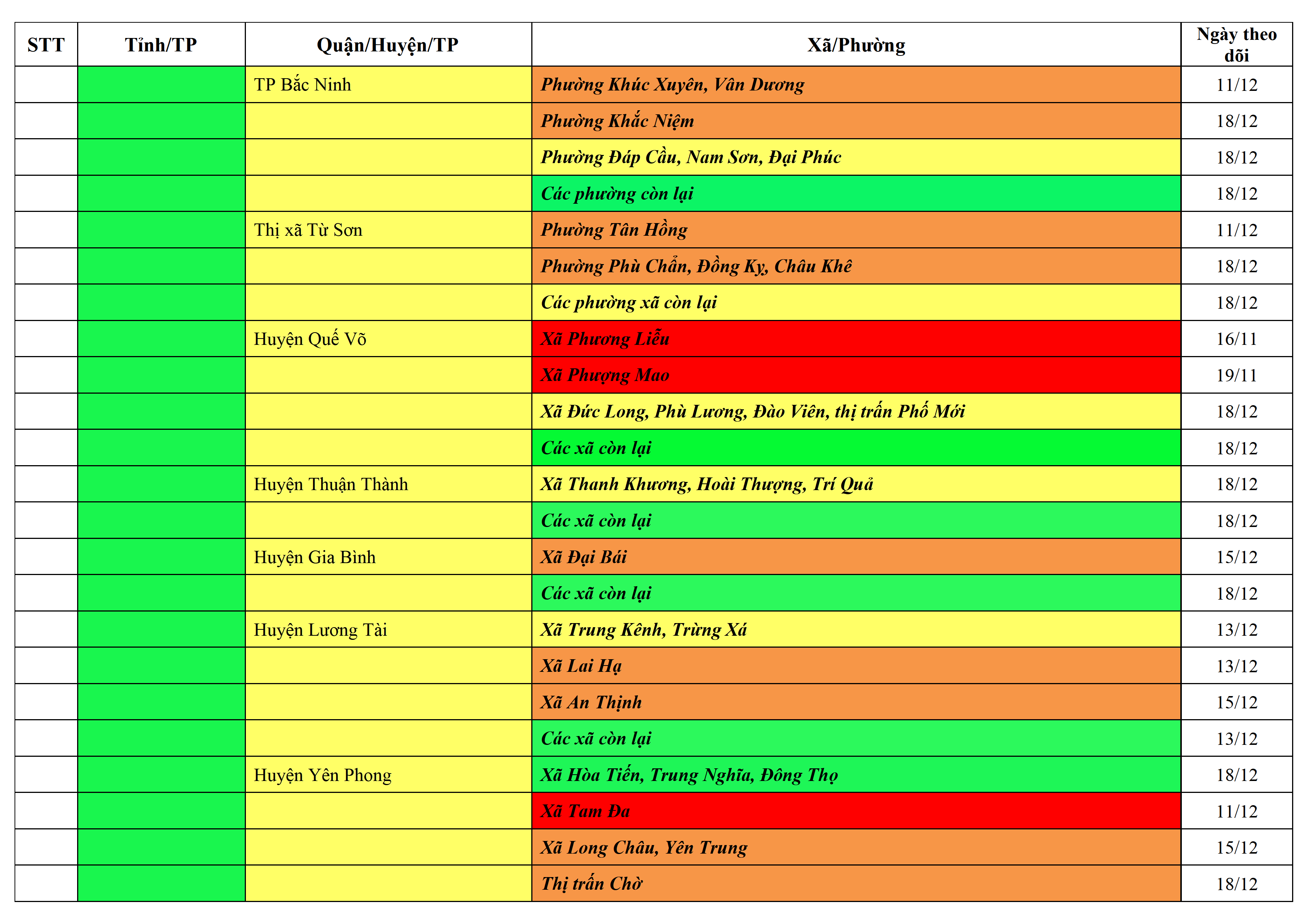 Lưu ý: Các tỉnh, thành phố không có tên trong bảng màu, đi lại bình thường, tuân thủ các biện pháp phòng chống dịch theo chỉ đạo của Bộ Y tế; khai báo y tế, thực hiện nghiêm 5K.