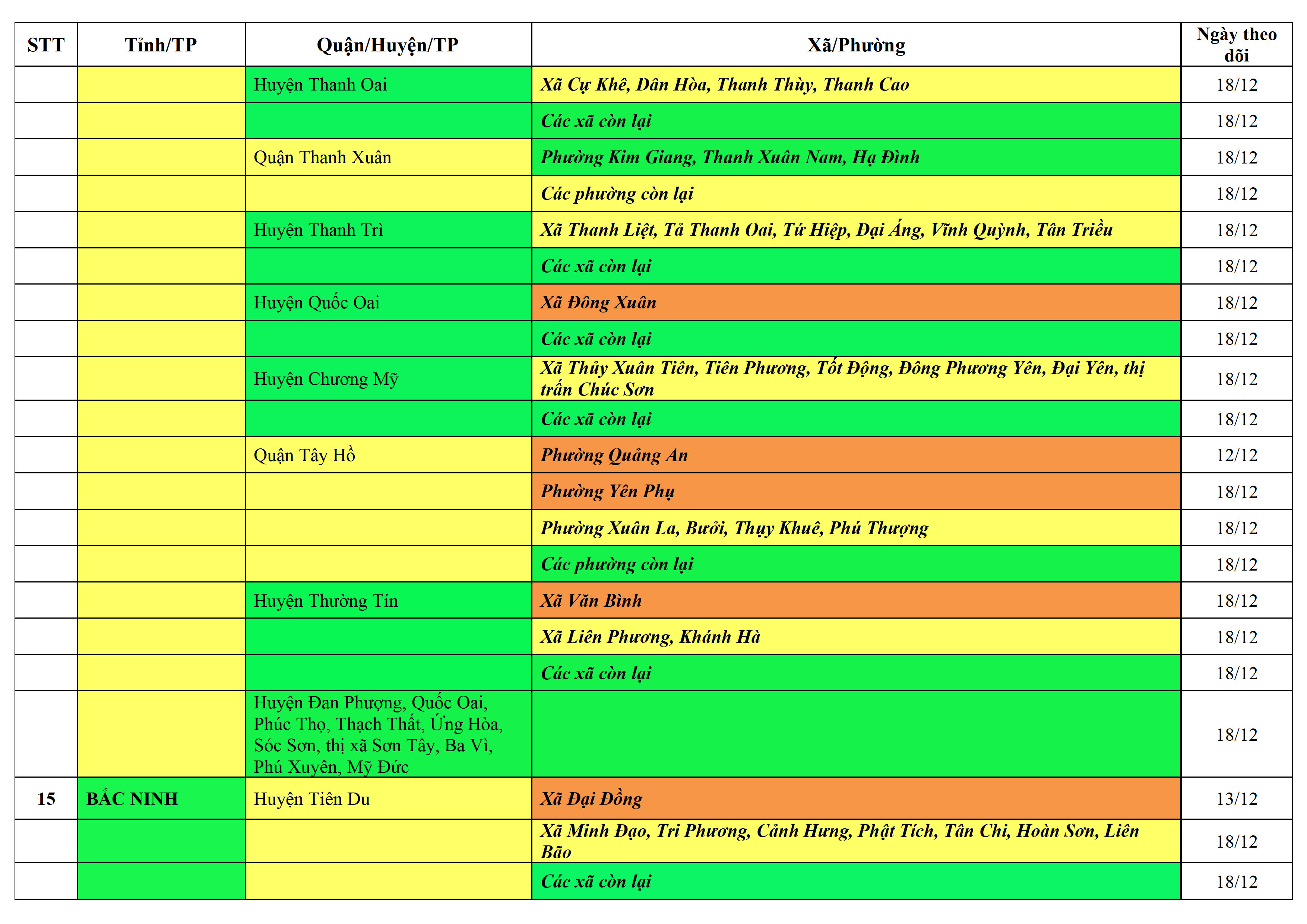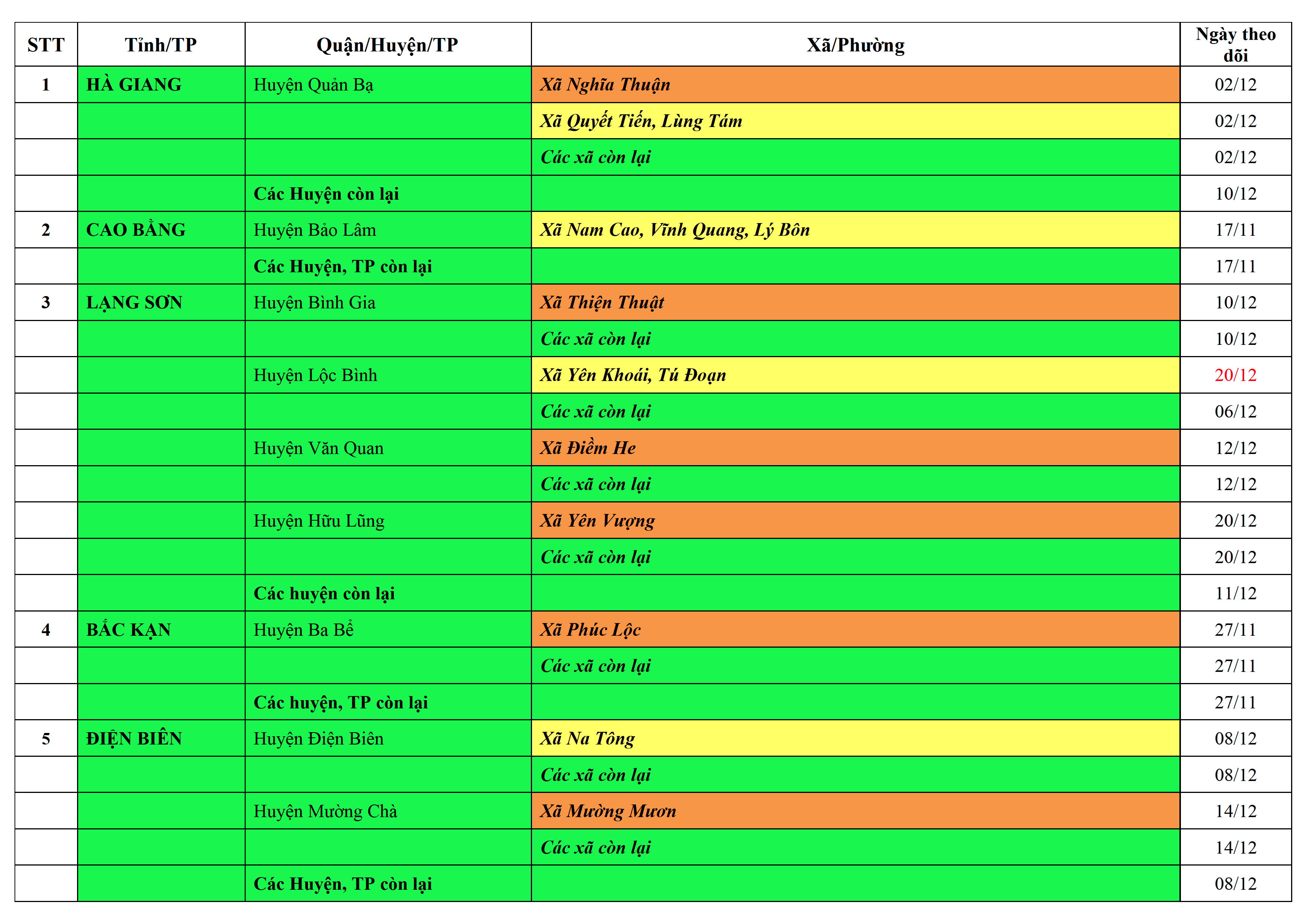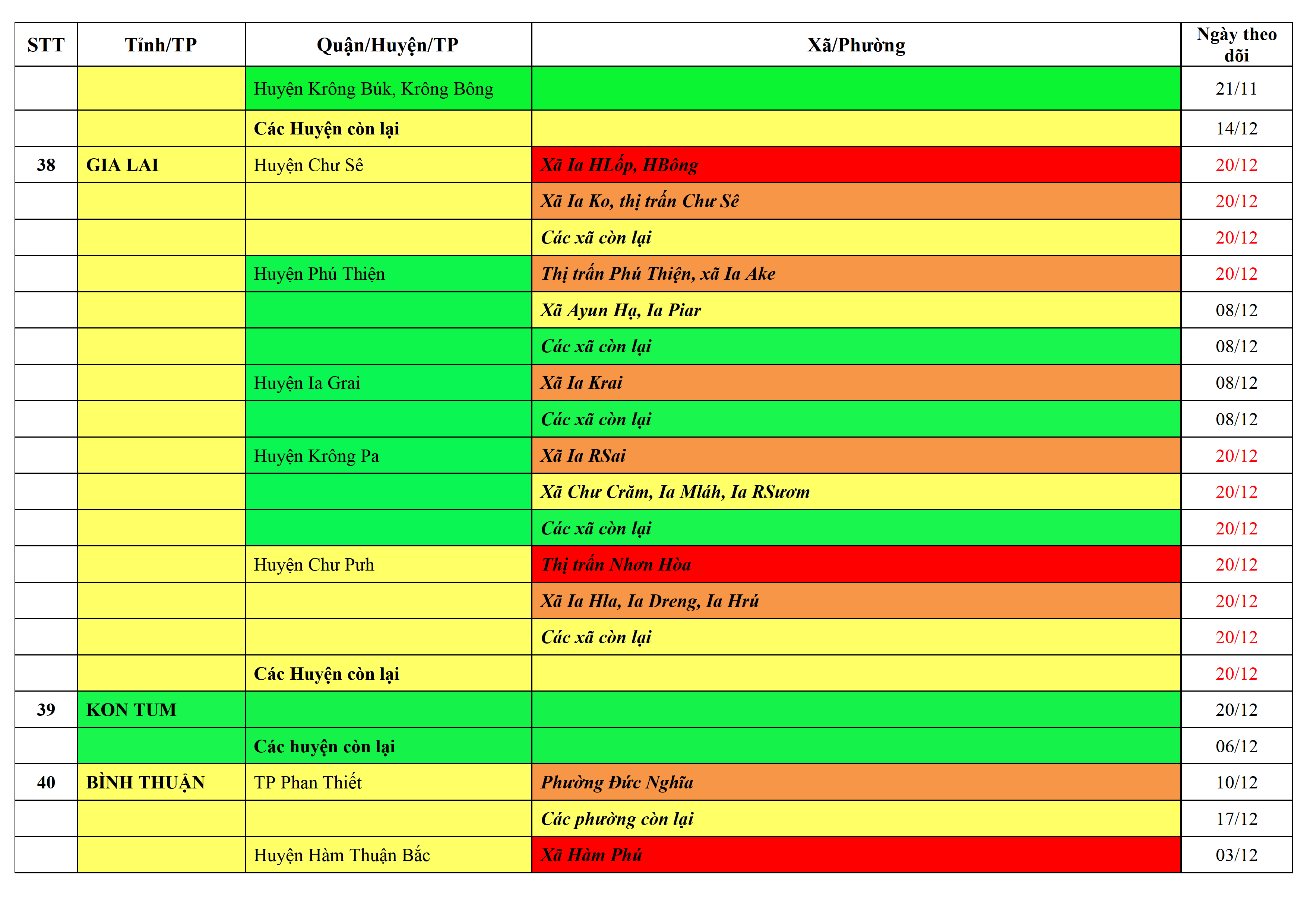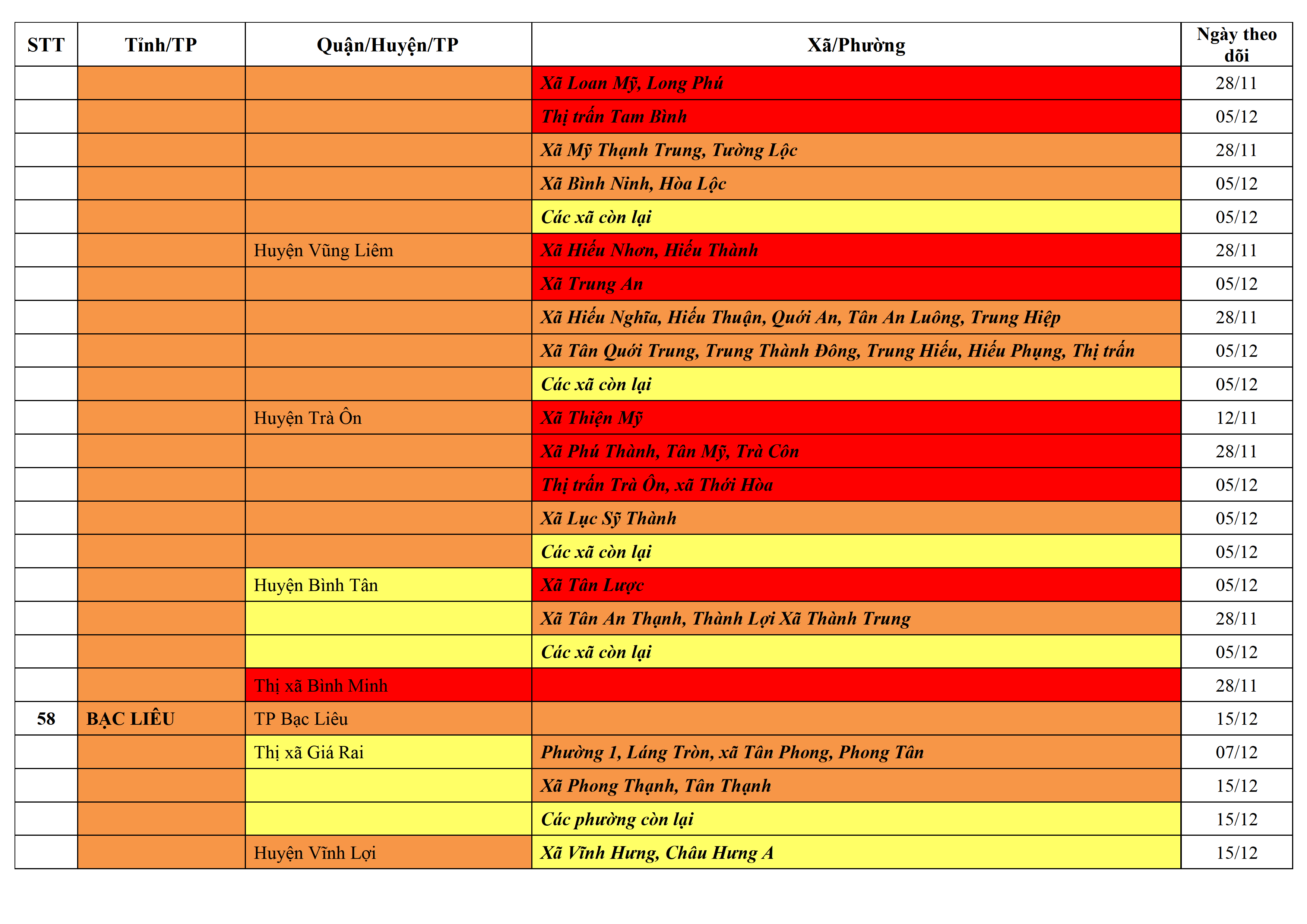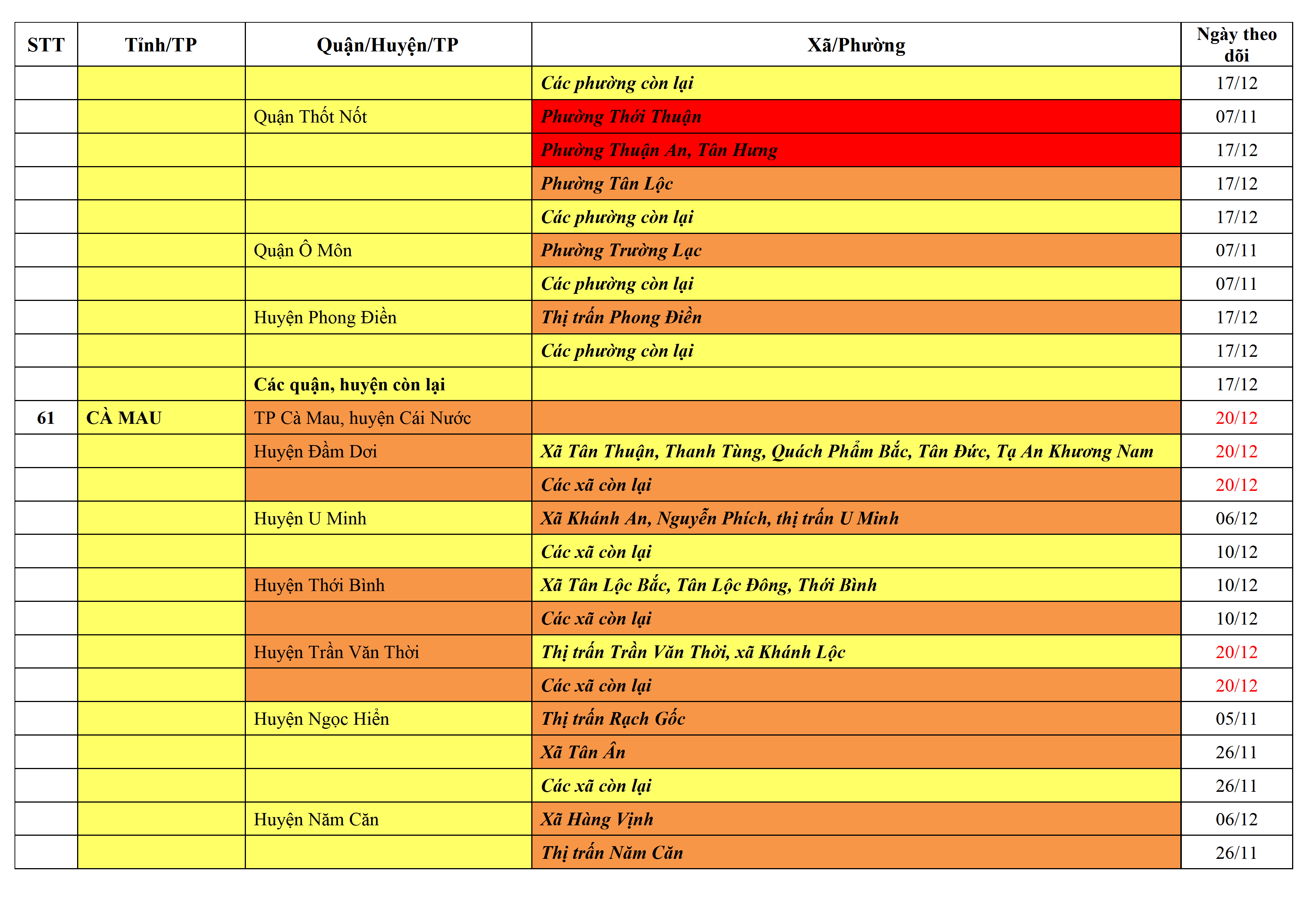 Lưu ý: Các tỉnh, thành phố không có tên trong bảng màu, đi lại bình thường, tuân thủ các biện pháp phòng chống dịch theo chỉ đạo của Bộ Y tế; khai báo y tế, thực hiện nghiêm 5K.