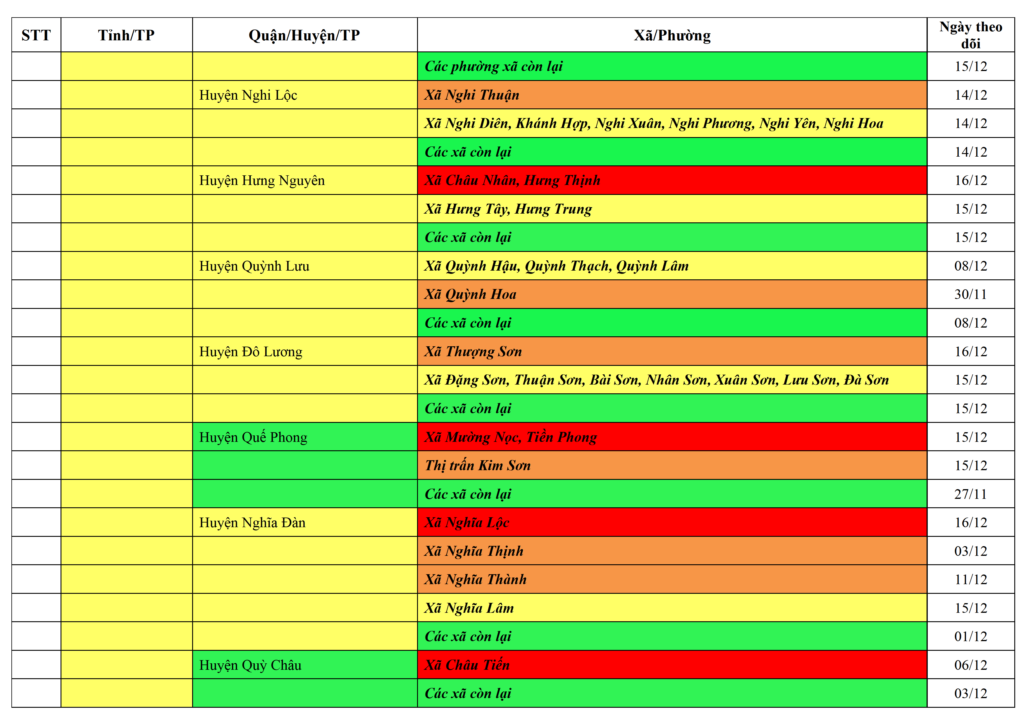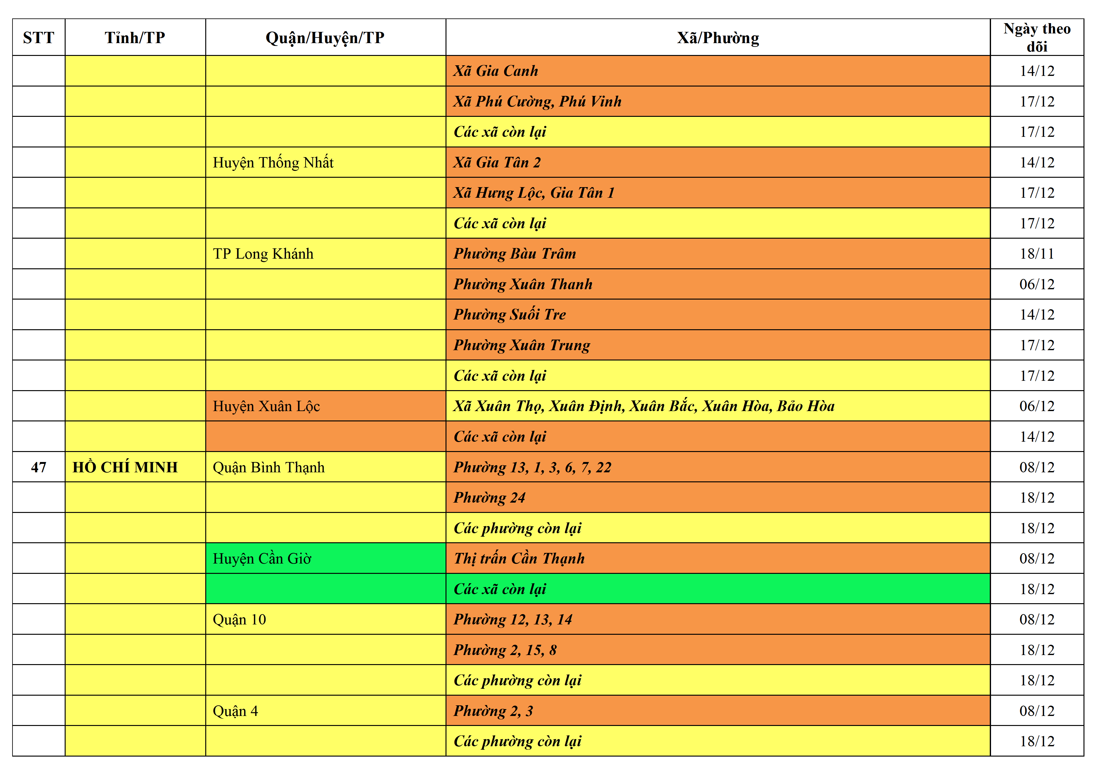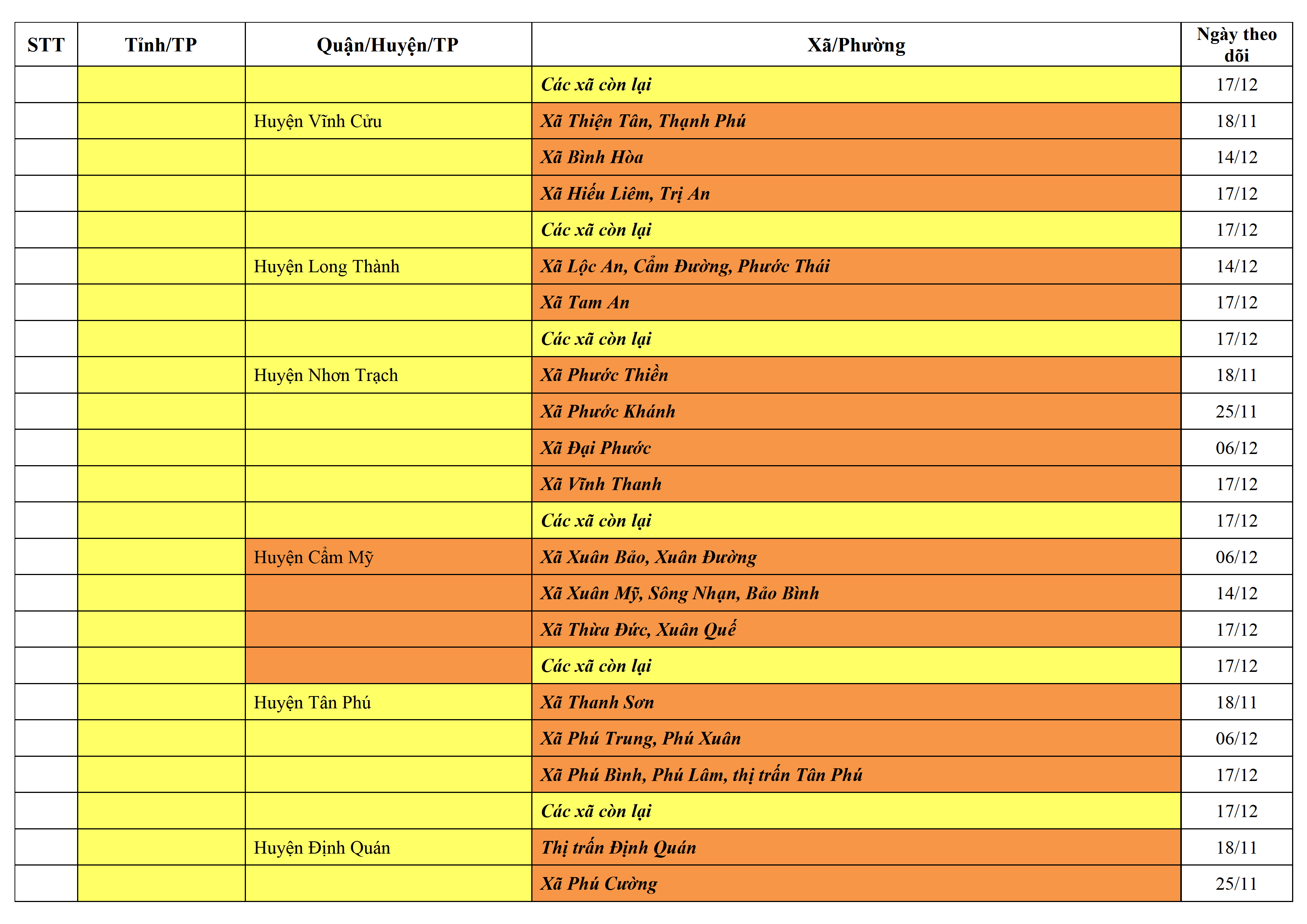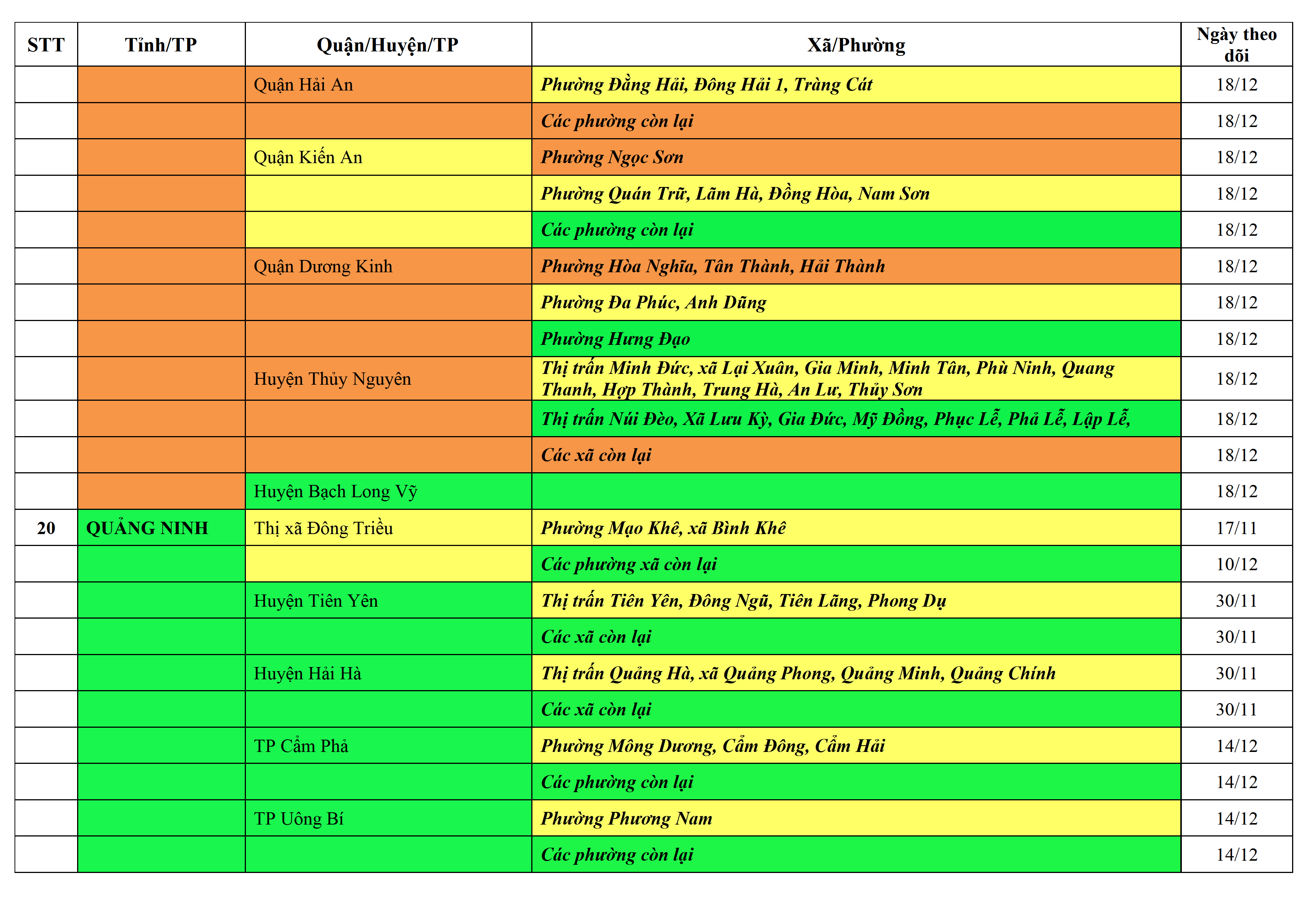 Lưu ý: Các tỉnh, thành phố không có tên trong bảng màu, đi lại bình thường, tuân thủ các biện pháp phòng chống dịch theo chỉ đạo của Bộ Y tế; khai báo y tế, thực hiện nghiêm 5K.