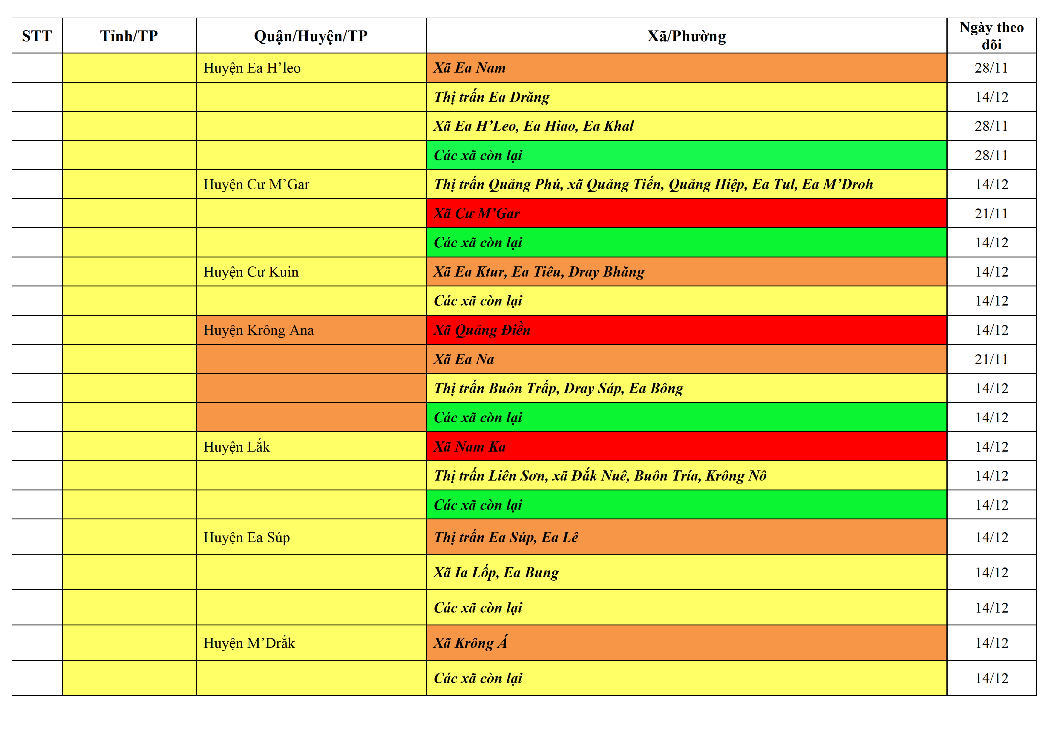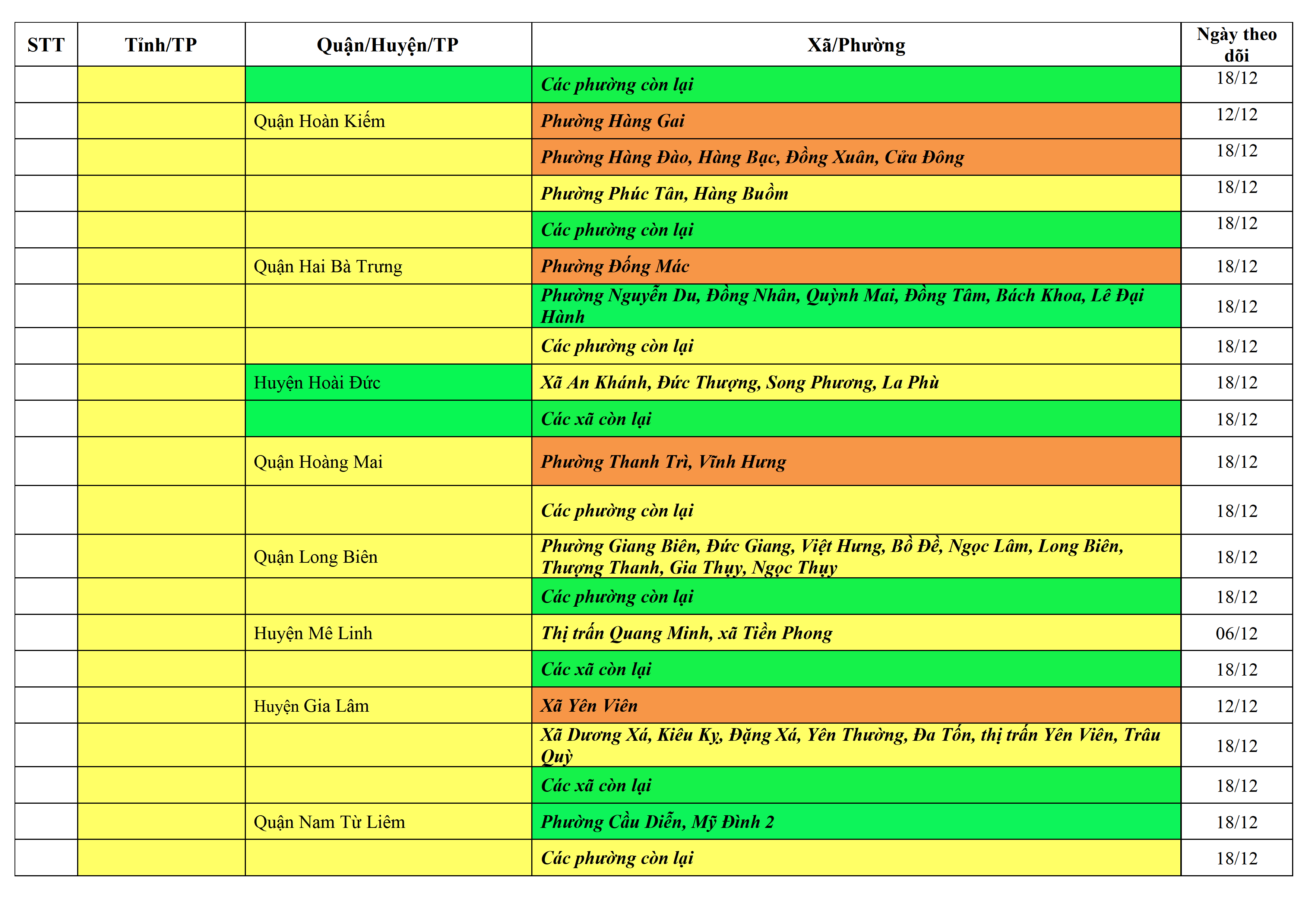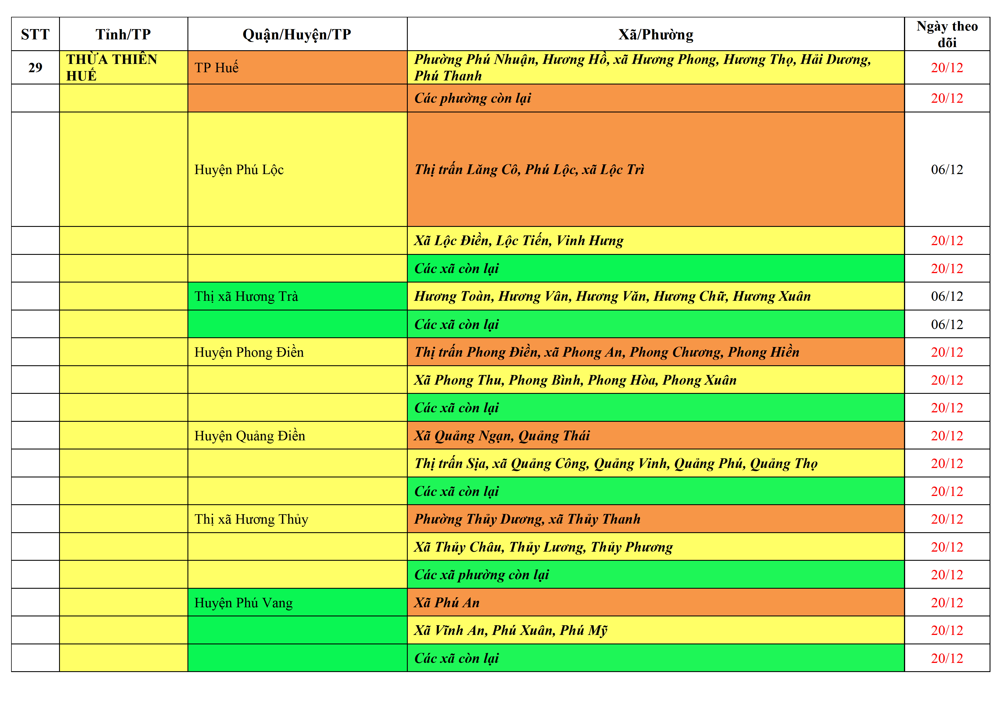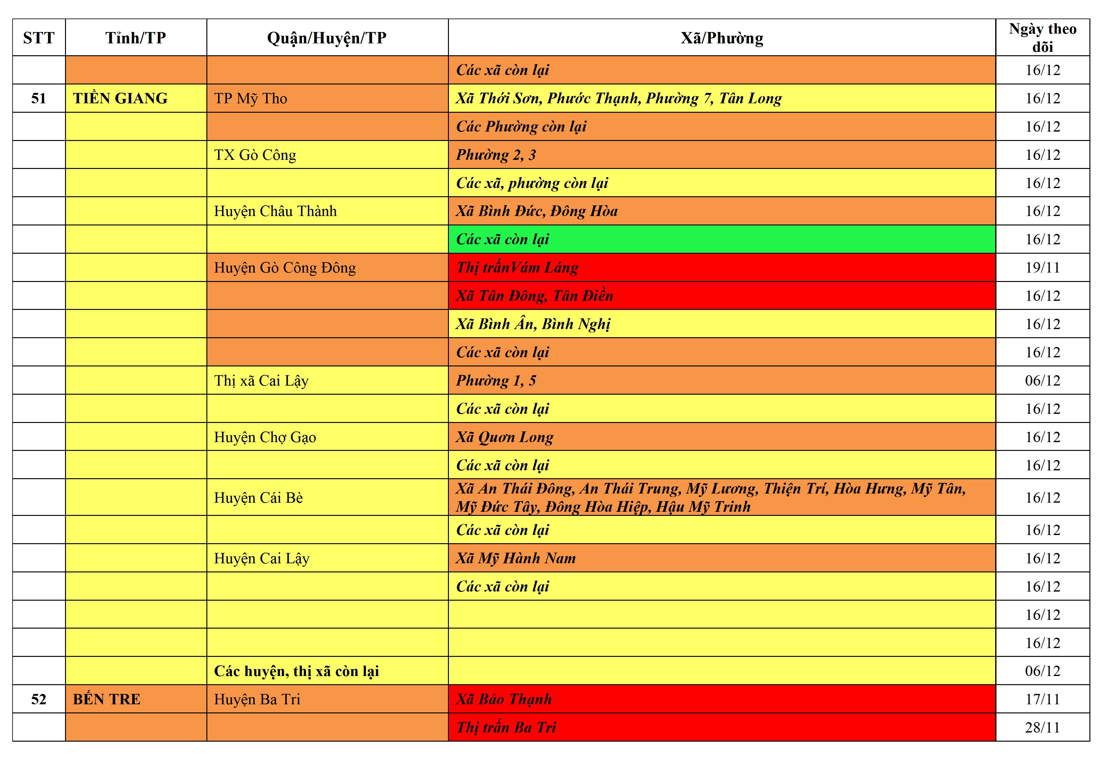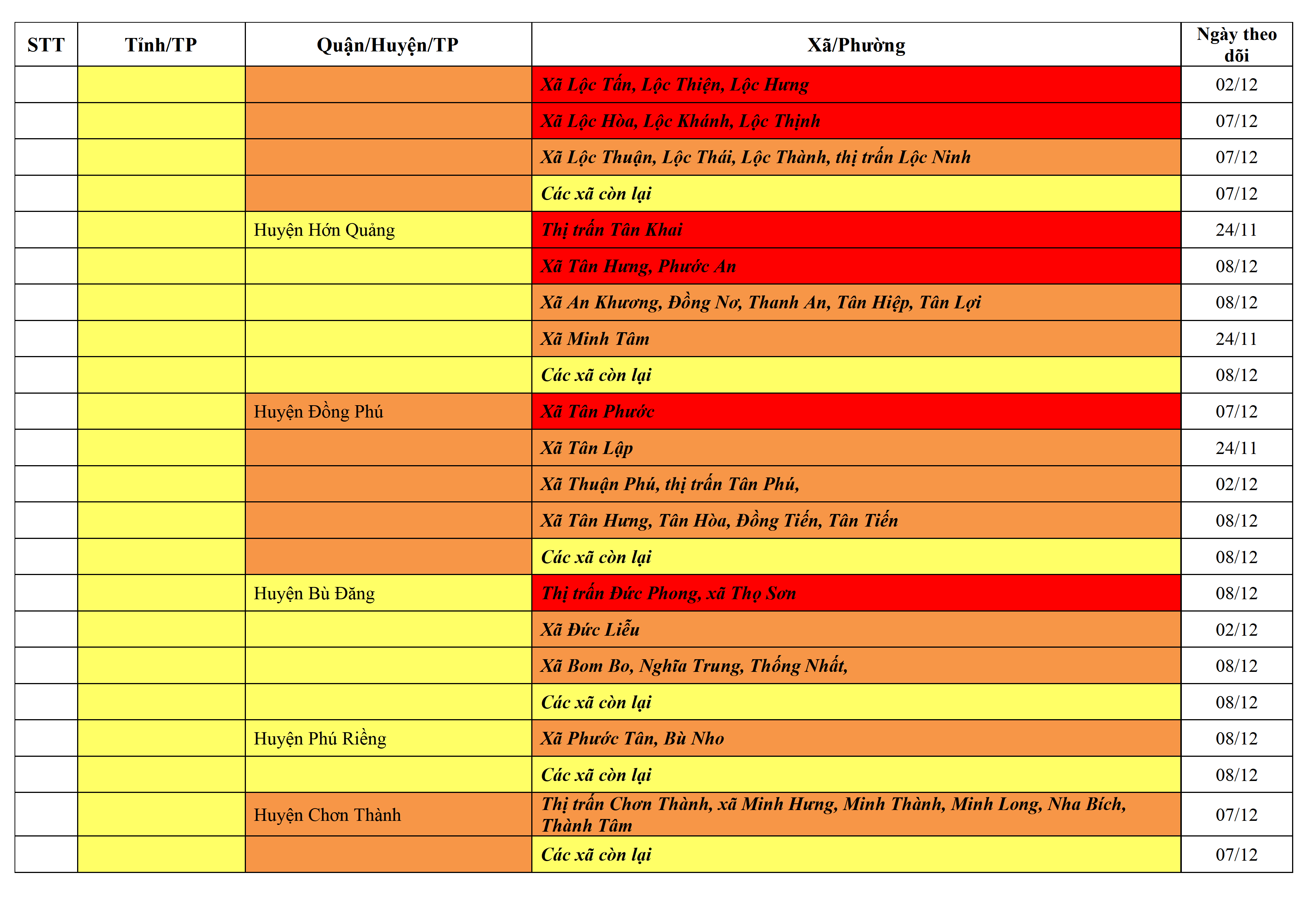 Lưu ý: Các tỉnh, thành phố không có tên trong bảng màu, đi lại bình thường, tuân thủ các biện pháp phòng chống dịch theo chỉ đạo của Bộ Y tế; khai báo y tế, thực hiện nghiêm 5K.