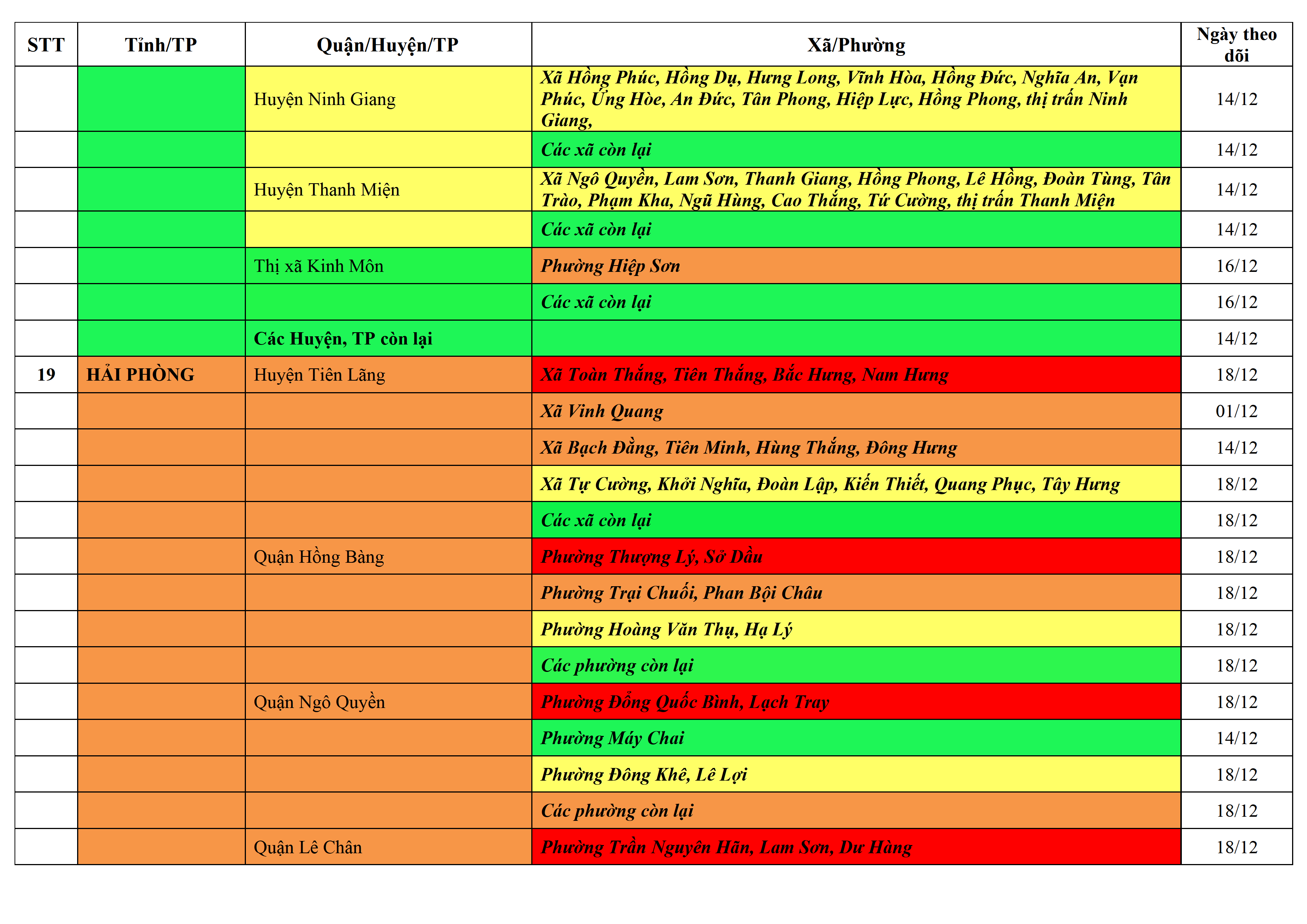 2. Đối với công dân từ các địa phương về Hải Phòng, áp dụng theo bảng hướng dẫn dưới đây: