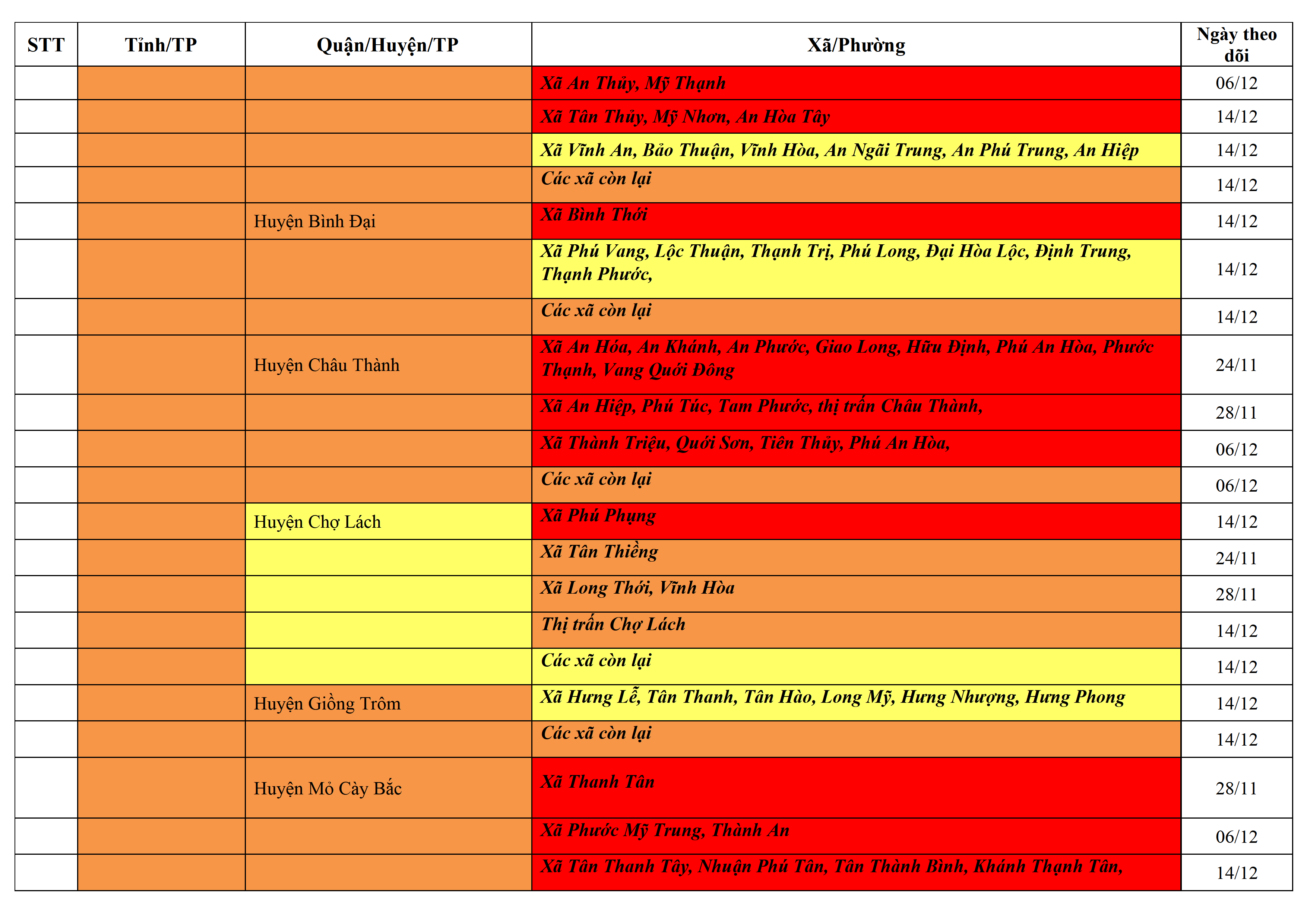 Áp dụng biện pháp tương ứng màu sắc ô cột theo thôn xóm; xã phường; quận huyện; tỉnh thành phố. Cách ly y tế dựa vào việc tiếp xúc, đi đến địa điểm và nơi cư trú có ca bệnh, theo Thông báo của Bộ Y tế, các tỉnh thành phố.