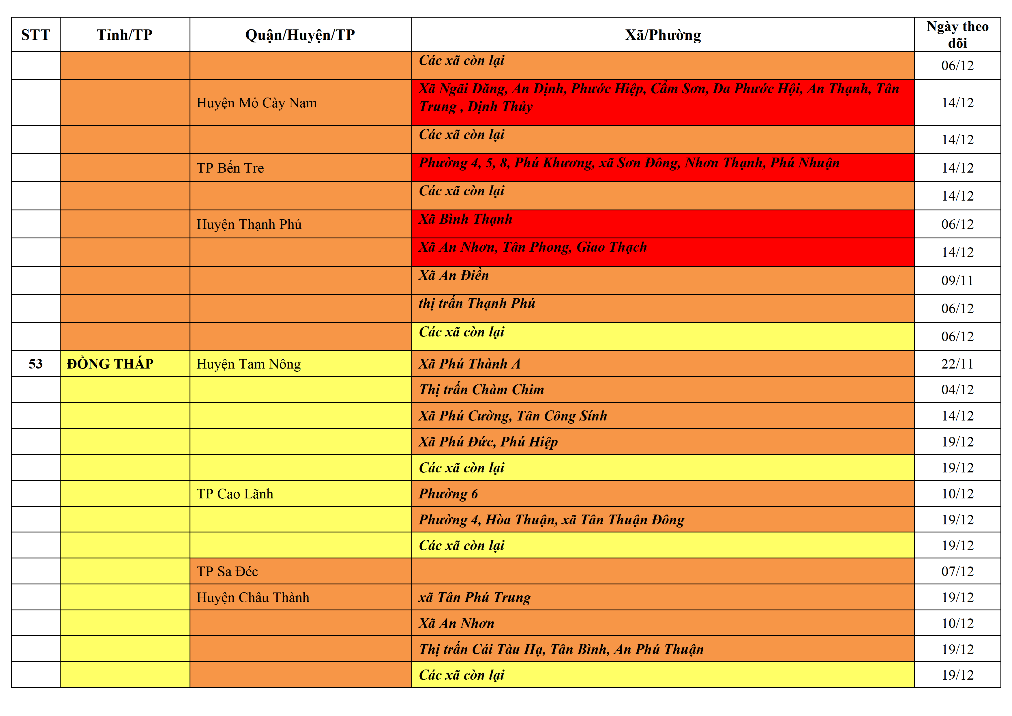 Áp dụng biện pháp tương ứng màu sắc ô cột theo thôn xóm; xã phường; quận huyện; tỉnh thành phố.
