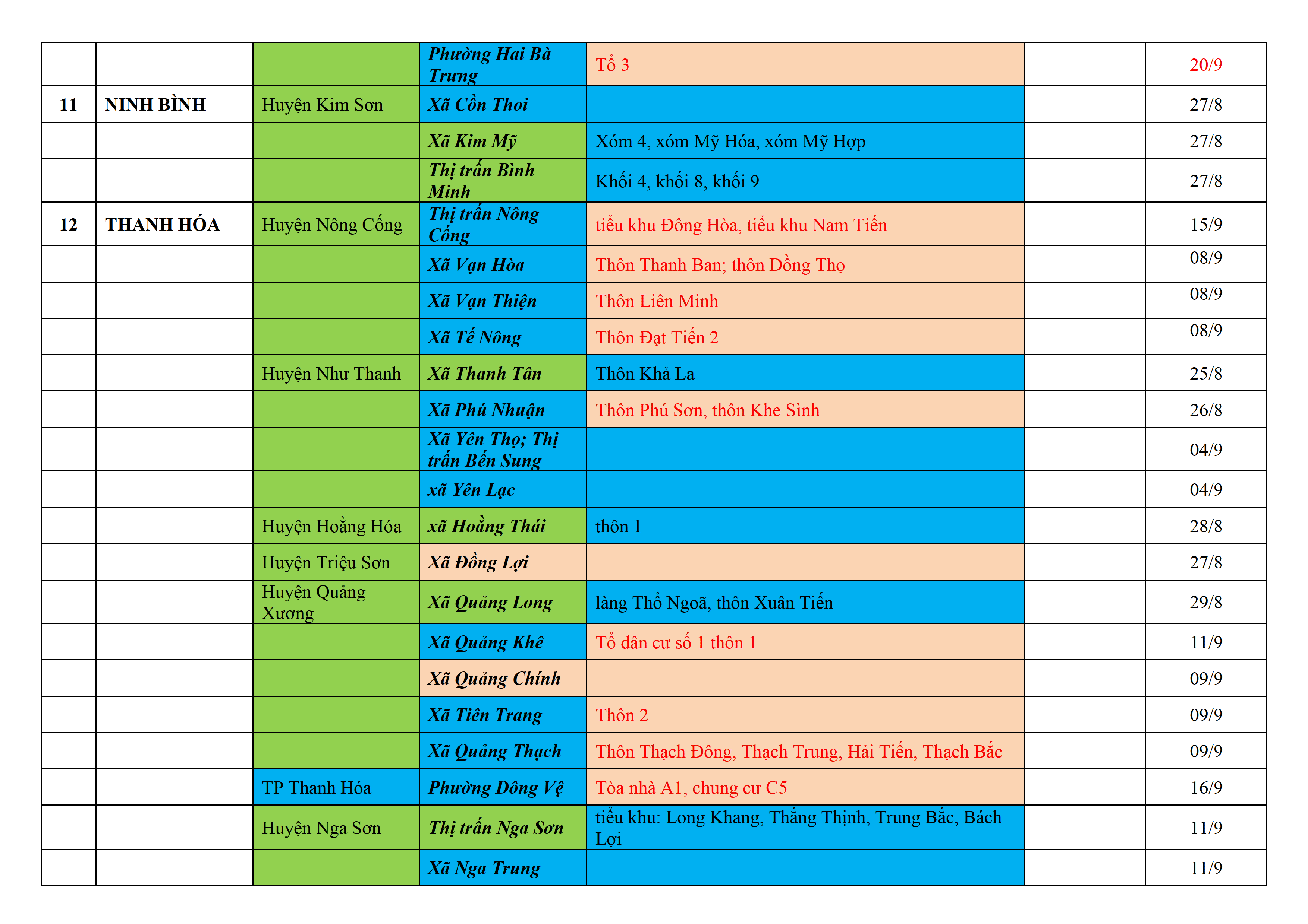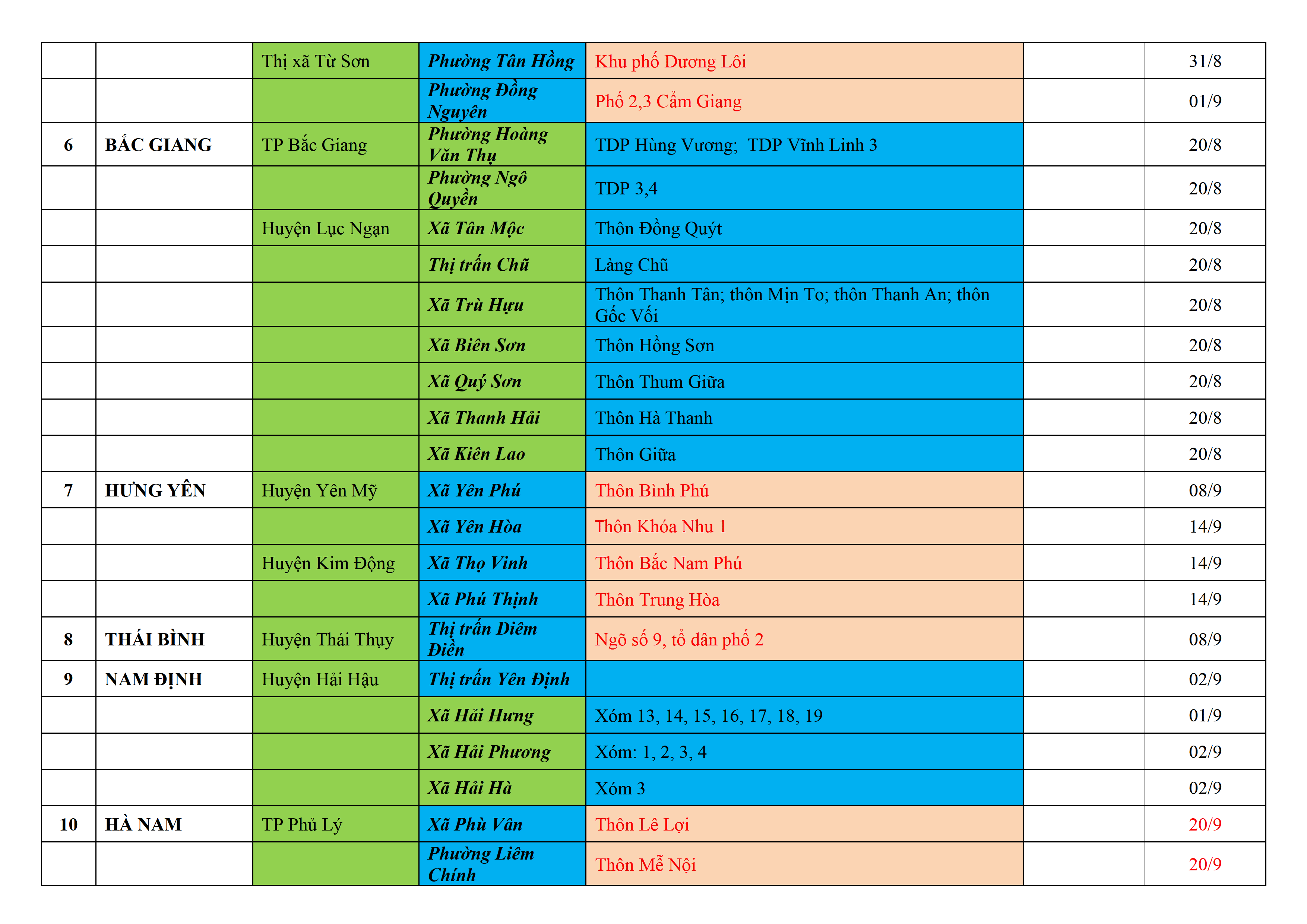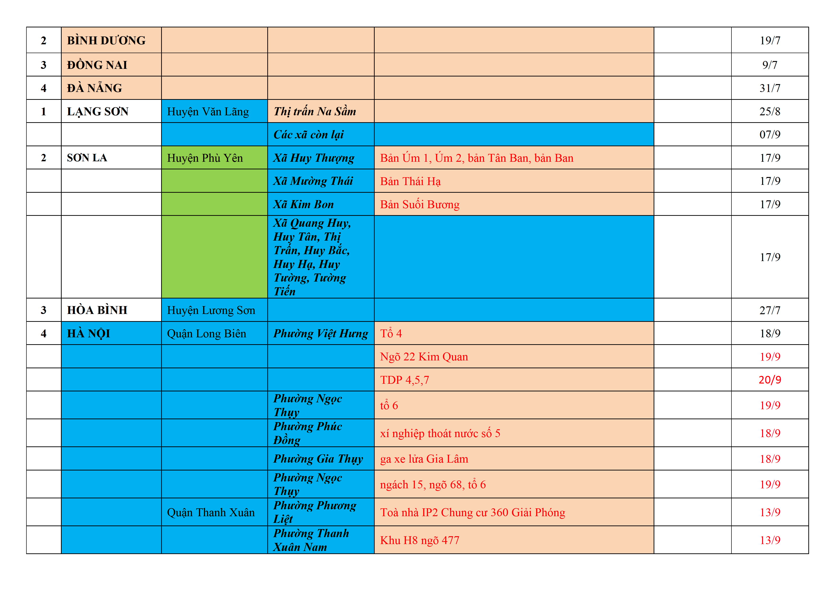 Biện pháp phòng chống dịch: Áp dụng biện pháp tương ứng màu sắc ô cột theo thôn xóm; xã phường; quận huyện; tỉnh thành phố. Cách ly y tế dựa vào việc tiếp xúc, đi đến địa điểm và nơi cư trú có ca bệnh, theo Thông báo của Bộ Y tế, các tỉnh thành phố.