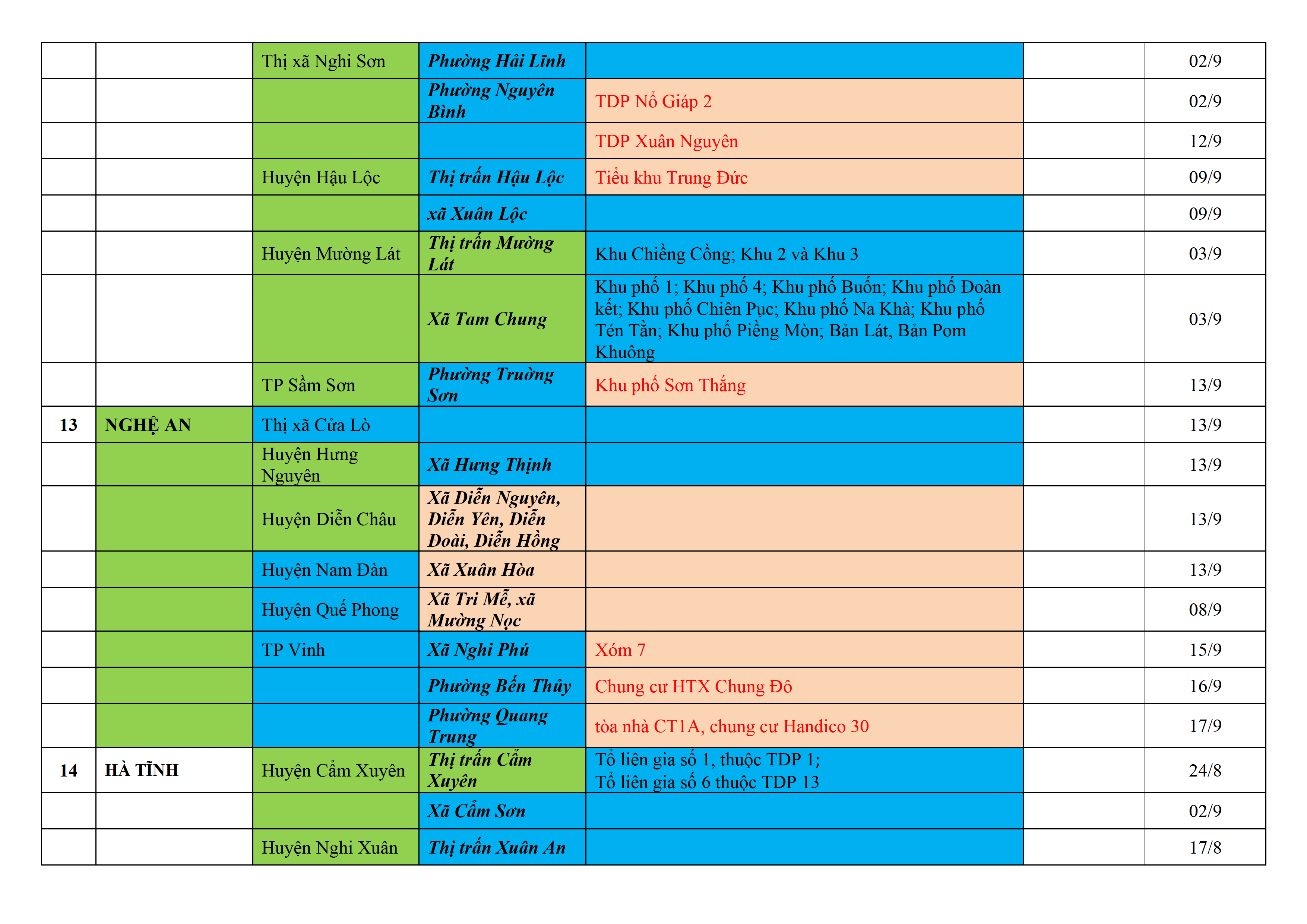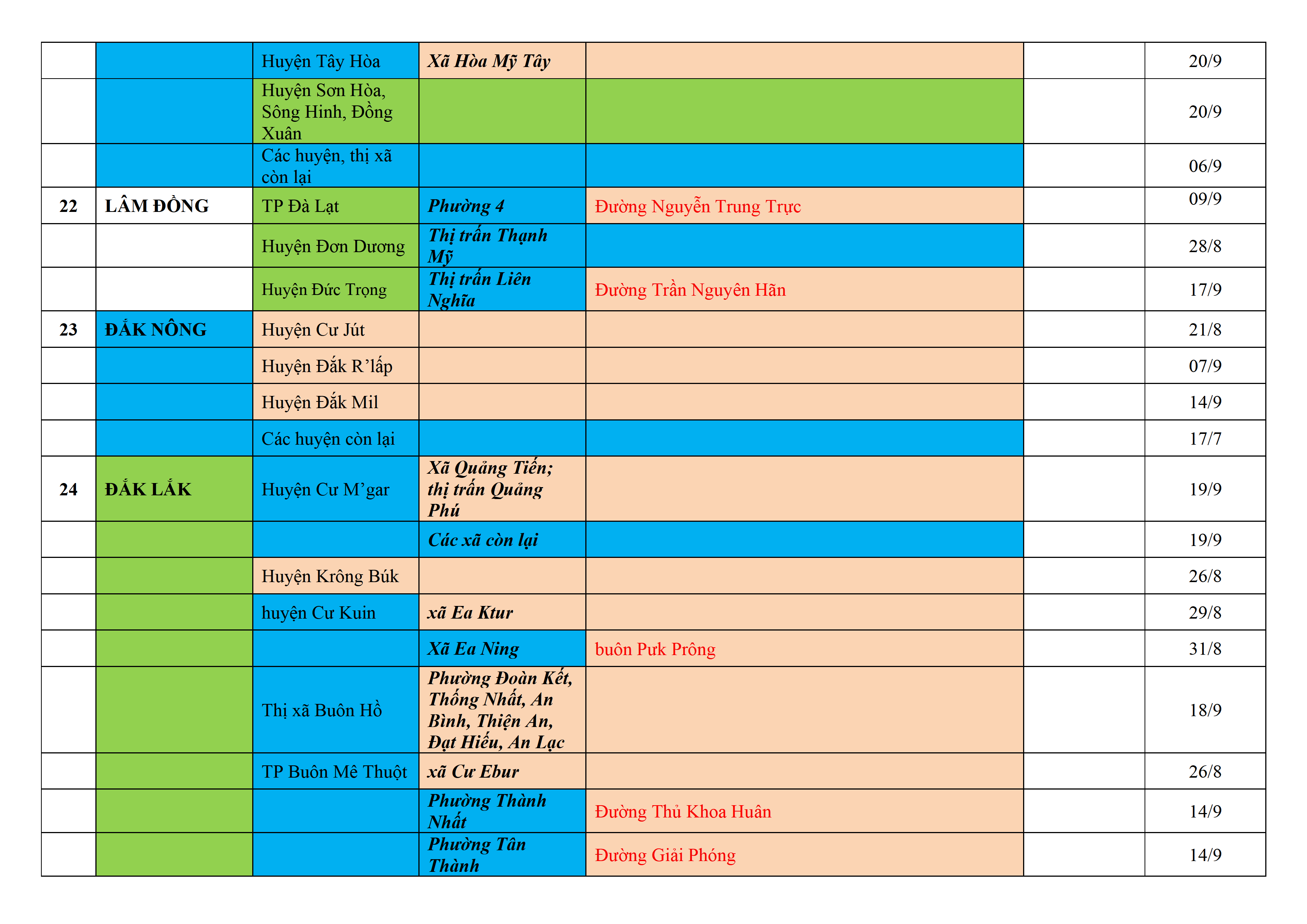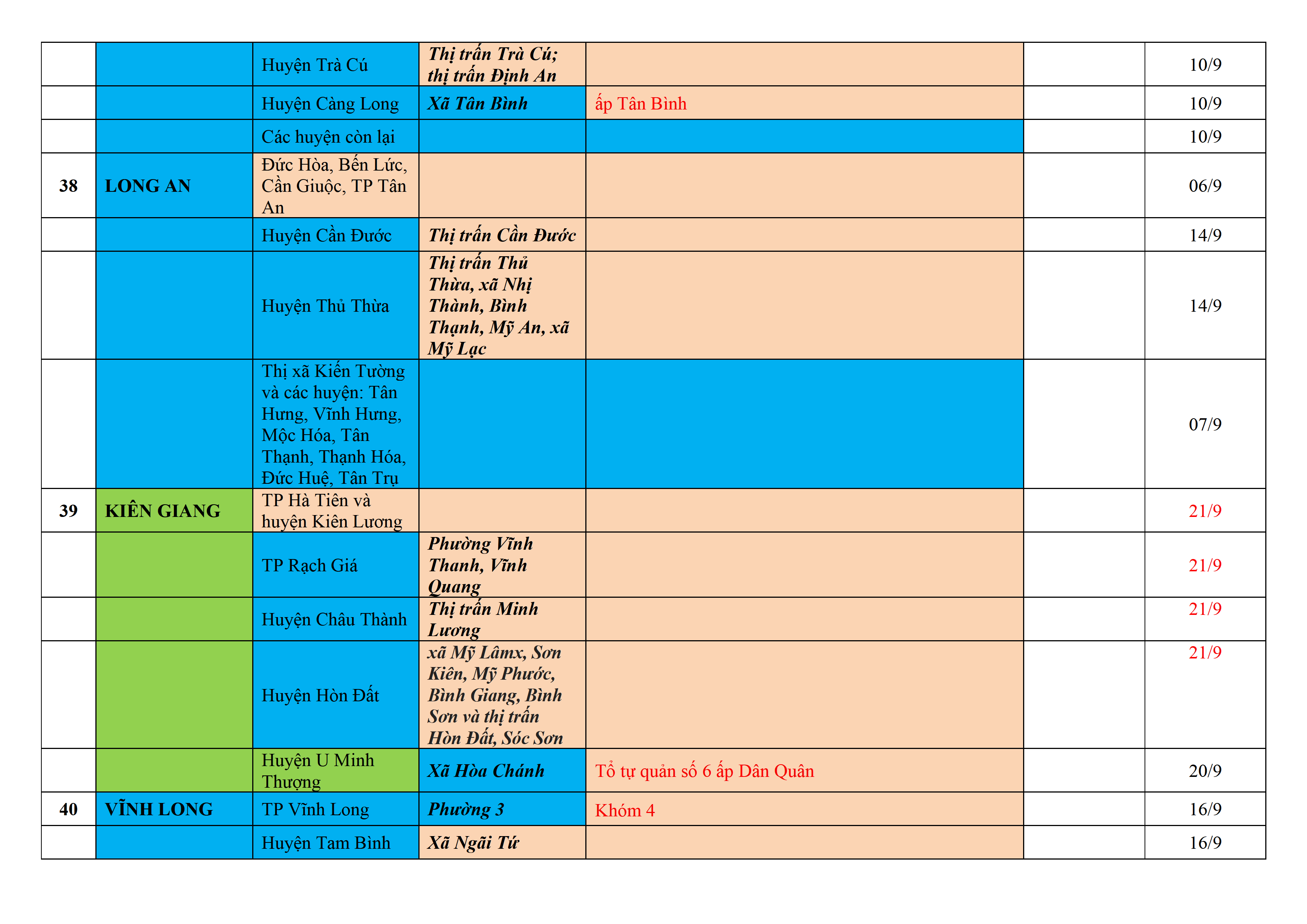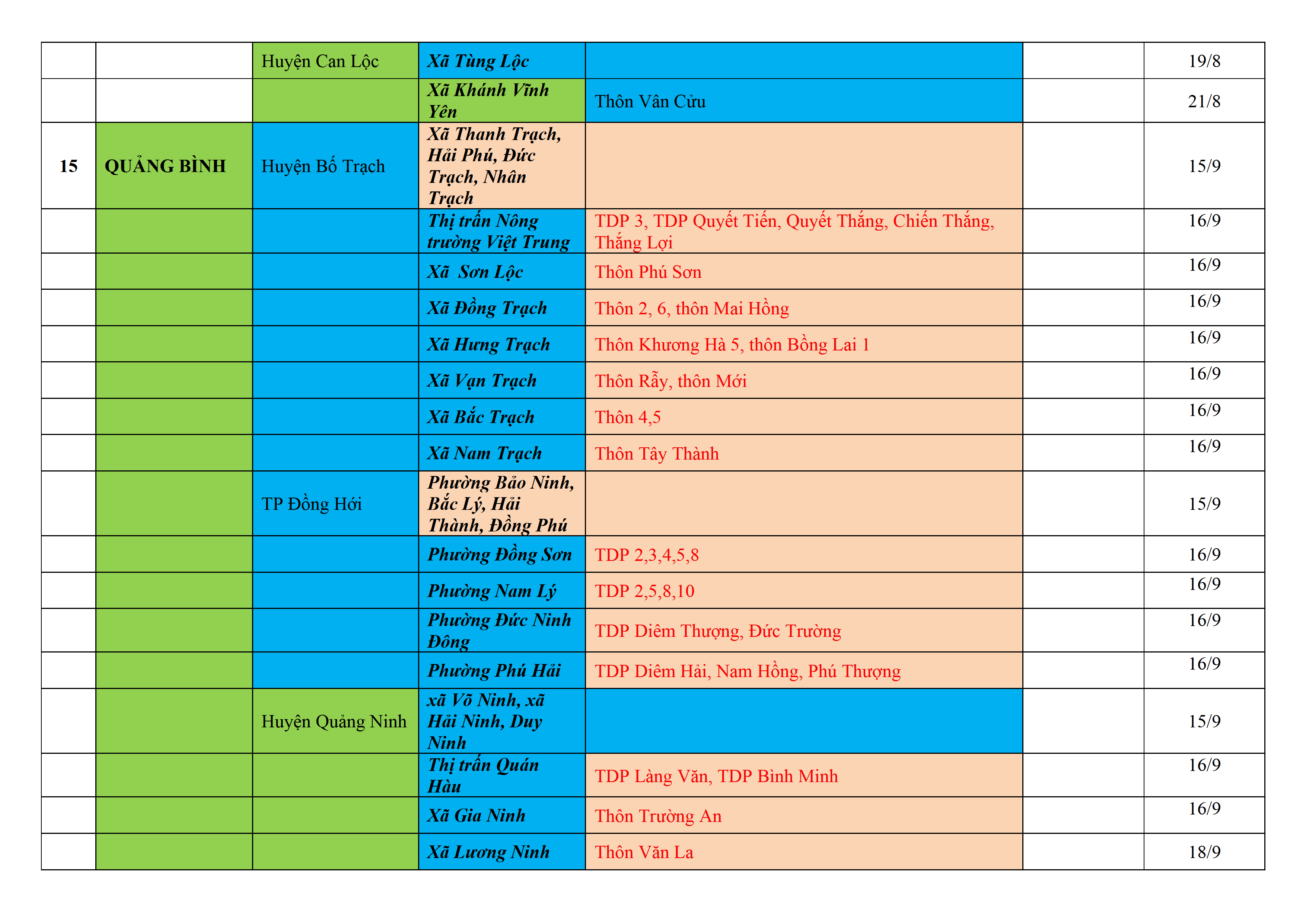 Từ 0 giờ 00 phút, ngày 15/9/2021: