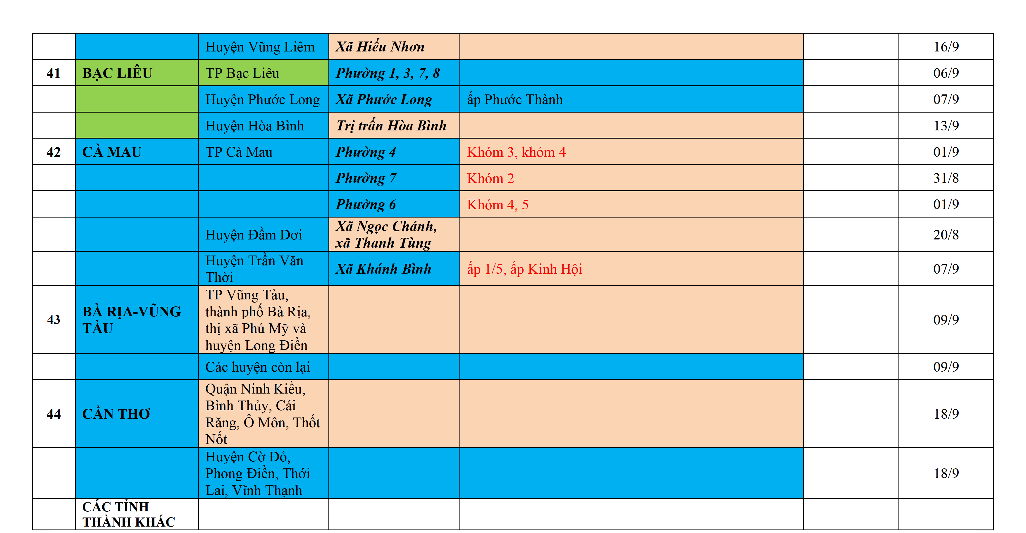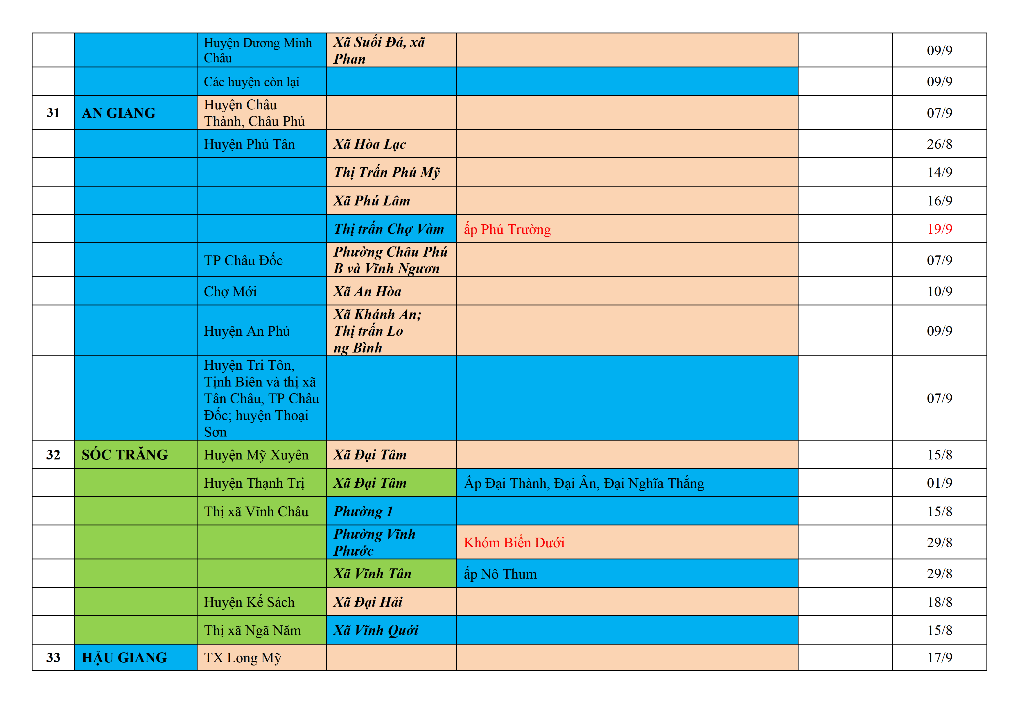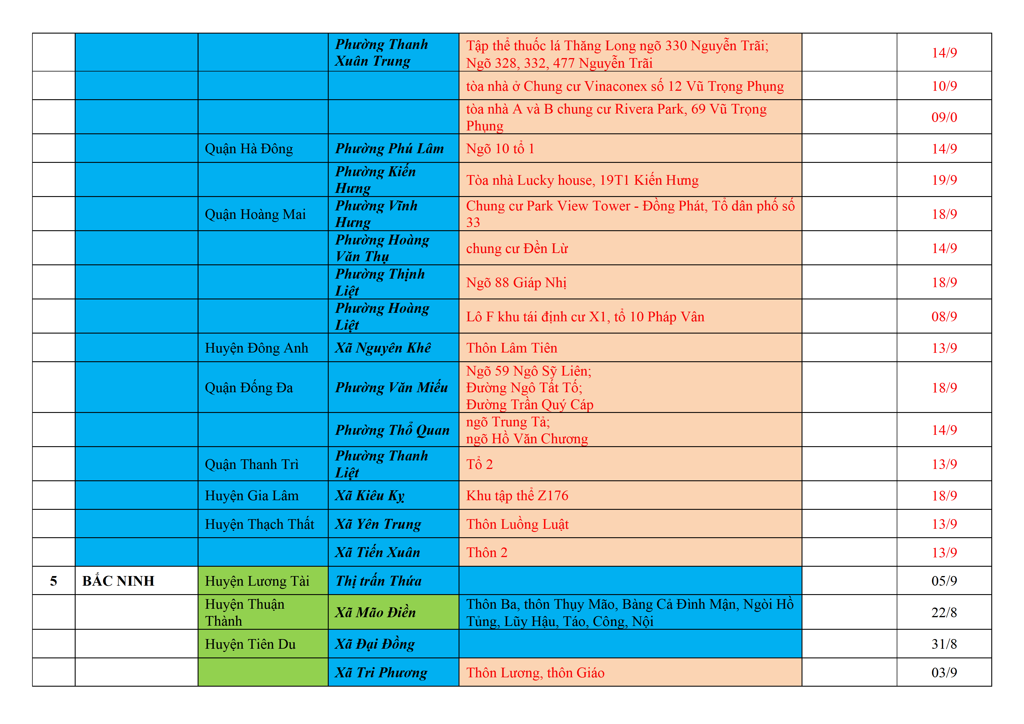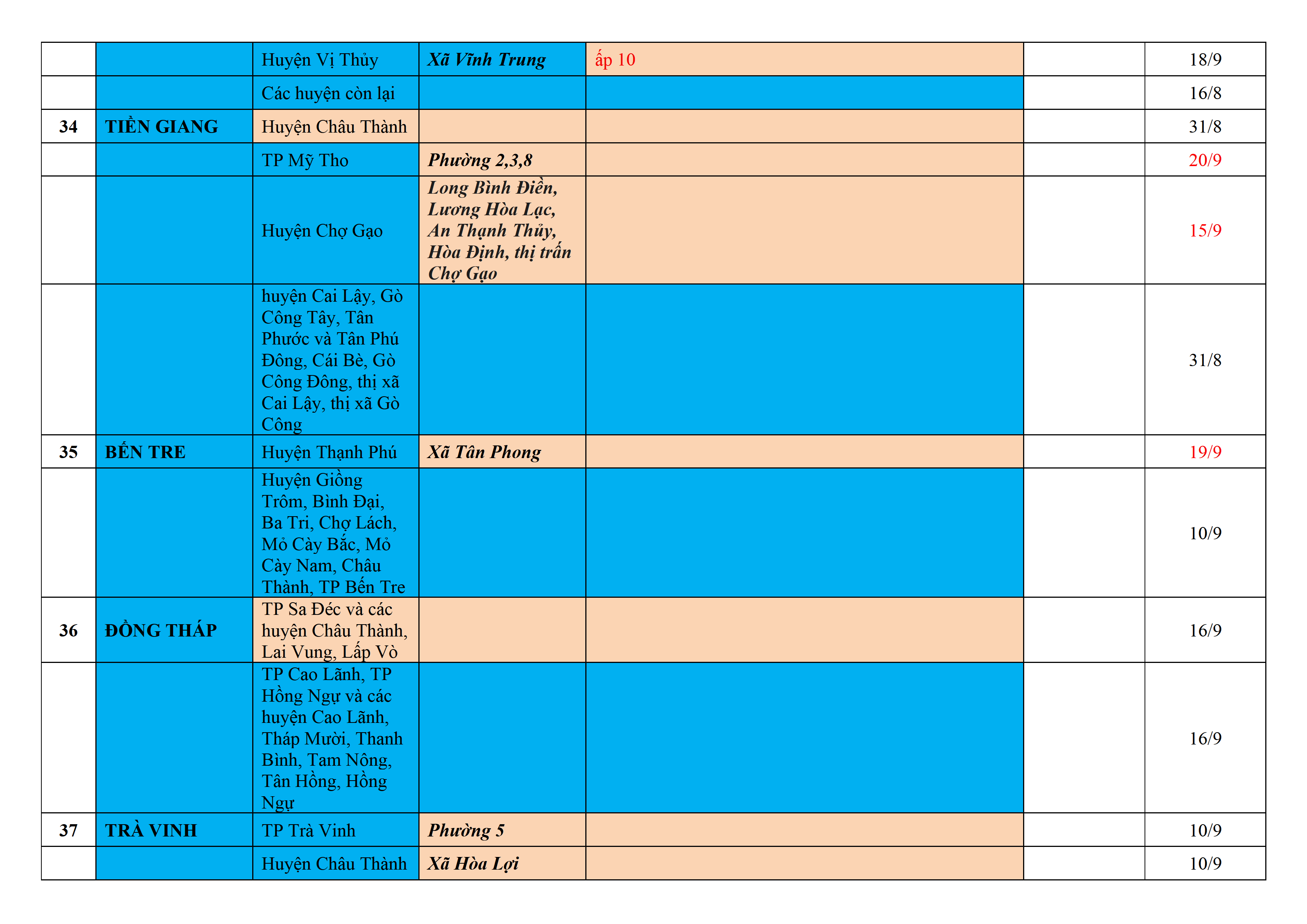 Từ 0 giờ 00 phút, ngày 15/9/2021: