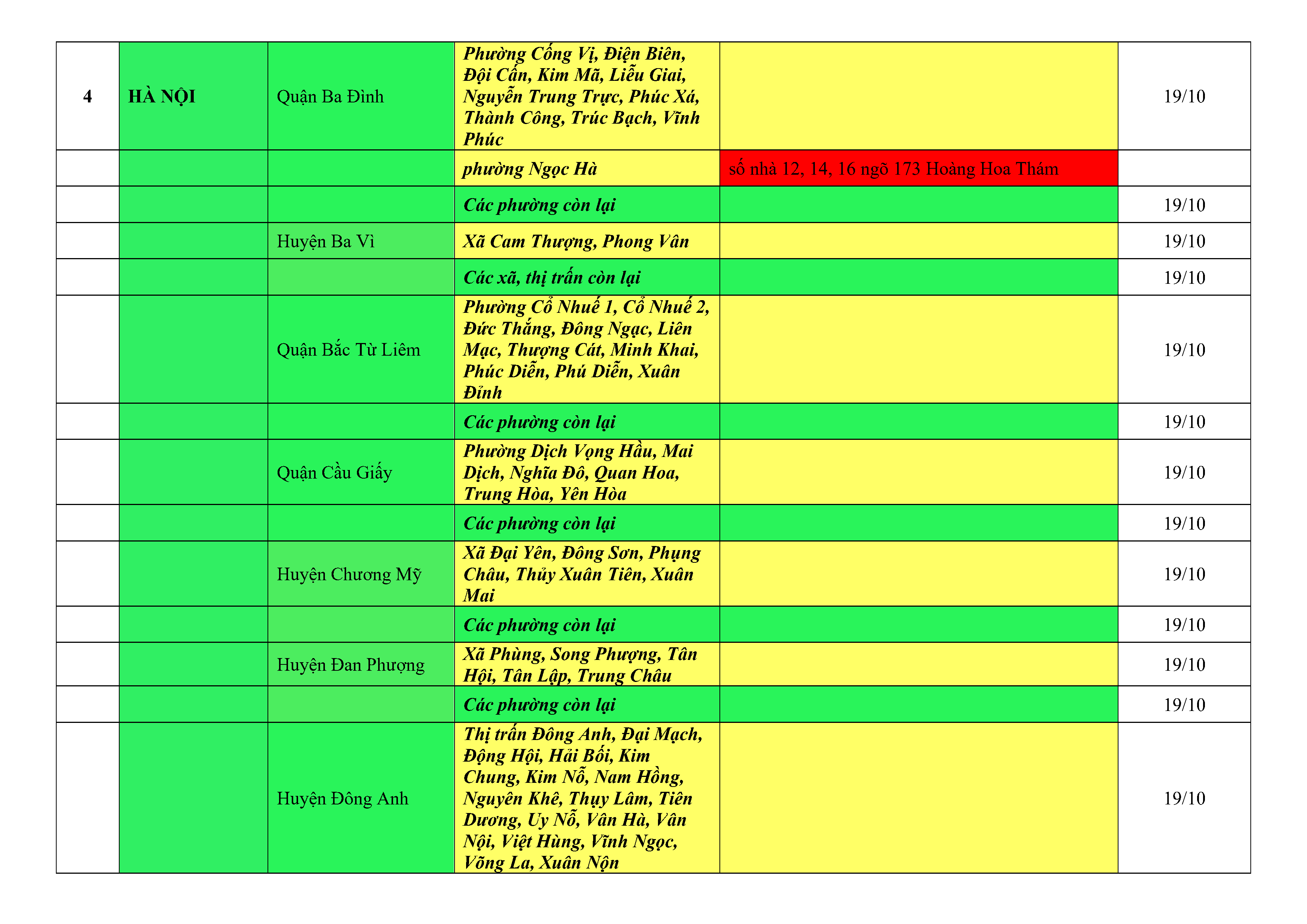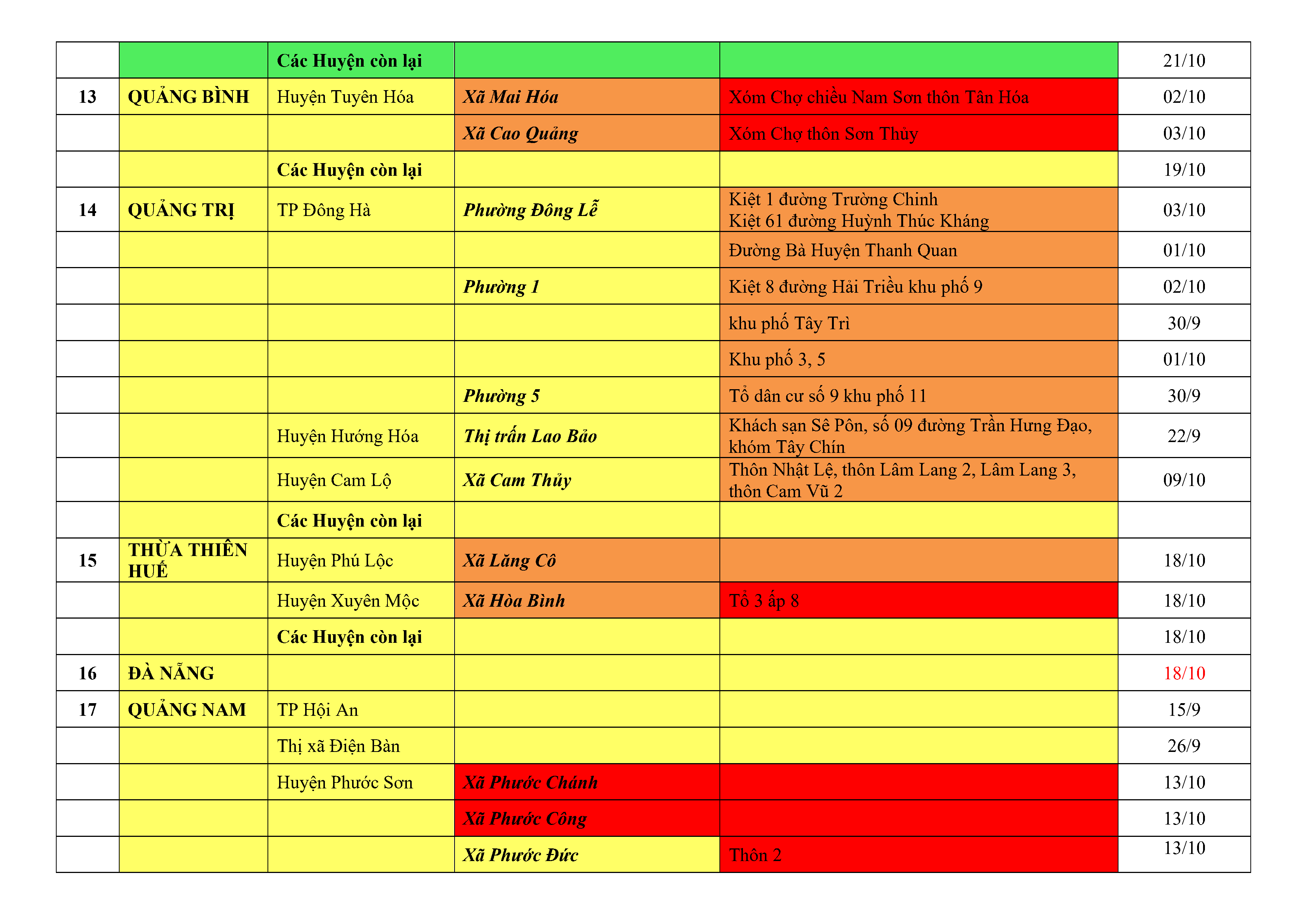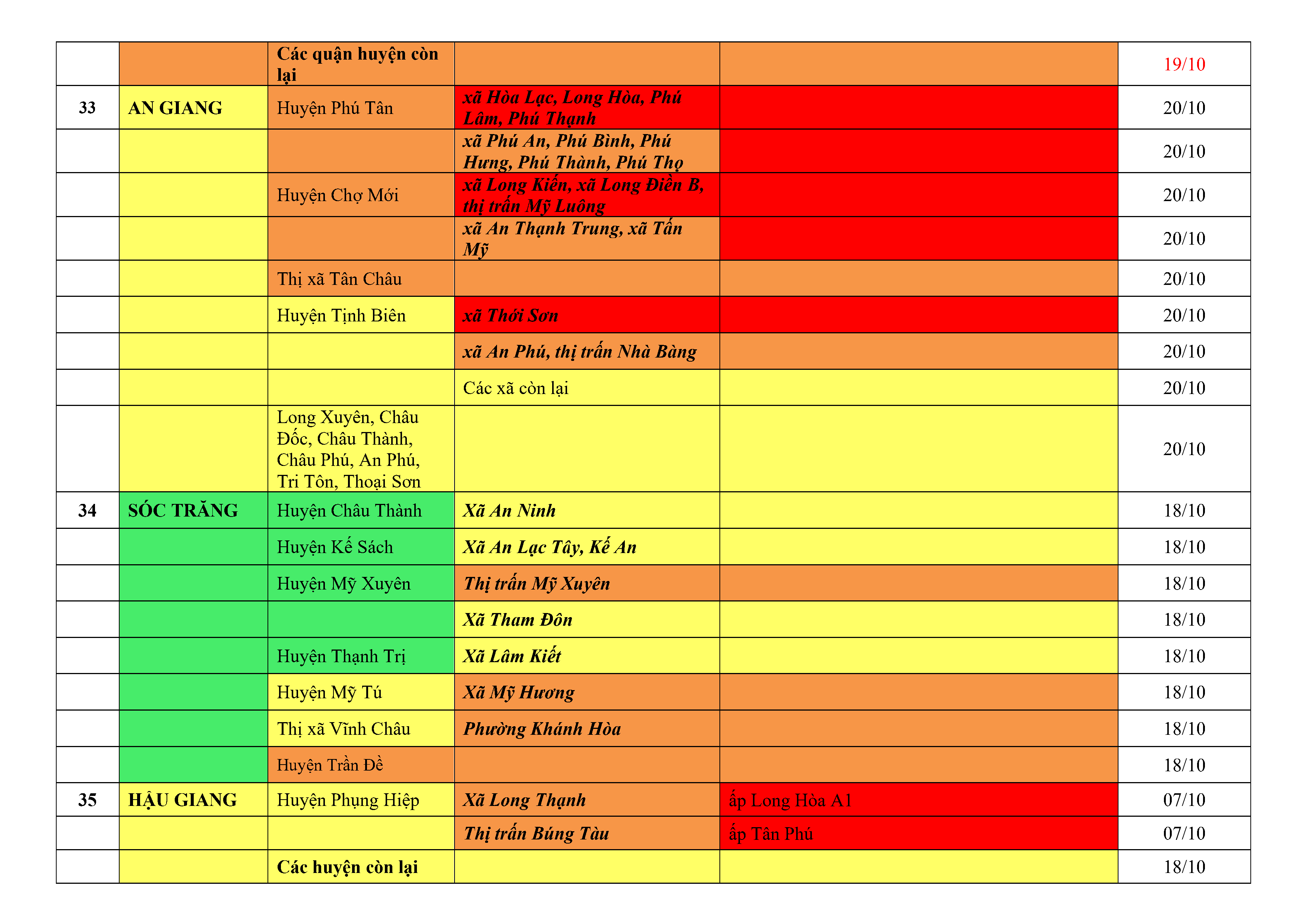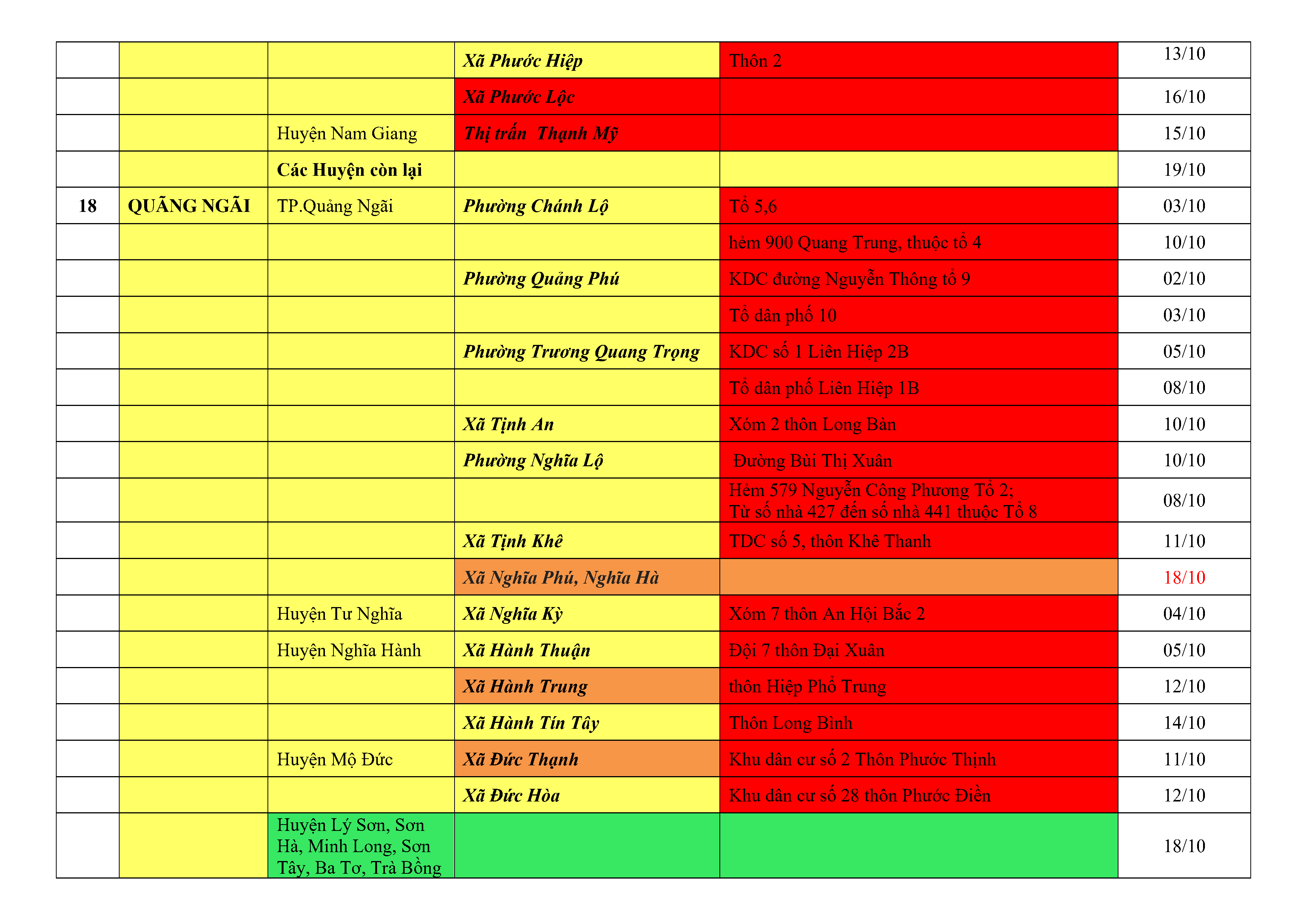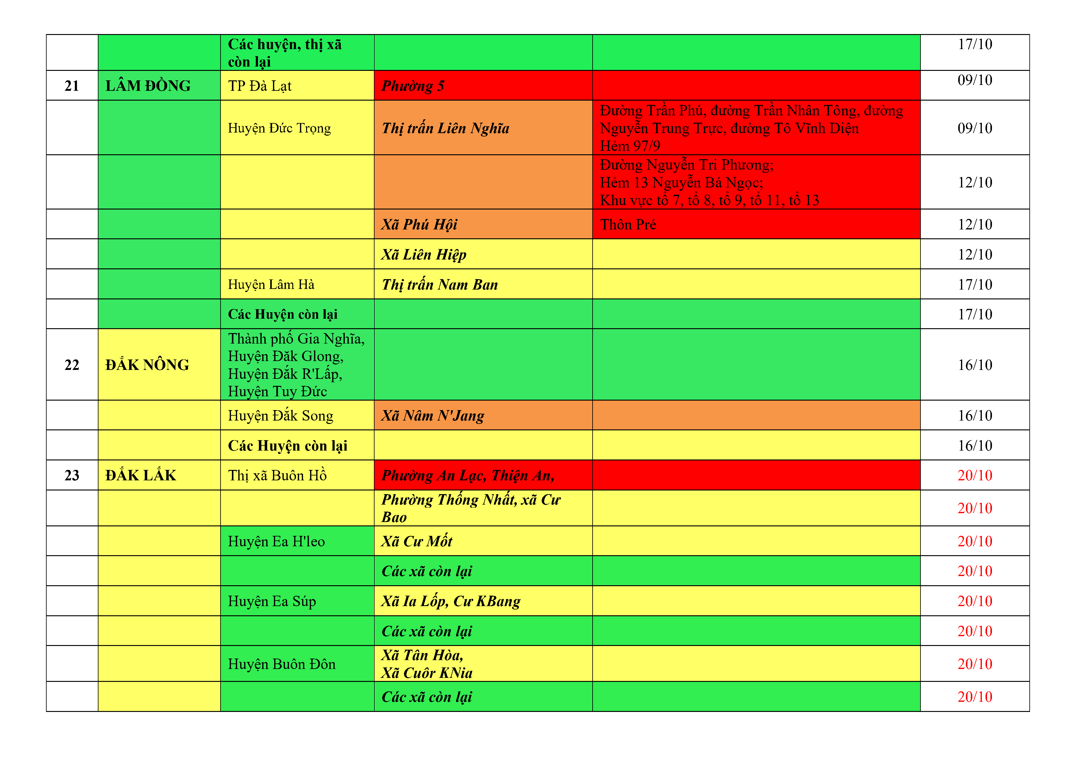 Lưu ý: Các tỉnh, thành phố không có tên trong bảng màu, đi lại bình thường, tuân thủ các biện pháp phòng chống dịch theo chỉ đạo của Bộ Y tế; khai bào y tế, thực hiện nghiêm 5K.