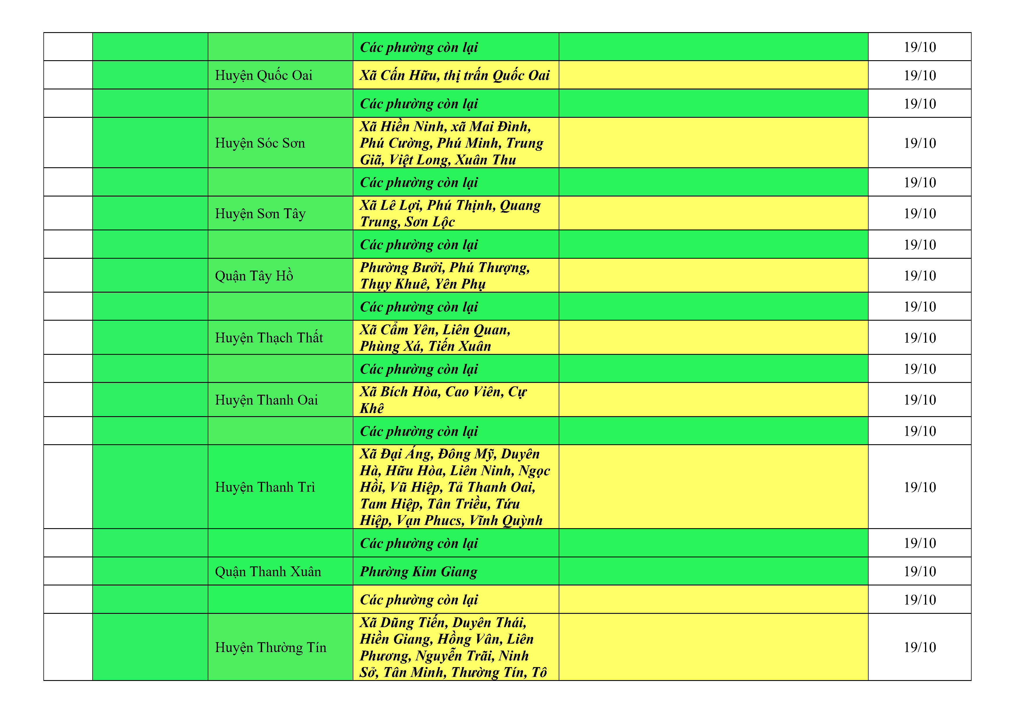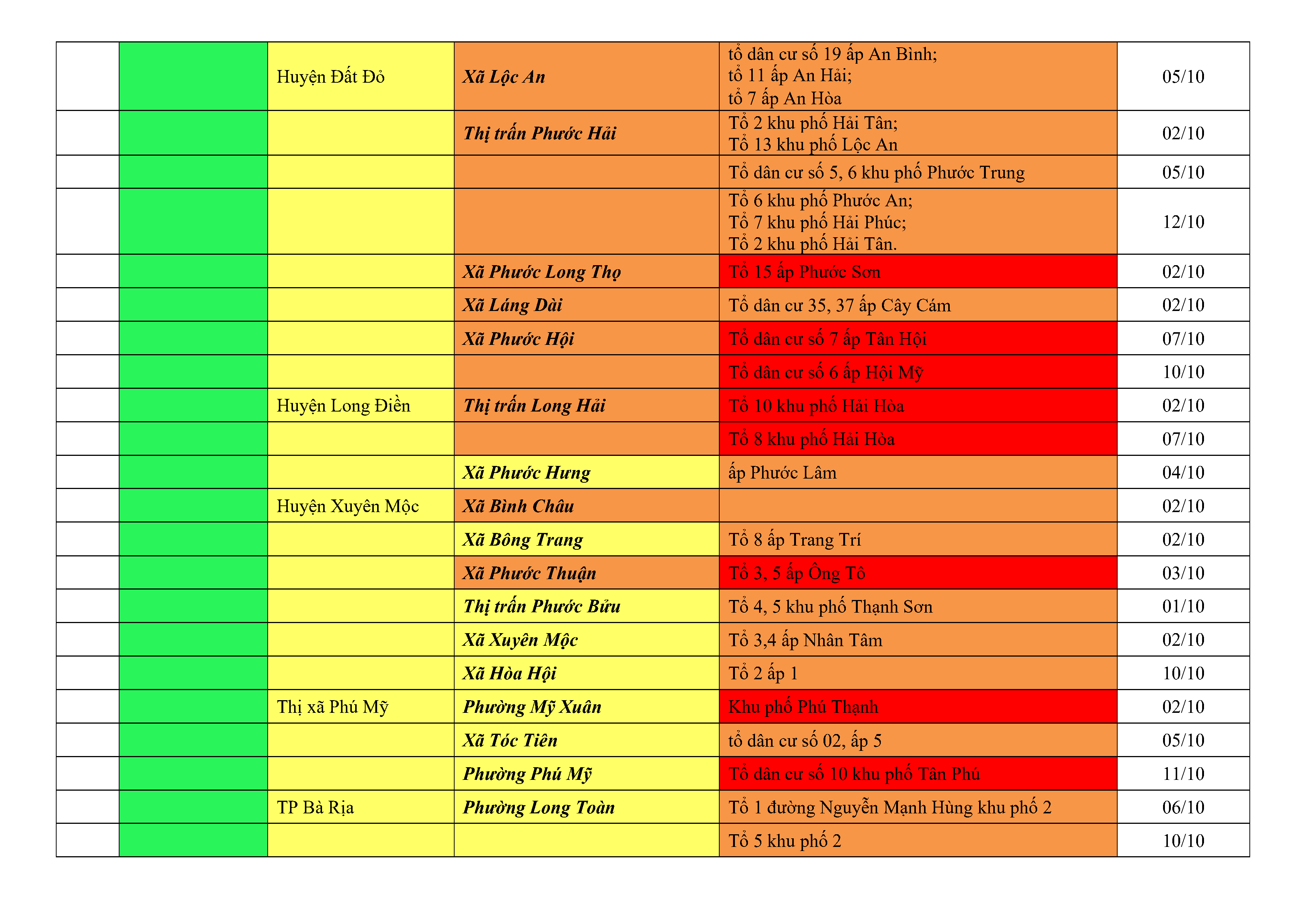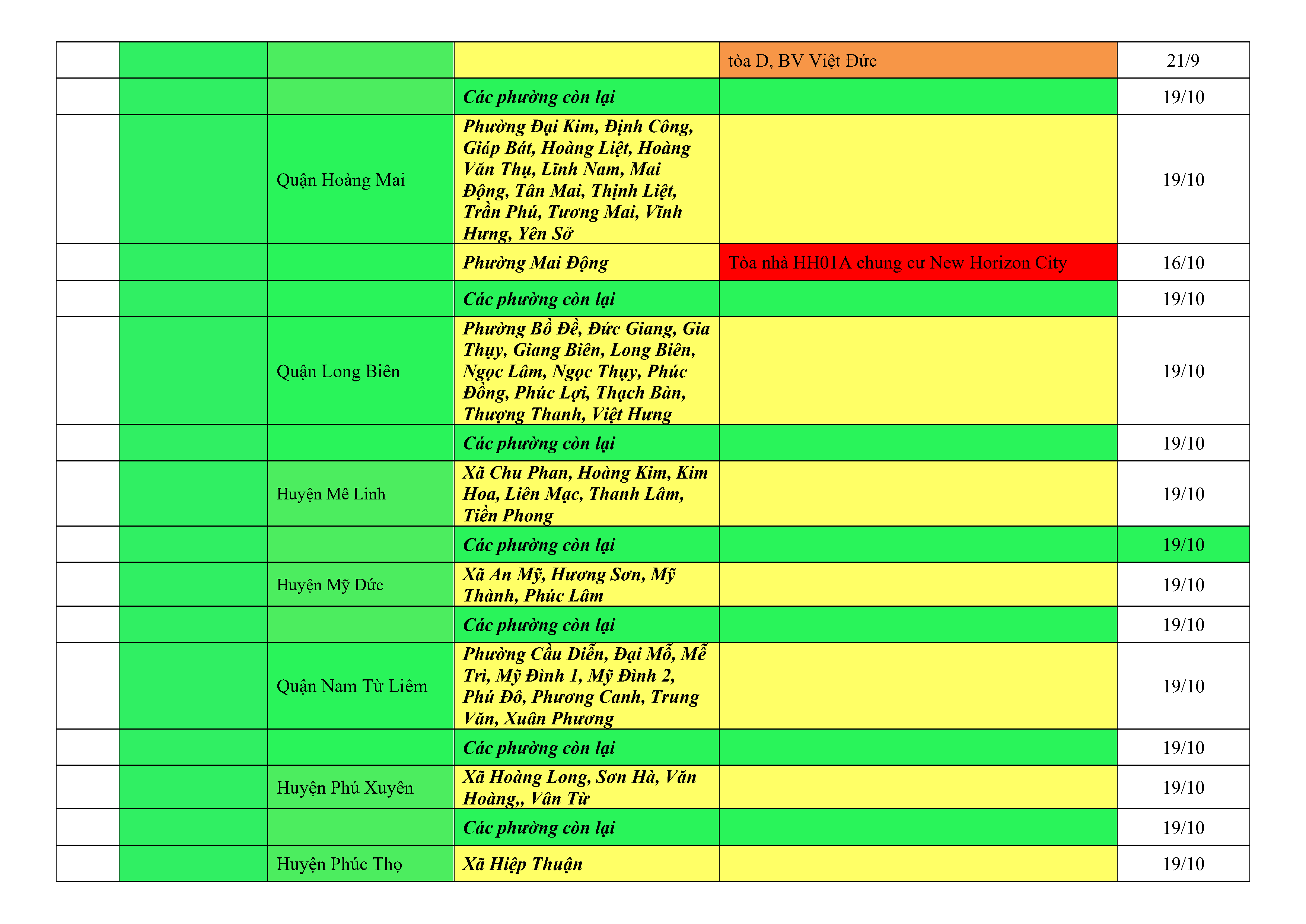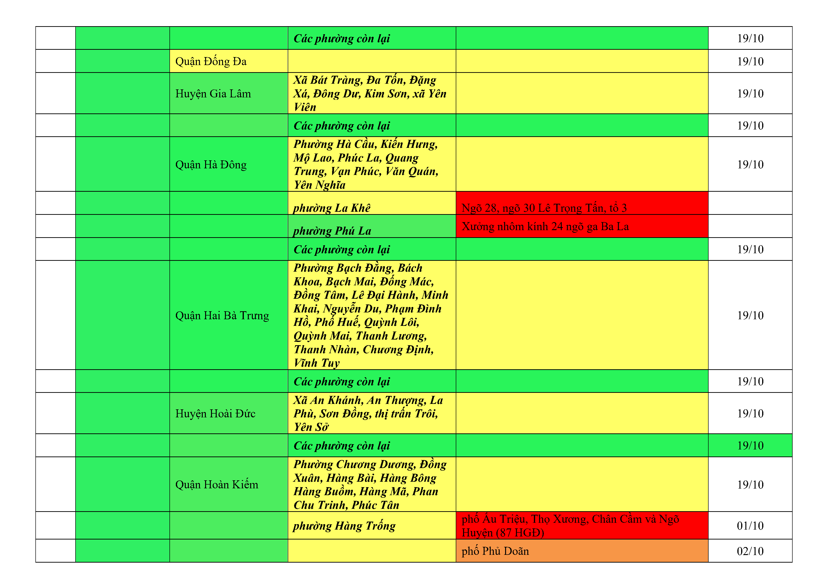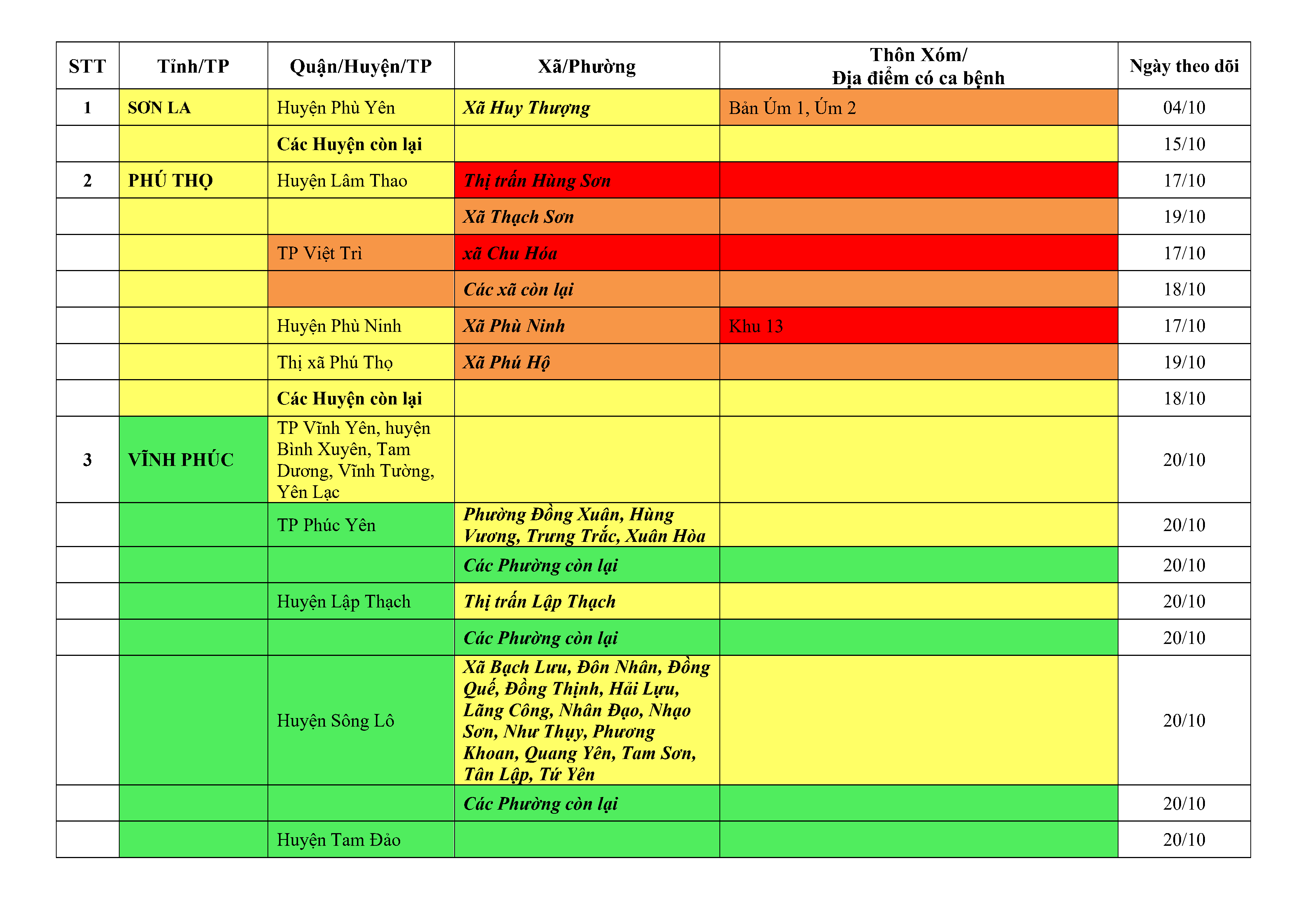 Lưu ý: Các tỉnh, thành phố không có tên trong bảng màu, đi lại bình thường, tuân thủ các biện pháp phòng chống dịch theo chỉ đạo của Bộ Y tế; khai bào y tế, thực hiện nghiêm 5K.