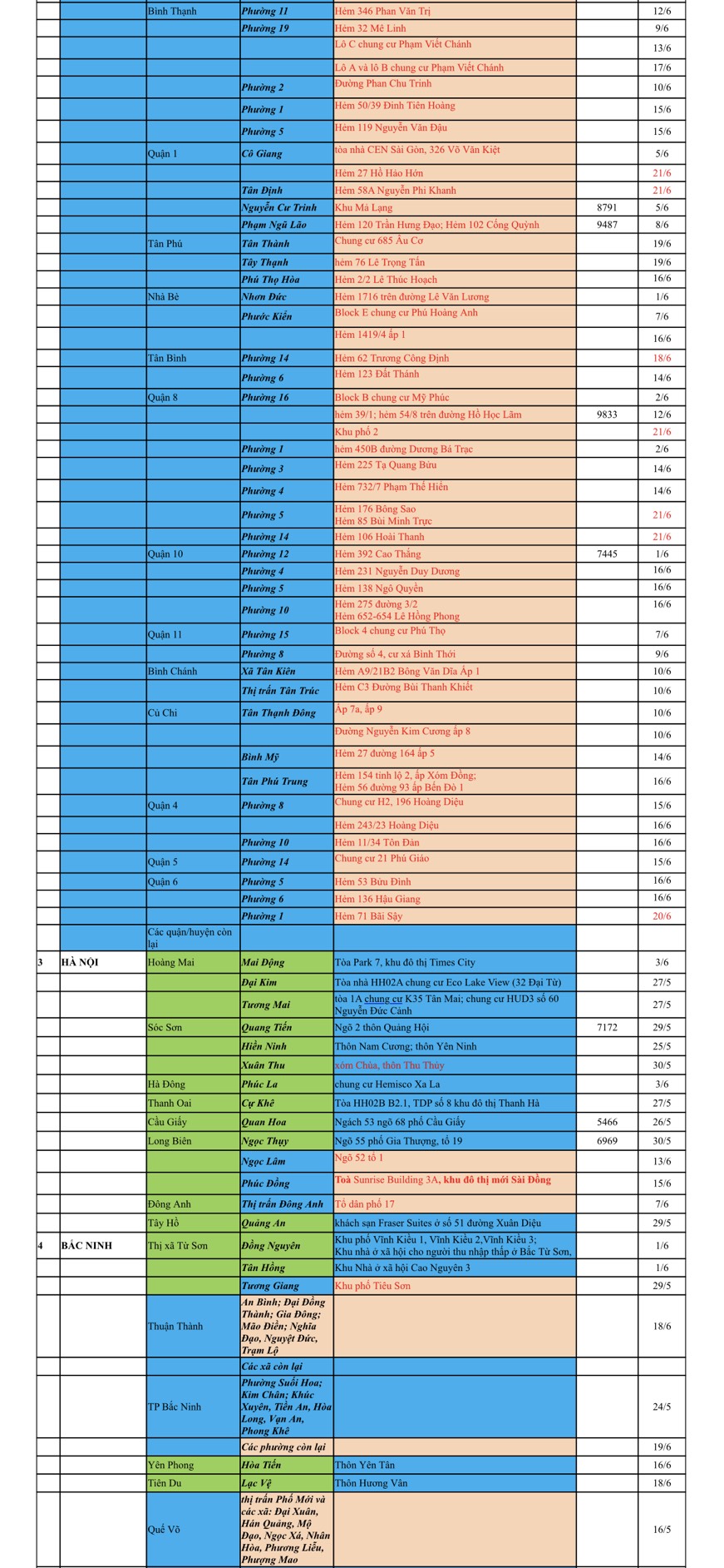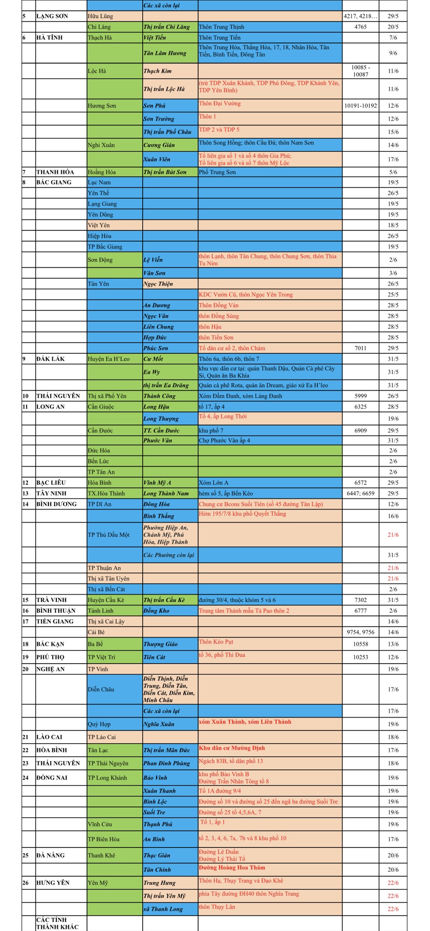 Cách ly tập trung theo MÀU CAM, Cách ly tại nhà theo MÀU XANH NƯỚC BIỂN, Khai báo, giám sát y tế theo MÀU XANH MẠ,