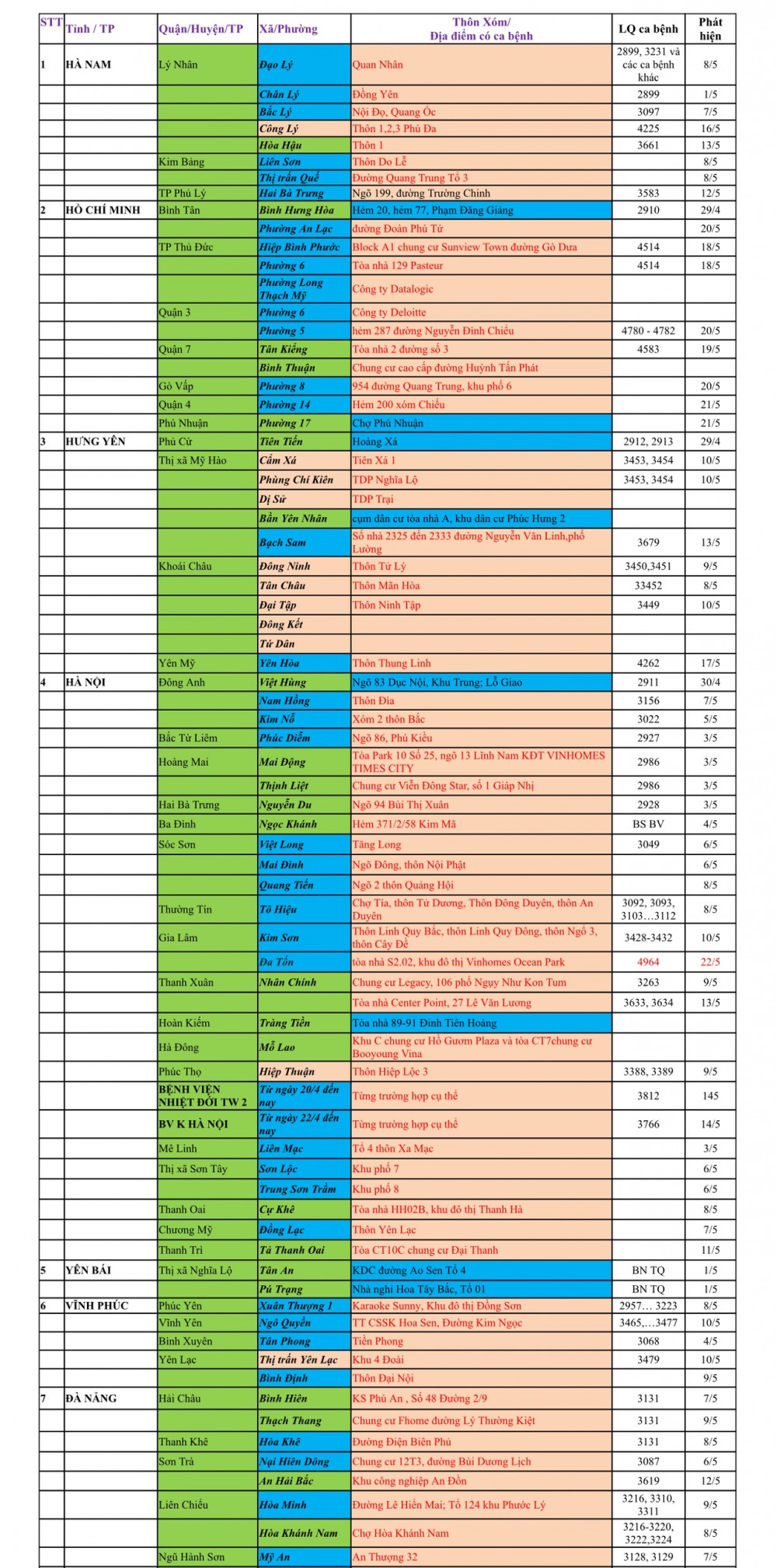 . Áp dụng các biện pháp Cách ly y tế đối với những người đến và trở về Hải Phòng, từ các vùng có ca bệnh tại cộng đồng theo Bảng trên.