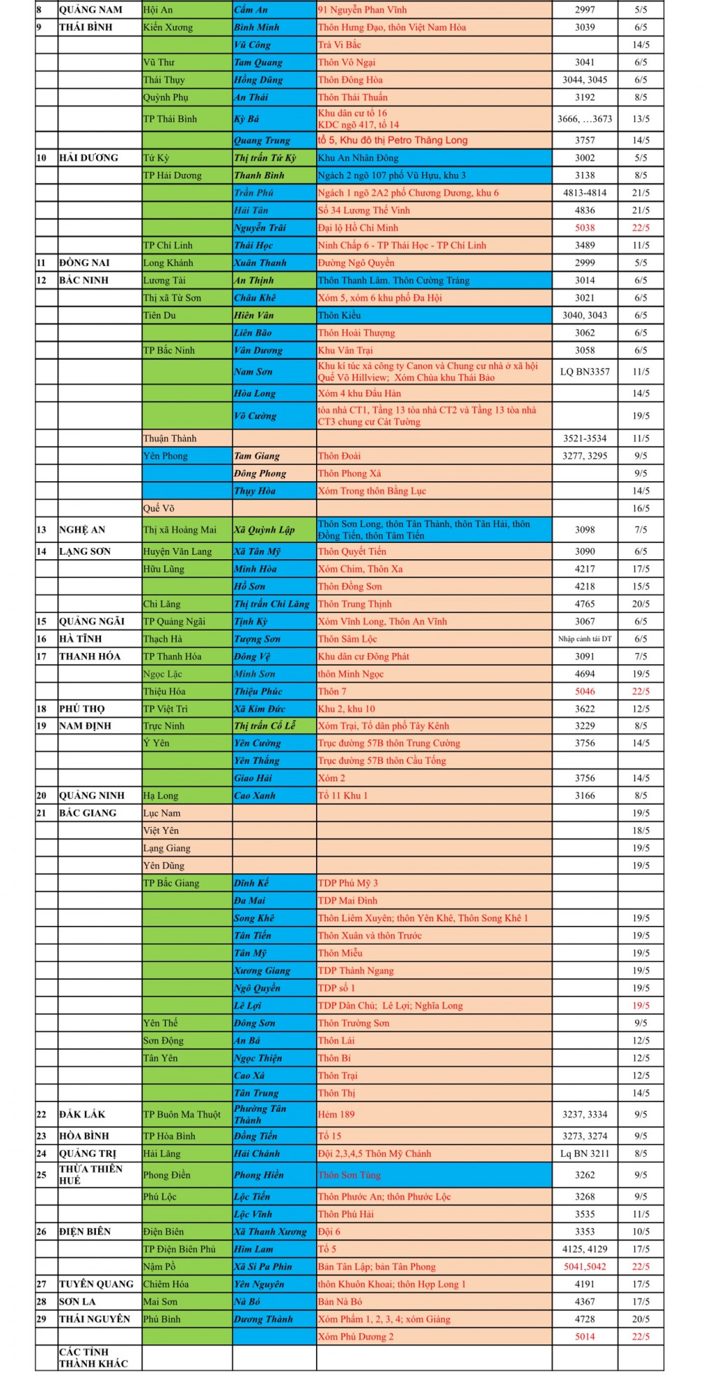 Cách ly tập trung theo MÀU CAM, Cách ly tại nhà theo MÀU XANH NƯỚC BIỂN, Khai báo, giám sát y tế theo MÀU XANH MẠ,