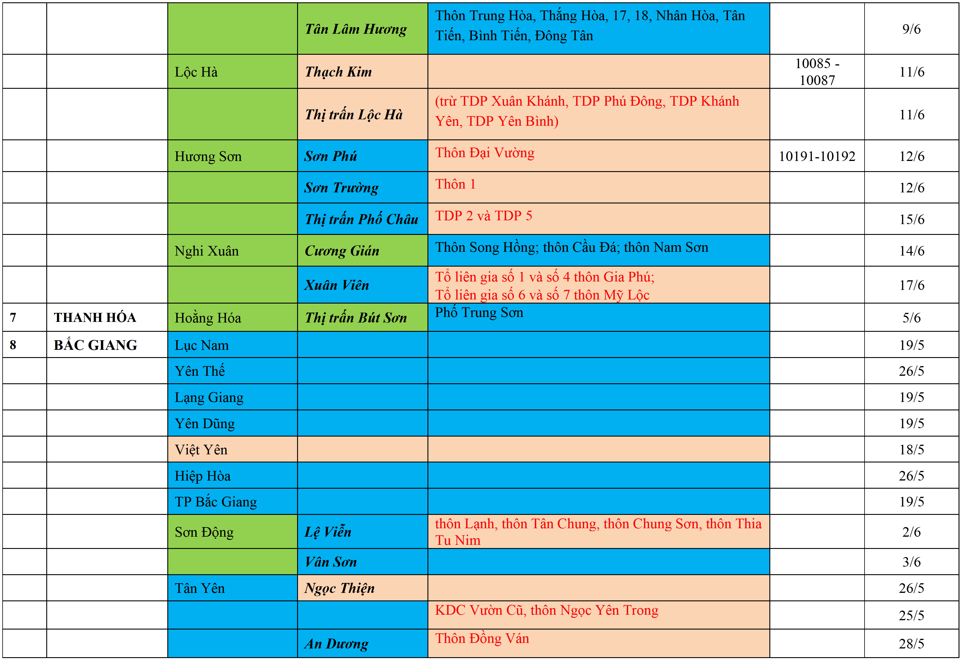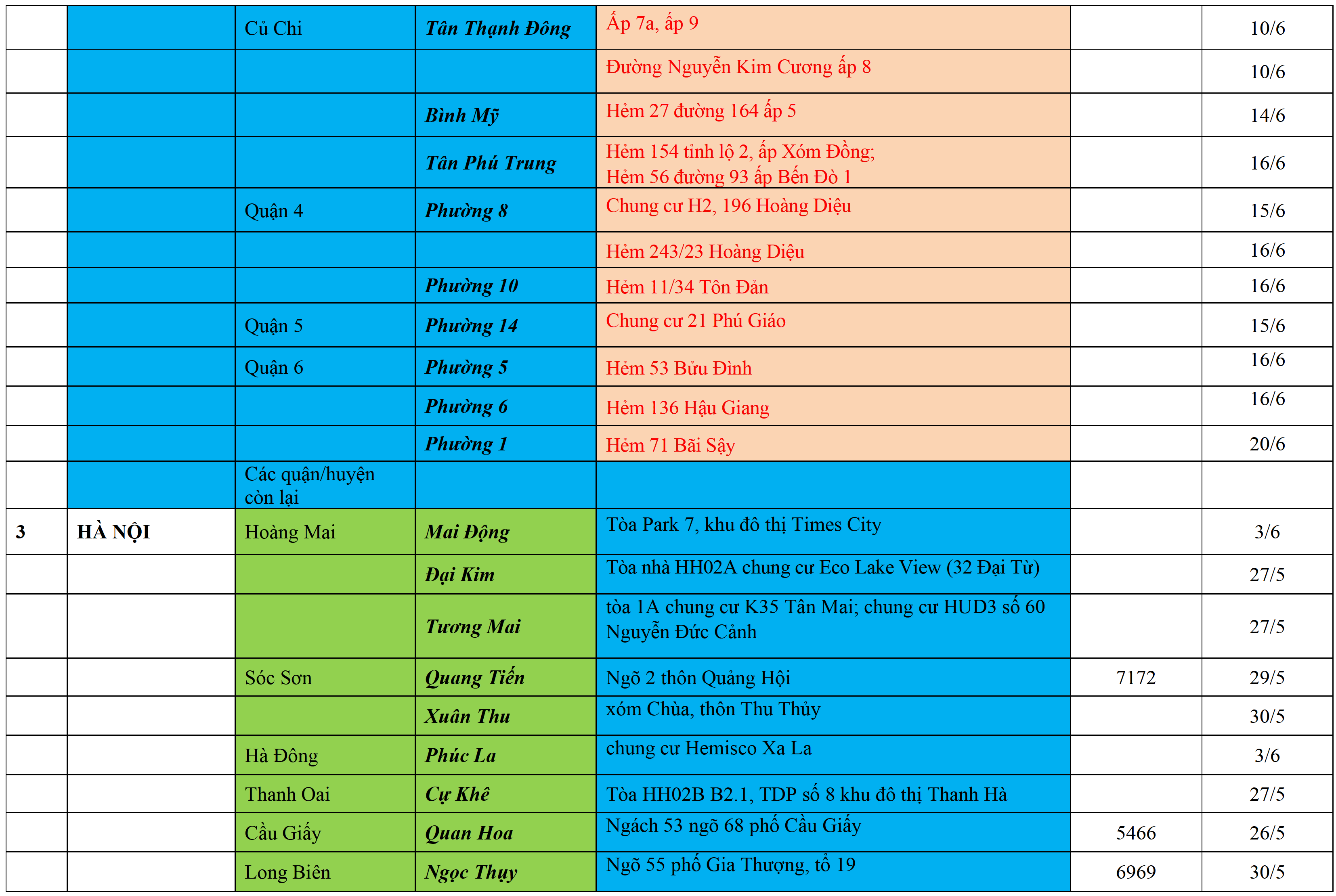 Cách ly tập trung theo MÀU CAM, Cách ly tại nhà theo MÀU XANH NƯỚC BIỂN, Khai báo, giám sát y tế theo MÀU XANH MẠ; Không áp dụng các biện pháp cách ly y tế theo MÀU TRẮNG;