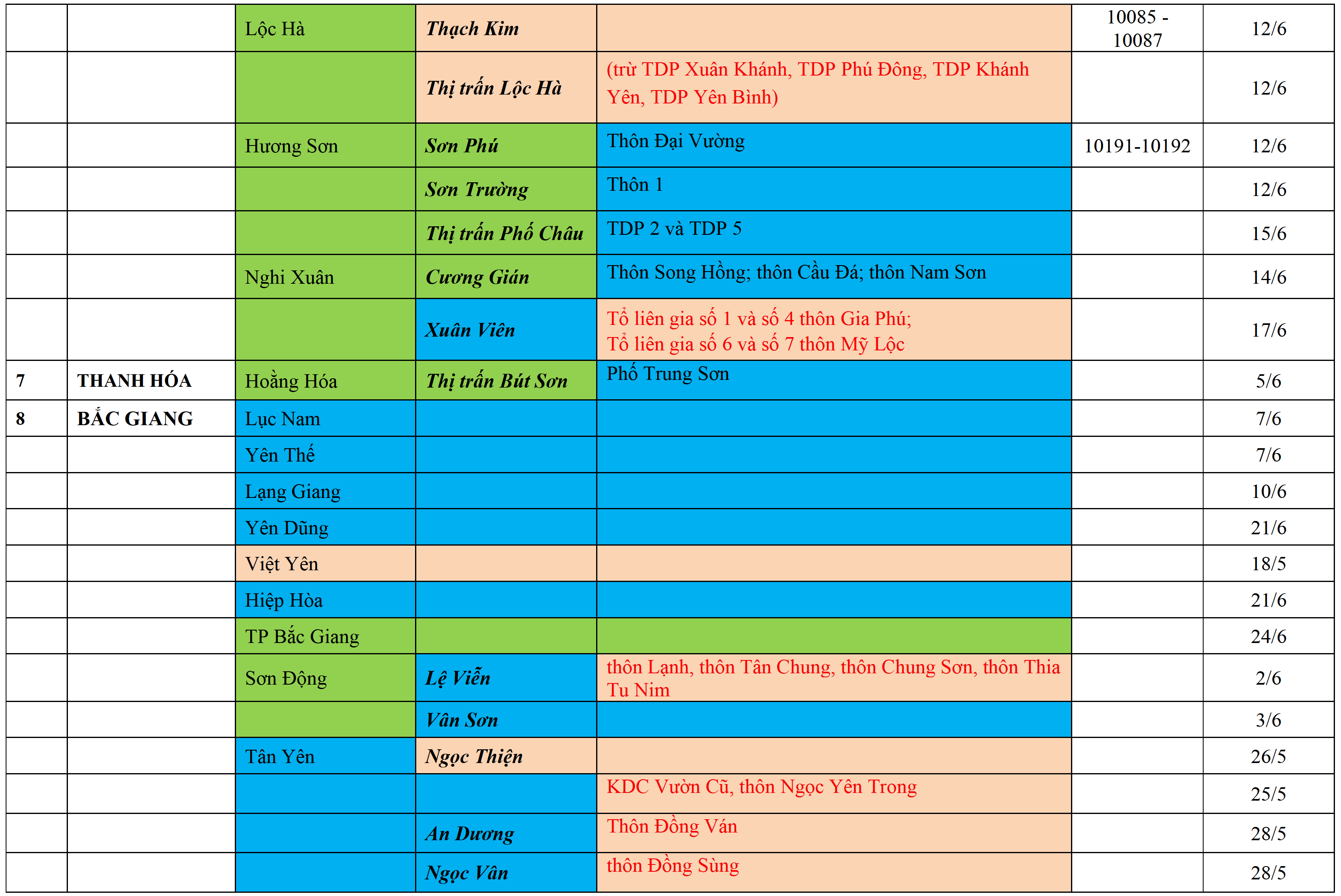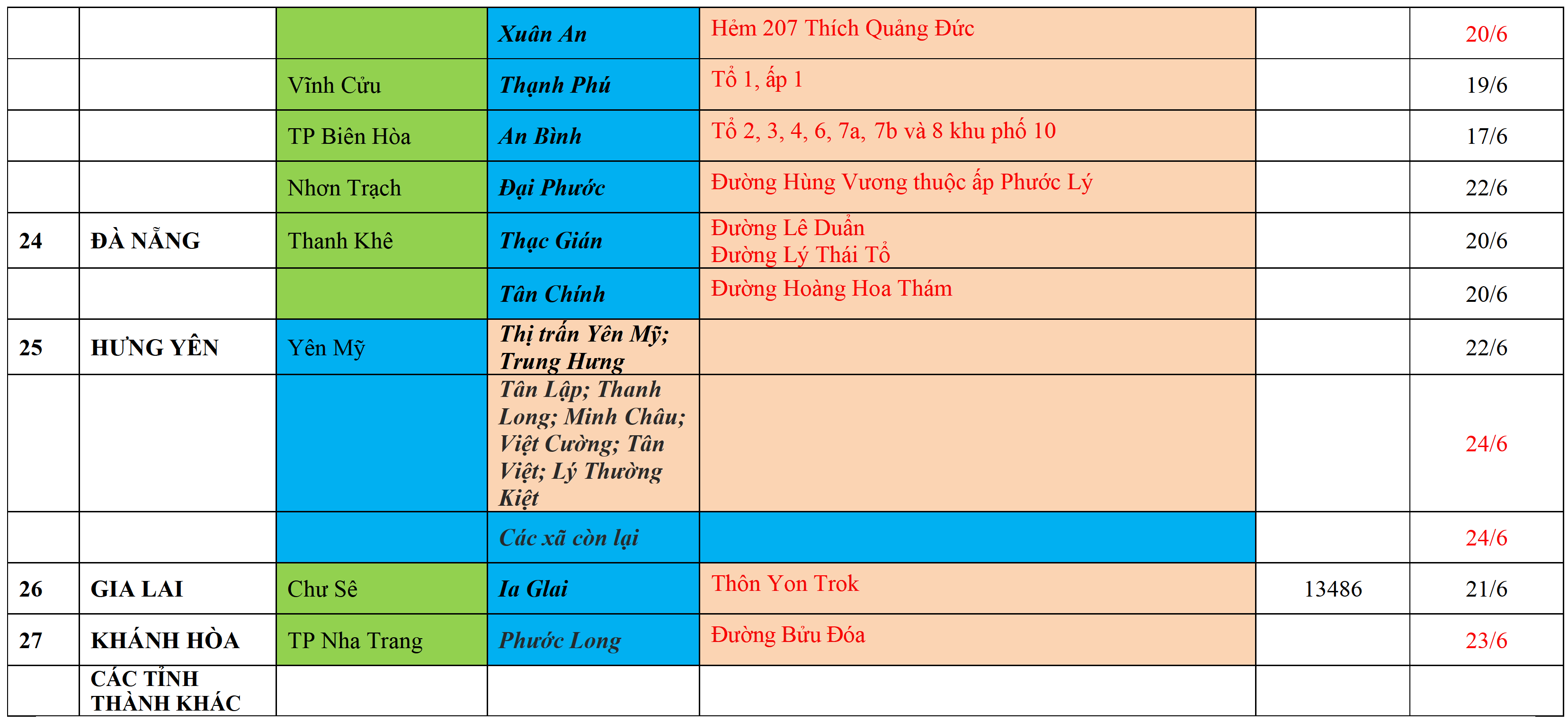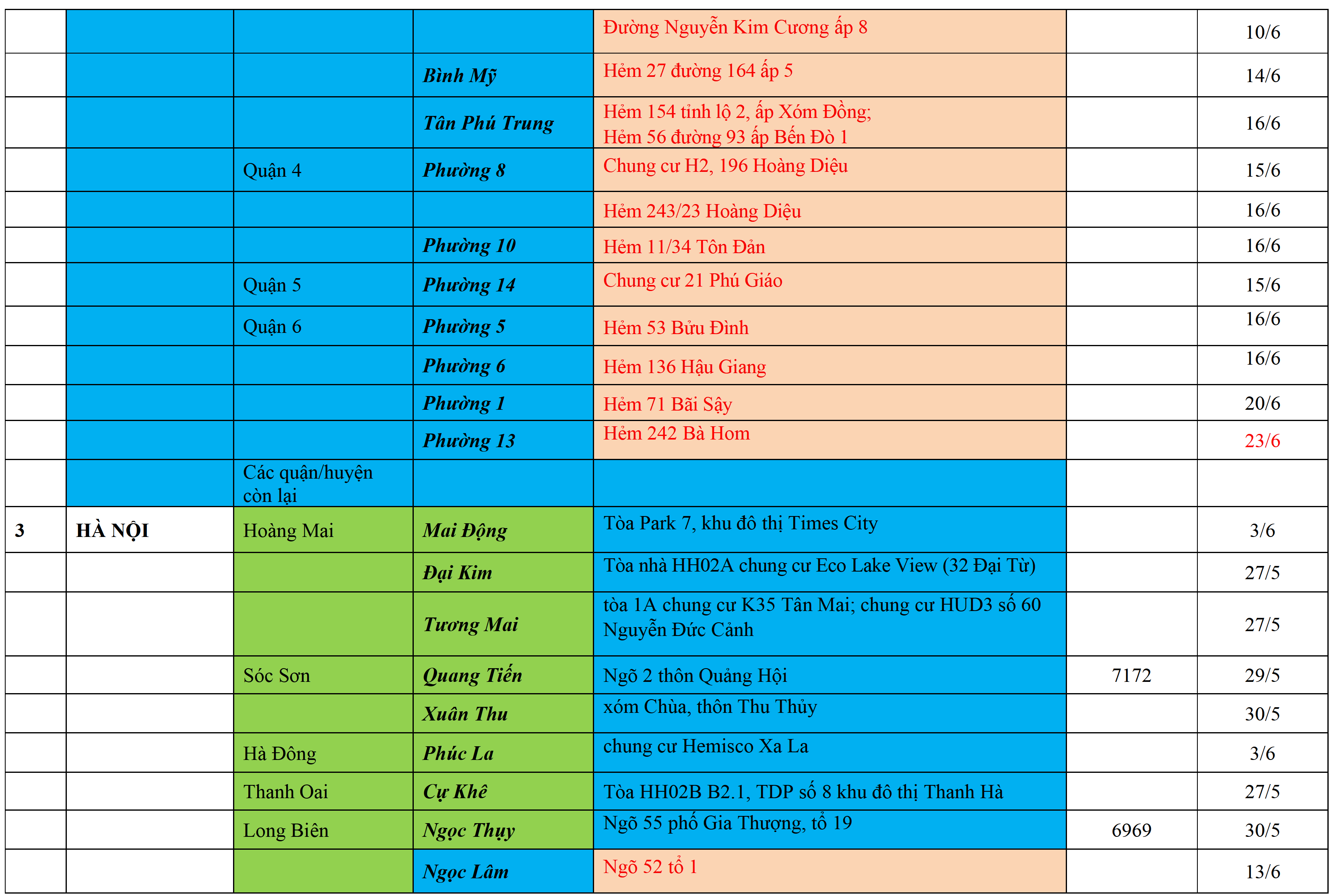 Cách ly tập trung theo MÀU CAM, Cách ly tại nhà theo MÀU XANH NƯỚC BIỂN, Khai báo, giám sát y tế theo MÀU XANH MẠ; Không áp dụng các biện pháp cách ly y tế theo MÀU TRẮNG;