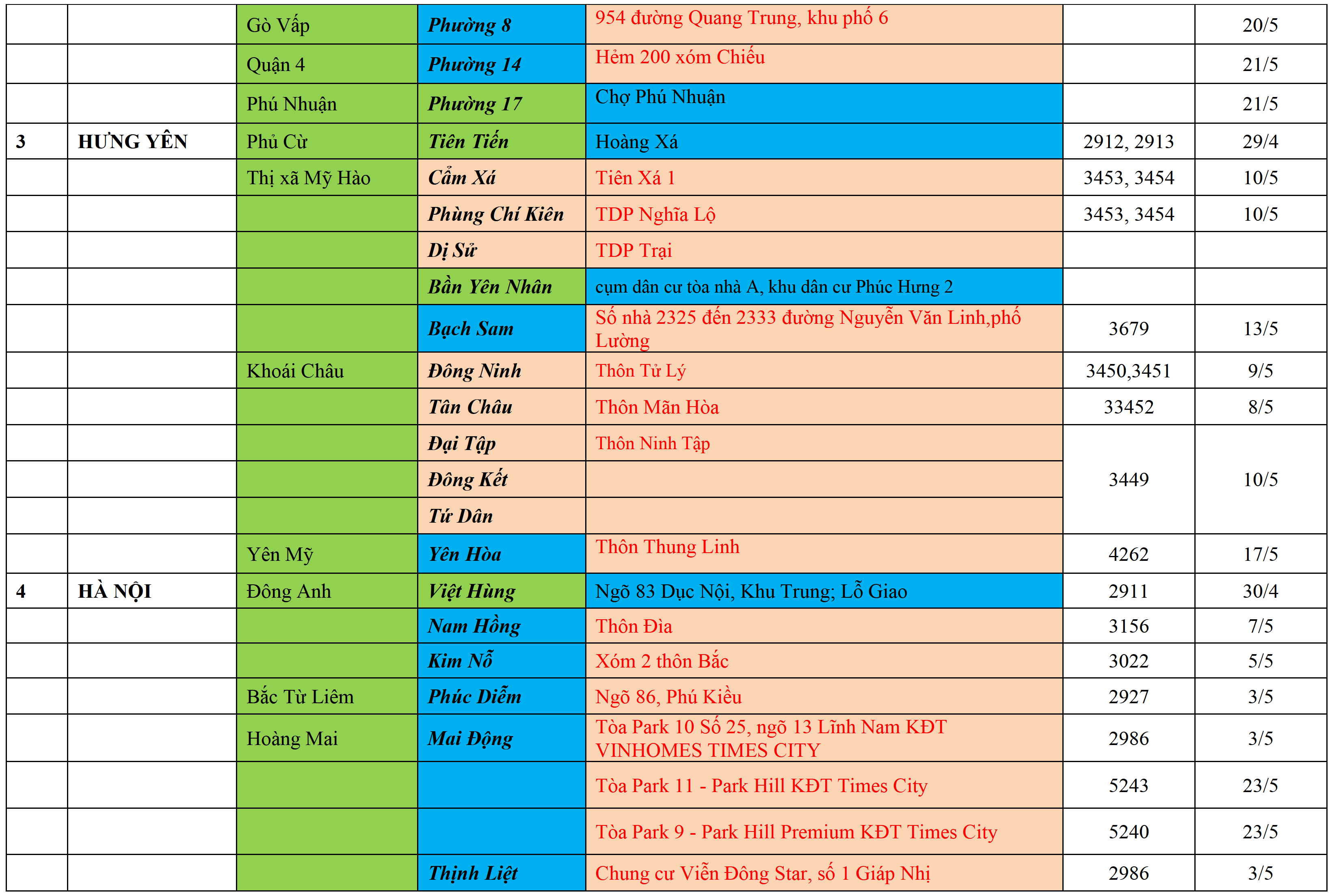 . Mọi người dân thực hiện 5K theo khuyến cáo của Bộ Y tế. Thực hiện công văn số 2803//UBND-VX ngày 30/4/2021; Thông báo số 164/TB-UBND ngày 5/5/2021, Công văn số 2928/UBND-VX ngày 8/5/2021, Thông báo số 2976/UBND-GT ngày 11/5/2021 về việc thực hiện các biện pháp phòng chống dịch COVID-19 trong hoạt động vận tải, công văn 3107/UBND-VX ngày 15/5/2021 về việc tăng cường một số biện pháp phòng, chống dịch COVID-19 tại cơ sở sản xuất kinh doanh, khu công nghiệp, cụm công nghiệp, công văn số 3175 /UBND-VX, ngày 18/5/2021 về việc tăng cường một số biện pháp phòng, chống dịch bệnh Covid-19 và đảm bảo tổ chức thành công cuộc bầu cử đại biểu Quốc hội và Hội đồng nhân dân các cấp của UBND TP Hải Phòng.