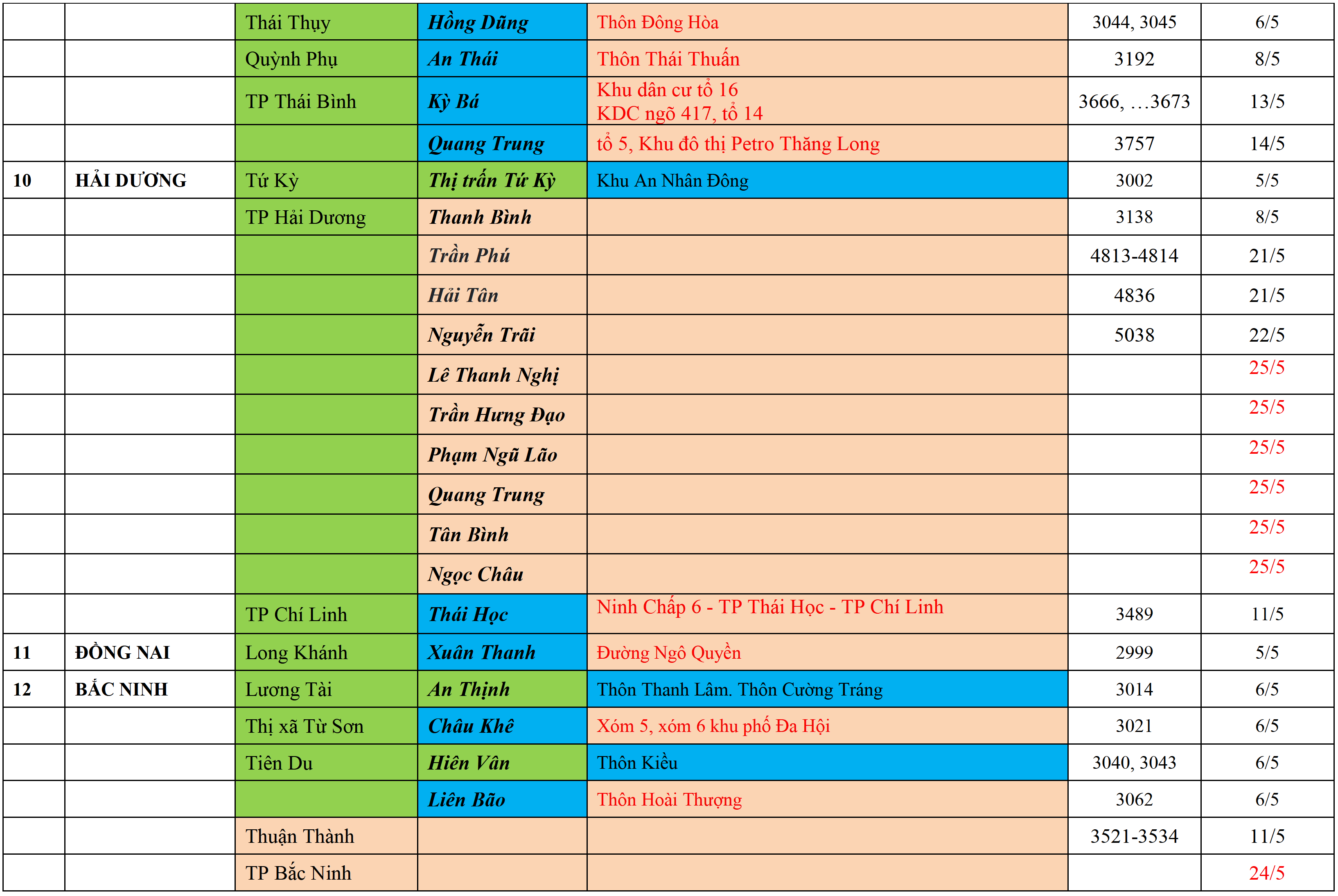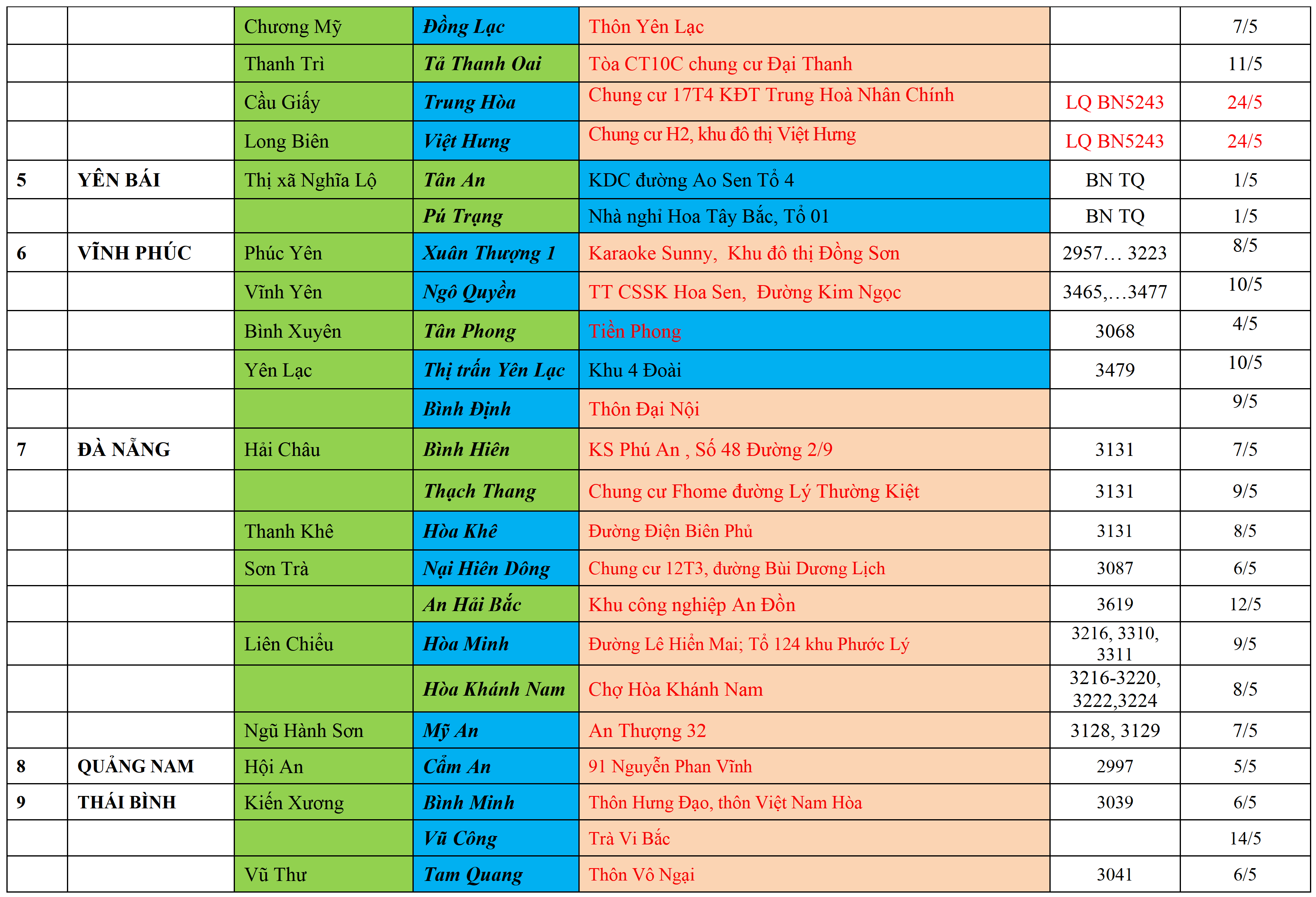 . Áp dụng các biện pháp Cách ly y tế đối với những người đến và trở về Hải Phòng, từ các vùng có ca bệnh tại cộng đồng theo Bảng trên.