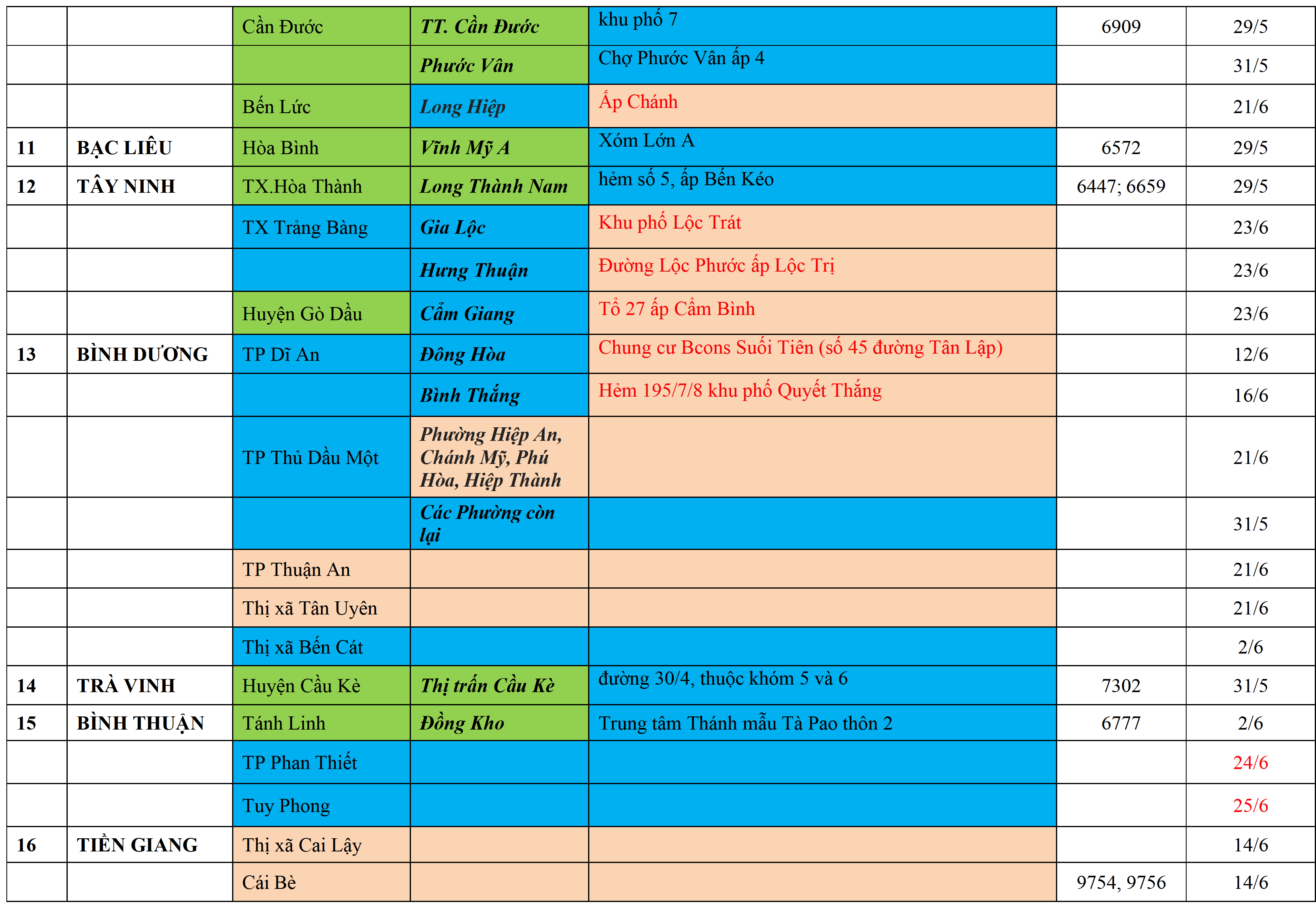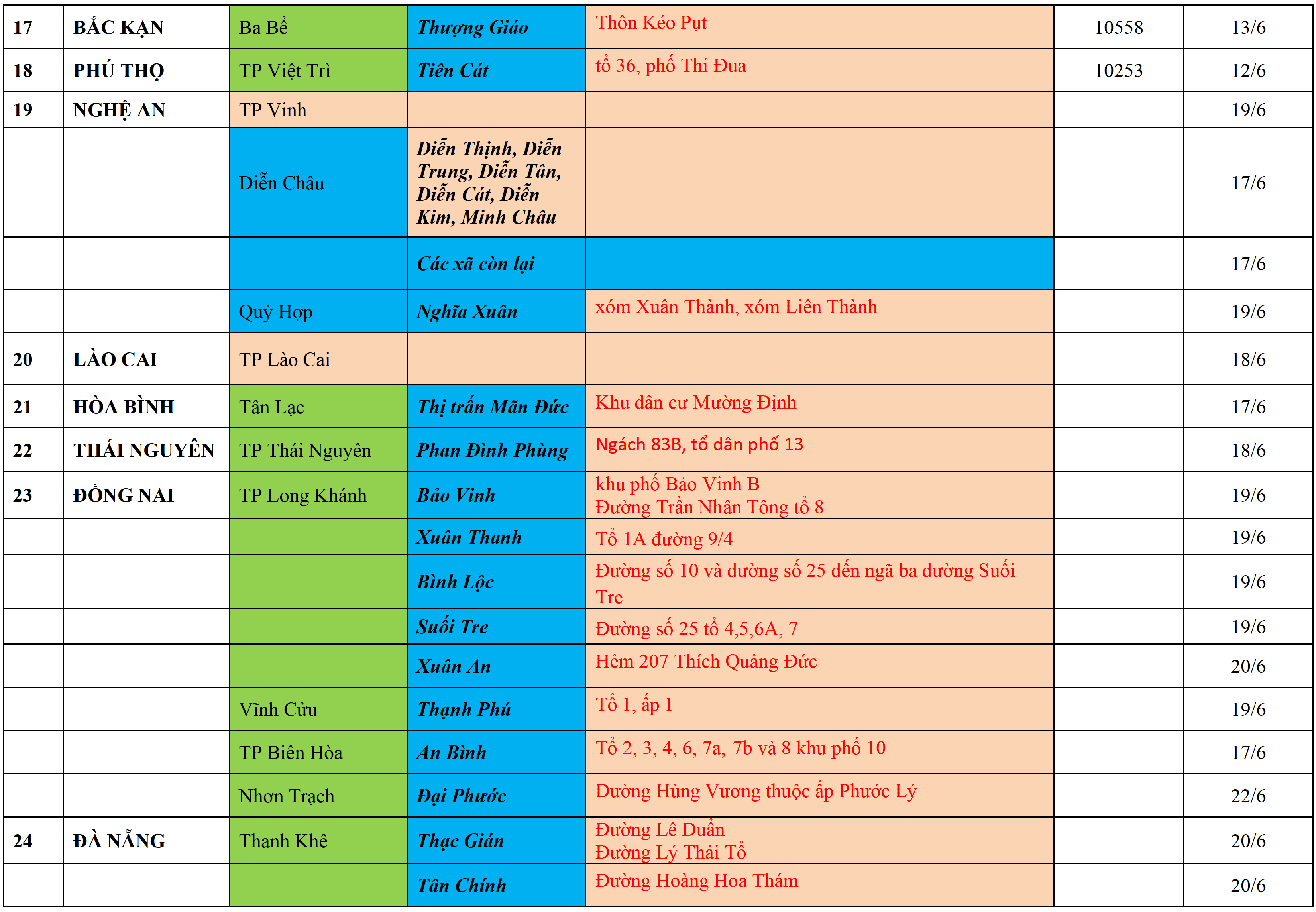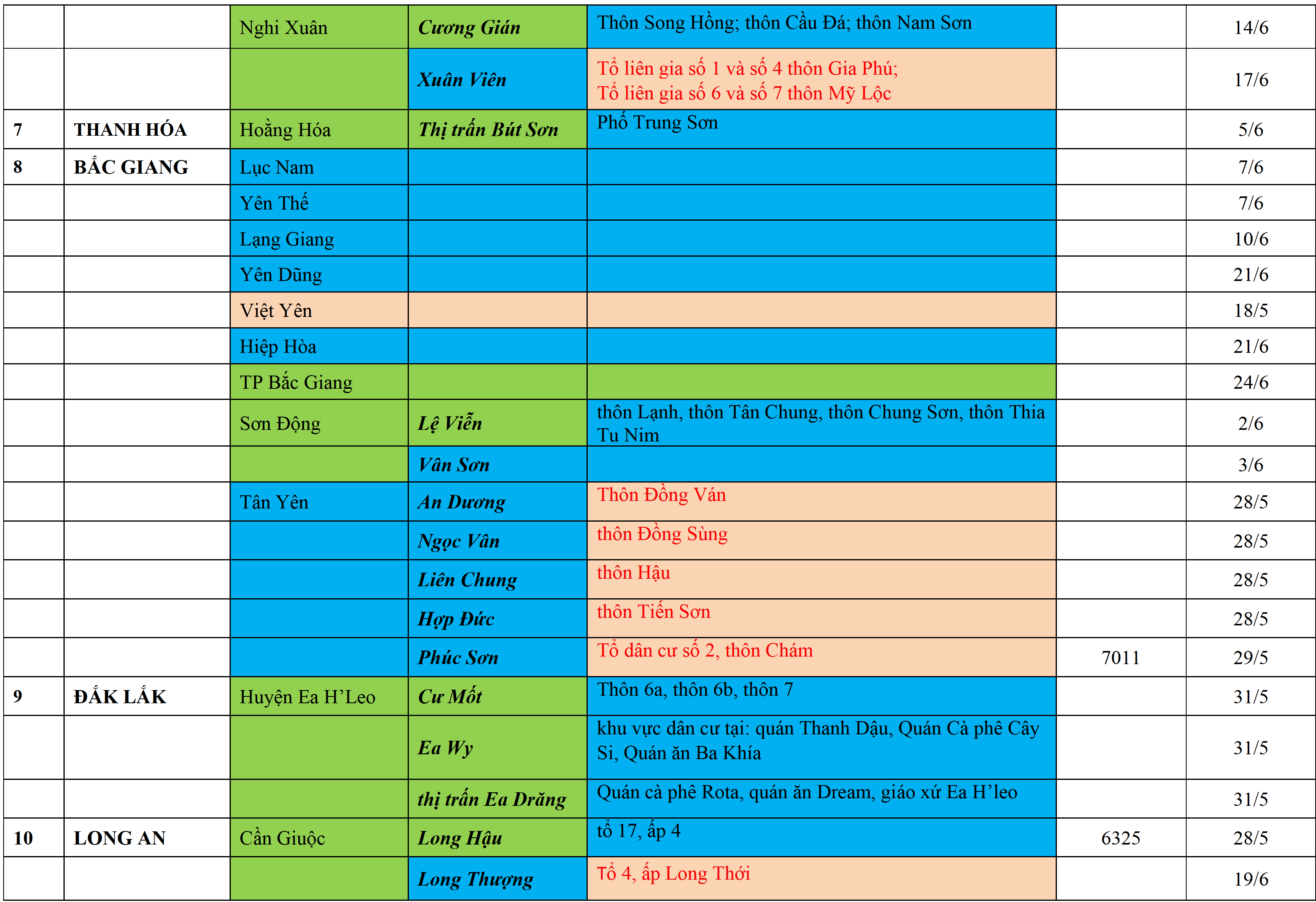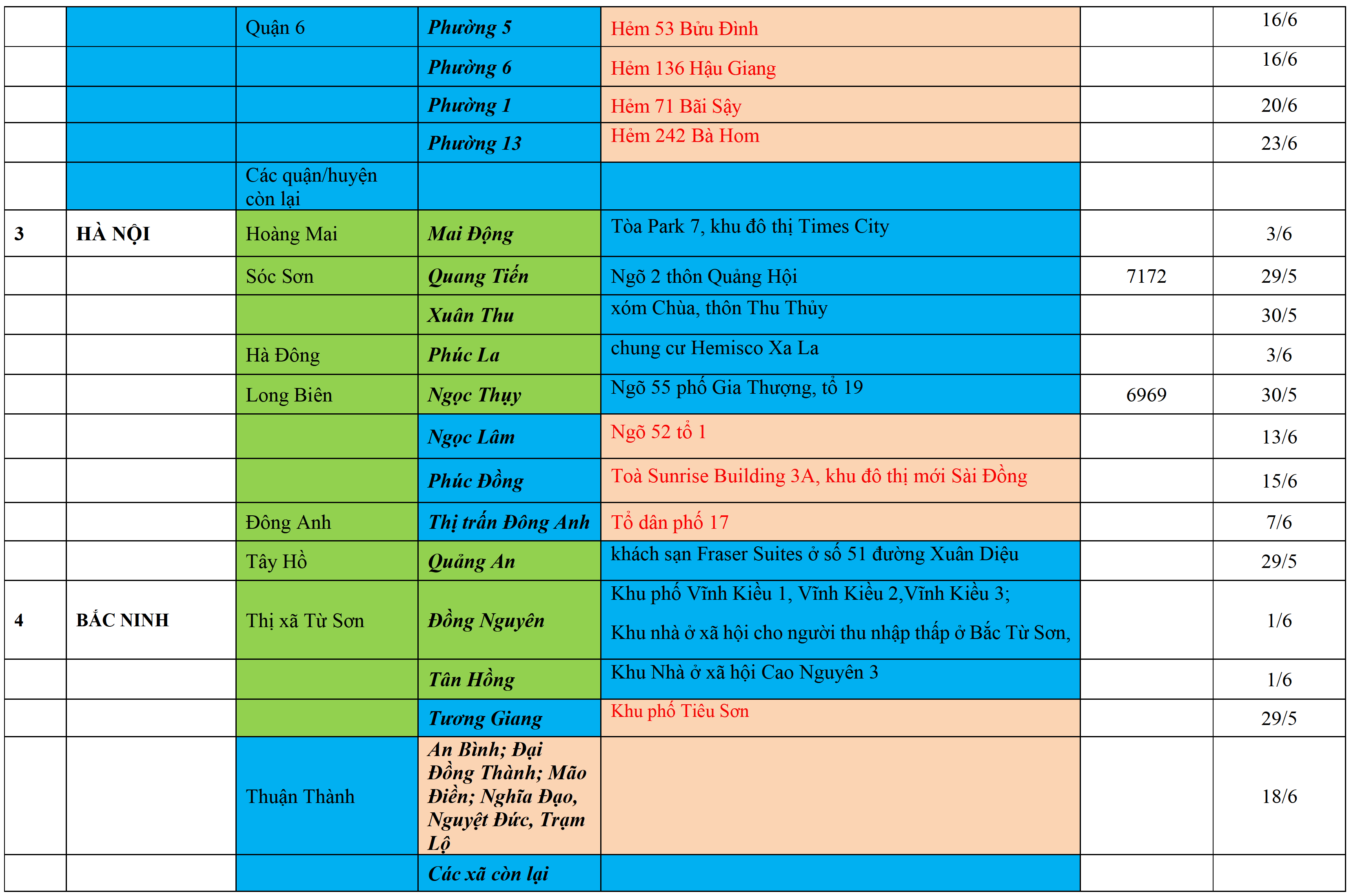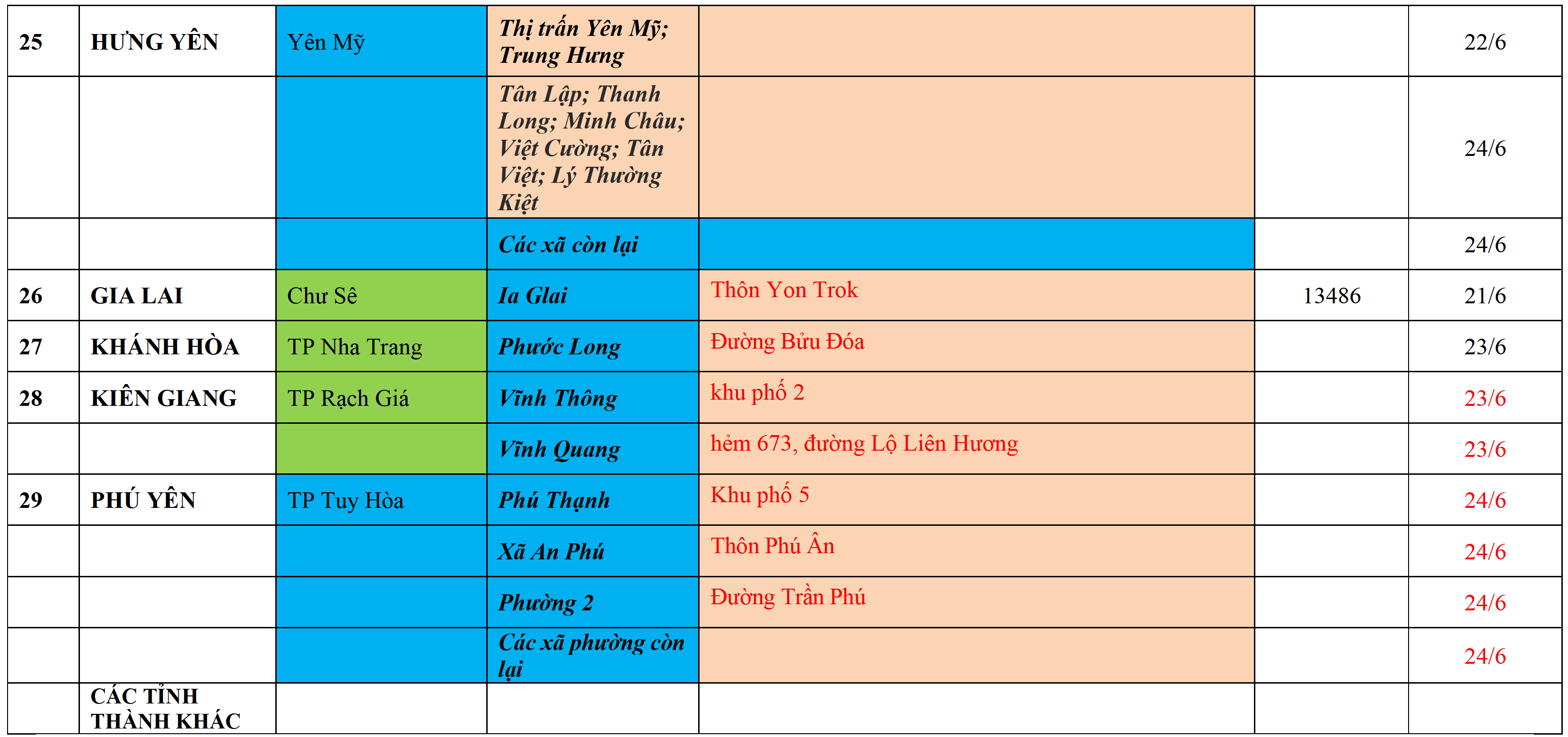 Cách ly tập trung theo MÀU CAM, Cách ly tại nhà theo MÀU XANH NƯỚC BIỂN, Khai báo, giám sát y tế theo MÀU XANH MẠ; Không áp dụng các biện pháp cách ly y tế theo MÀU TRẮNG;