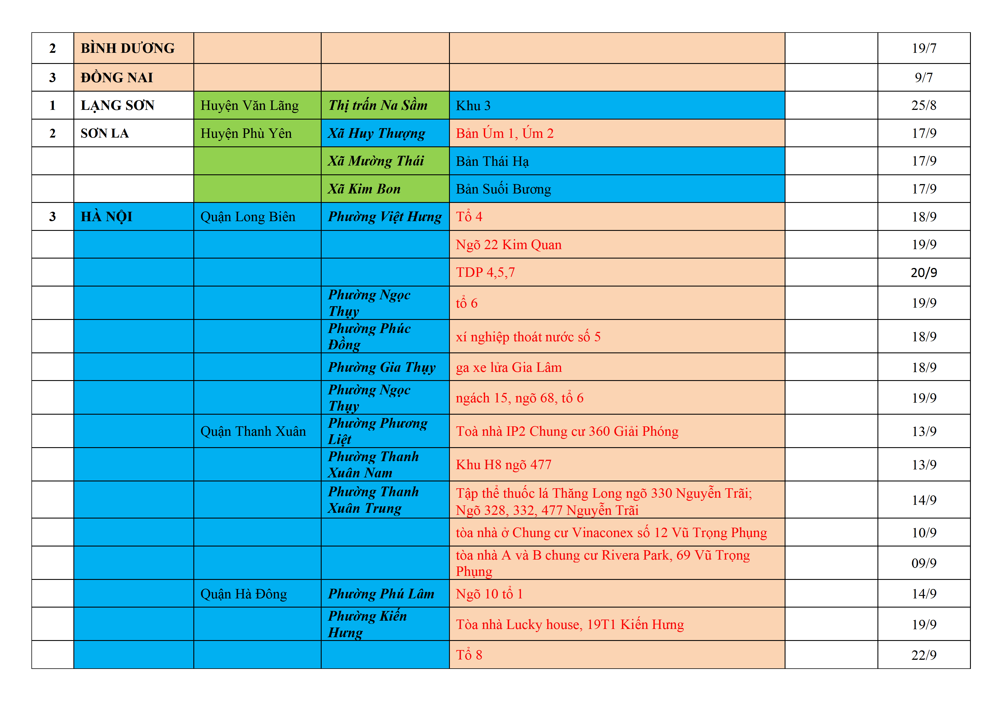 Biện pháp phòng chống dịch: Áp dụng biện pháp tương ứng màu sắc ô cột theo thôn xóm; xã phường; quận huyện; tỉnh thành phố. Cách ly y tế dựa vào việc tiếp xúc, đi đến địa điểm và nơi cư trú có ca bệnh, theo Thông báo của Bộ Y tế, các tỉnh thành phố.