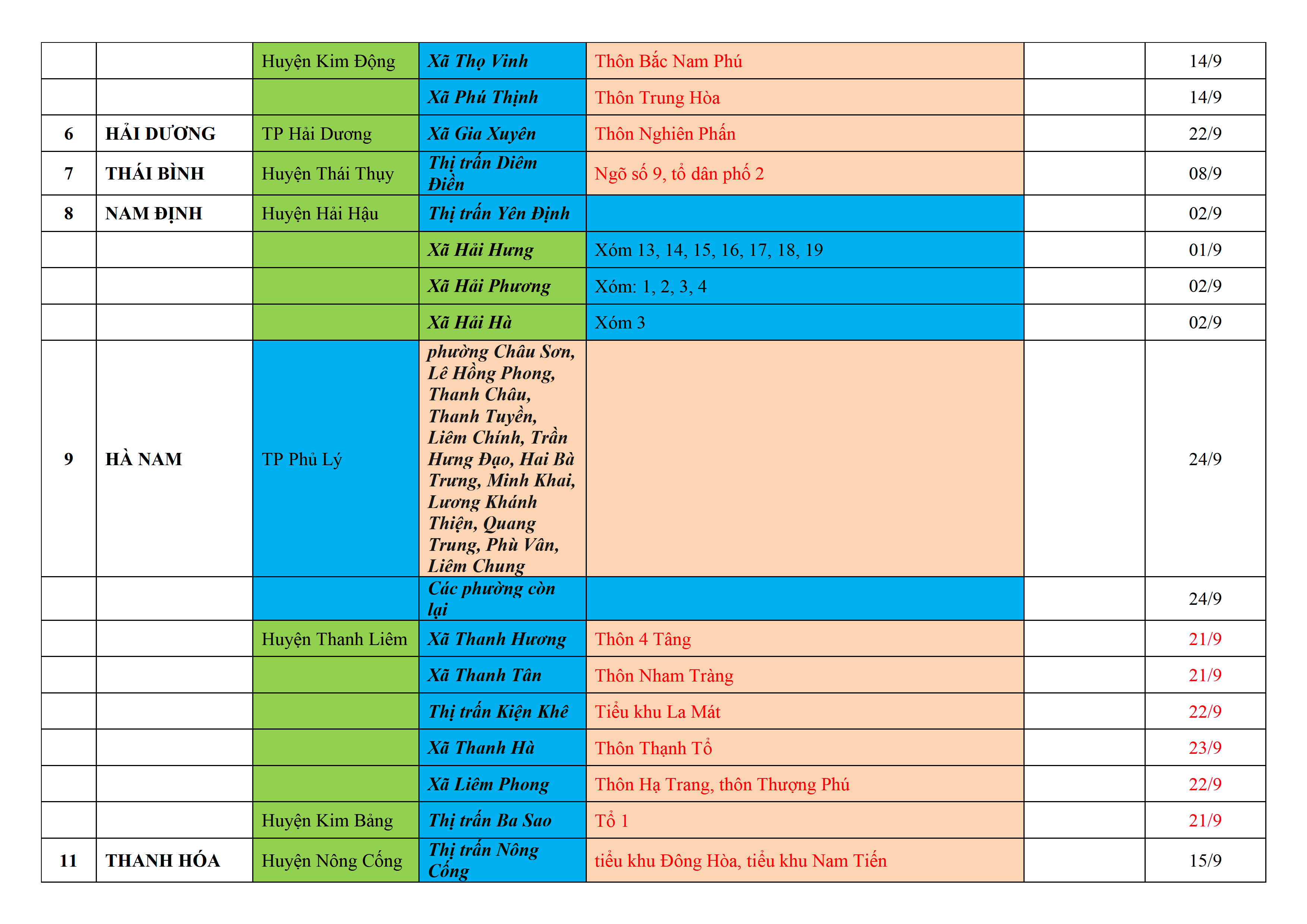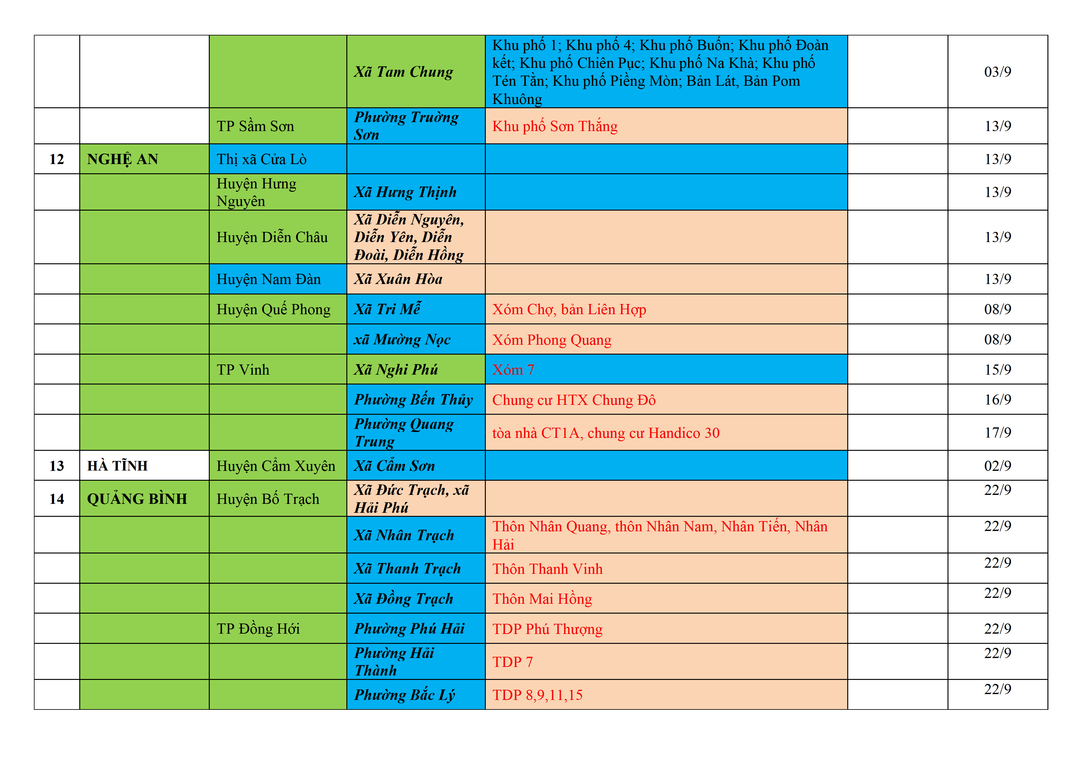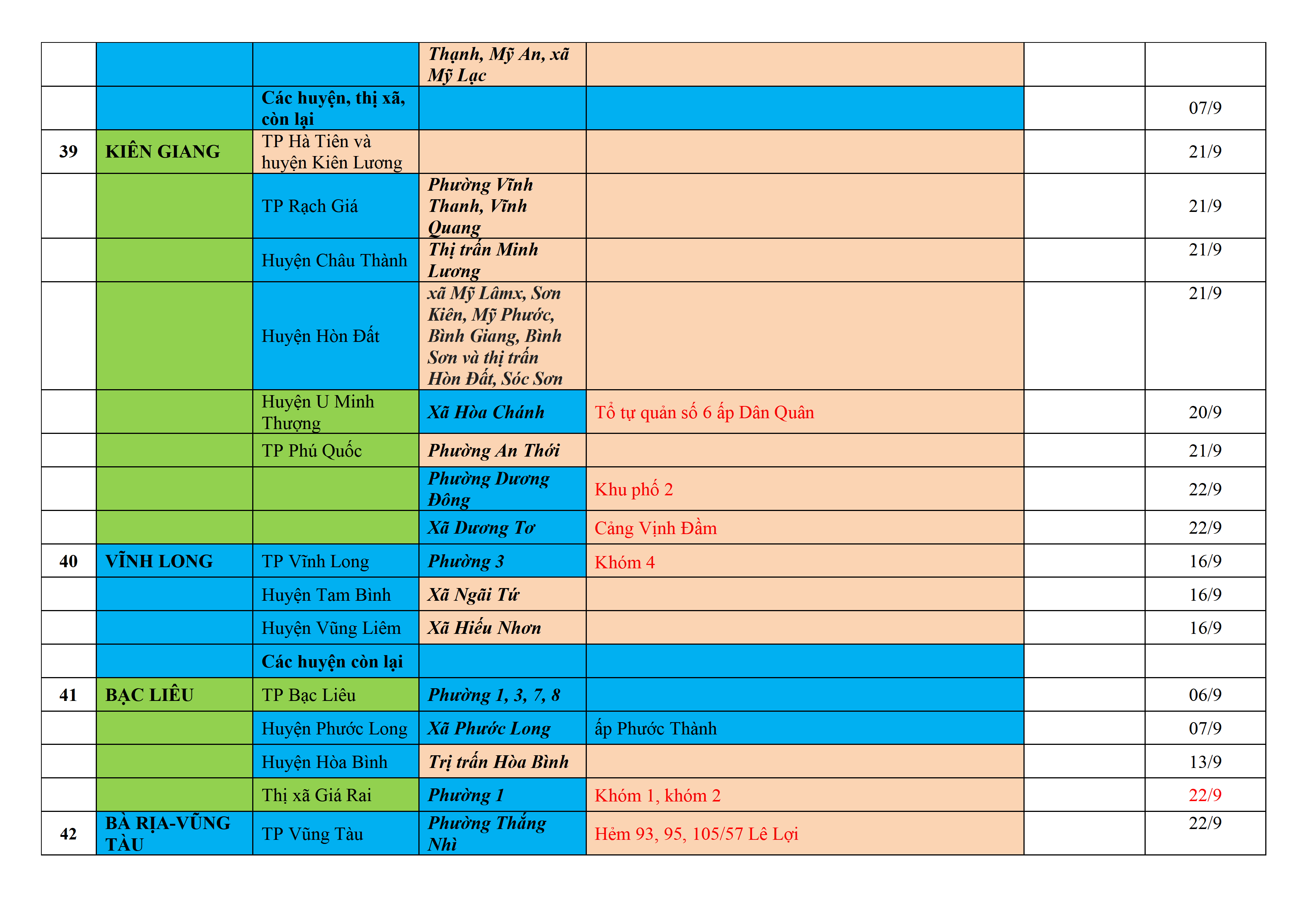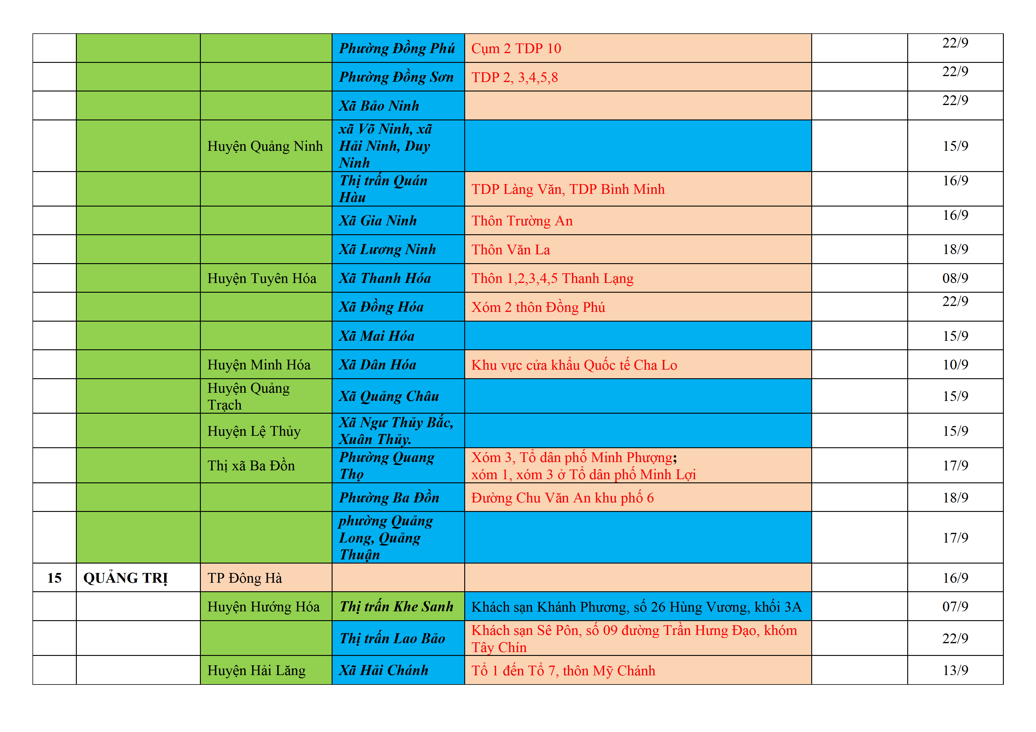 Từ 0 giờ 00 phút, ngày 15/9/2021: