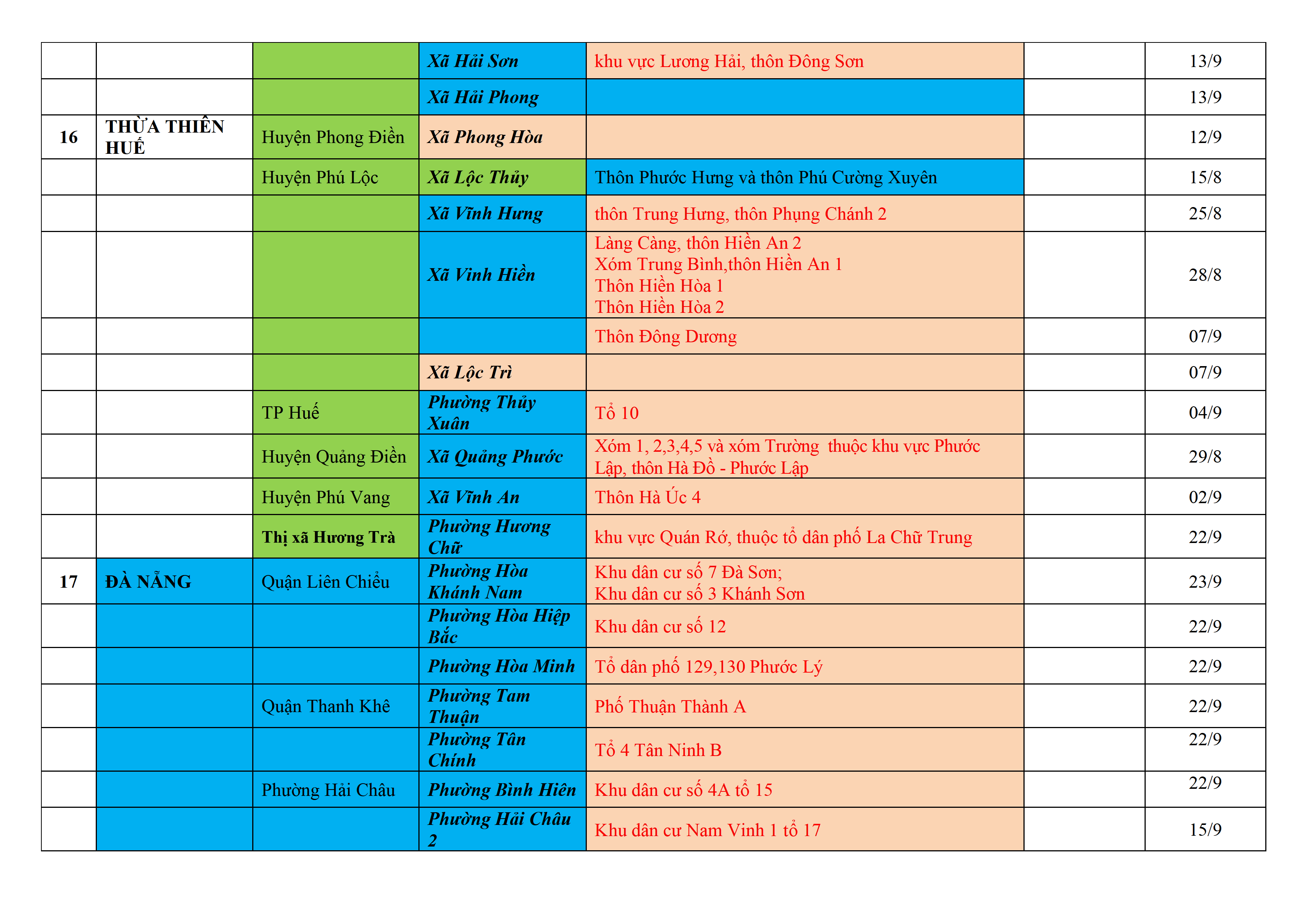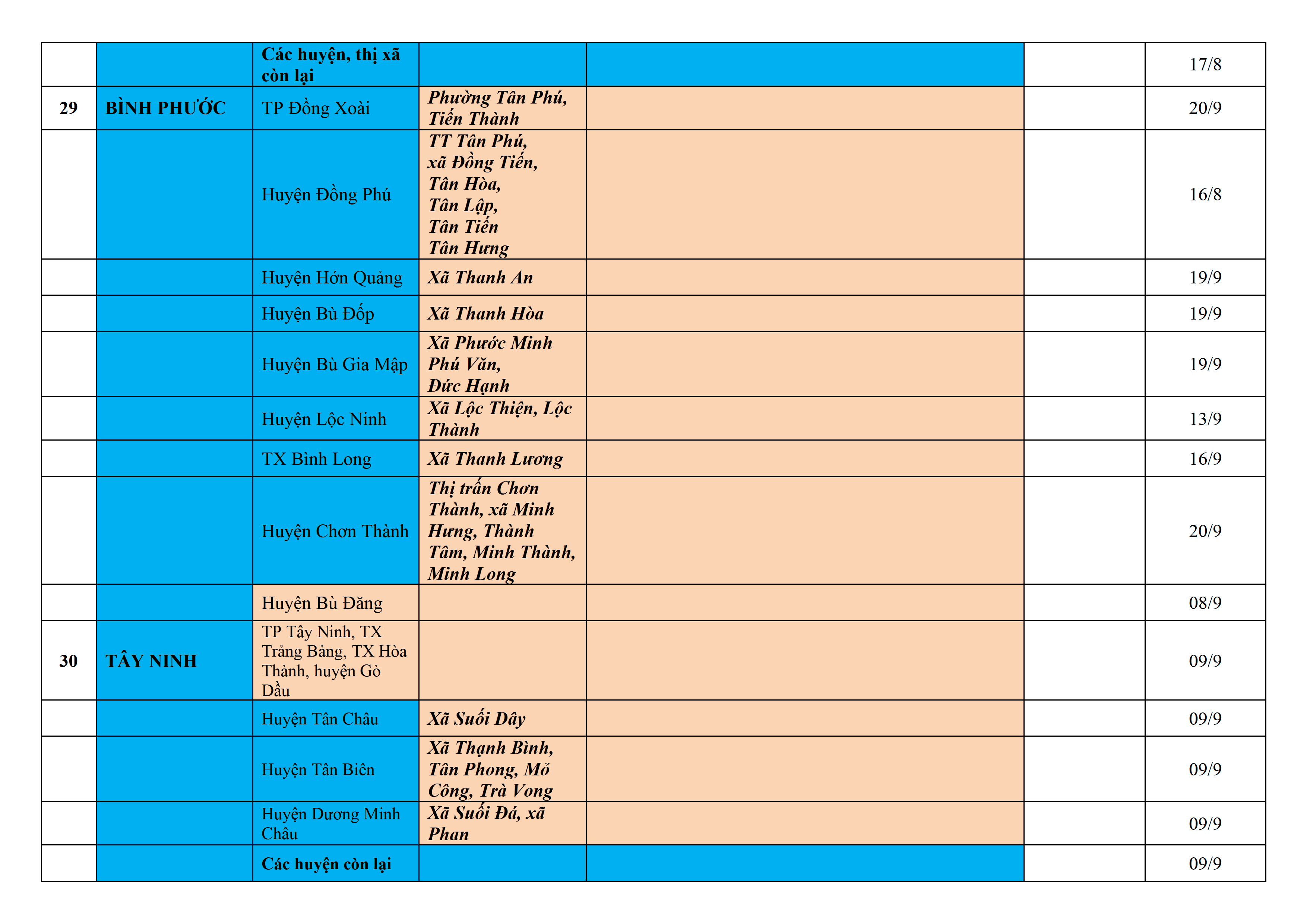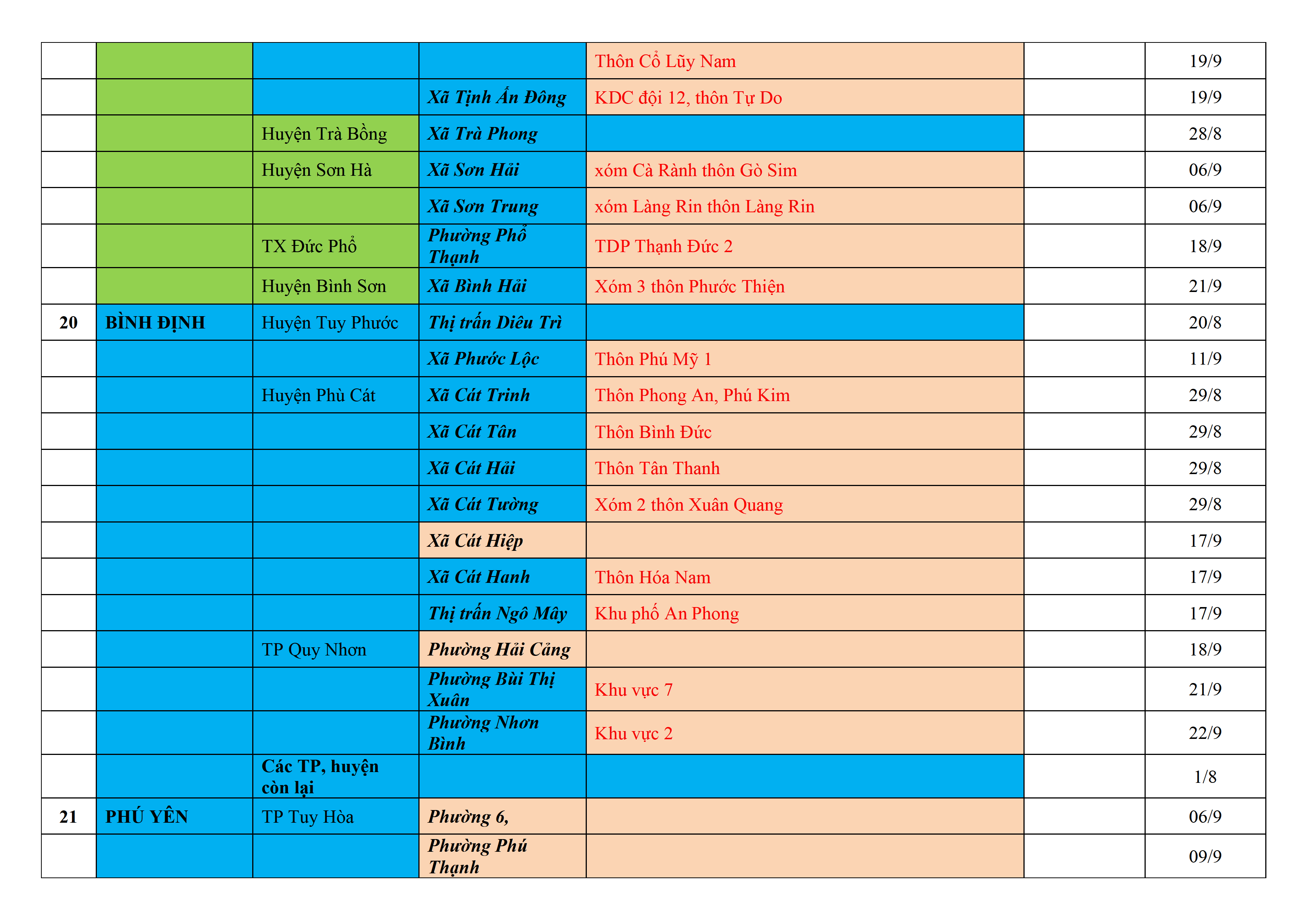 Từ 0 giờ 00 phút, ngày 15/9/2021: