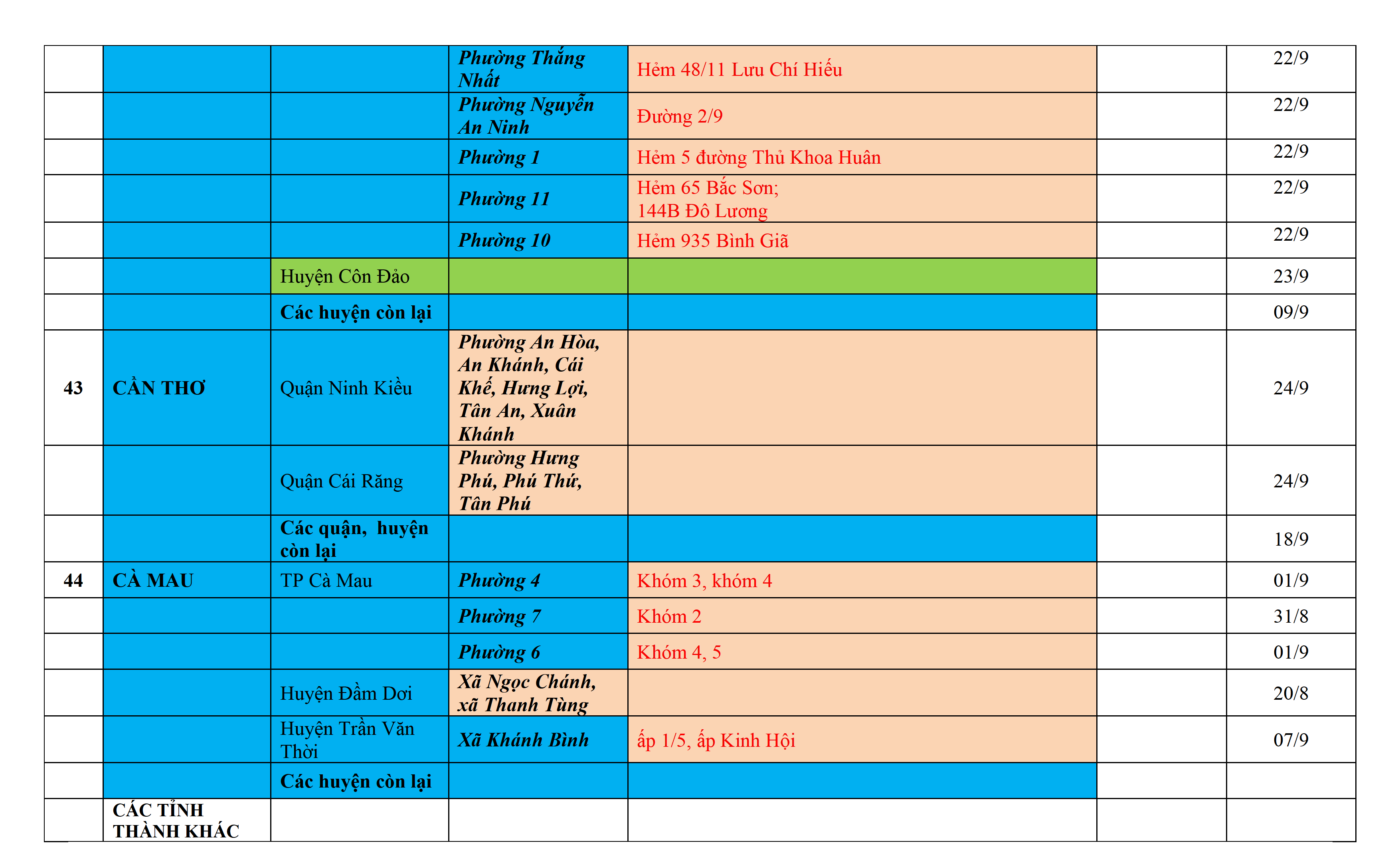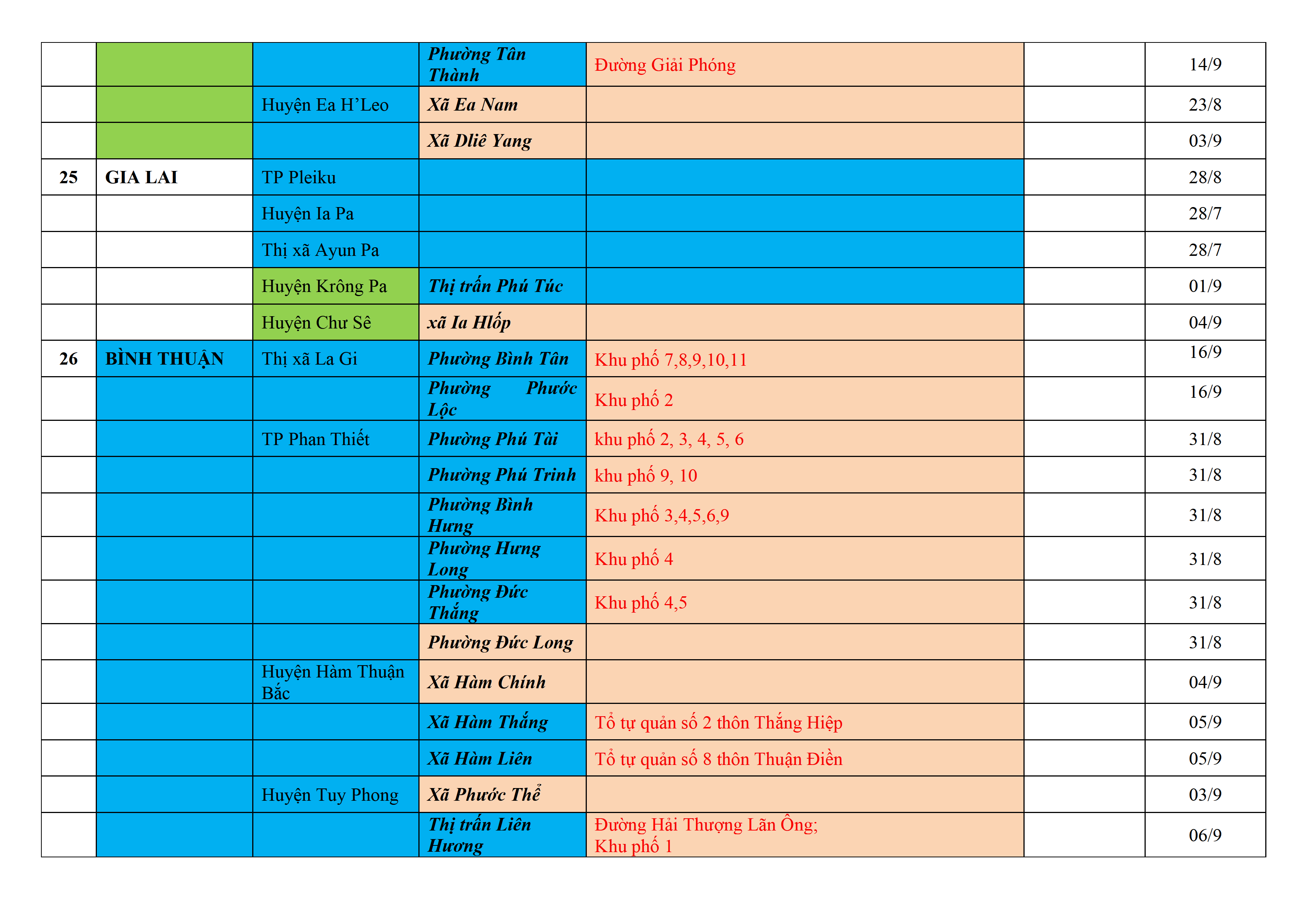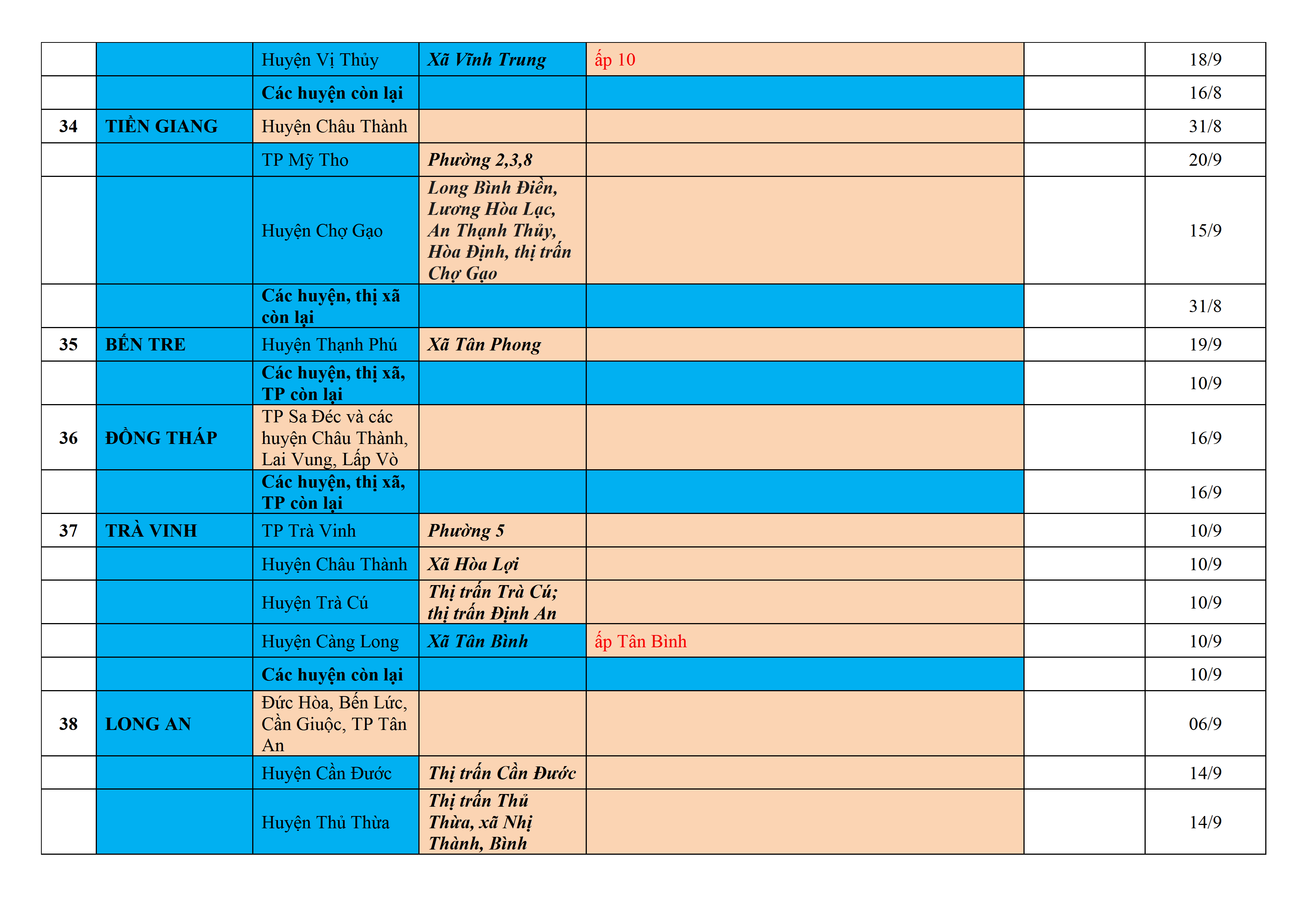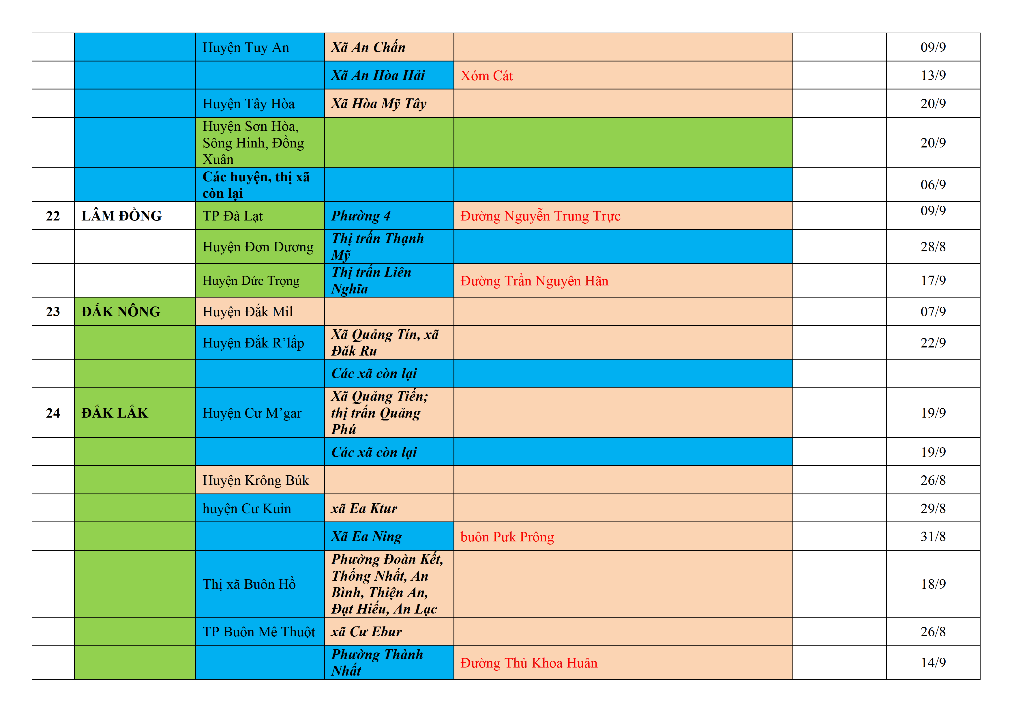 Từ 0 giờ 00 phút, ngày 15/9/2021: