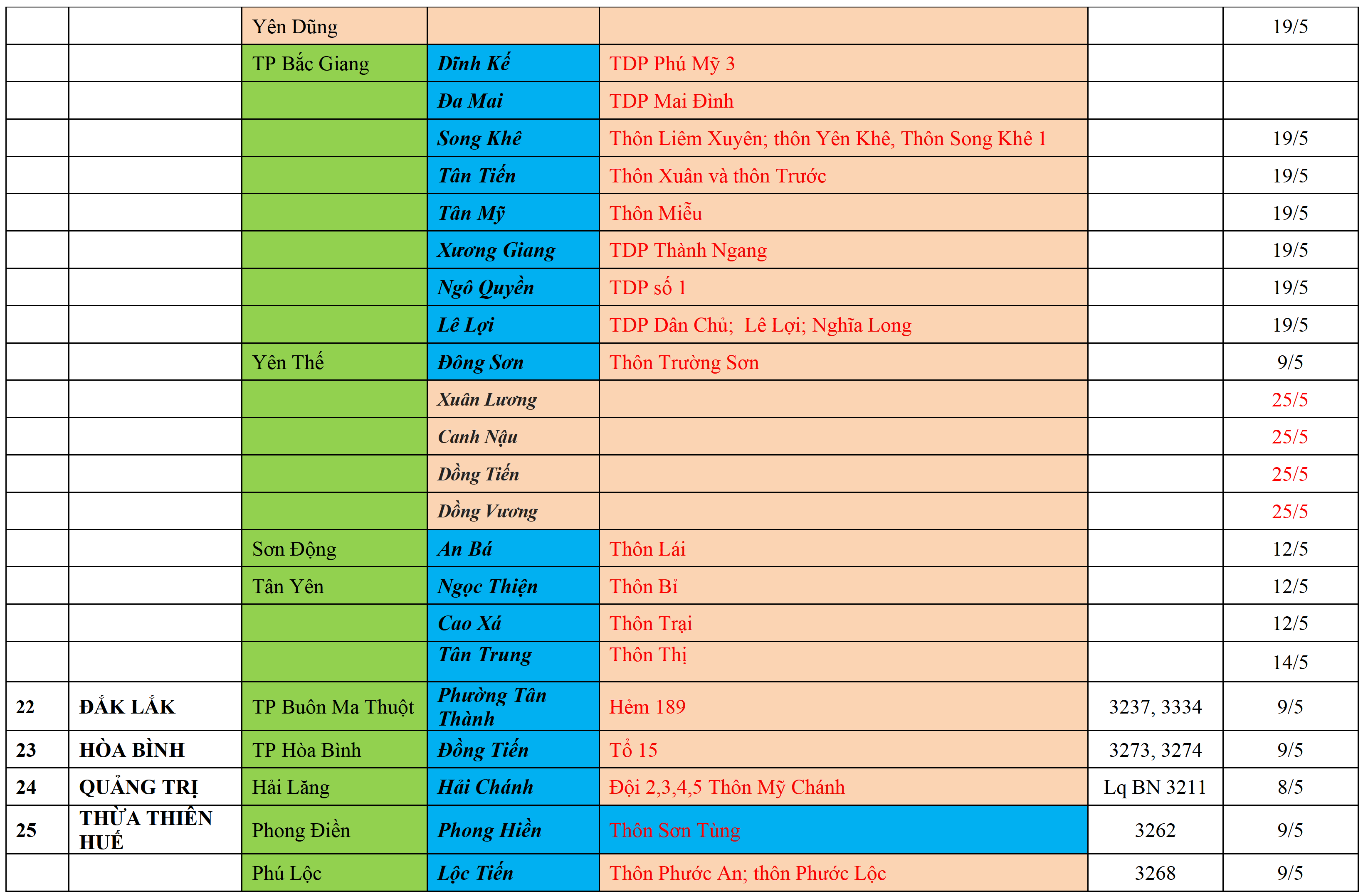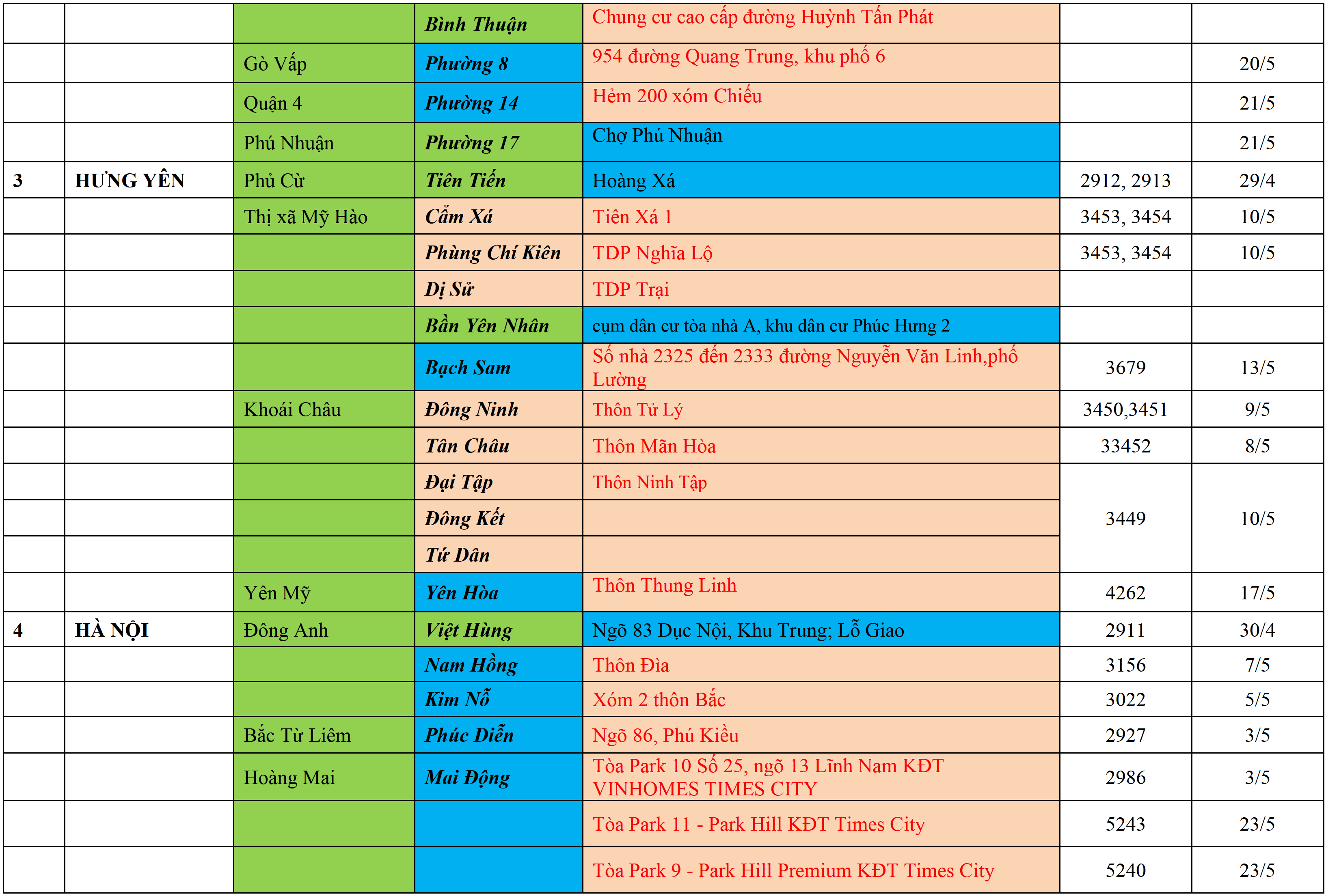 Không áp dụng các biện pháp cách ly y tế theo MÀU TRẮNG;