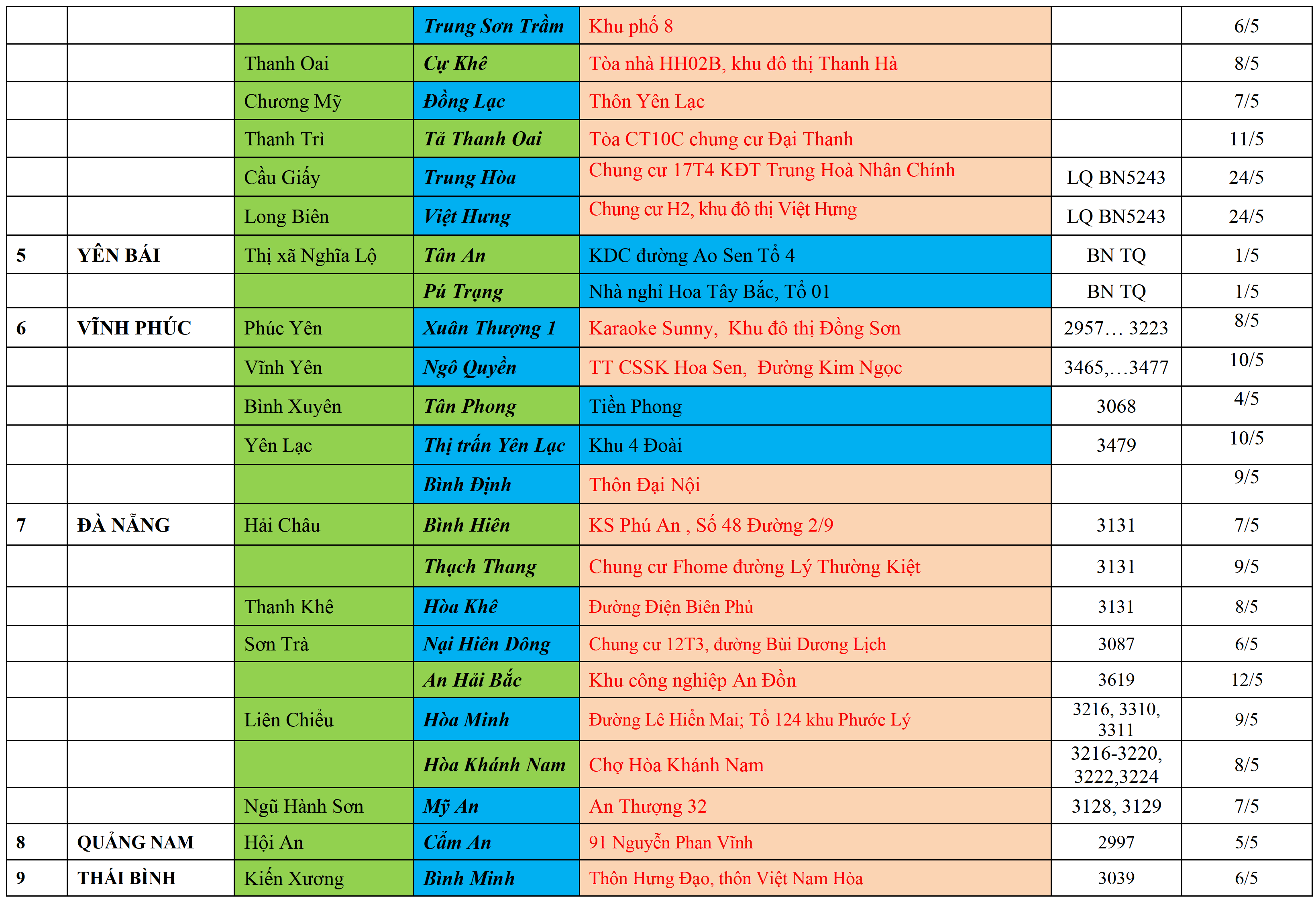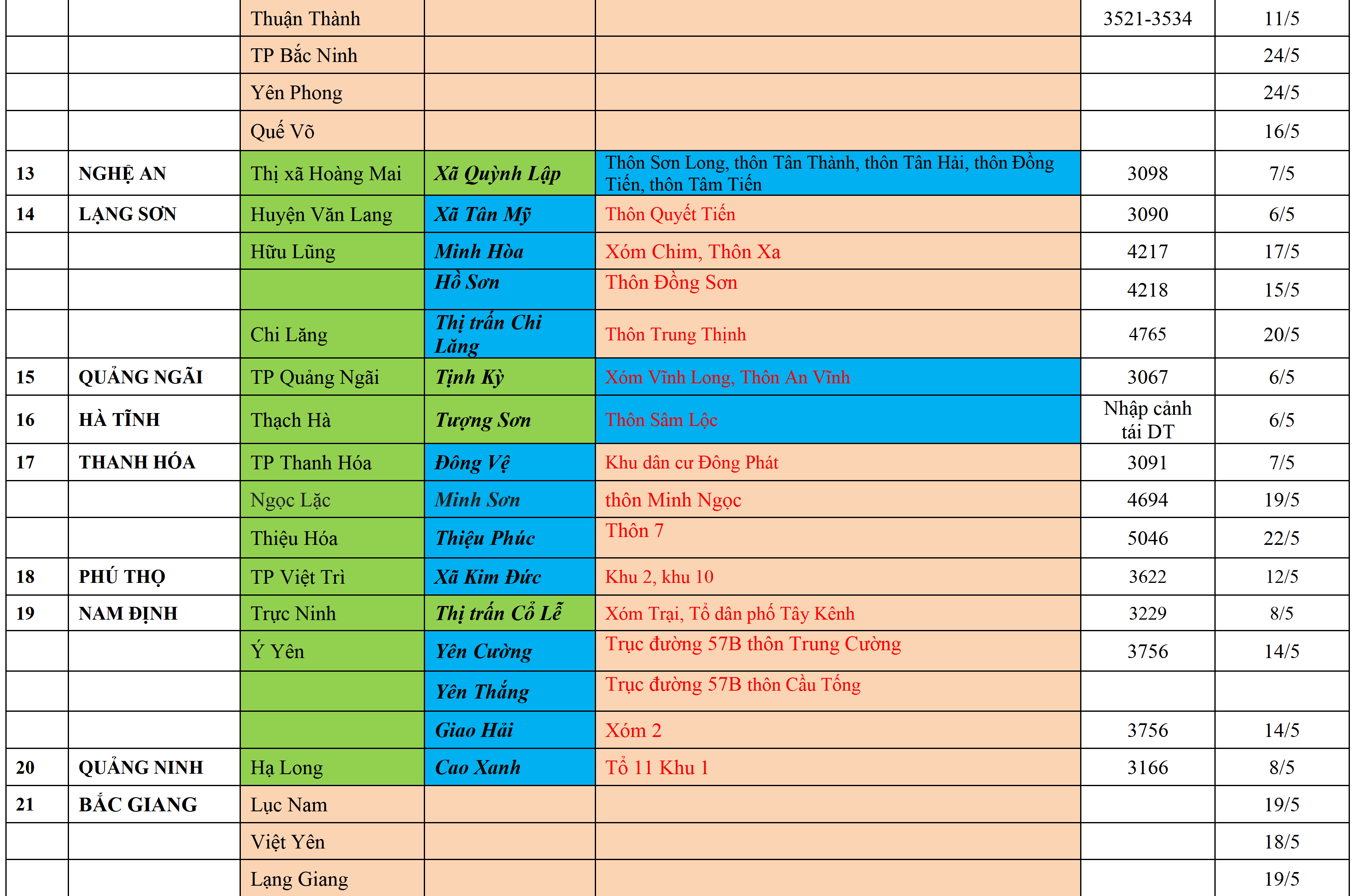 Cách ly tập trung theo MÀU CAM, Cách ly tại nhà theo MÀU XANH NƯỚC BIỂN, Khai báo, giám sát y tế theo MÀU XANH MẠ,