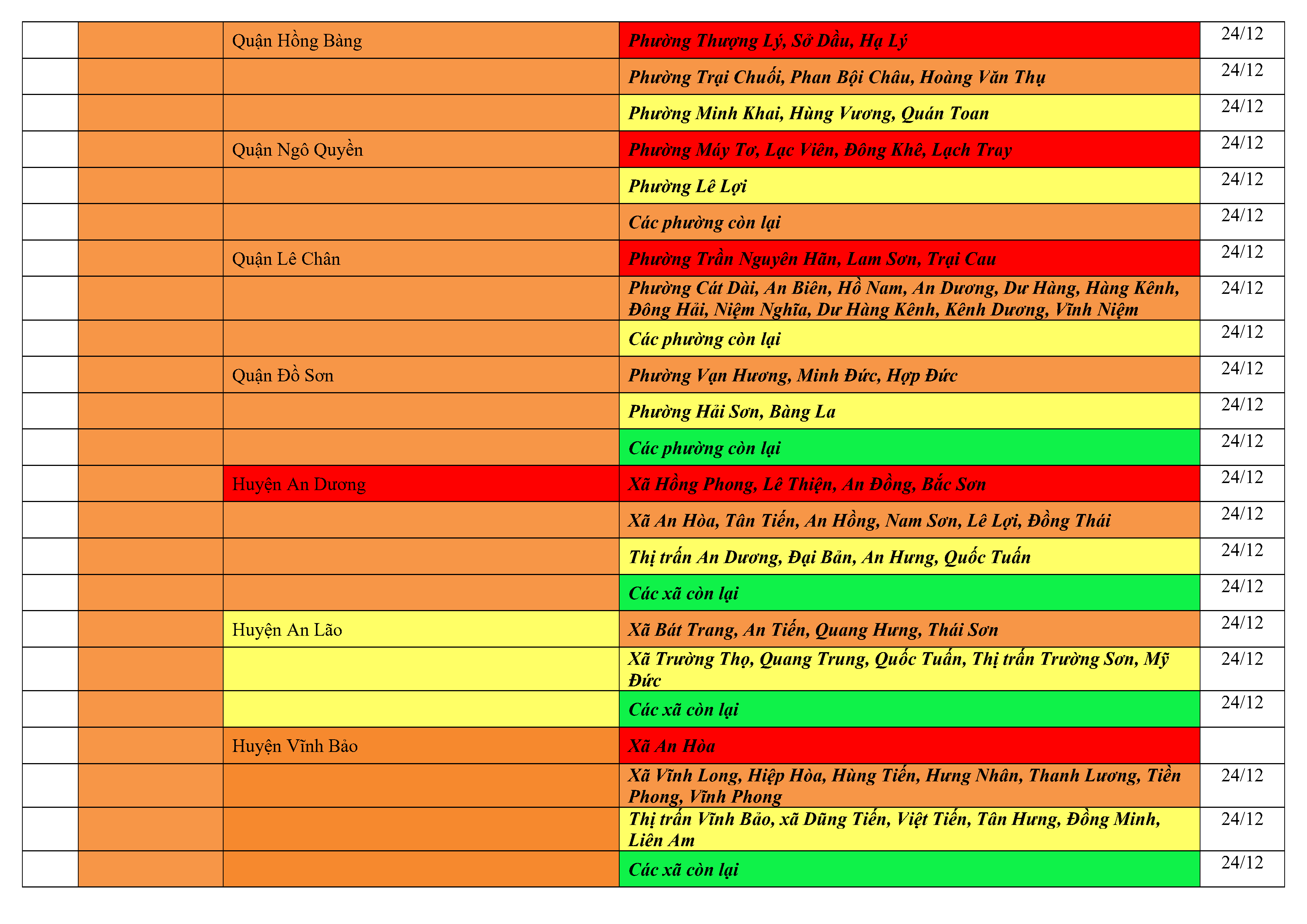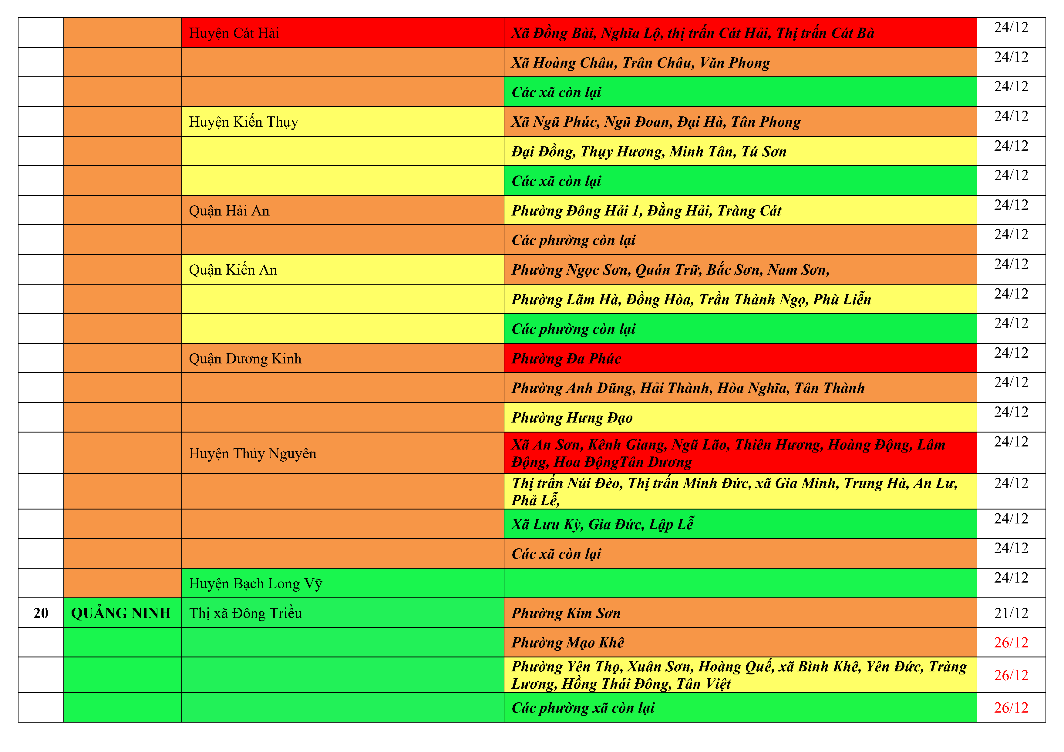 2. Đối với công dân từ các địa phương về Hải Phòng, áp dụng theo bảng hướng dẫn dưới đây:
