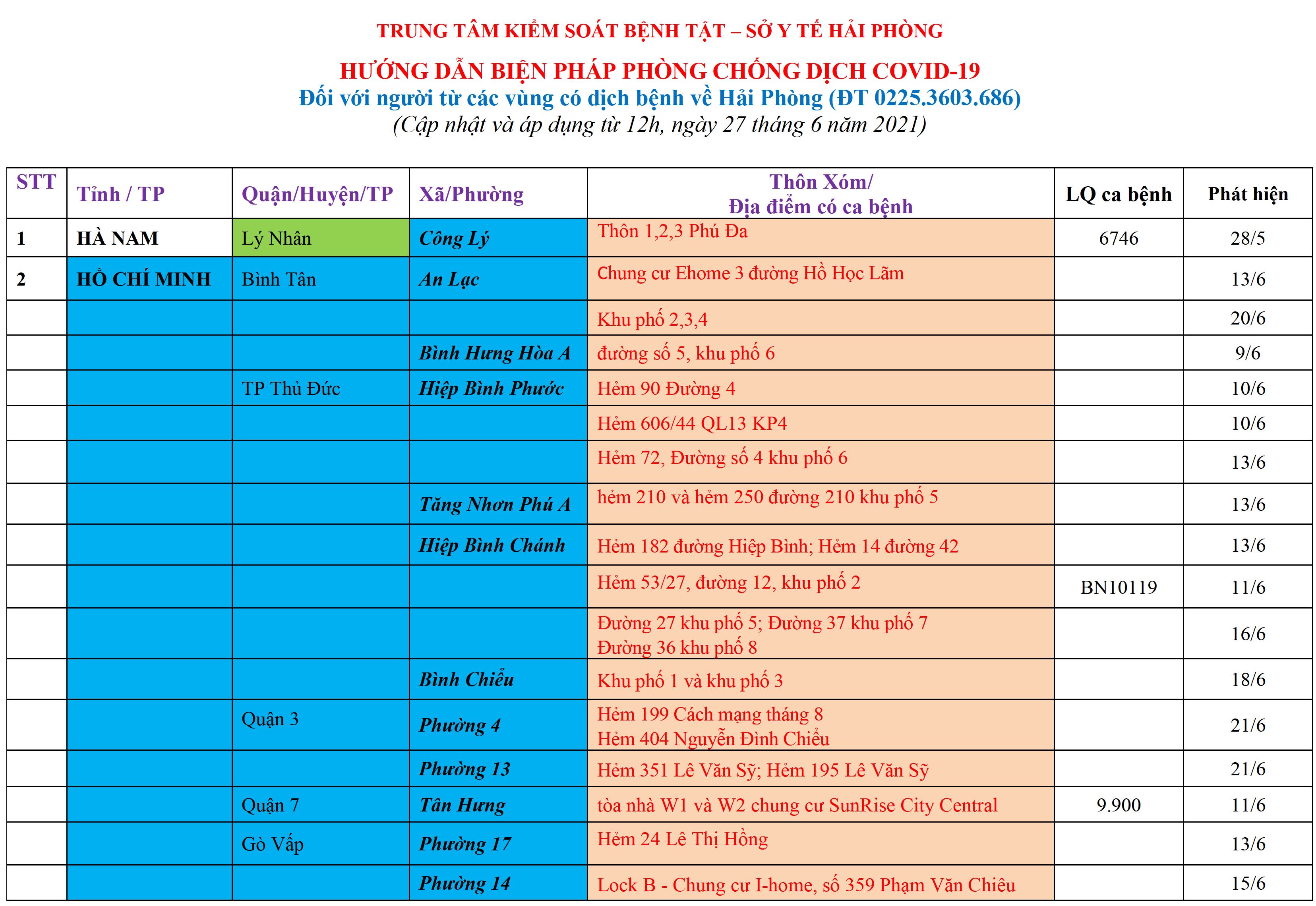 Trung tâm kiểm soát bệnh tật Hải Phòng hướng dẫn tạm thời biện pháp phòng chống dịch COVID-19 đối với người từ các tỉnh, thành khác về thành phố như sau (thông tin cập nhật vào 12h00’ ngày 27/6/2021):