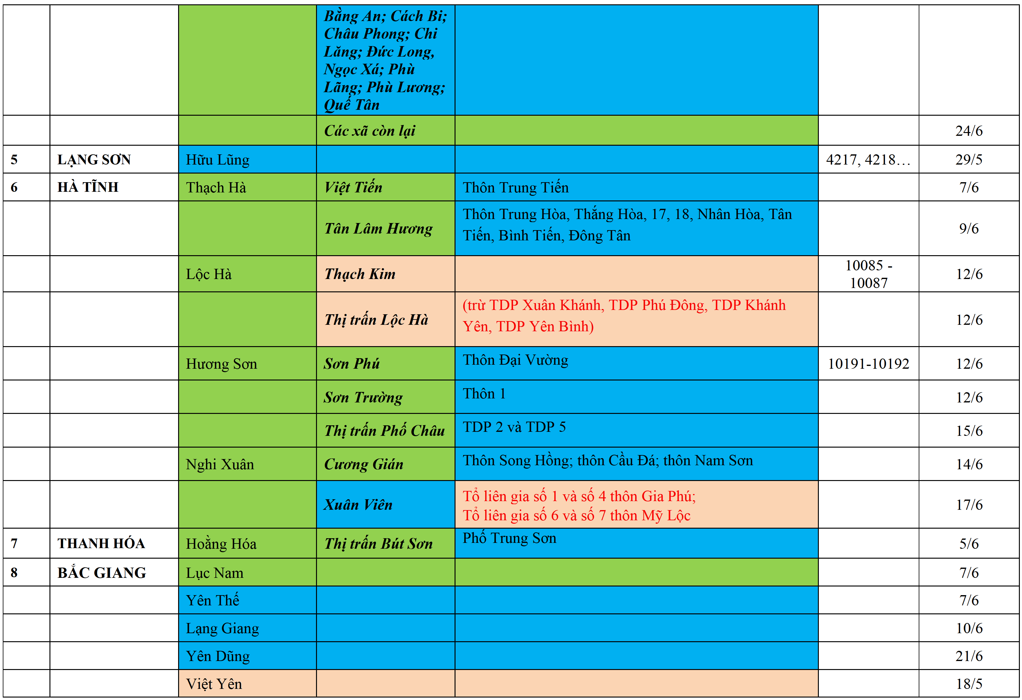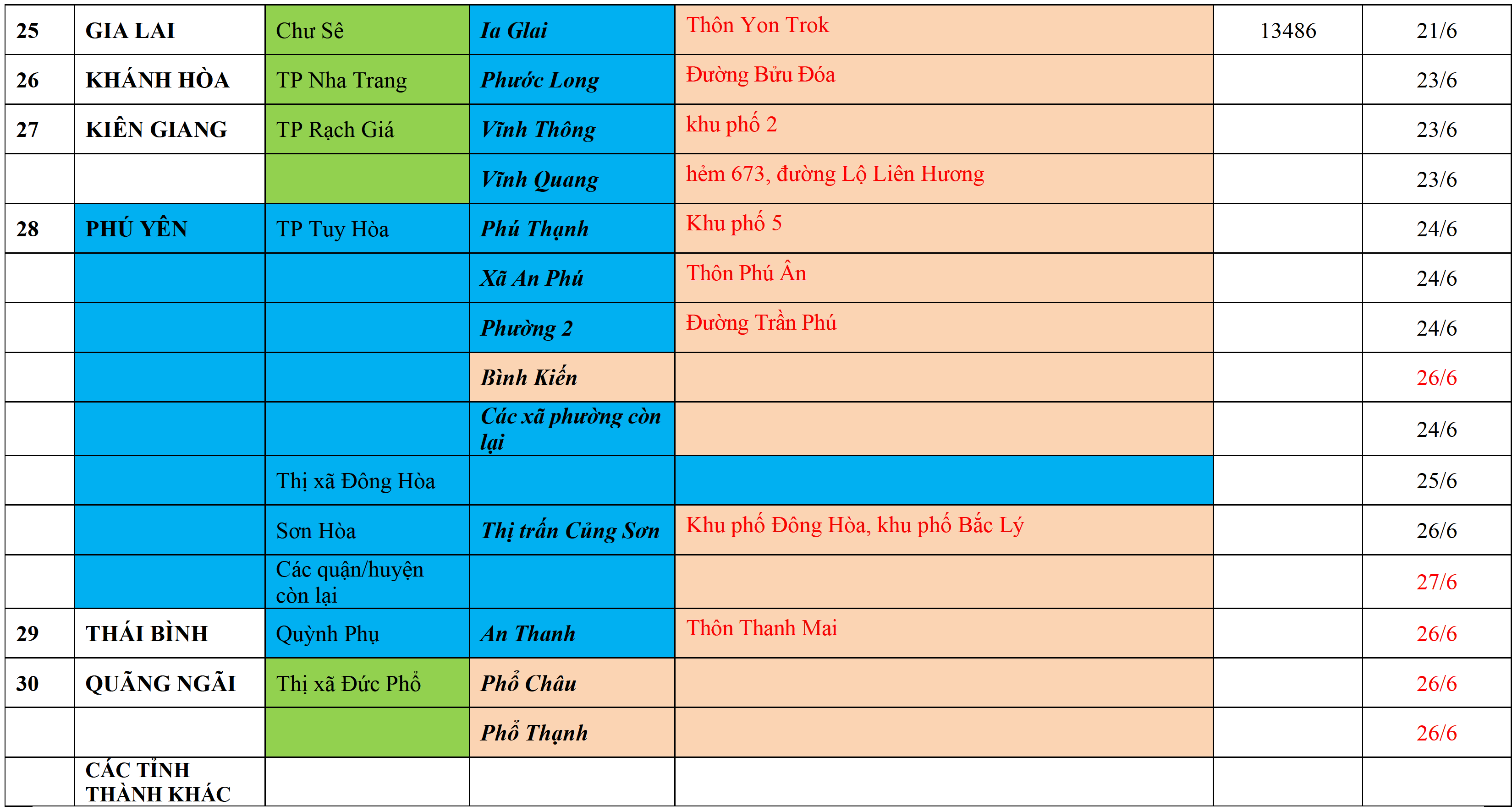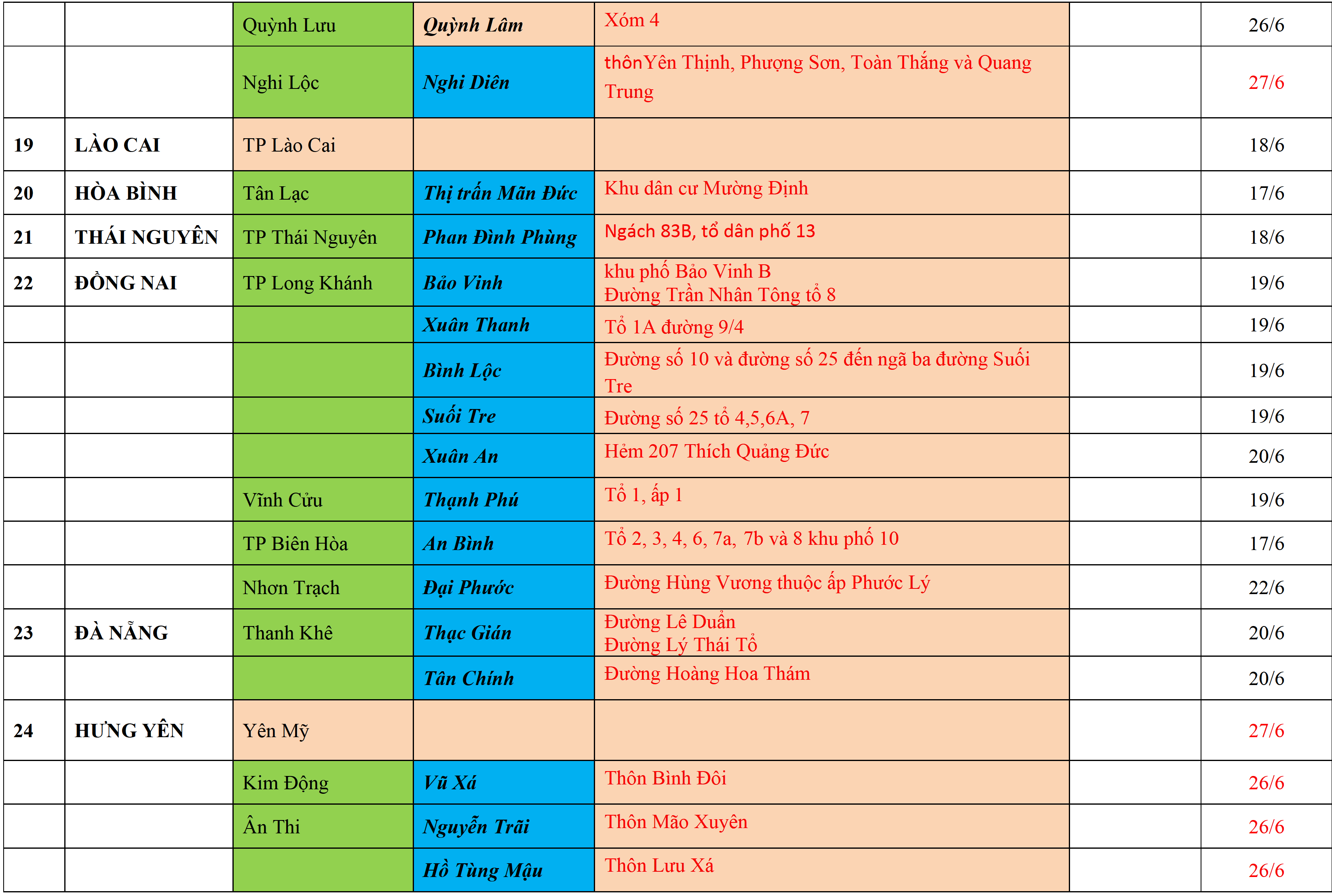 Cách ly tập trung theo MÀU CAM, Cách ly tại nhà theo MÀU XANH NƯỚC BIỂN, Khai báo, giám sát y tế theo MÀU XANH MẠ; Không áp dụng các biện pháp cách ly y tế theo MÀU TRẮNG;