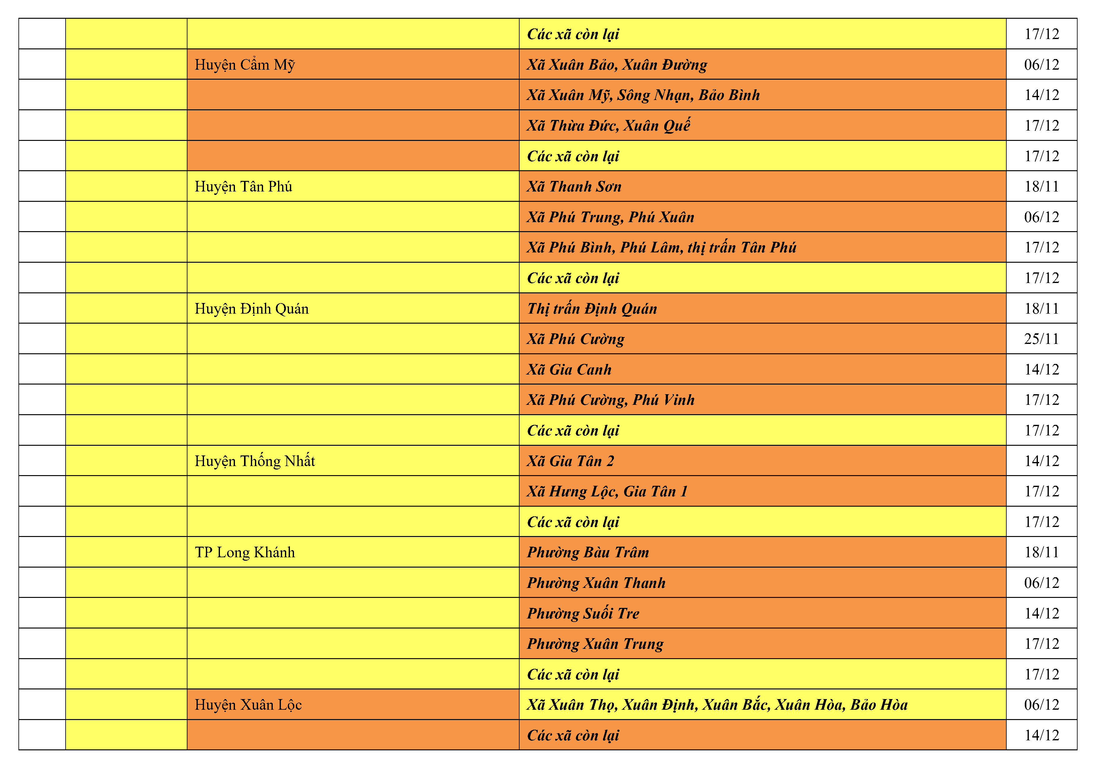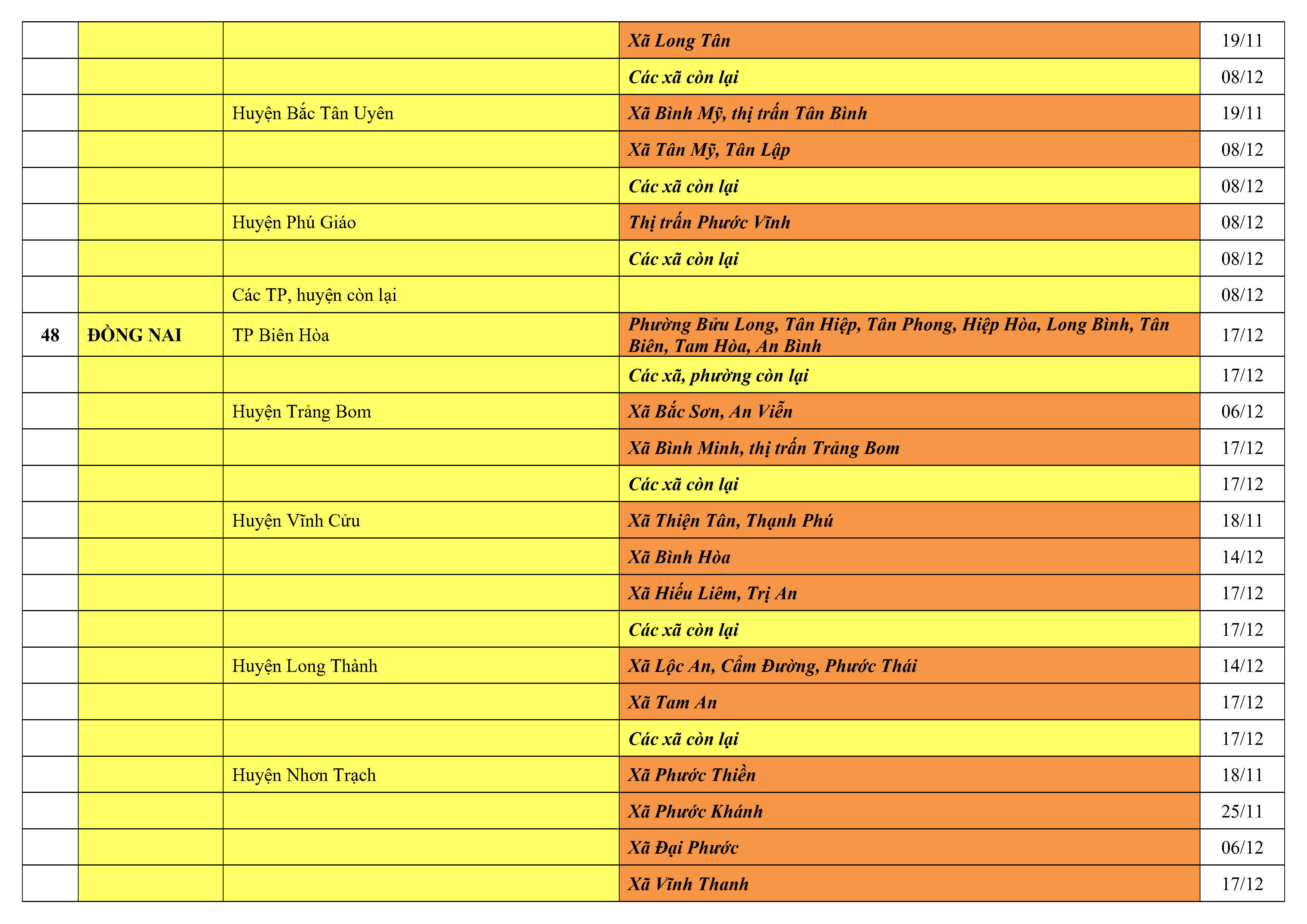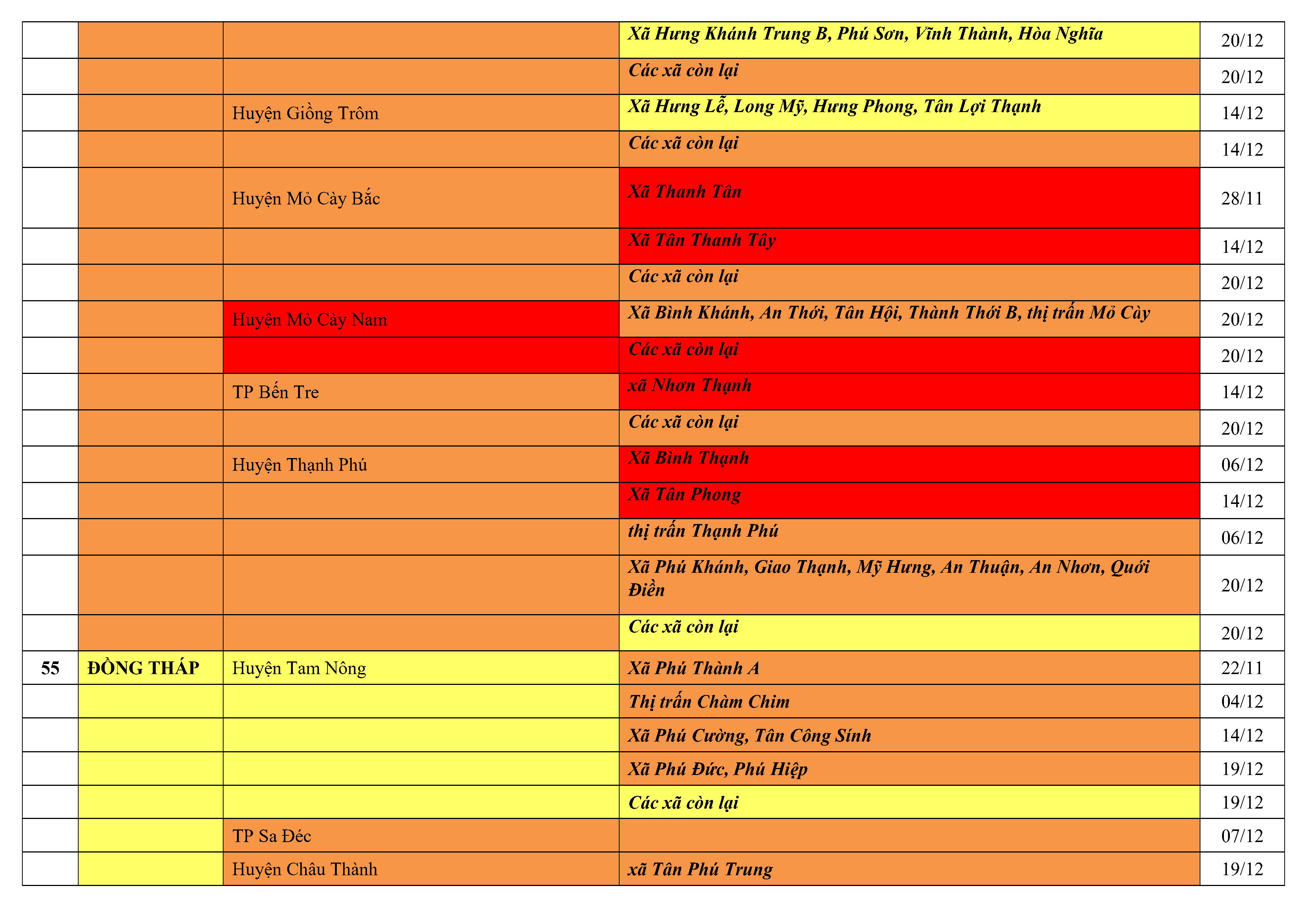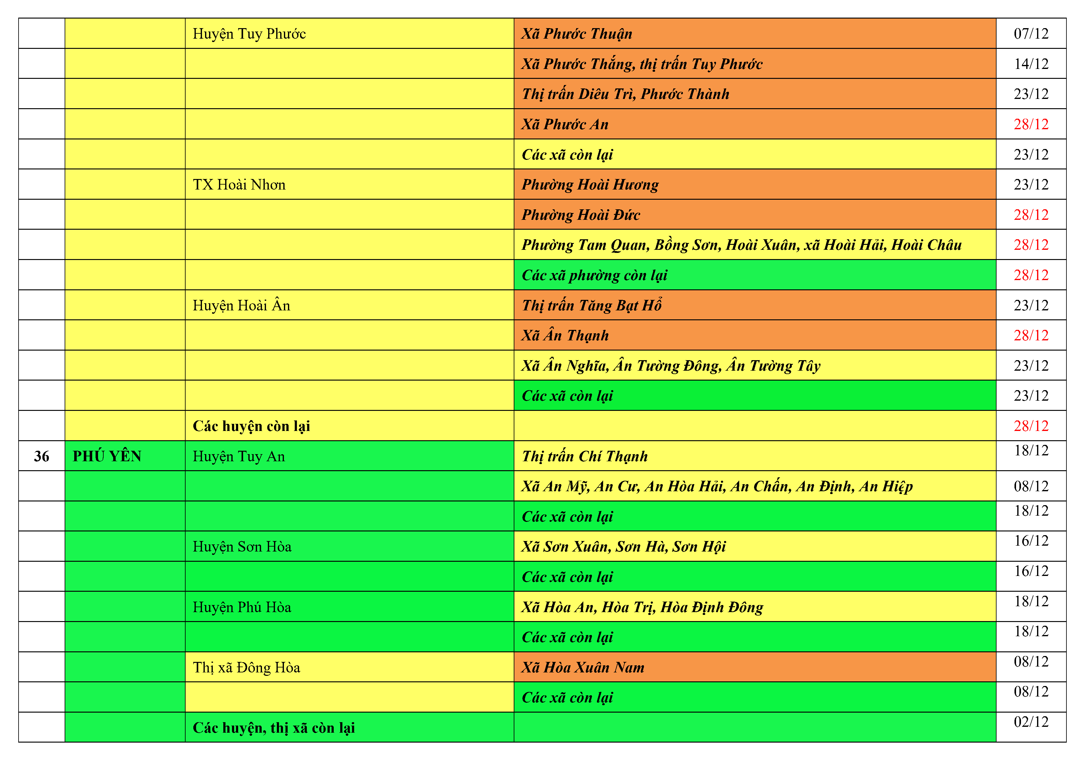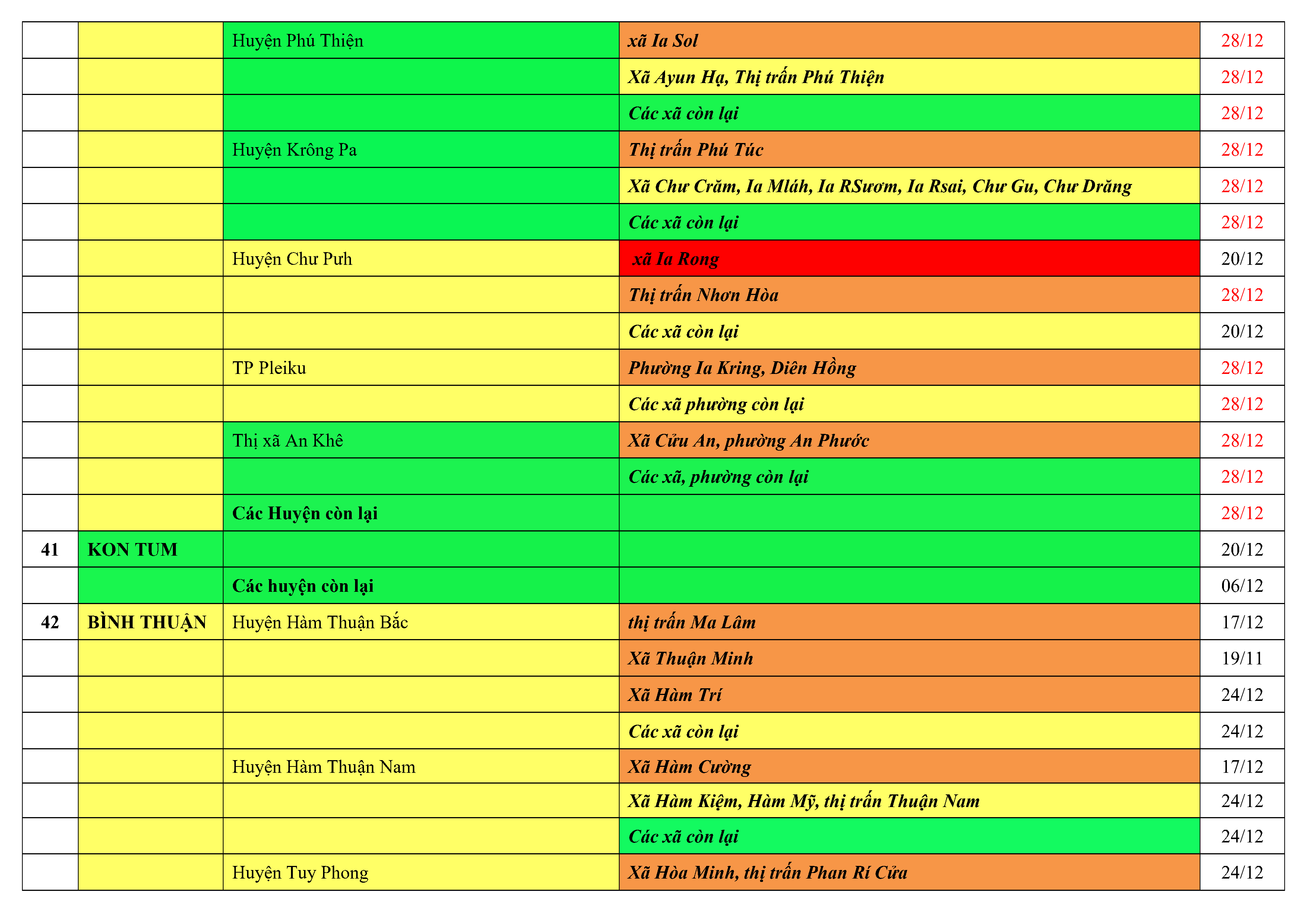 Lưu ý: Các tỉnh, thành phố không có tên trong bảng màu, đi lại bình thường, tuân thủ các biện pháp phòng chống dịch theo chỉ đạo của Bộ Y tế; khai báo y tế, thực hiện nghiêm 5K.
