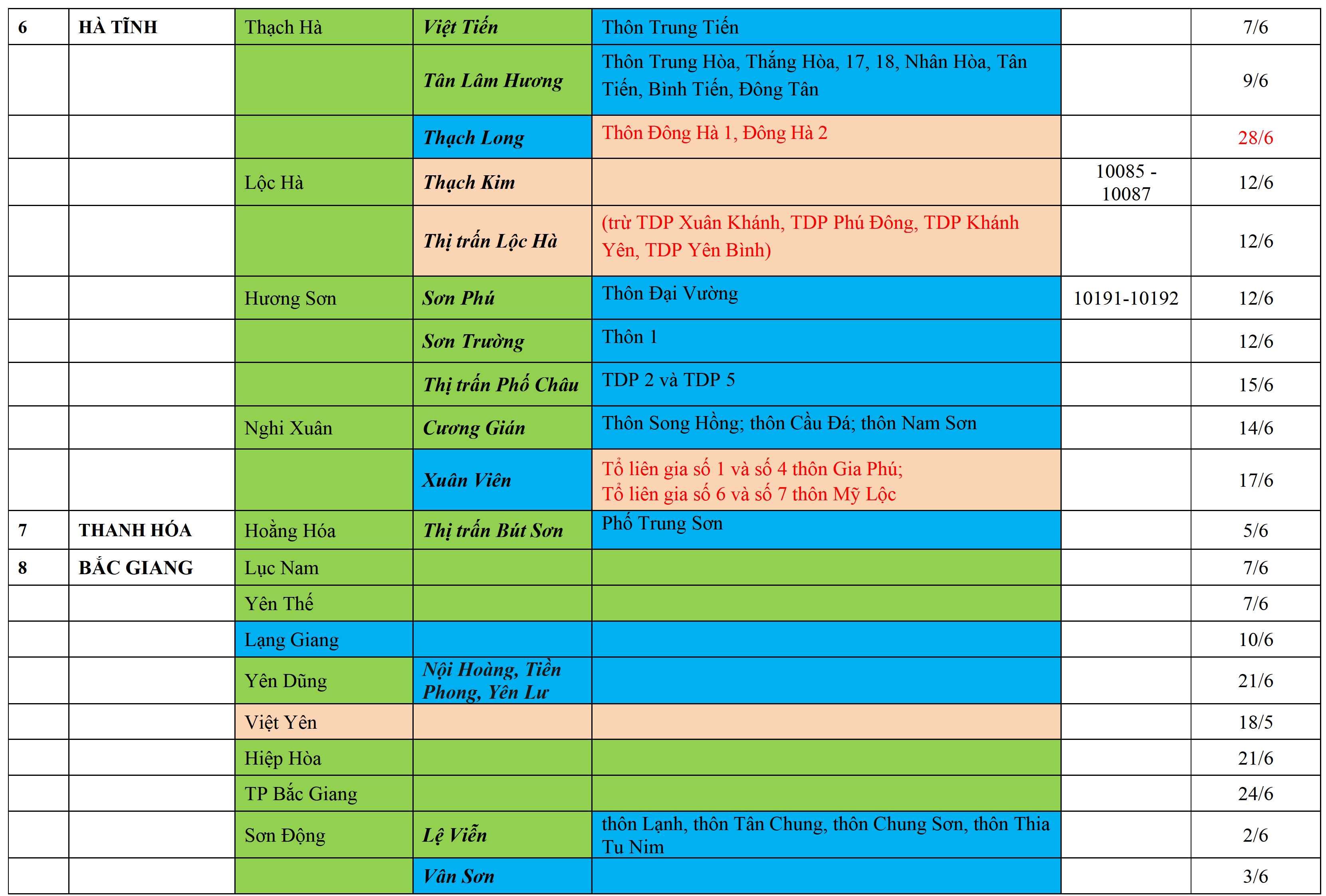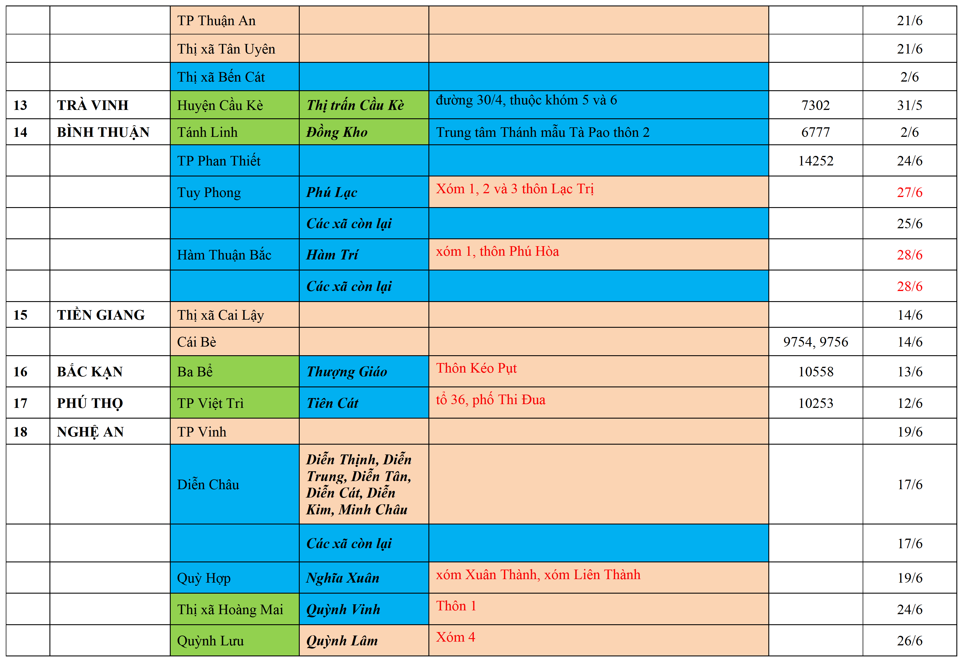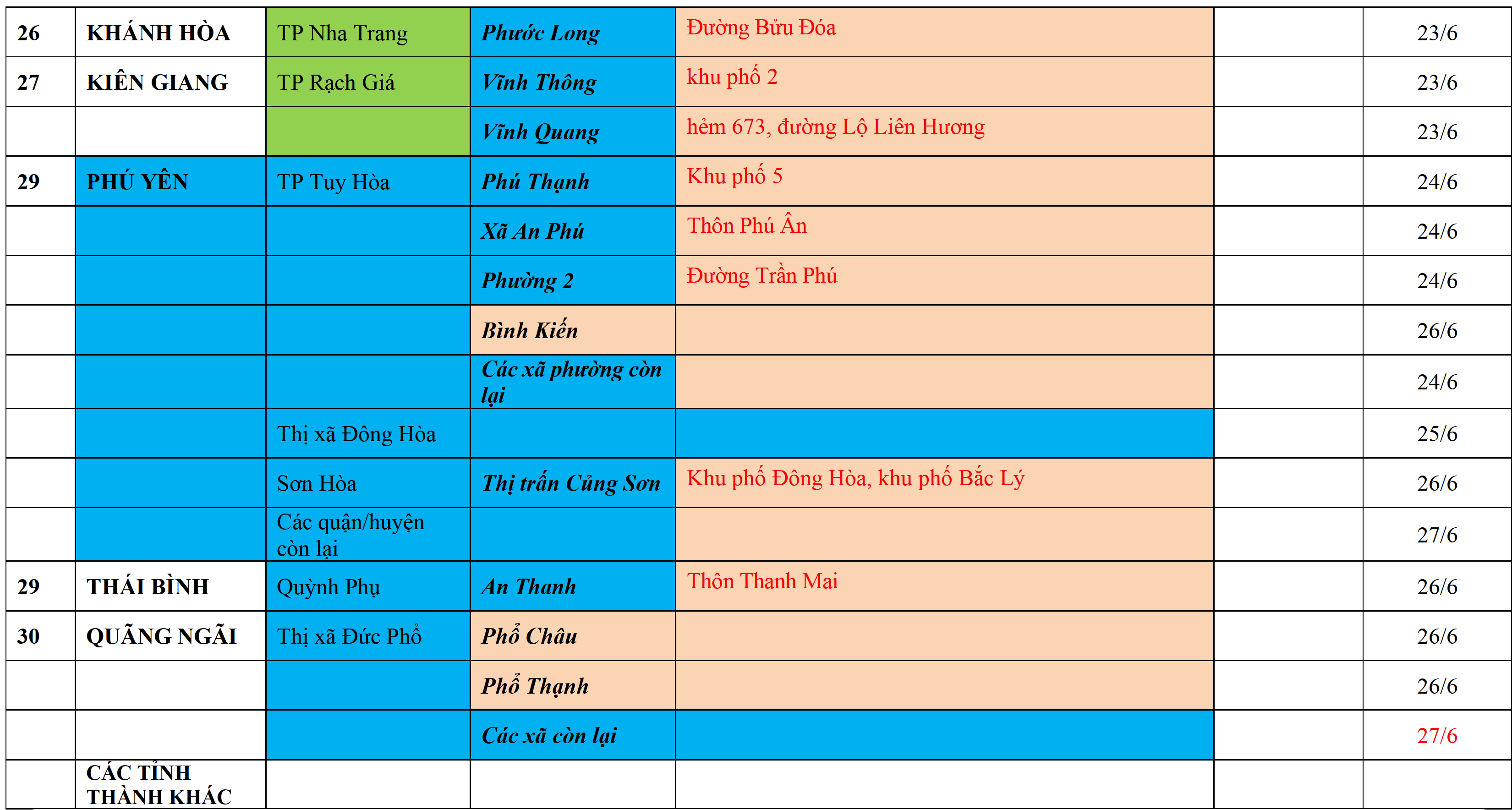 Cách ly tập trung theo MÀU CAM, Cách ly tại nhà theo MÀU XANH NƯỚC BIỂN, Khai báo, giám sát y tế theo MÀU XANH MẠ; Không áp dụng các biện pháp cách ly y tế theo MÀU TRẮNG;
