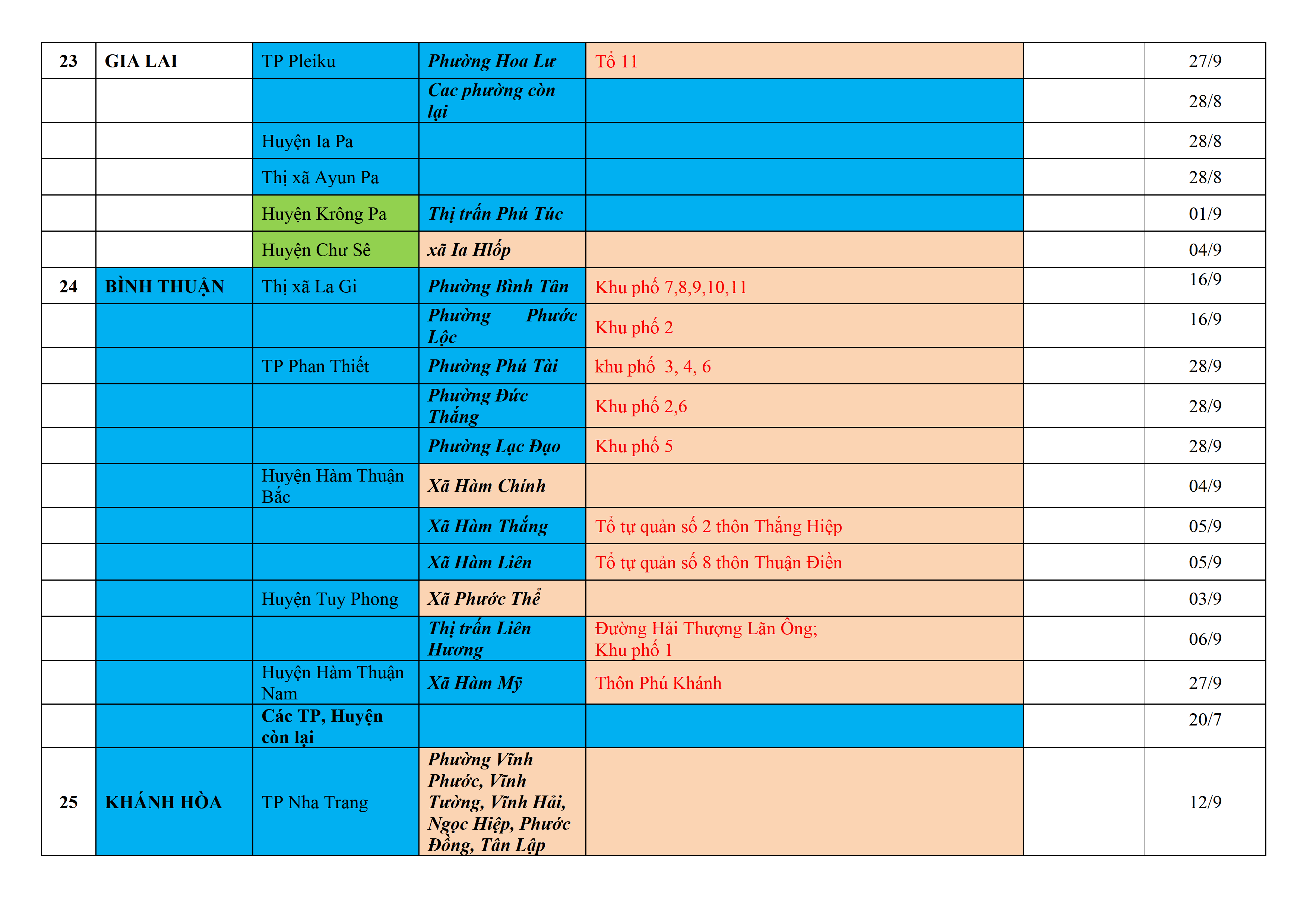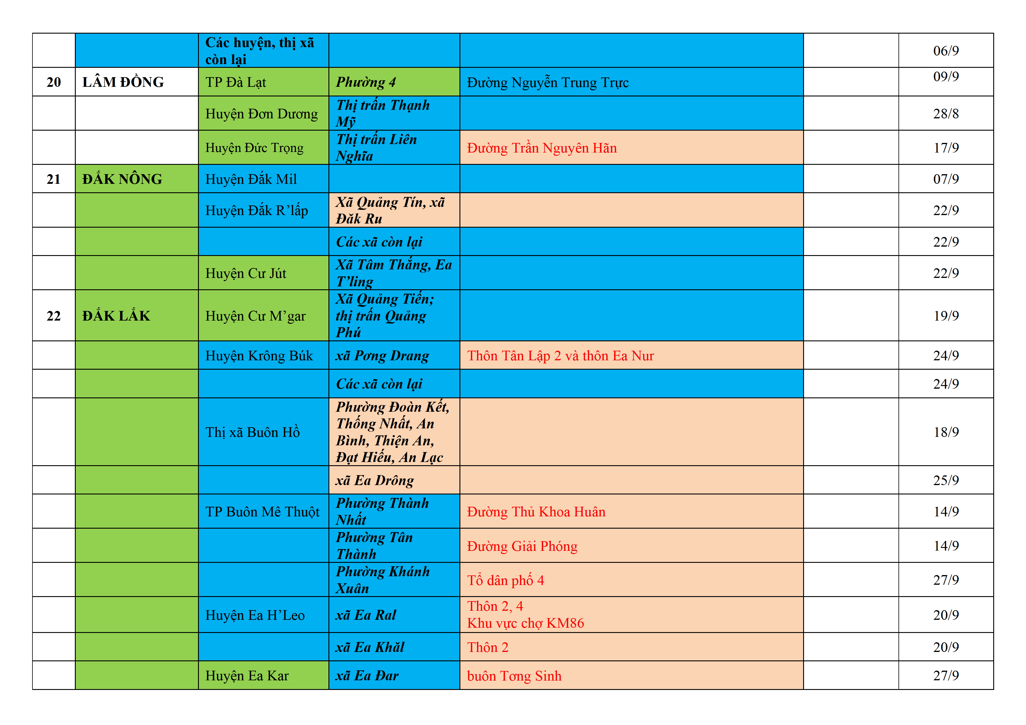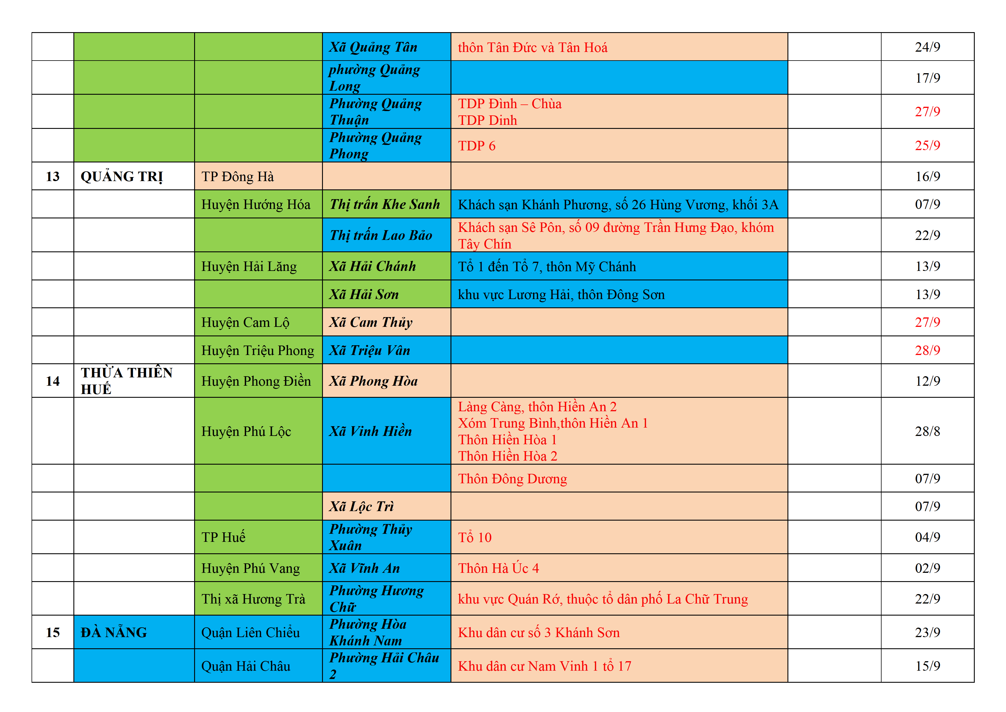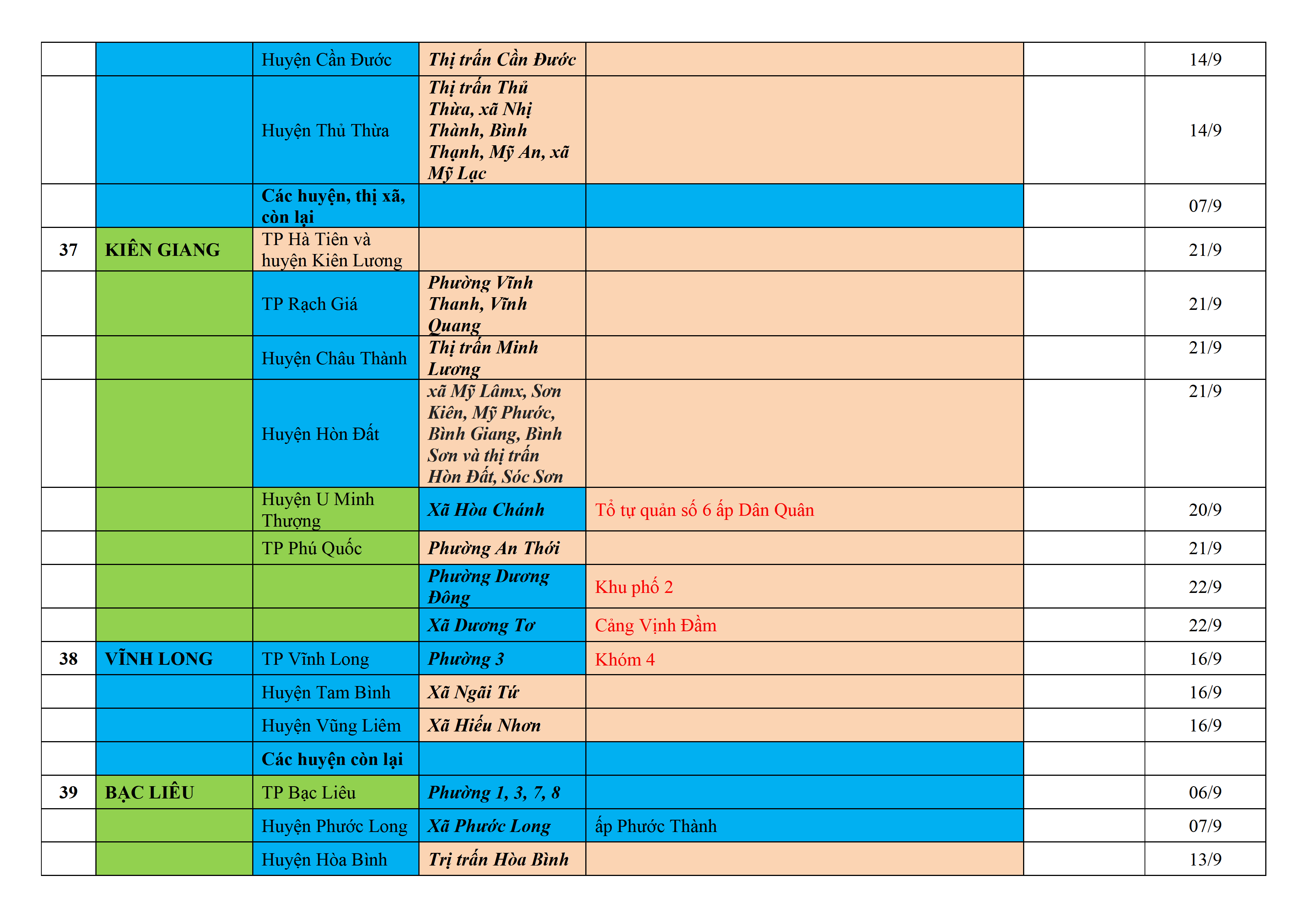 Từ 0 giờ 00 phút, ngày 15/9/2021: