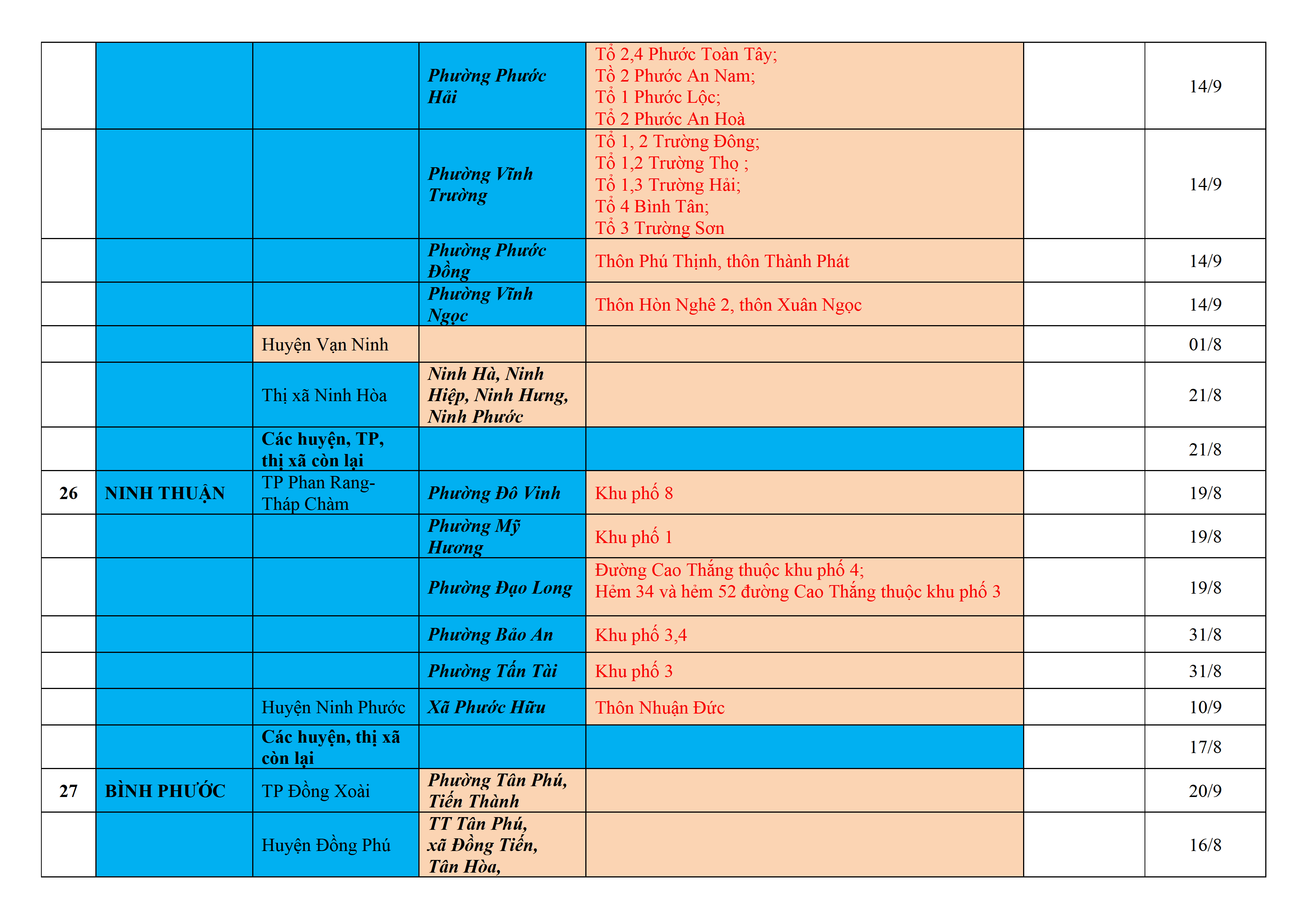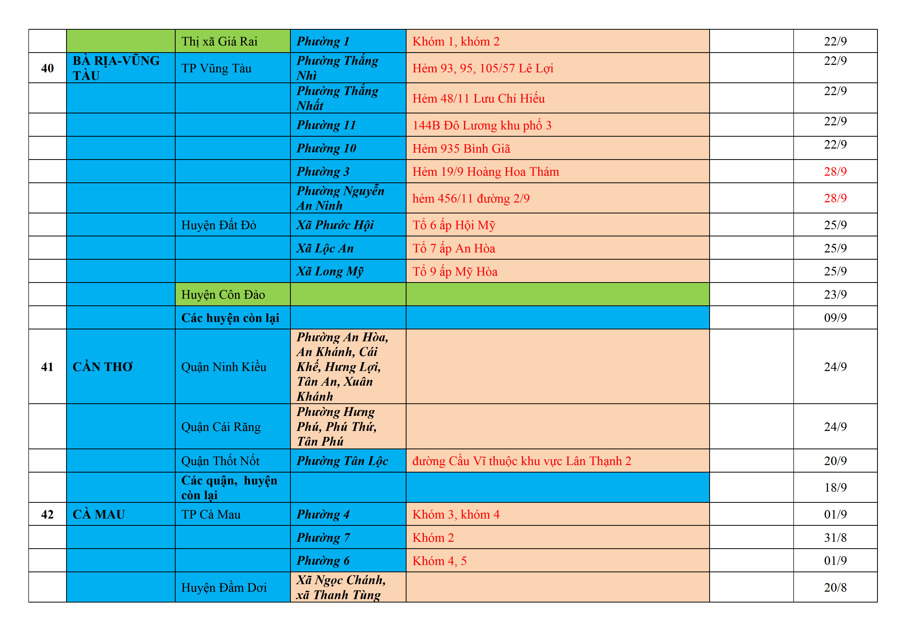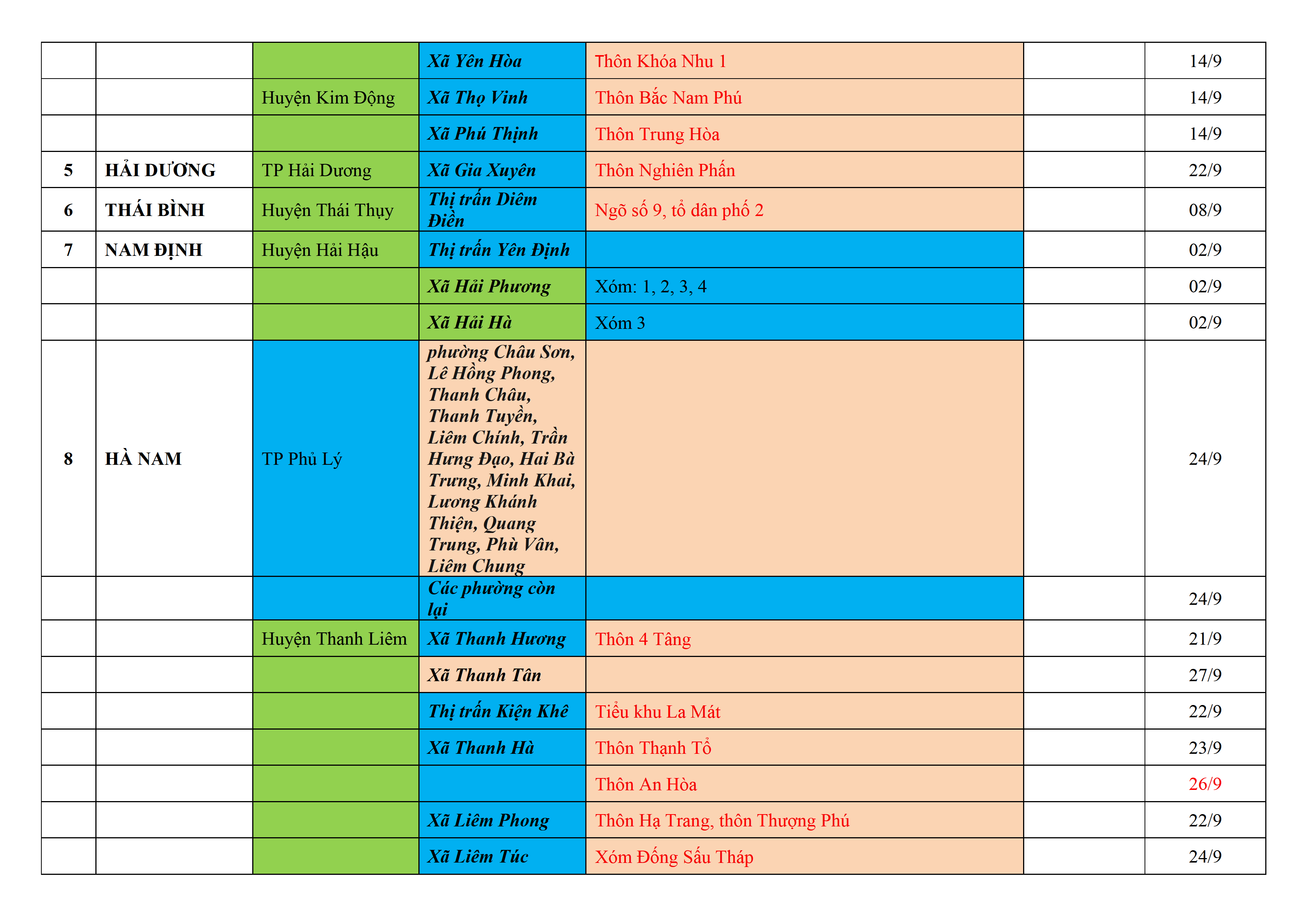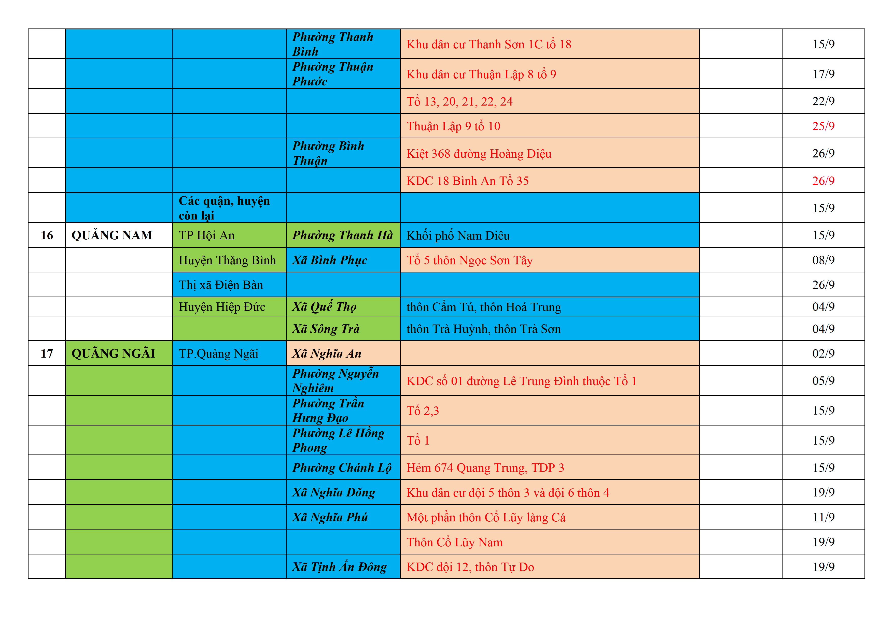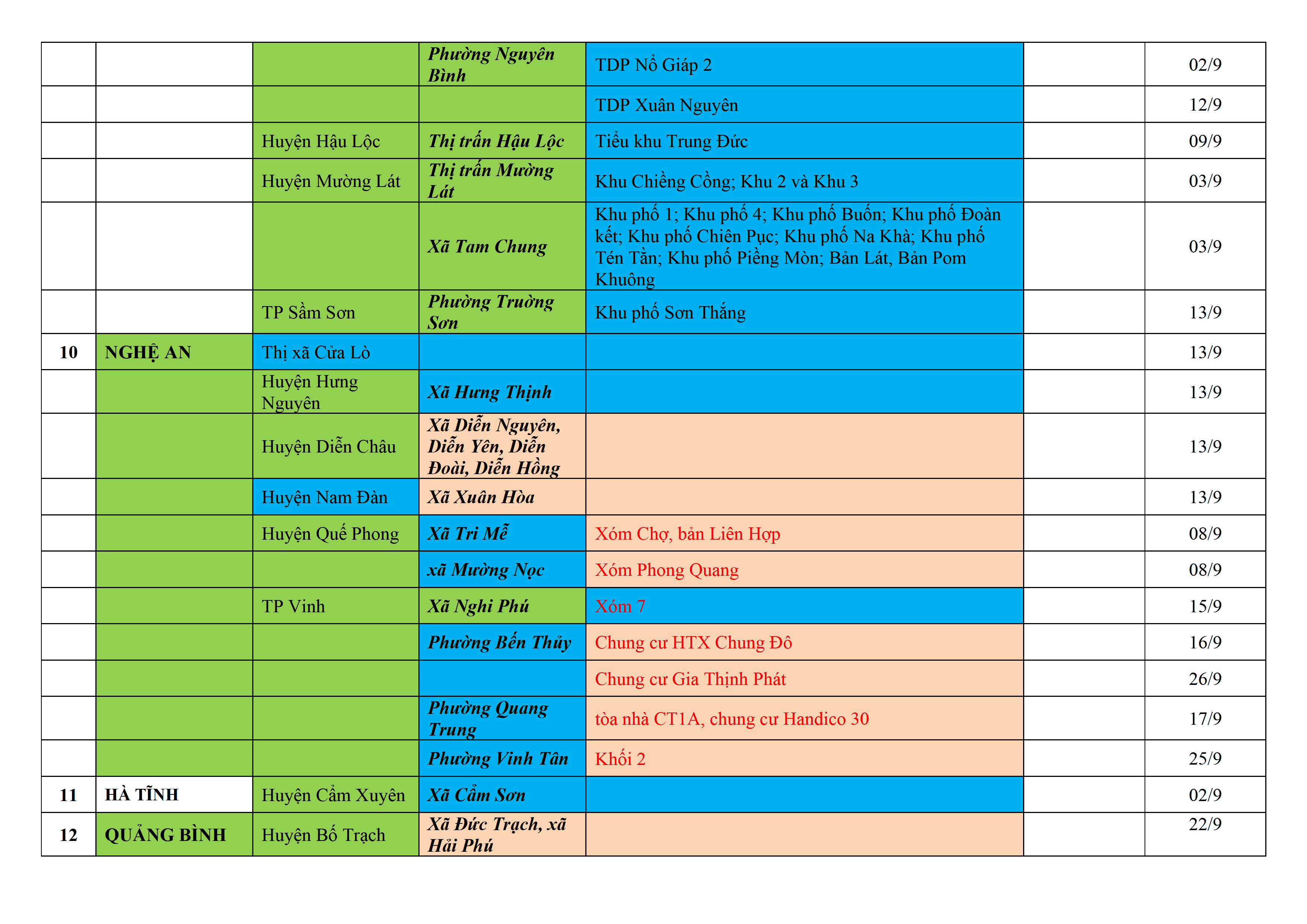 Từ 0 giờ 00 phút, ngày 15/9/2021: