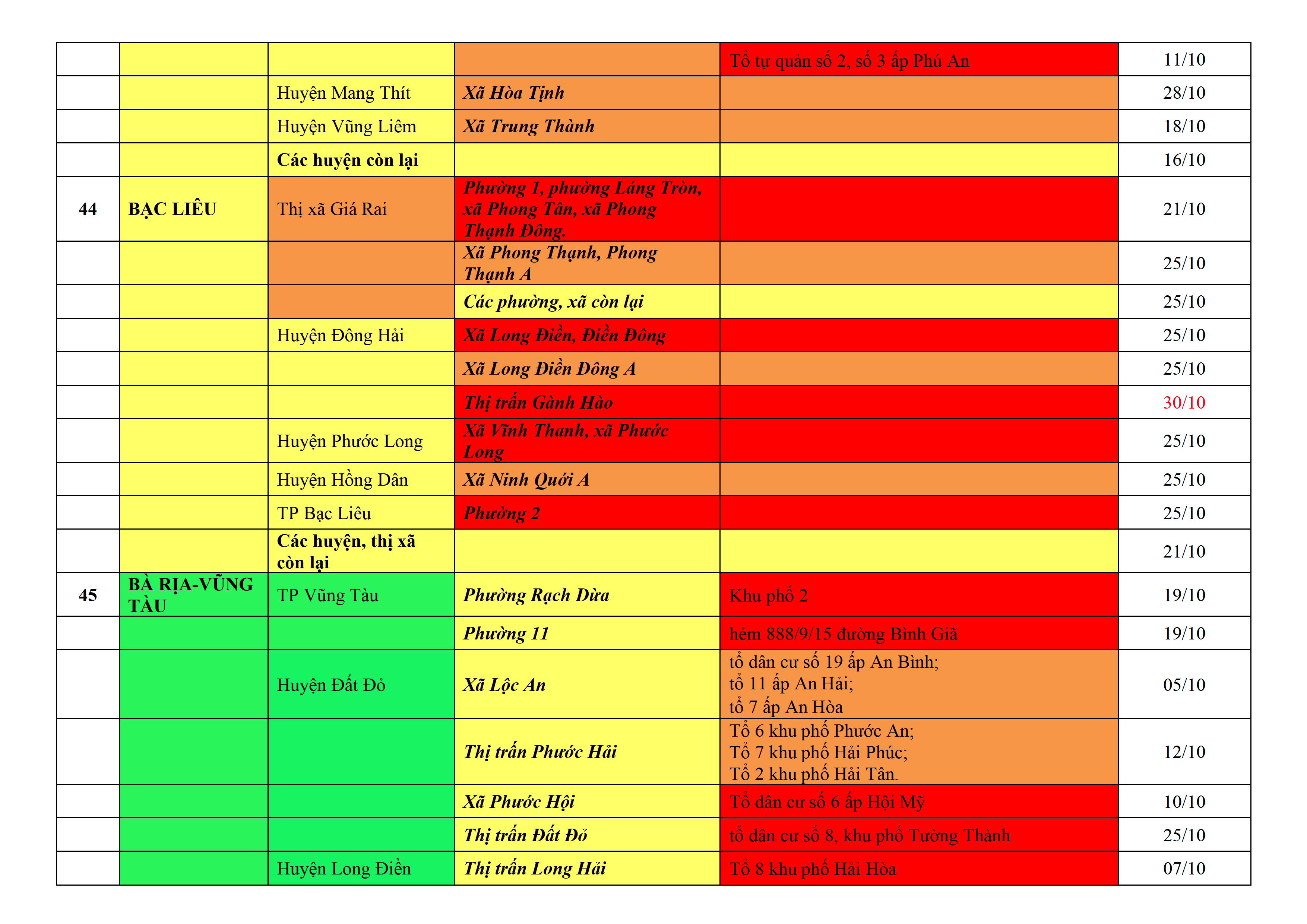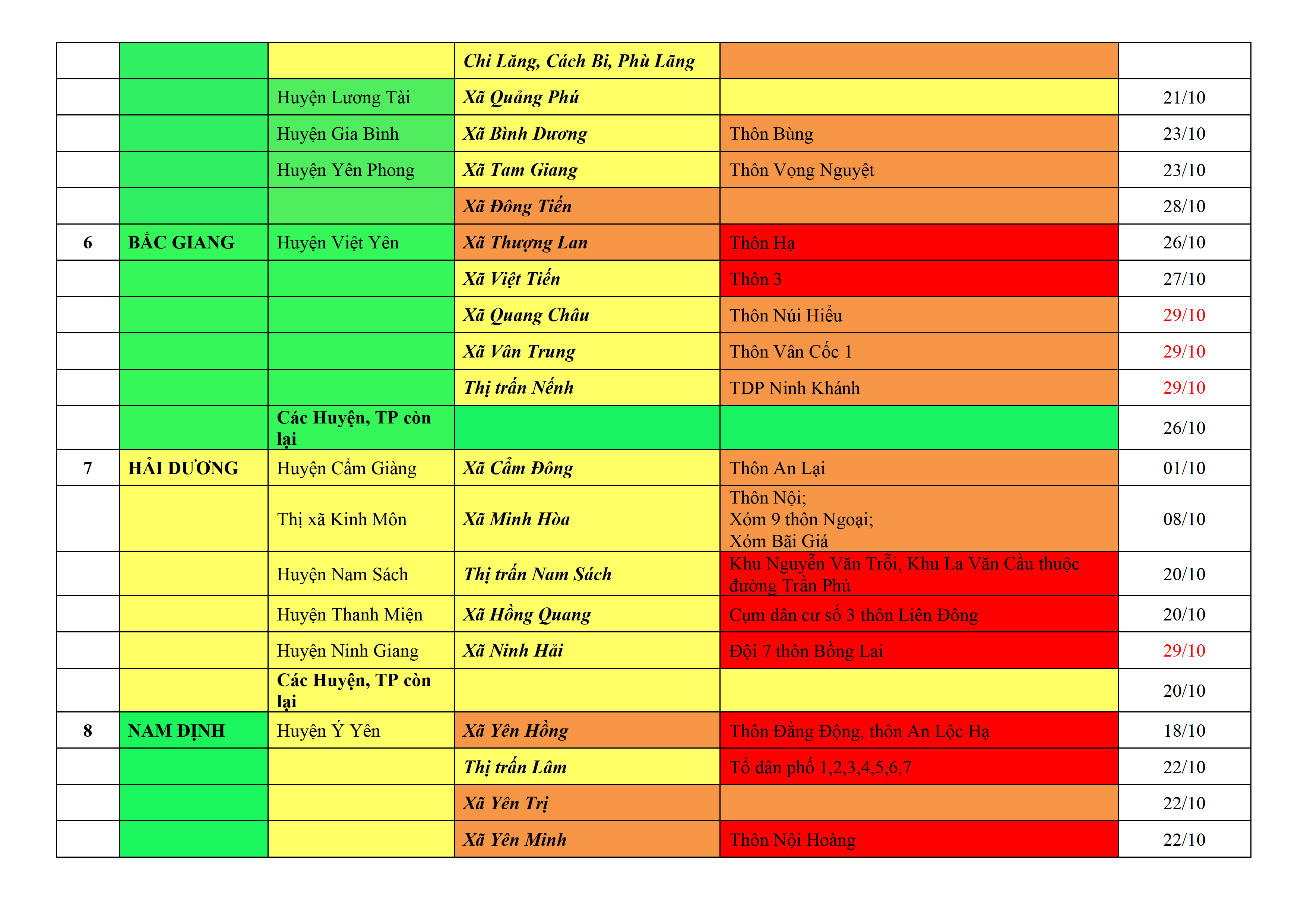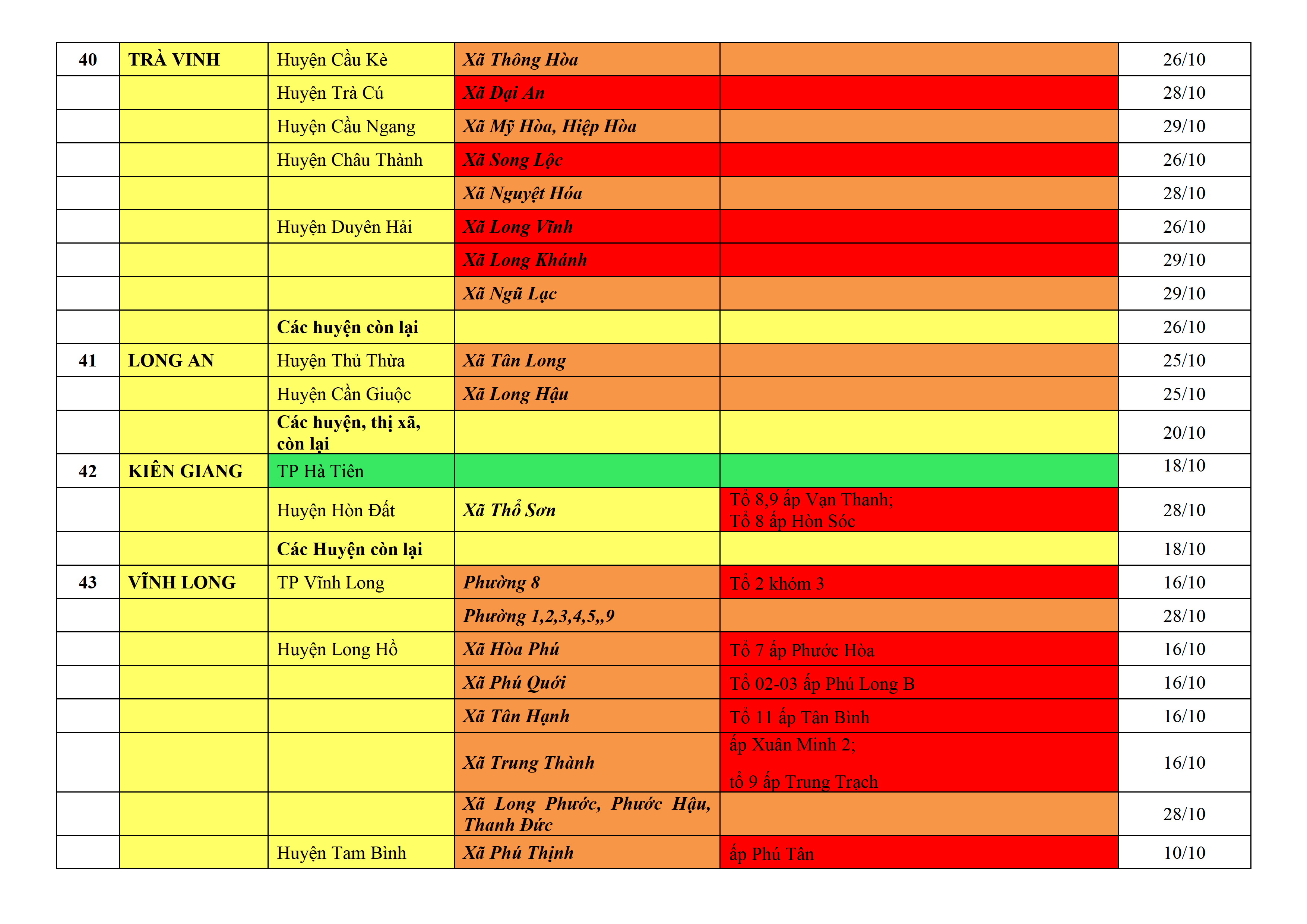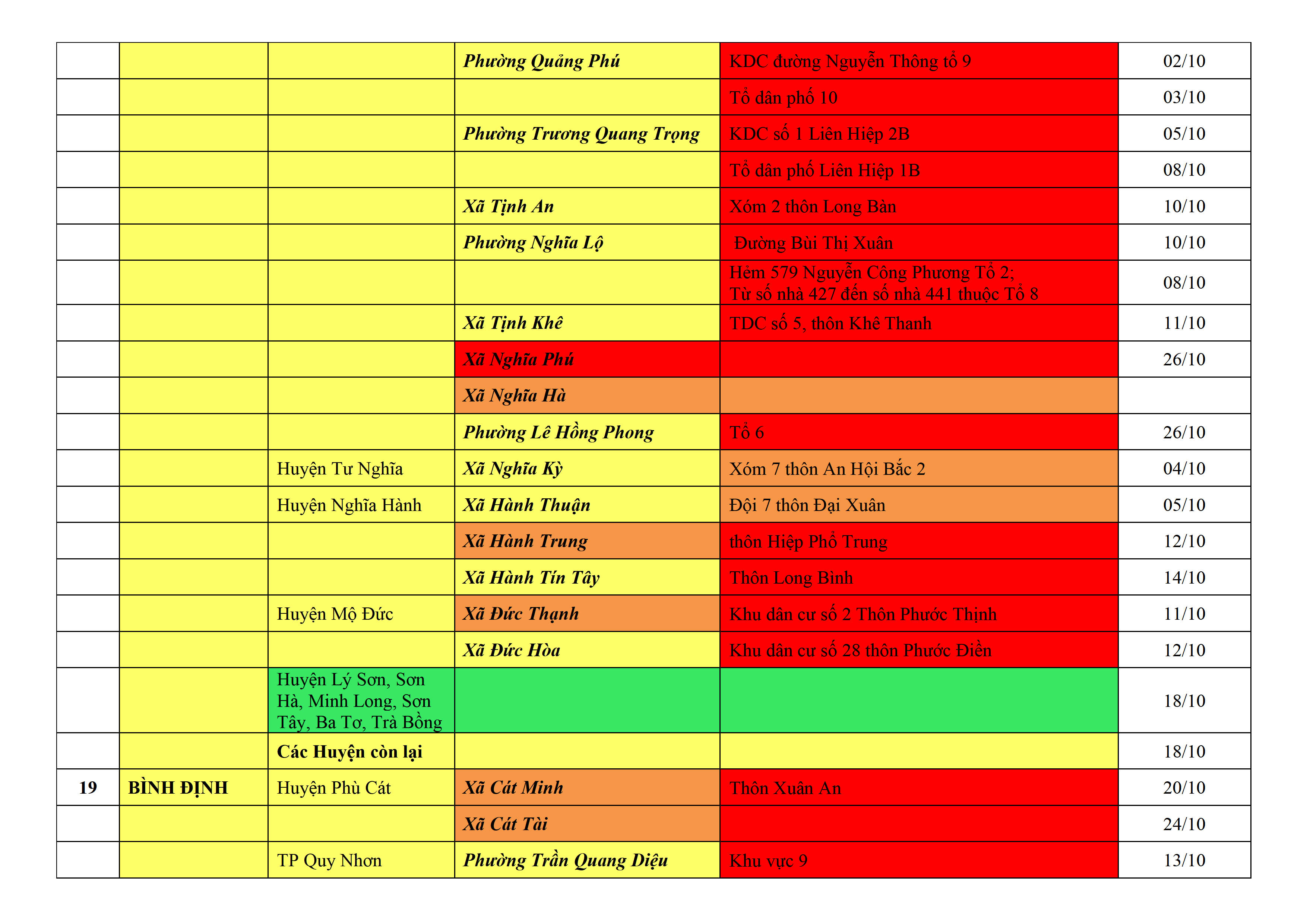 Lưu ý: Các tỉnh, thành phố không có tên trong bảng màu, đi lại bình thường, tuân thủ các biện pháp phòng chống dịch theo chỉ đạo của Bộ Y tế; khai báo y tế, thực hiện nghiêm 5K.