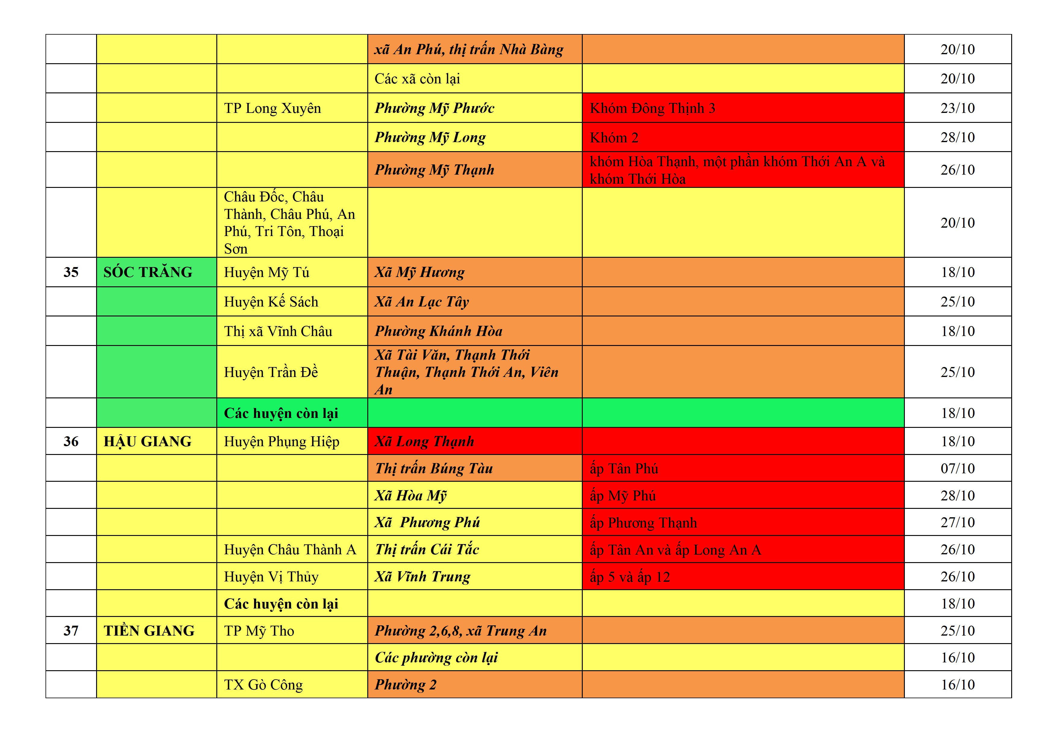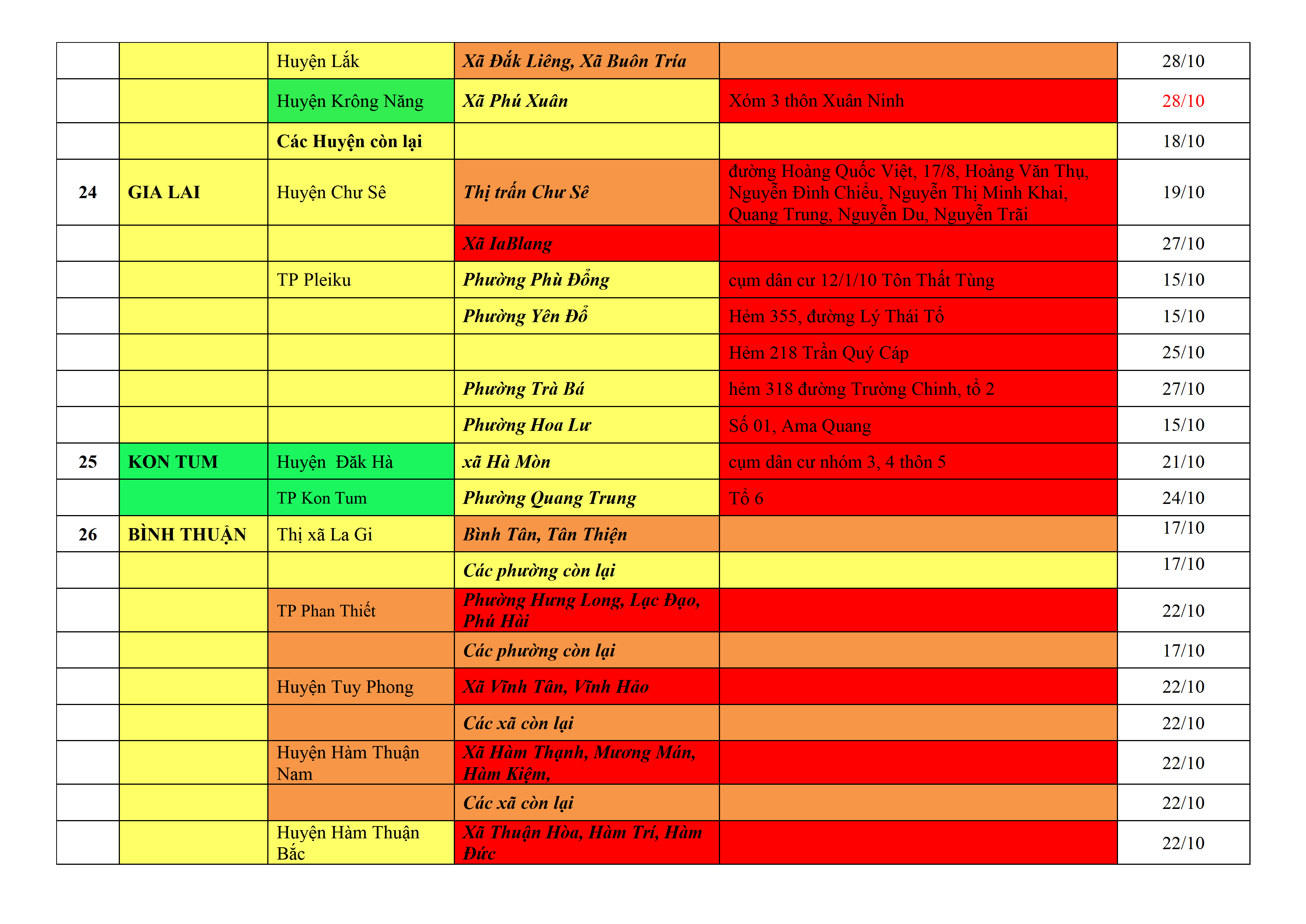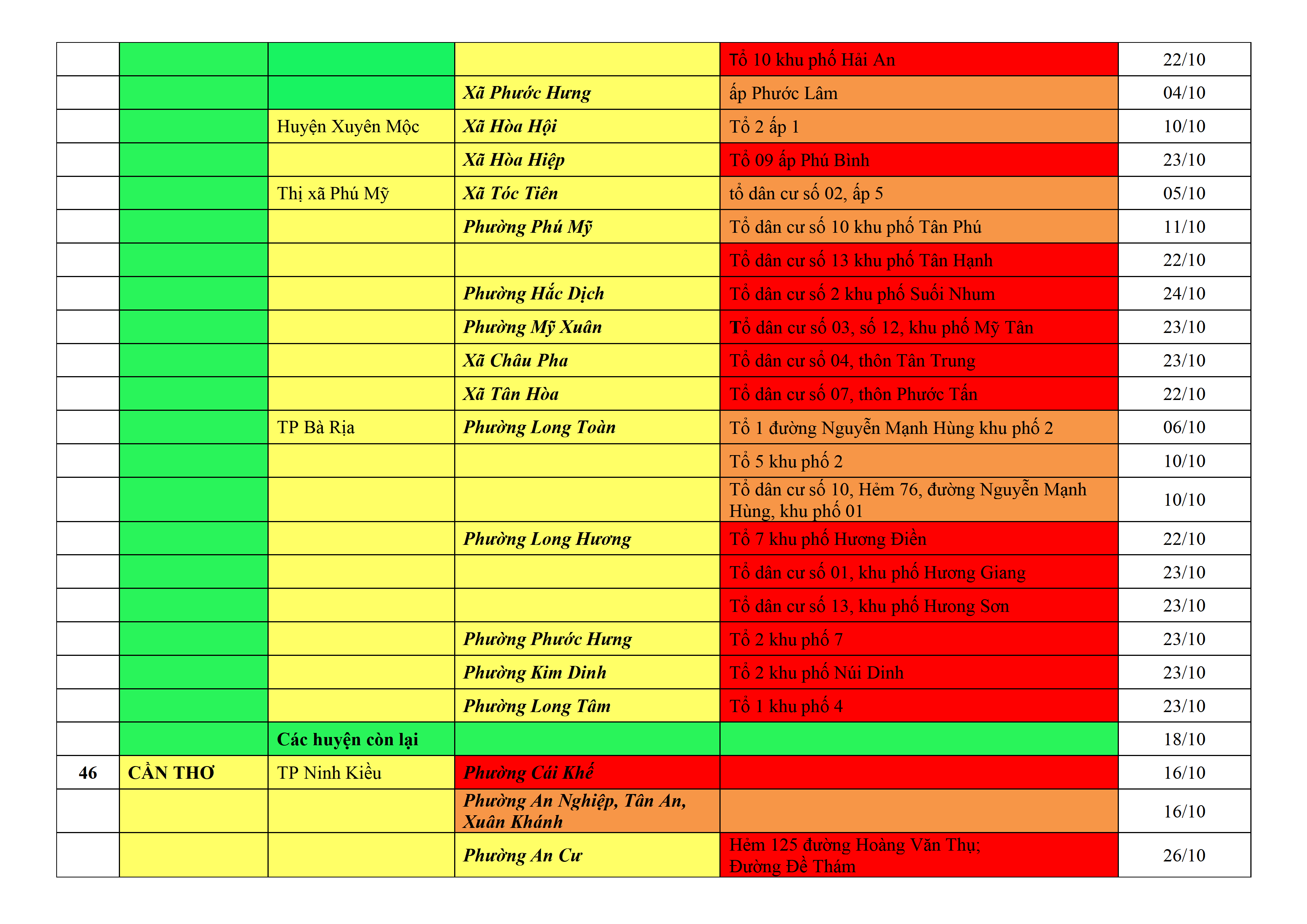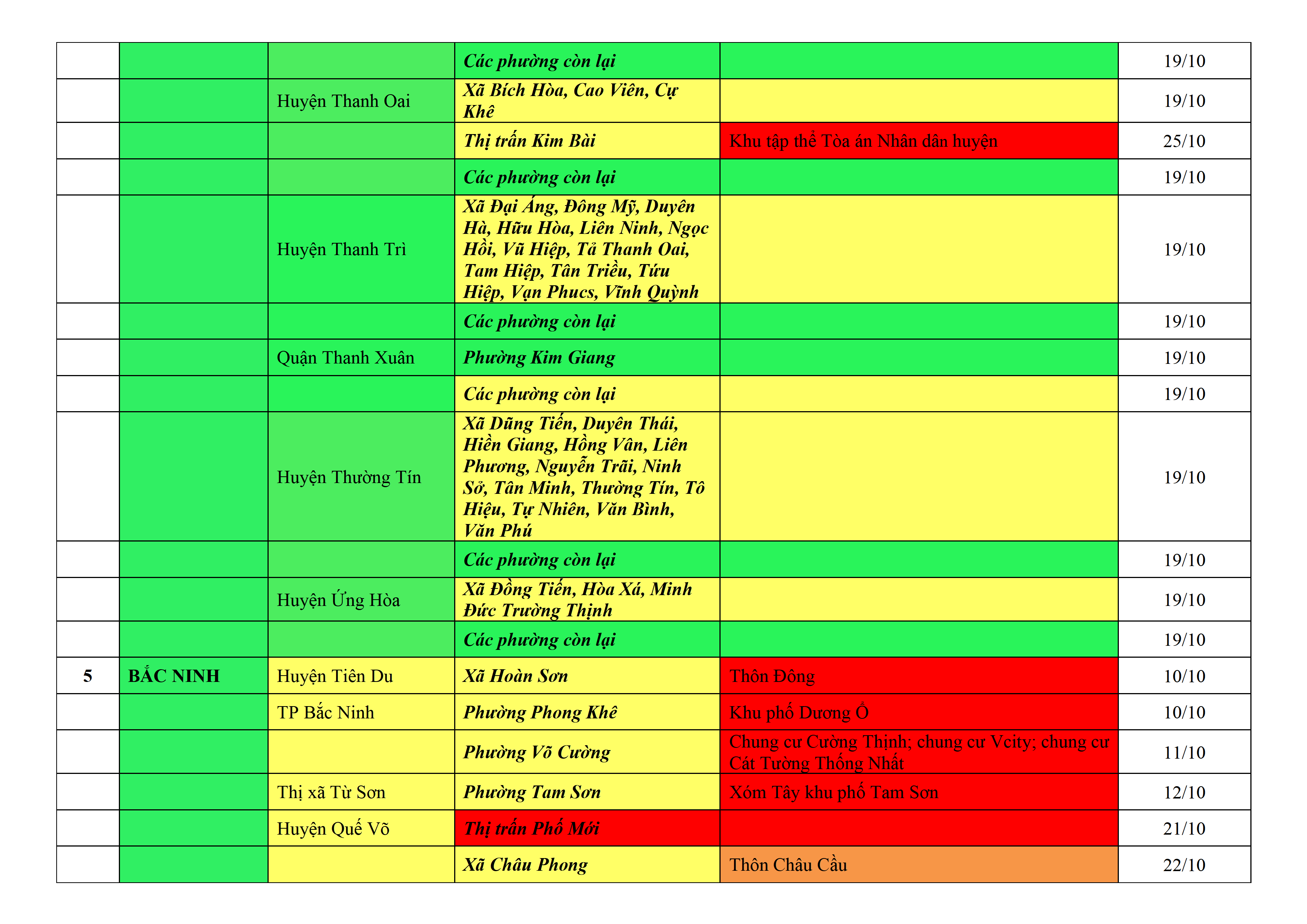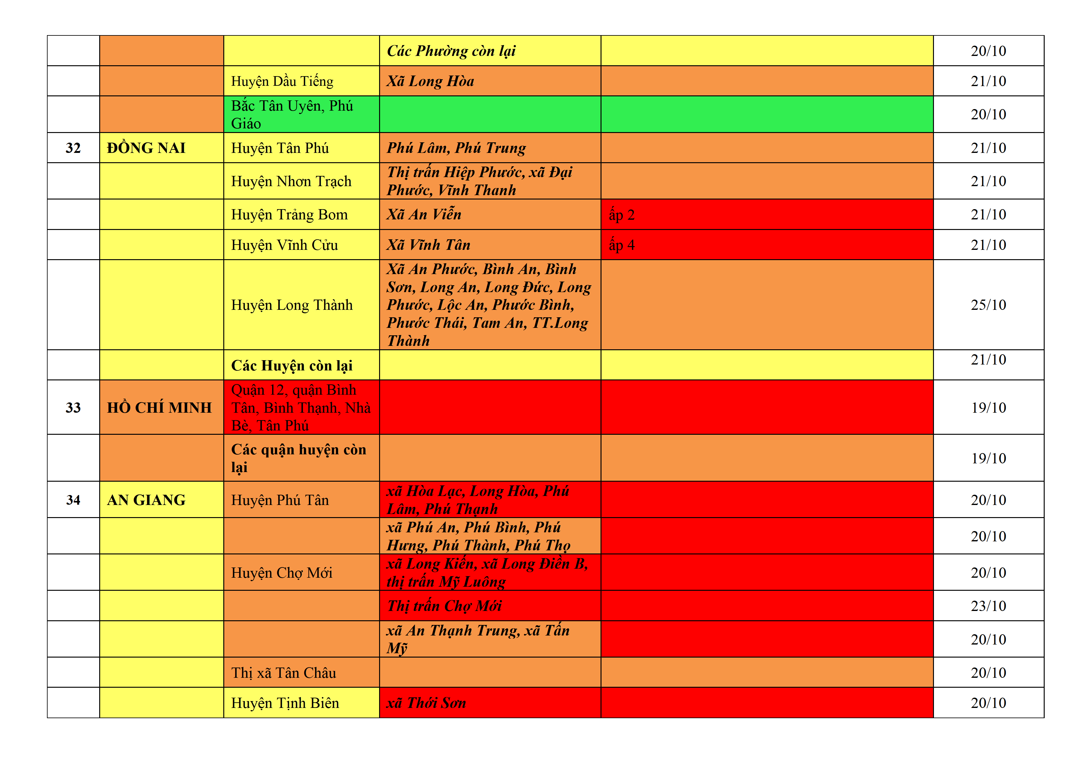 Lưu ý: Các tỉnh, thành phố không có tên trong bảng màu, đi lại bình thường, tuân thủ các biện pháp phòng chống dịch theo chỉ đạo của Bộ Y tế; khai báo y tế, thực hiện nghiêm 5K.